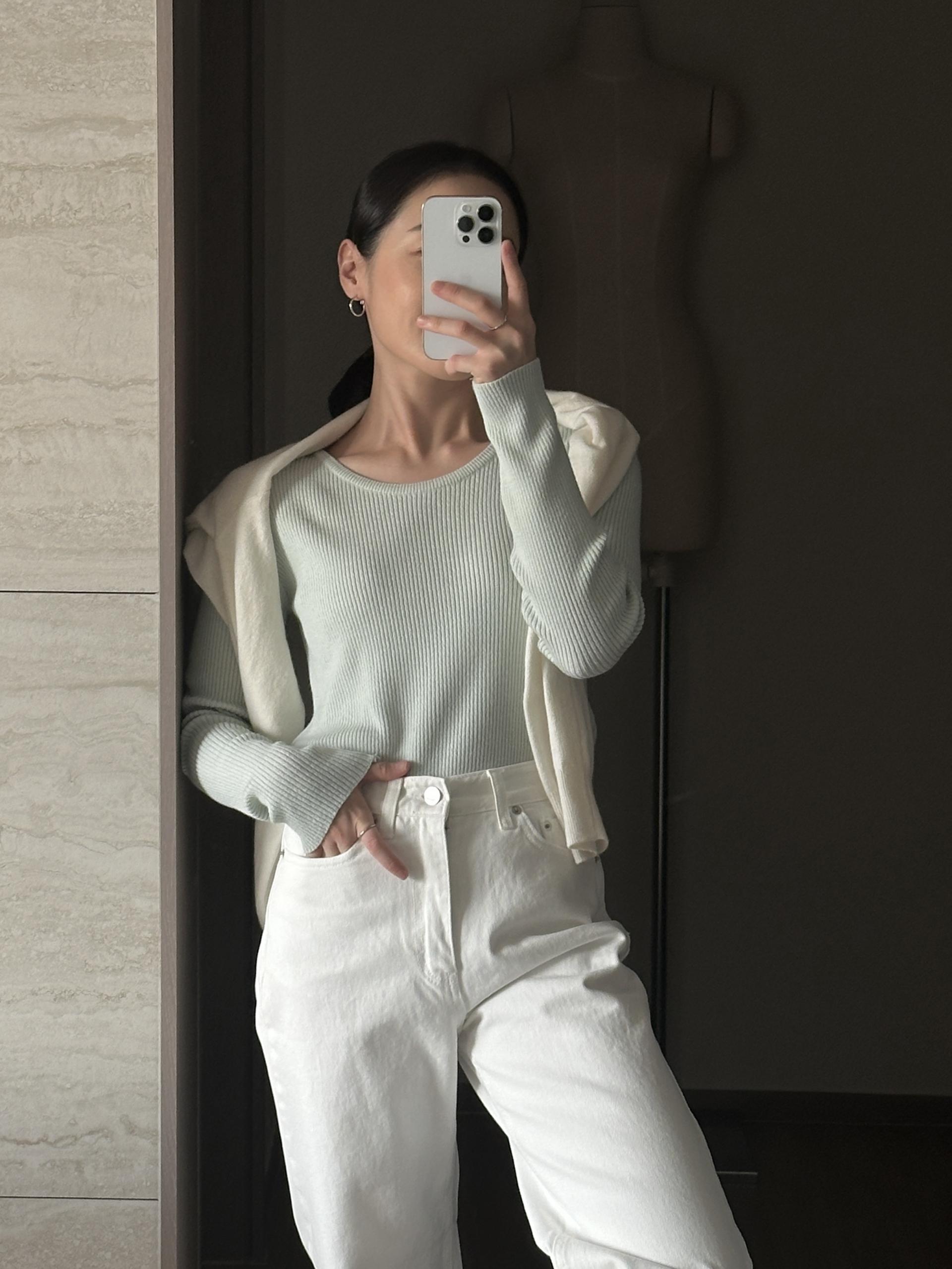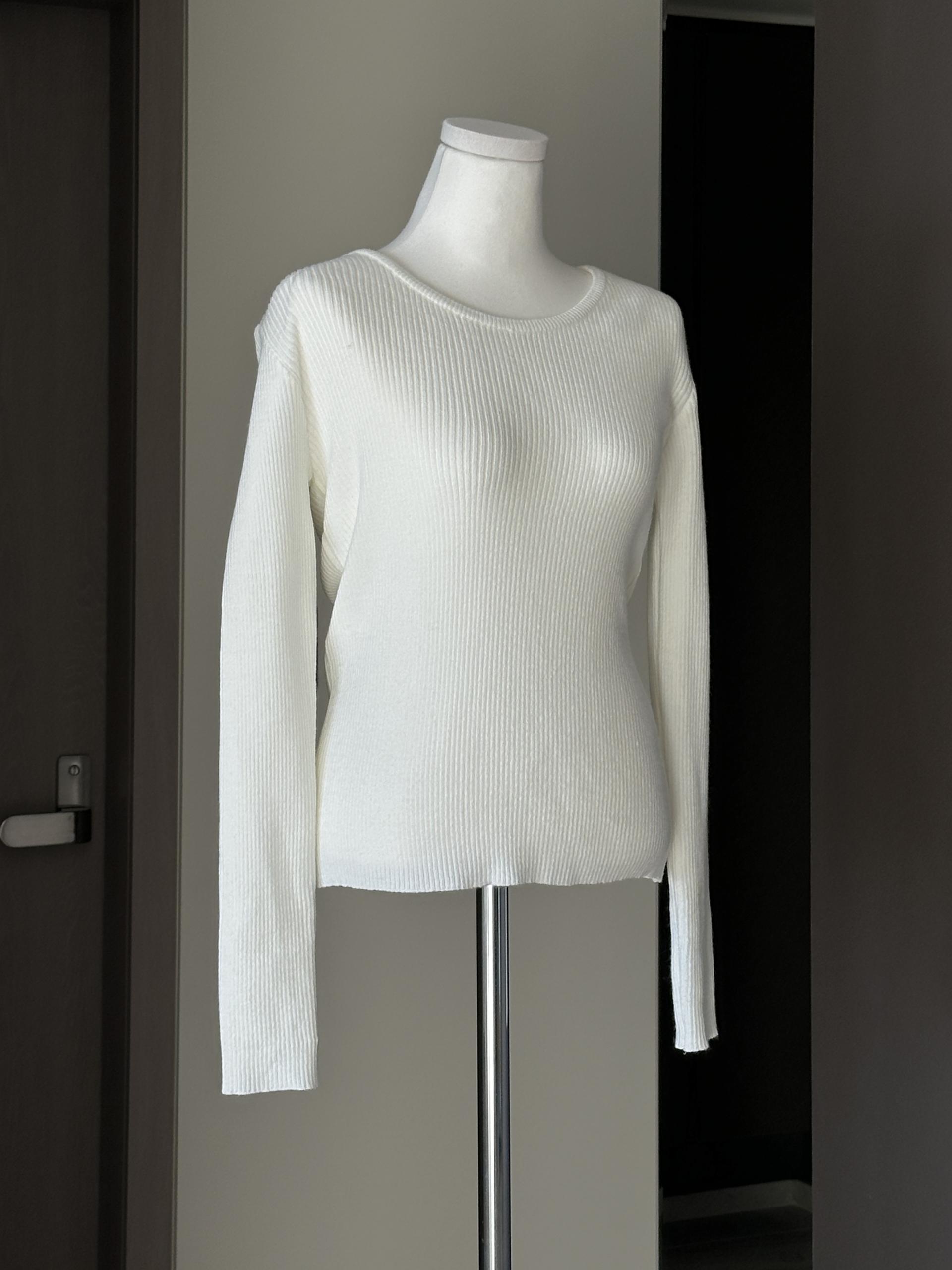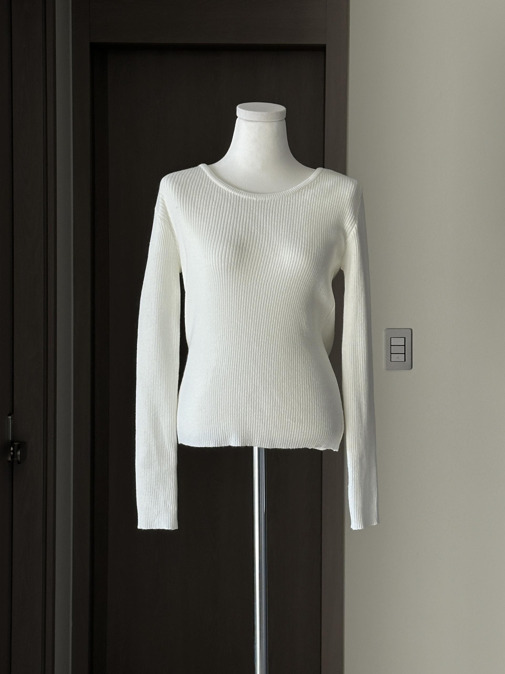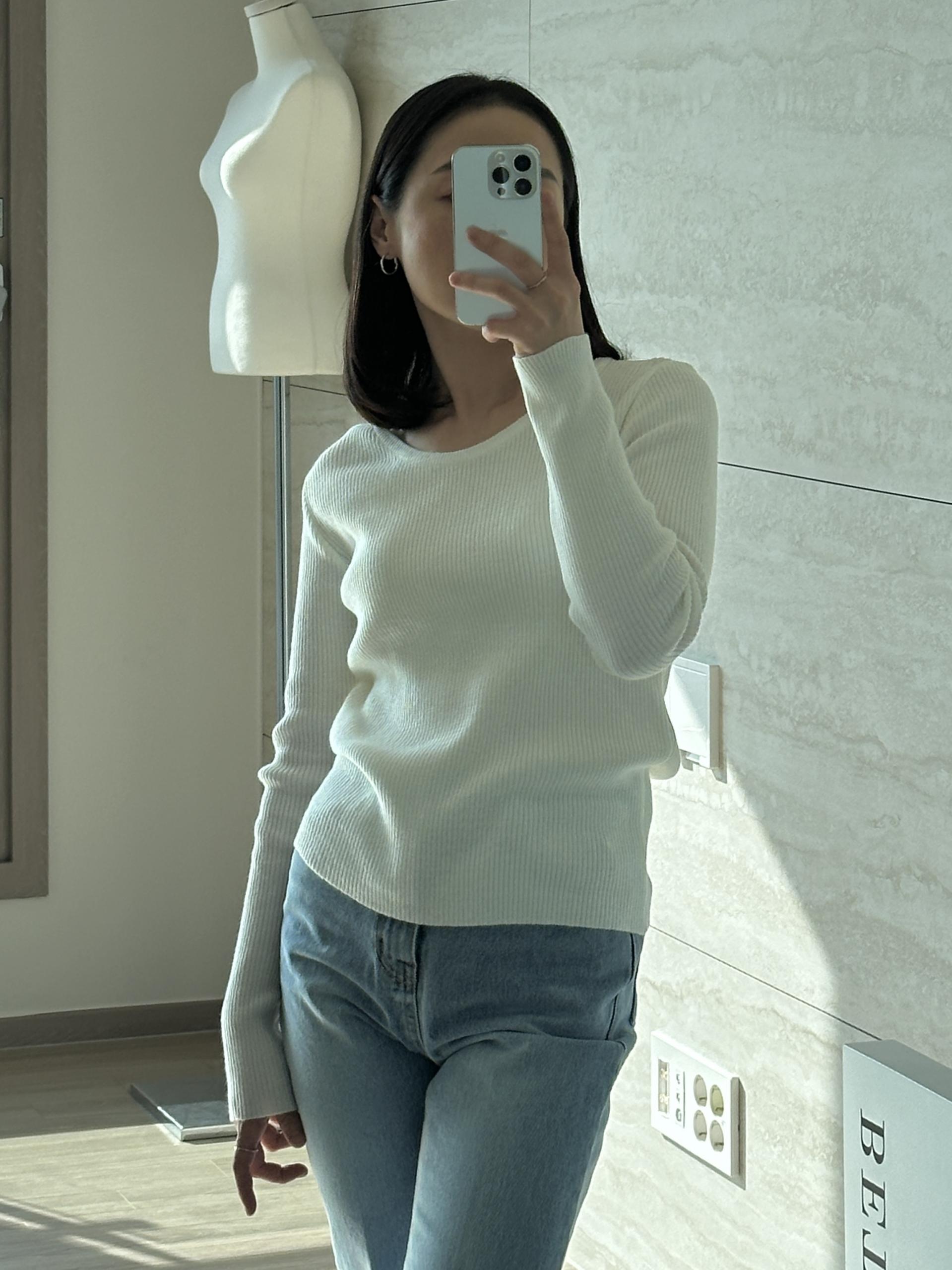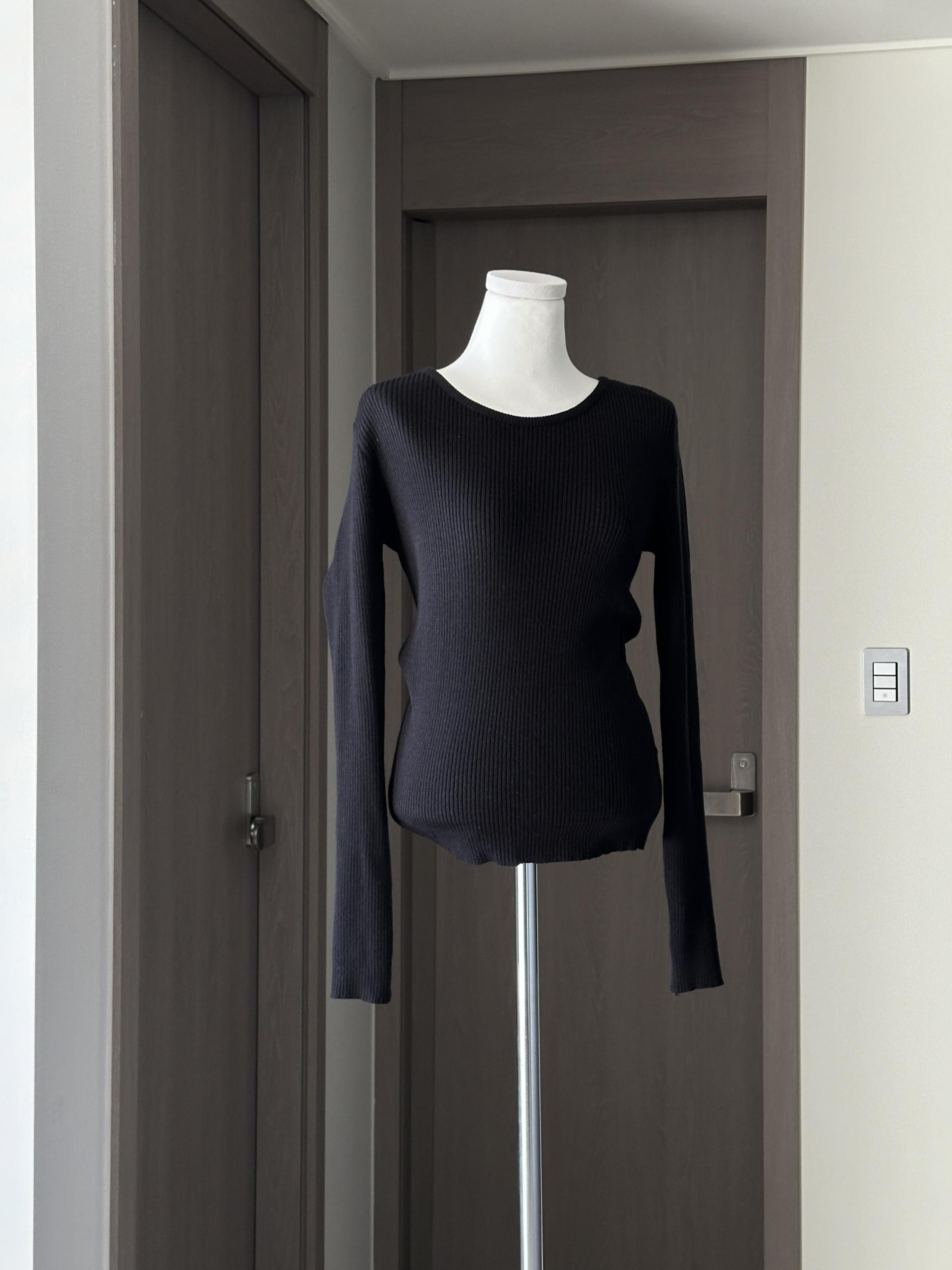 실용적으로 착용하기 좋은 적당한 슬림핏 니트웨어입니다.