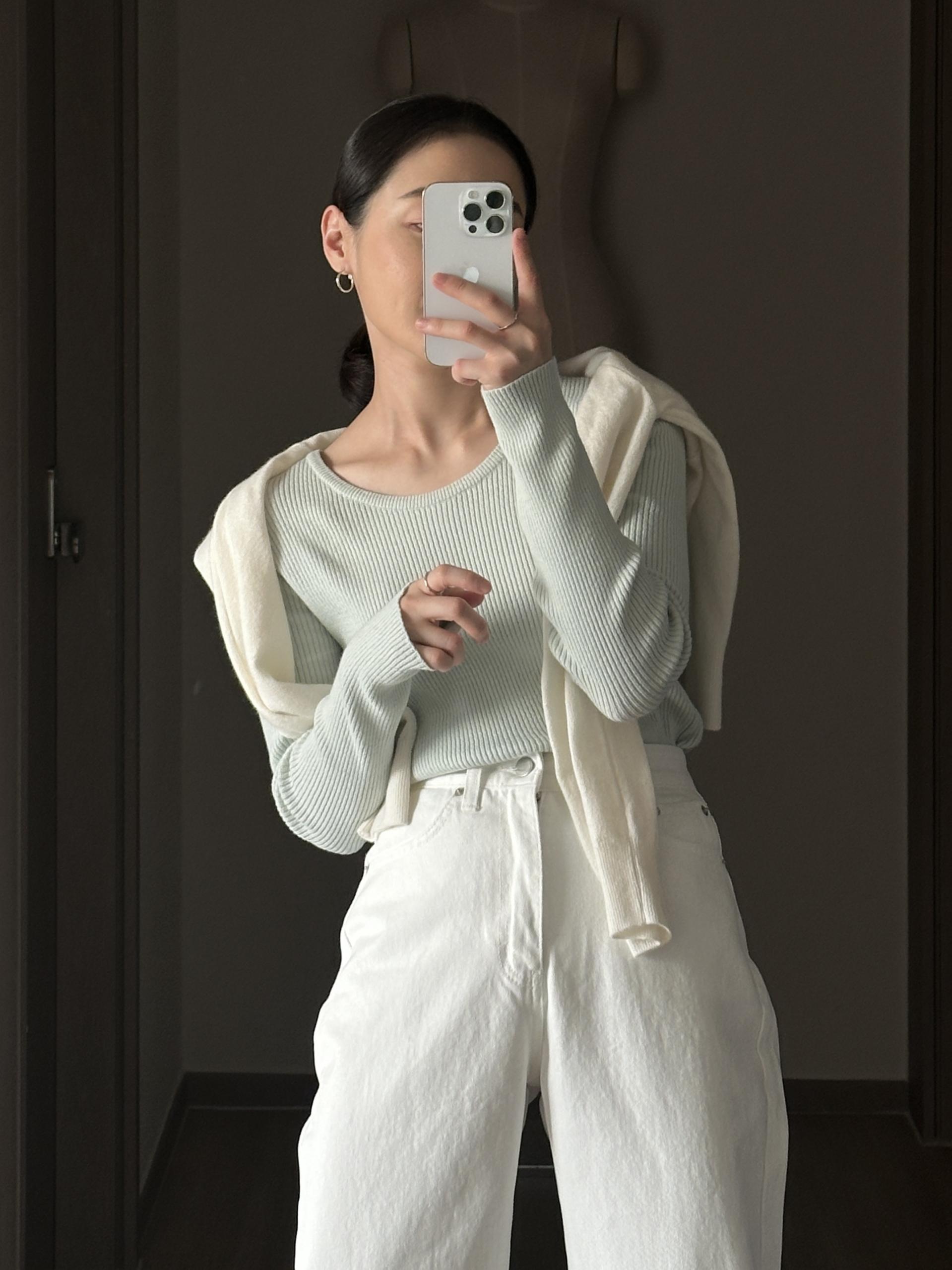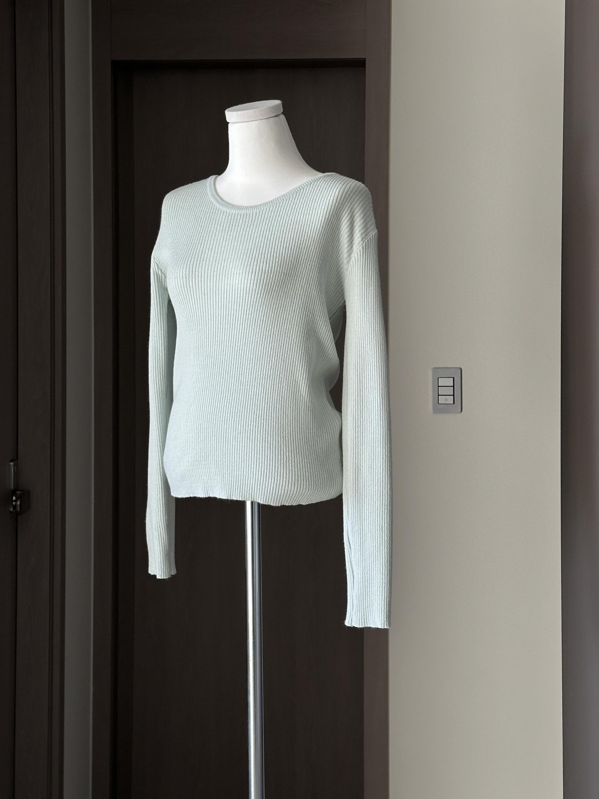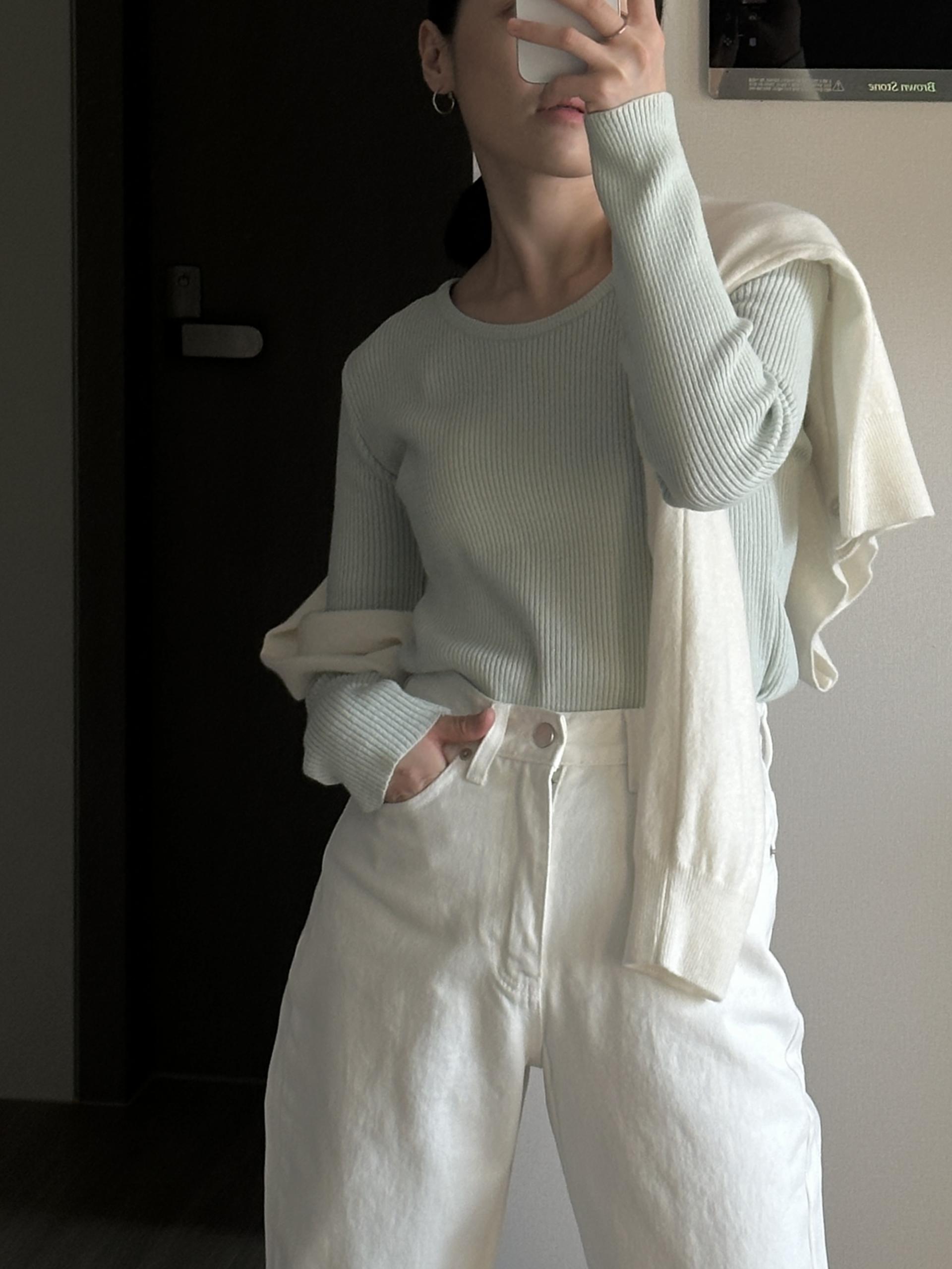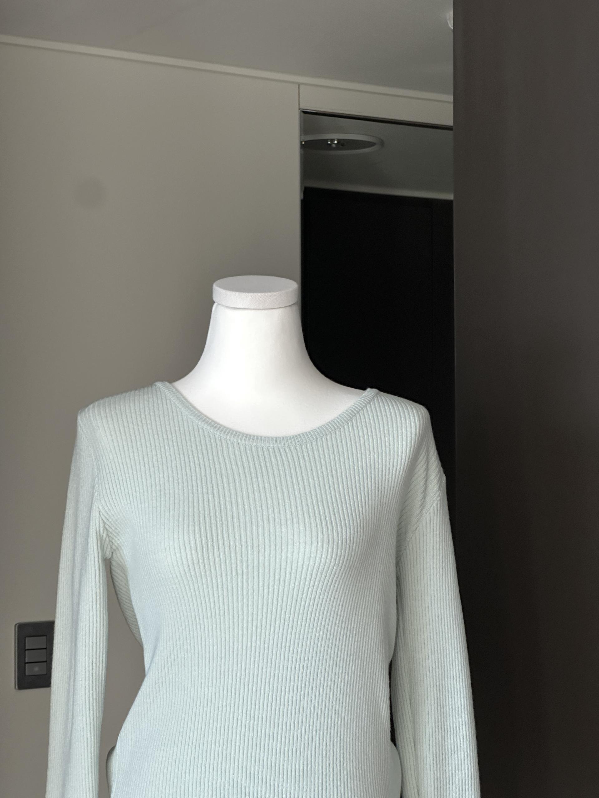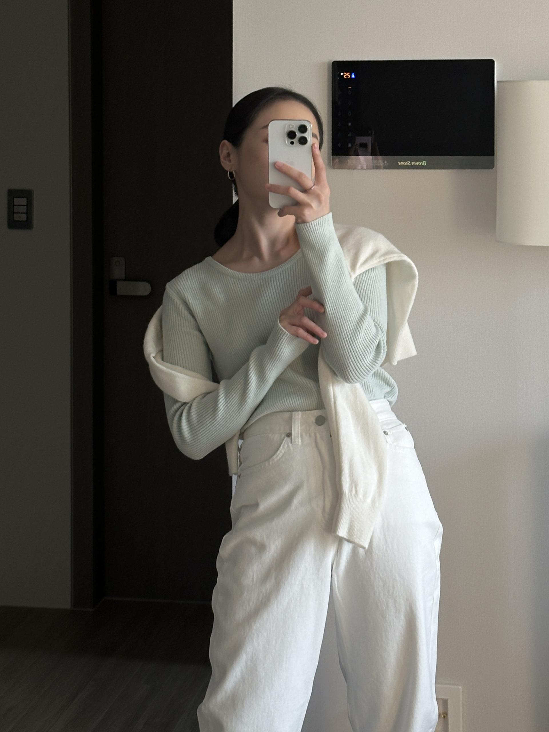 실용적으로 착용하기 좋은 적당한 슬림핏 니트웨어입니다.