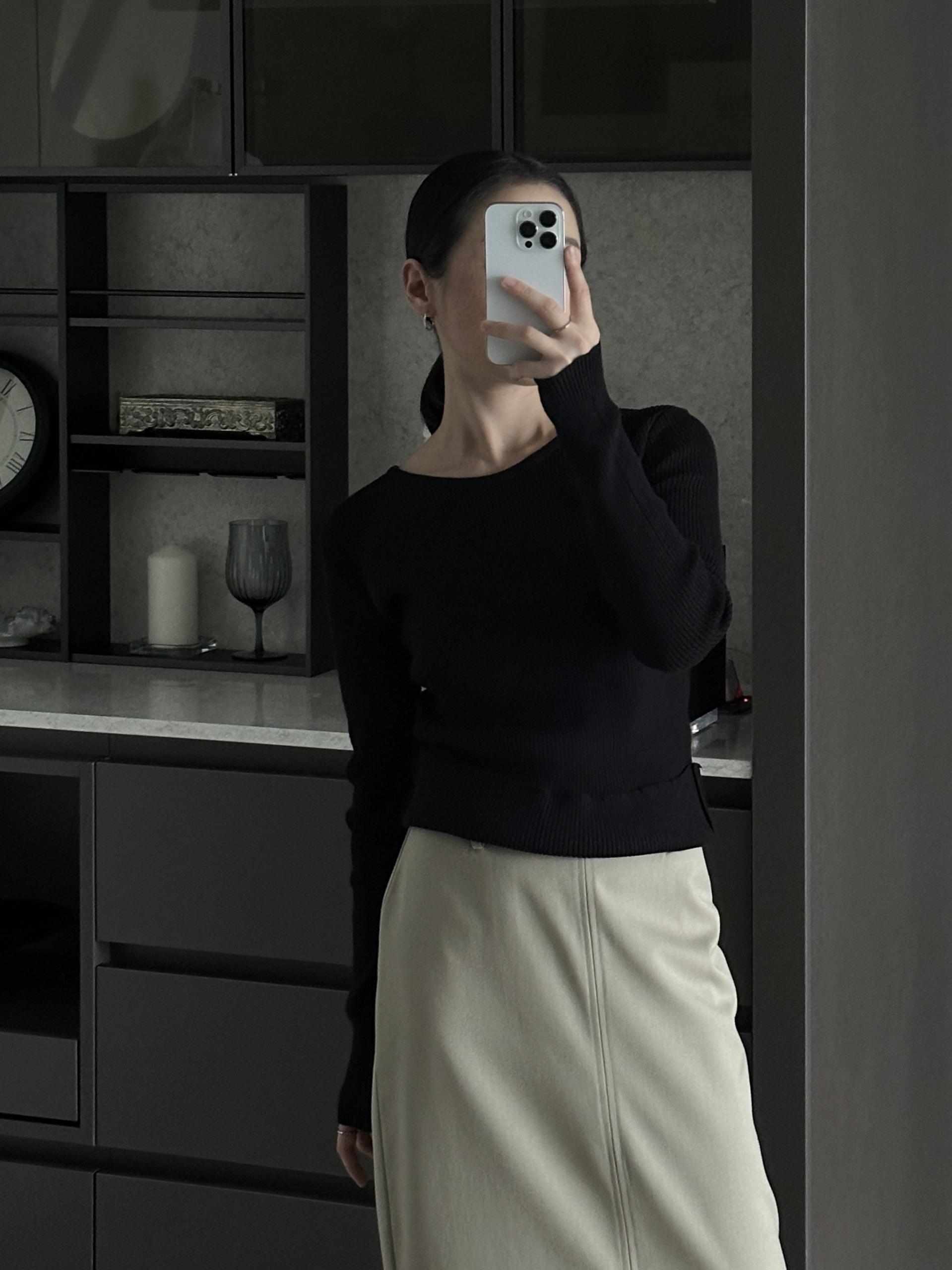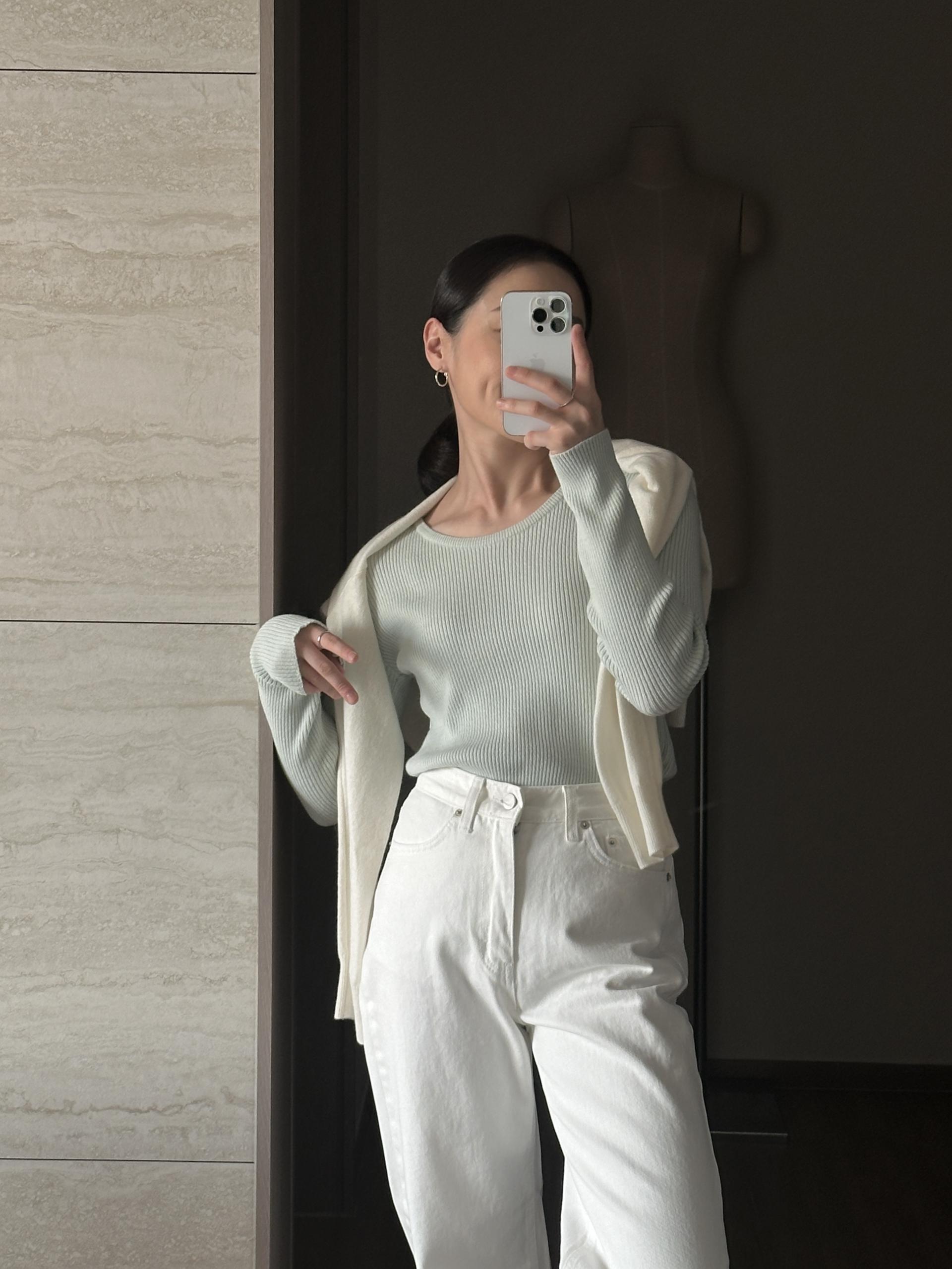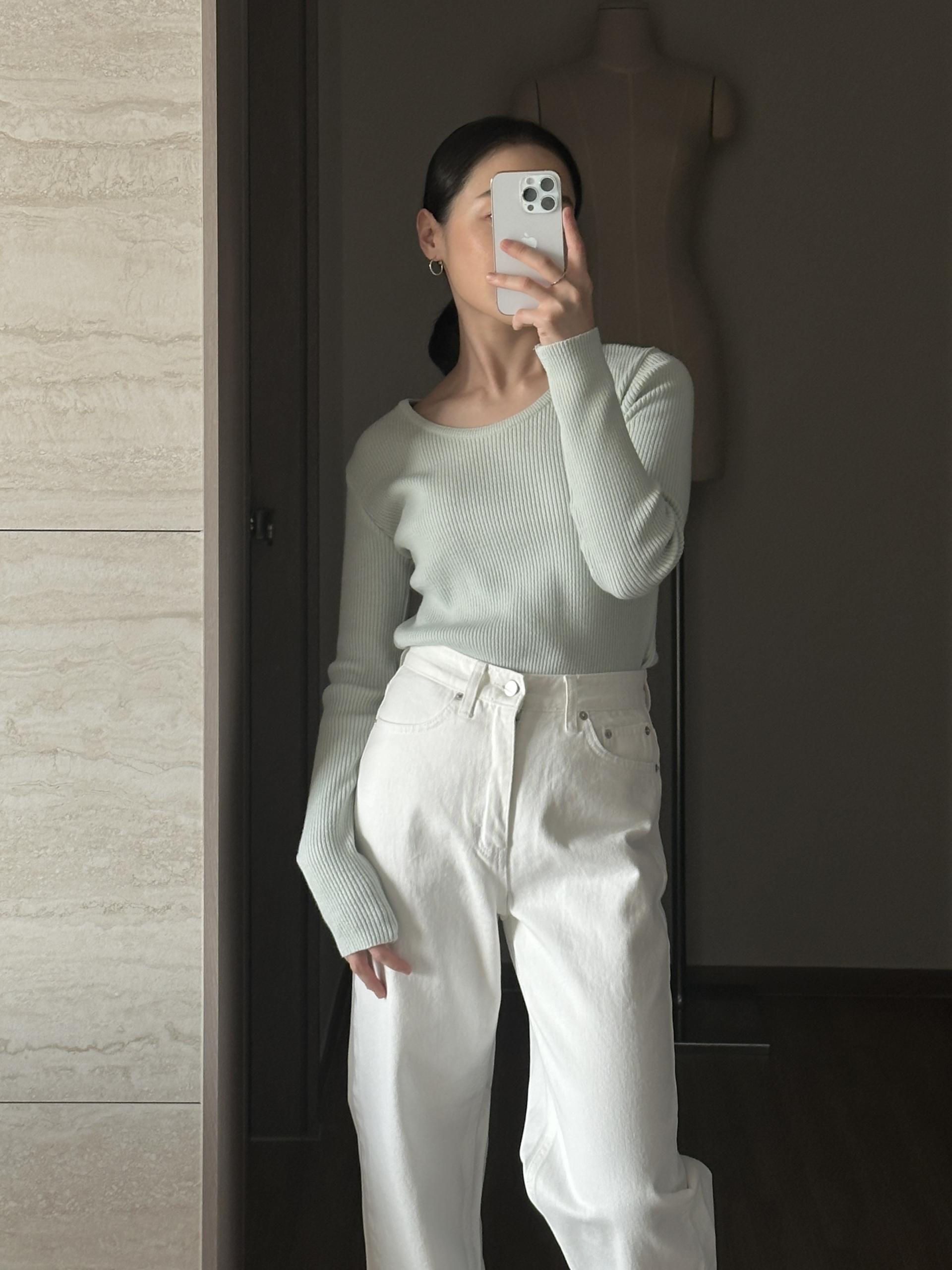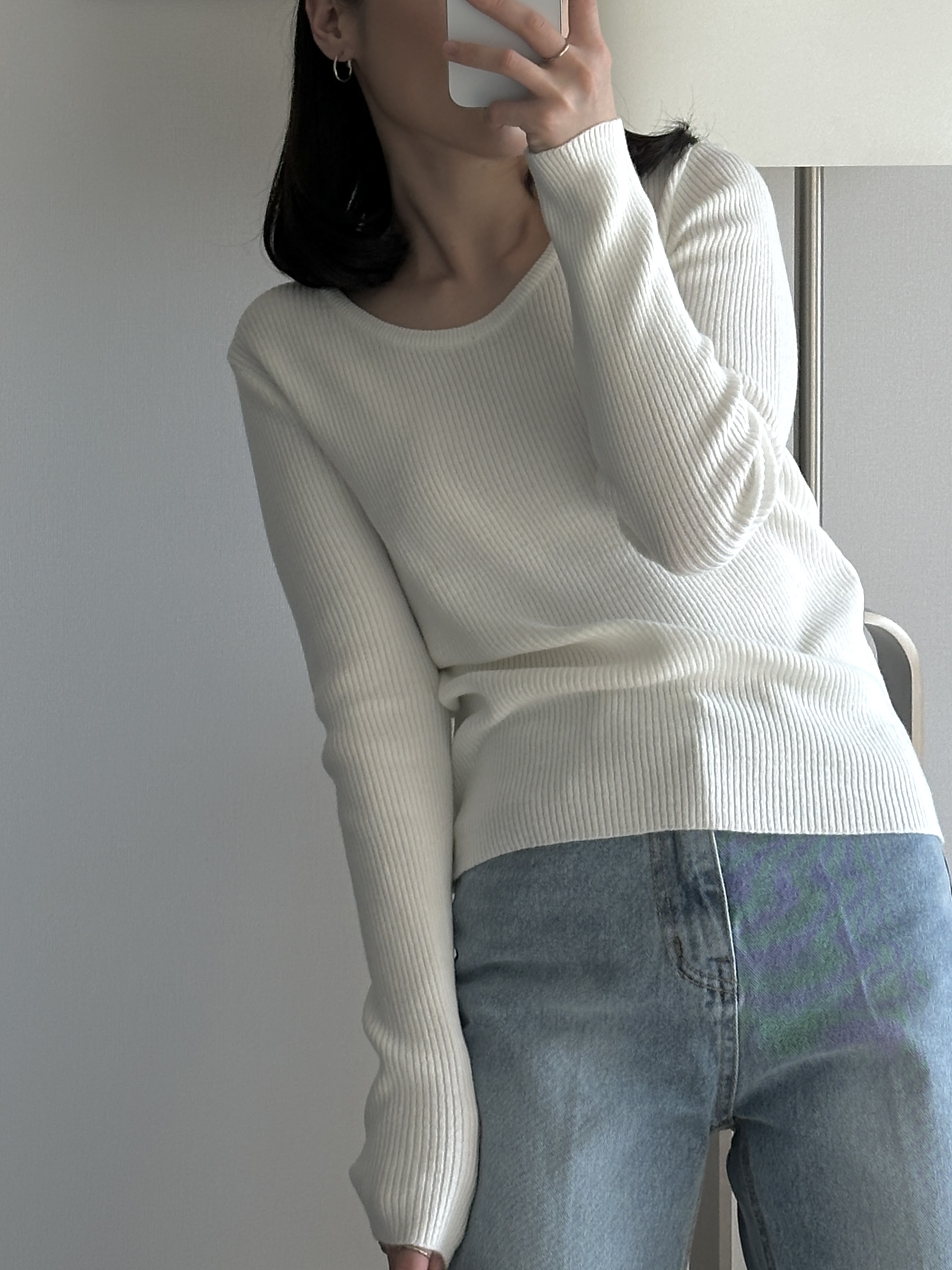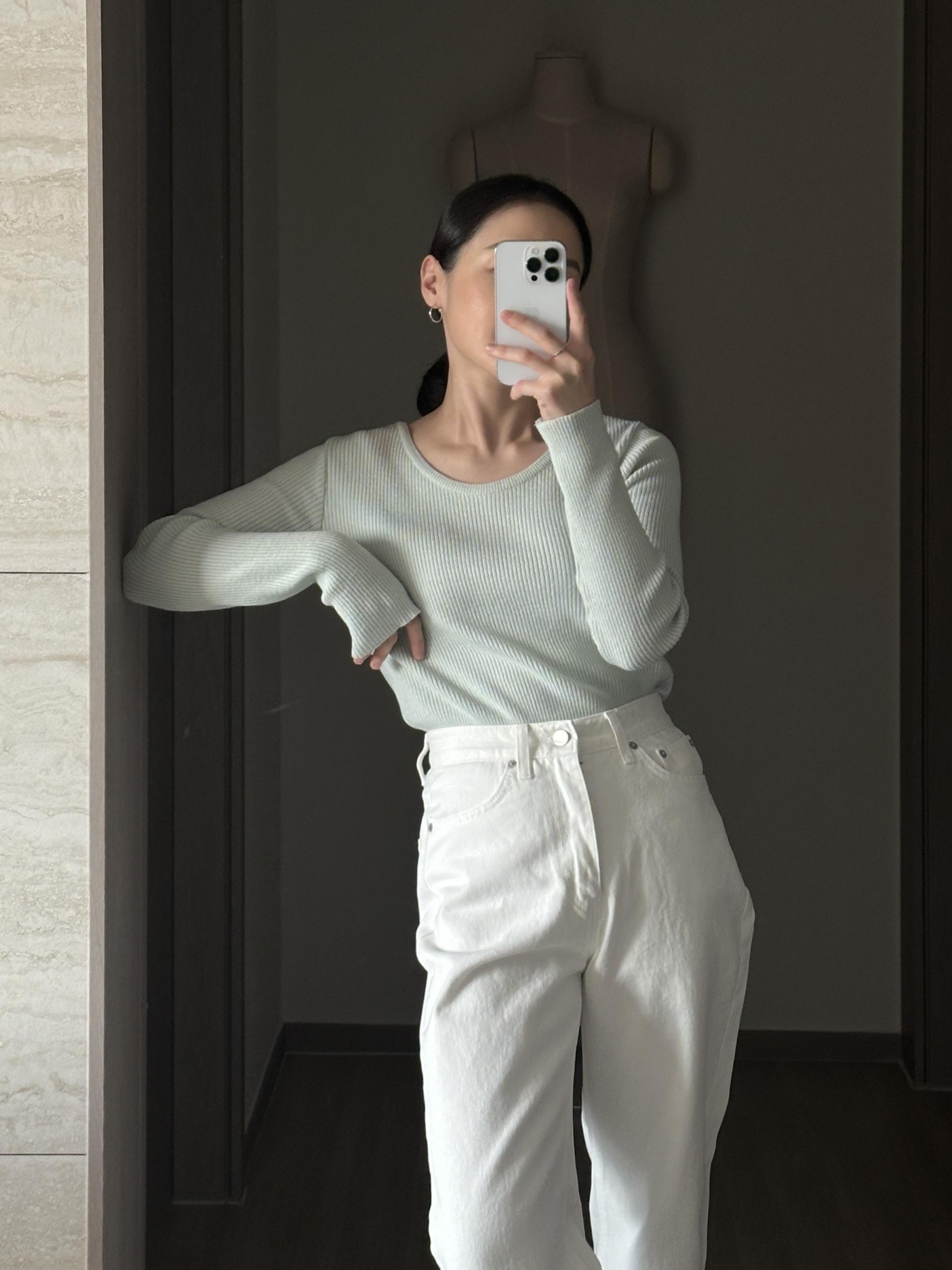 실용적으로 착용하기 좋은 적당한 슬림핏 니트웨어입니다.