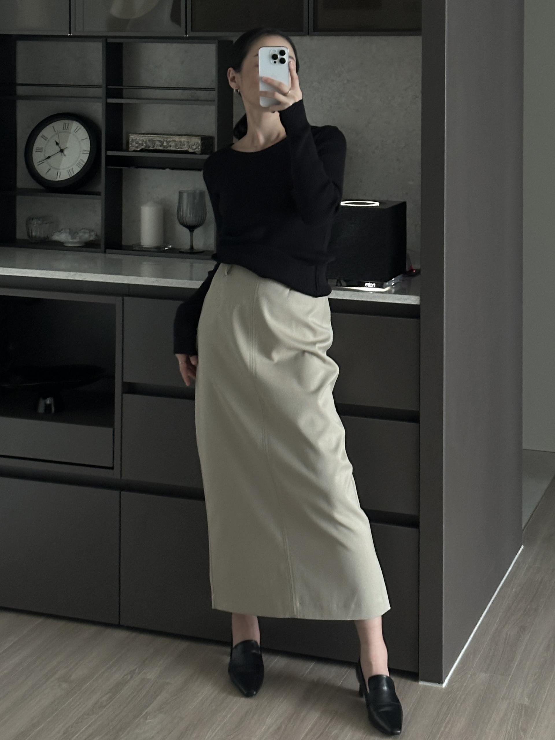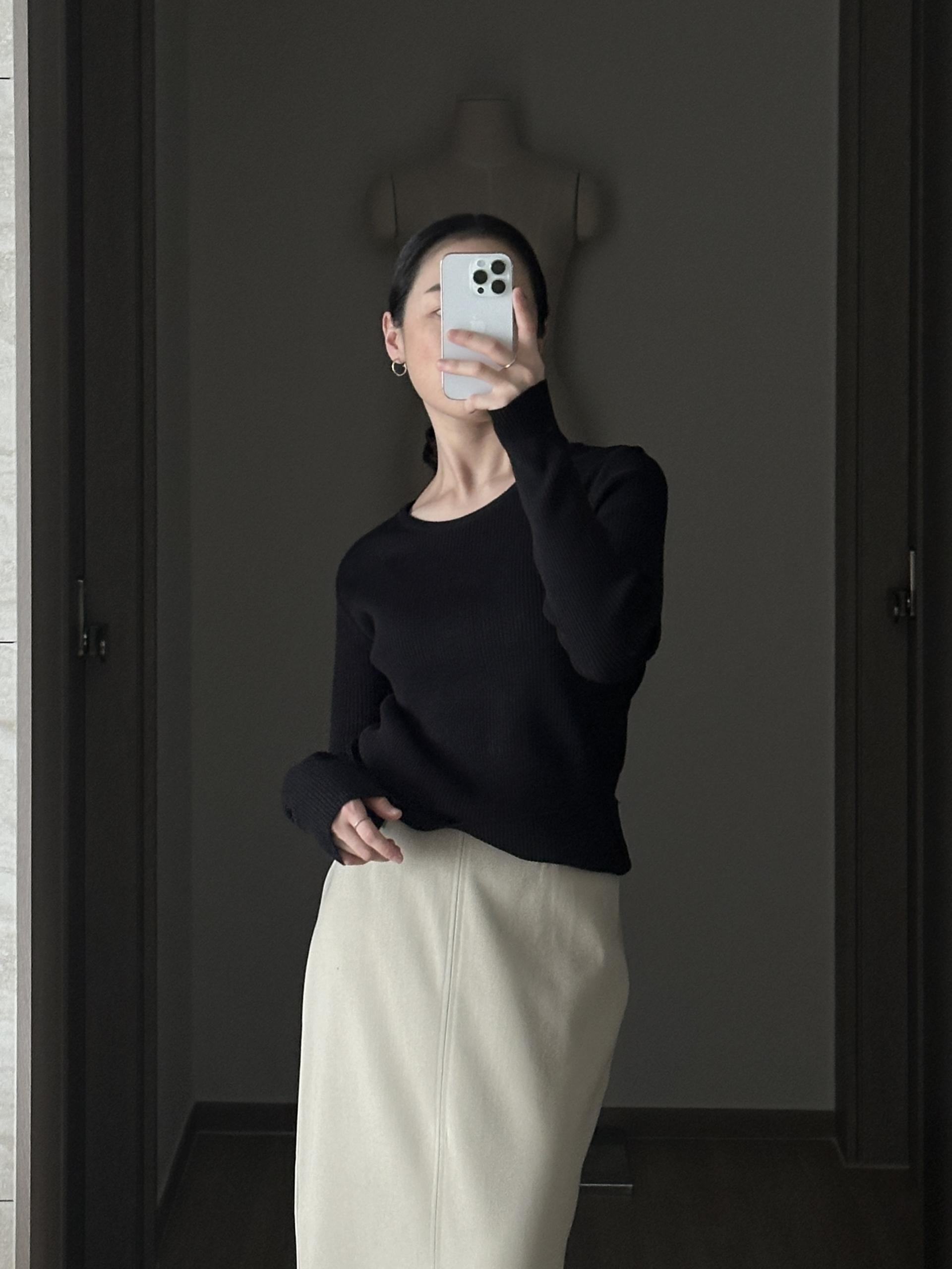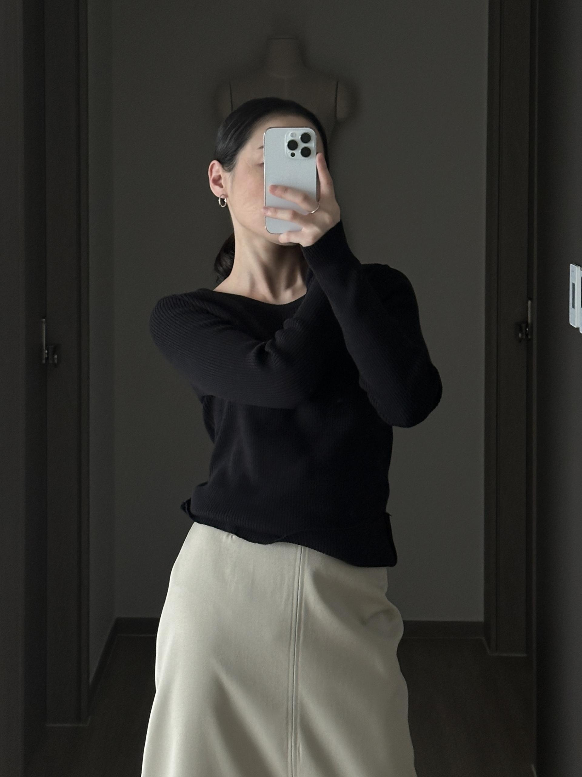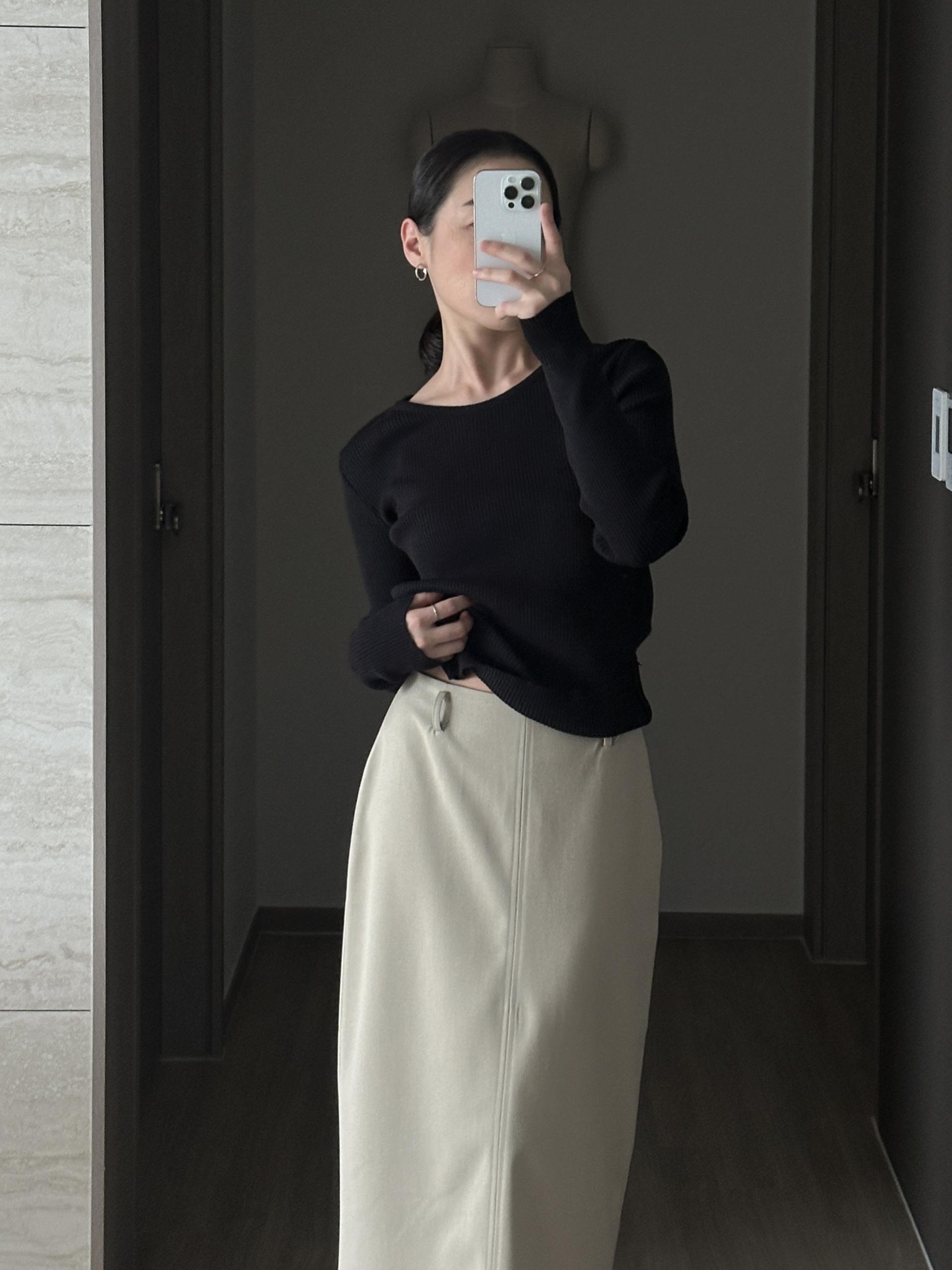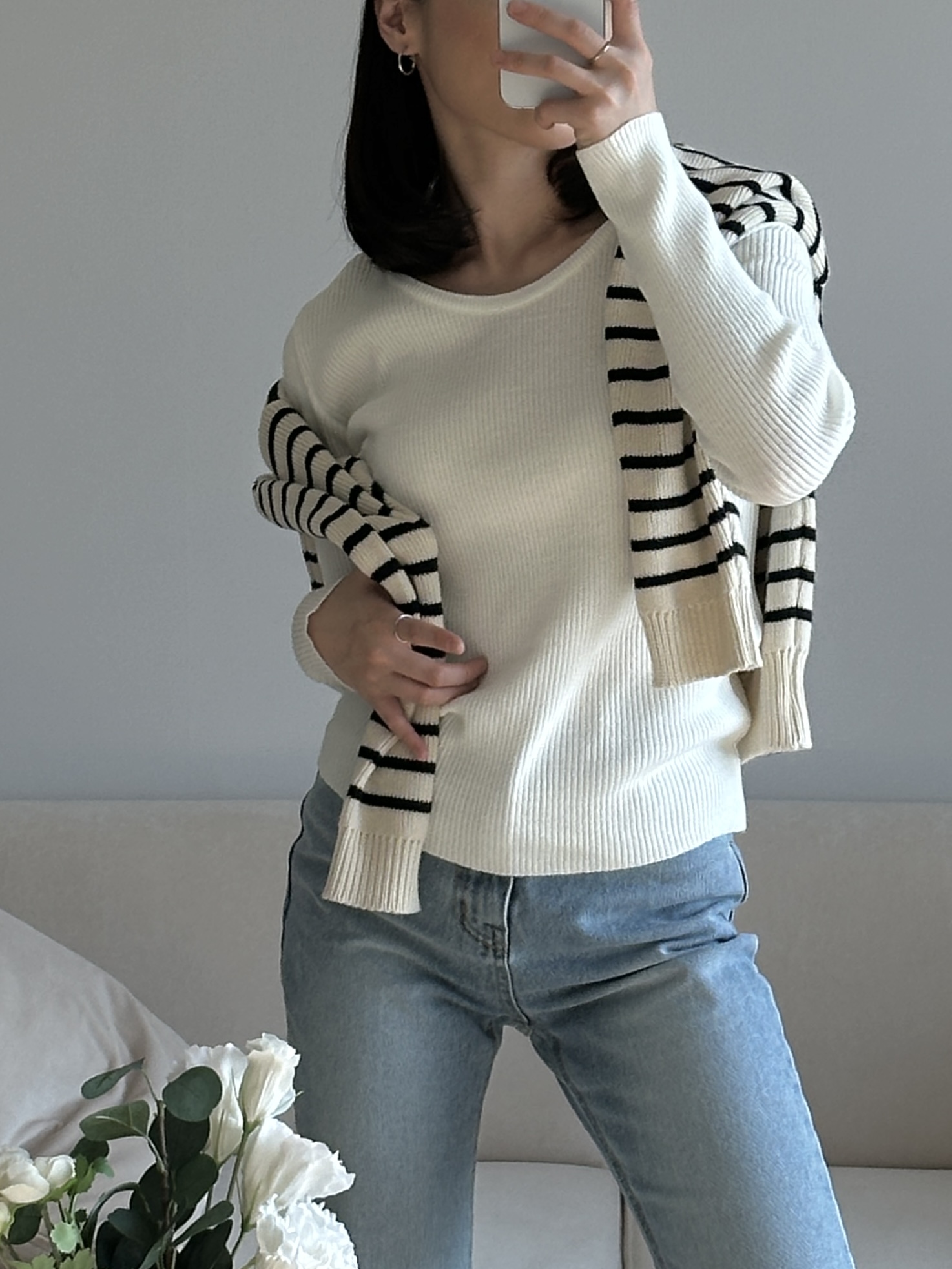 실용적으로 착용하기 좋은 적당한 슬림핏 니트웨어입니다.