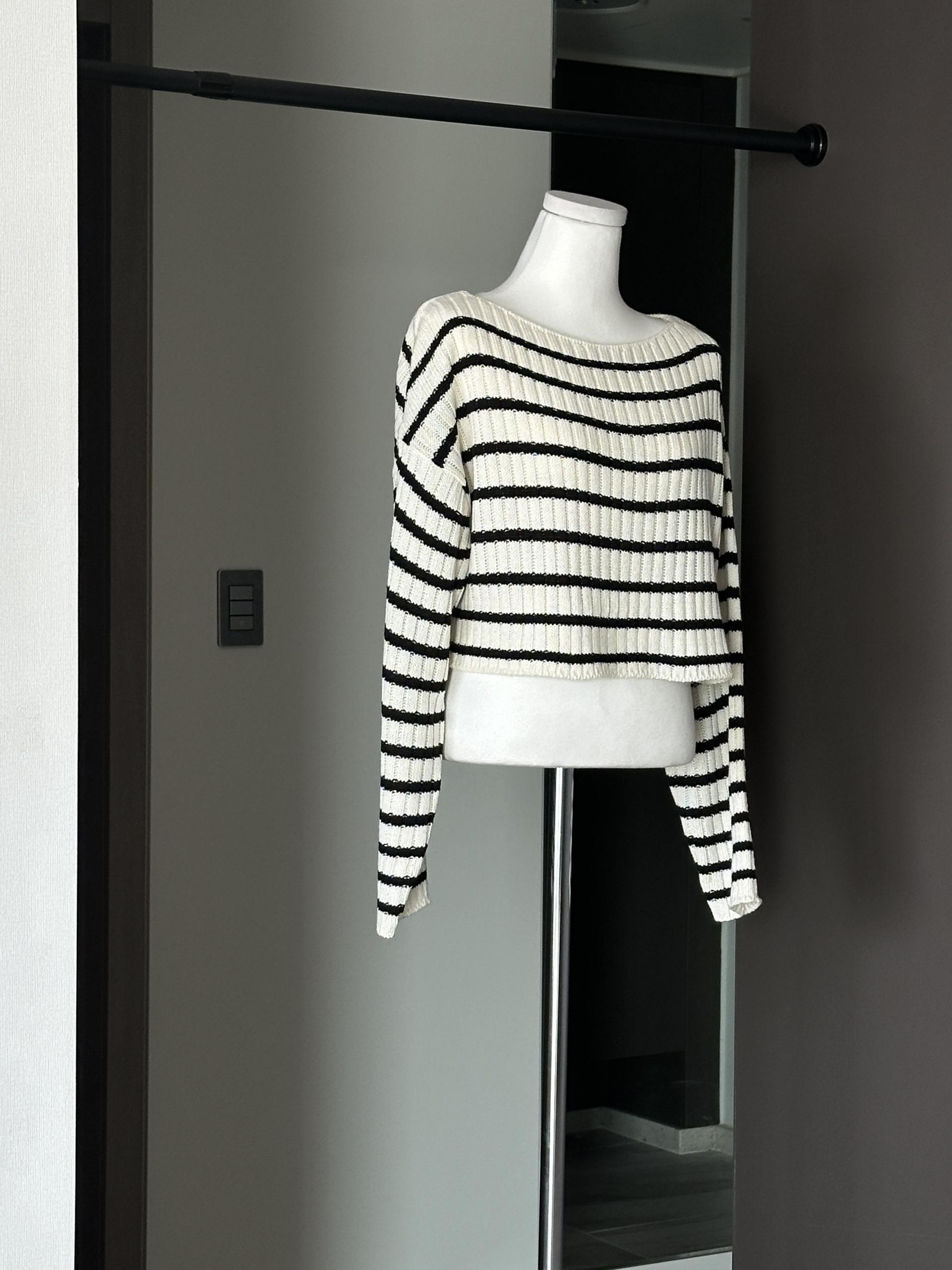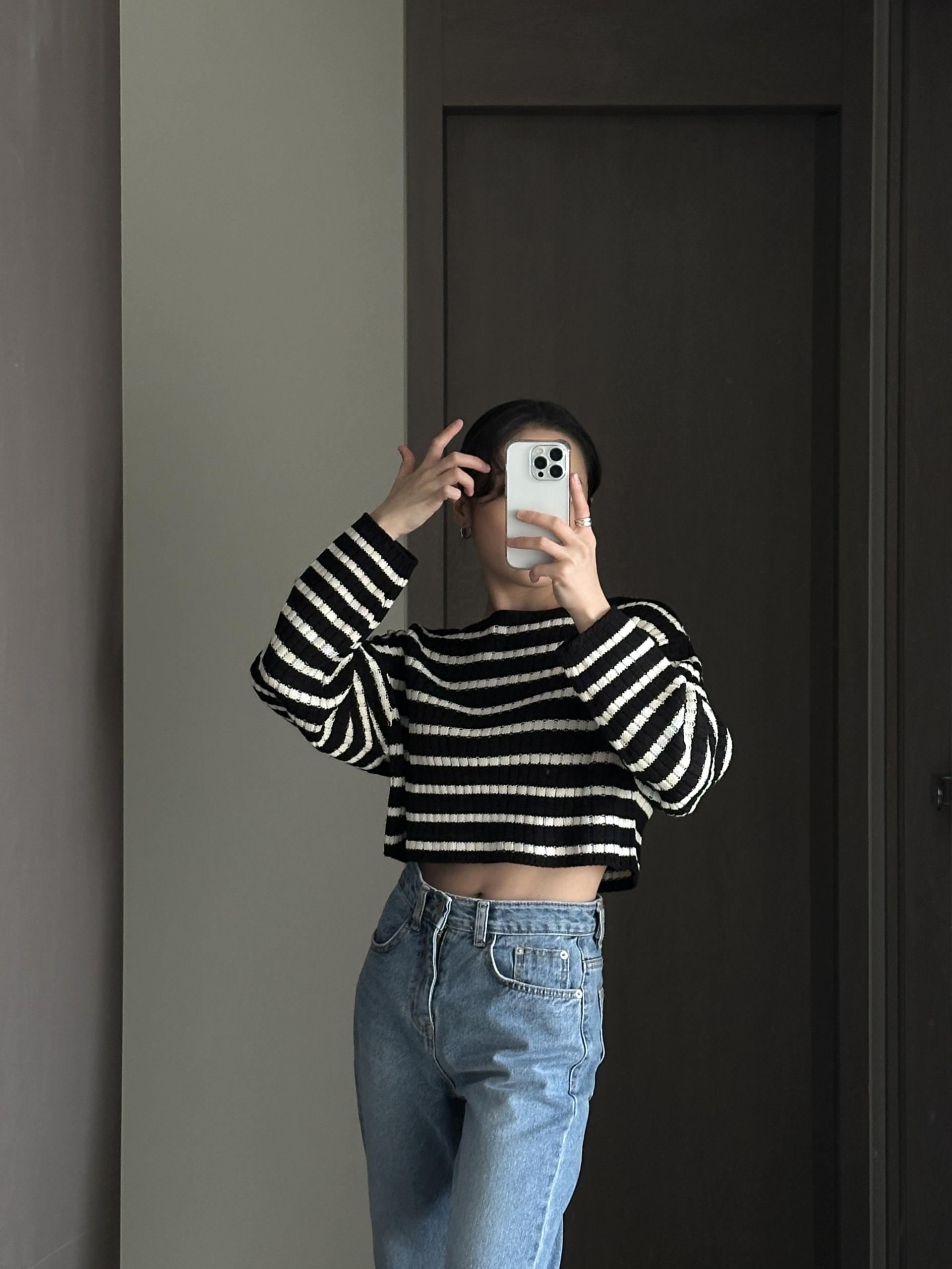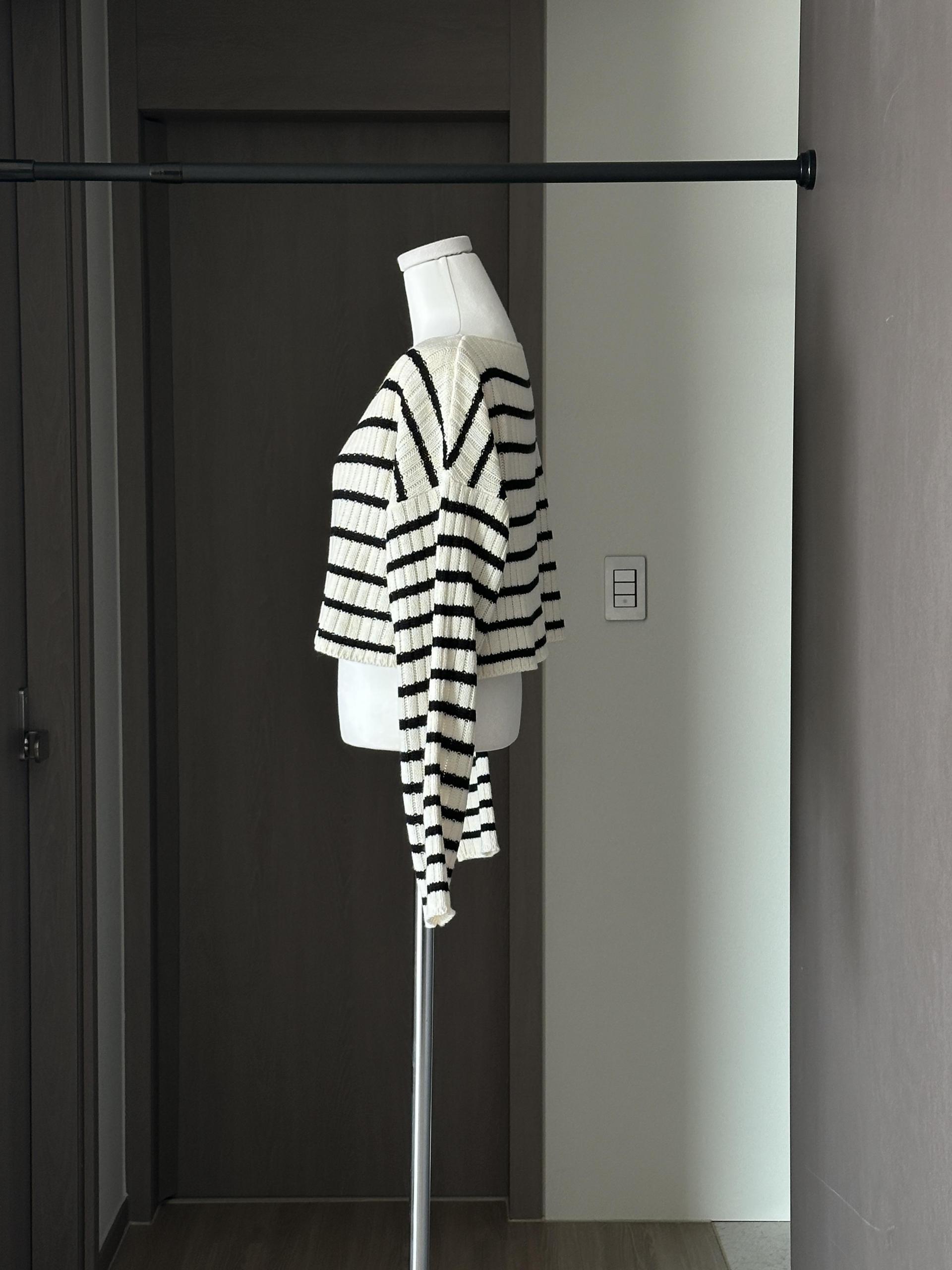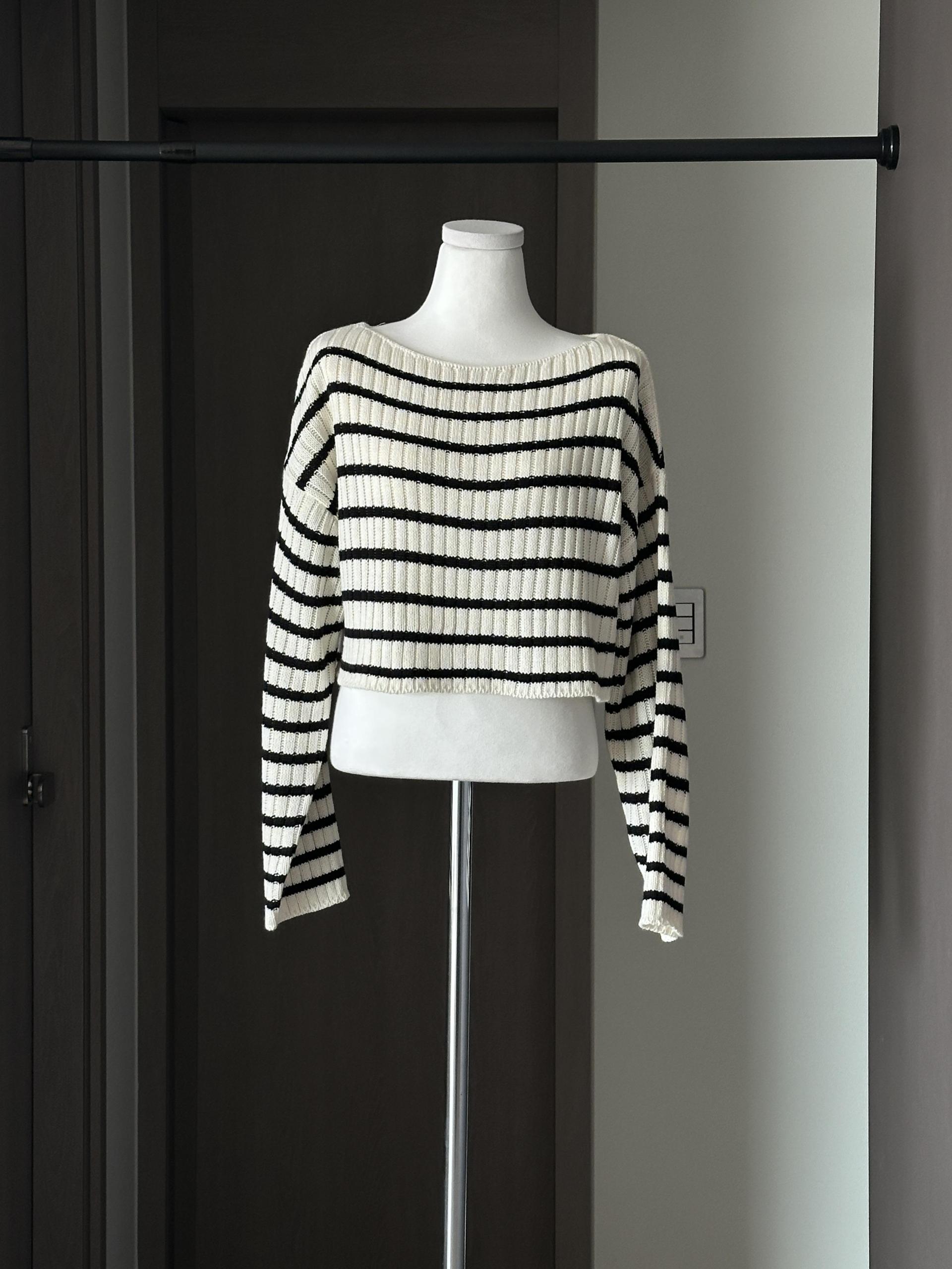 경쾌한 크롭 기장에 스트라이프 패턴을 가진