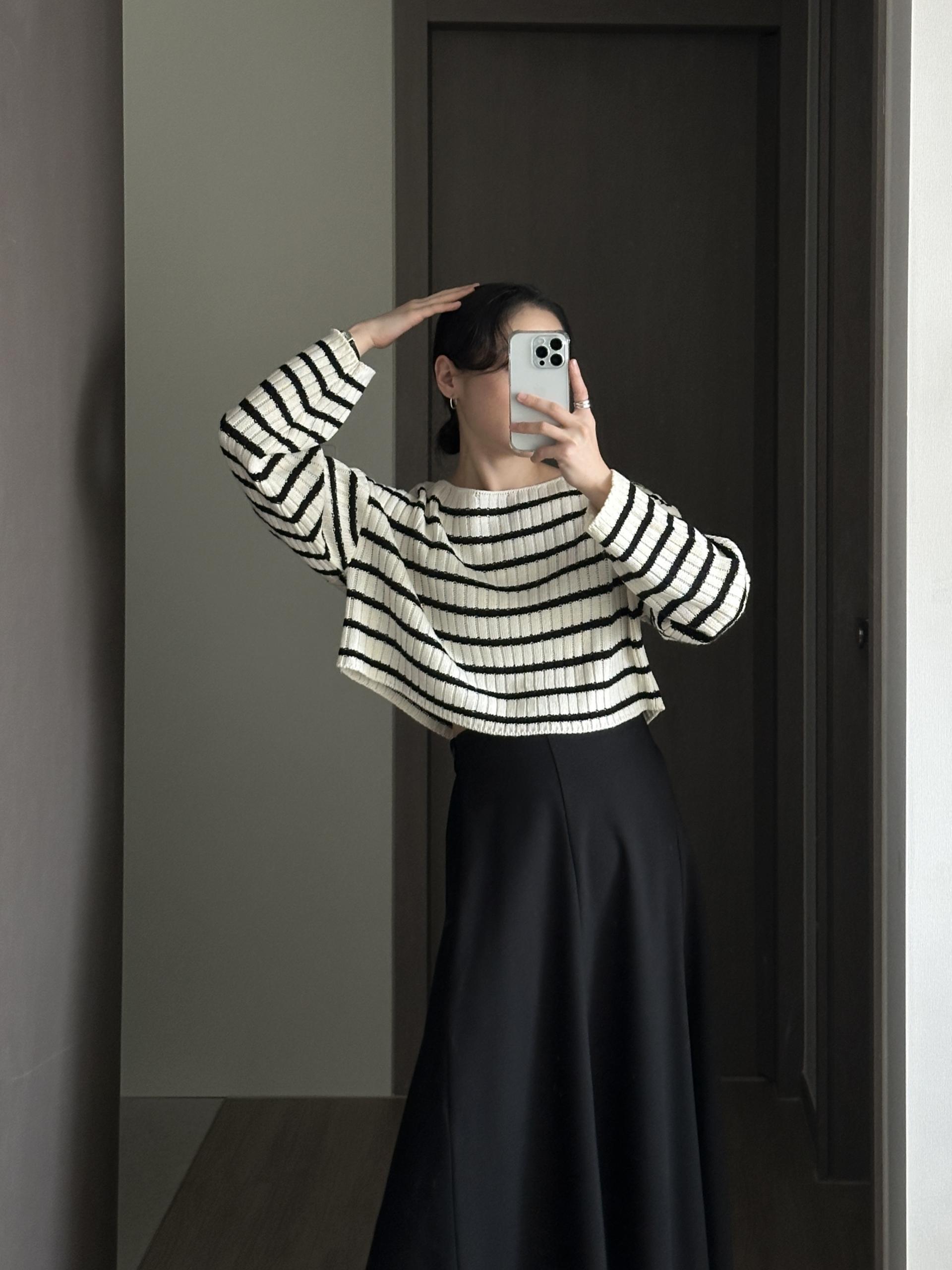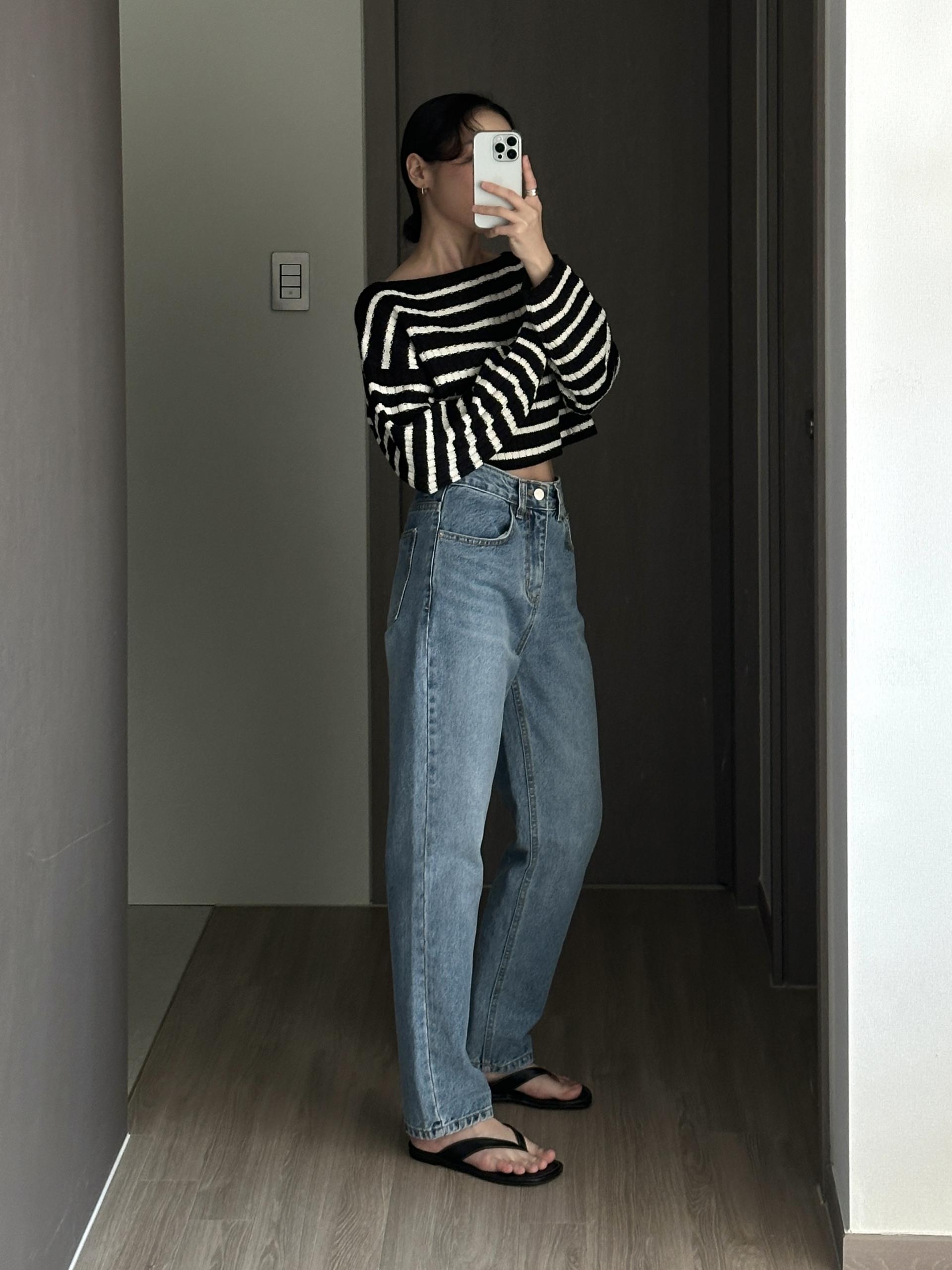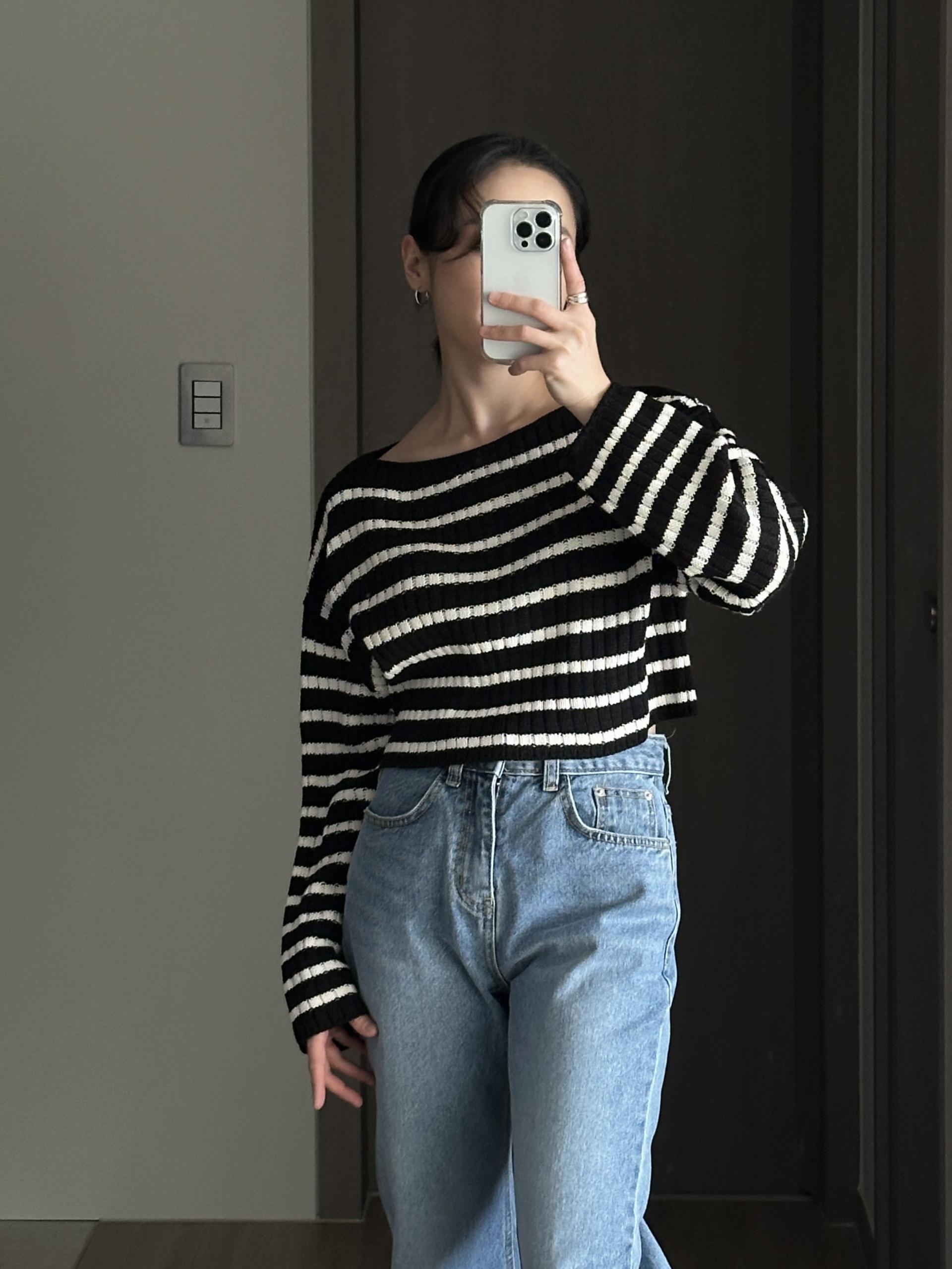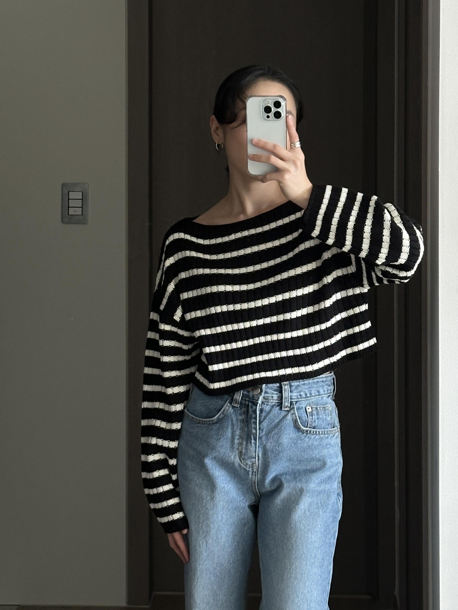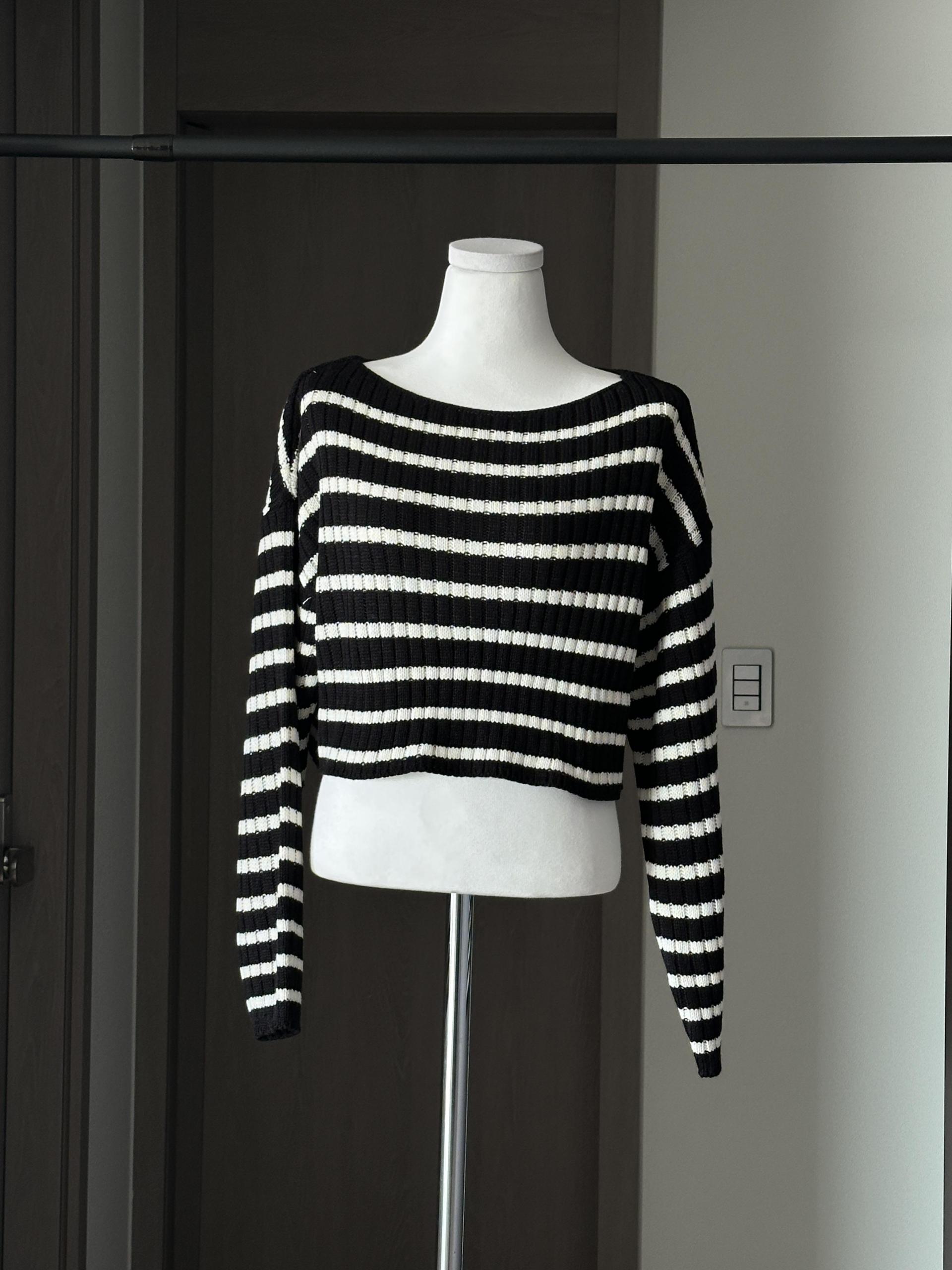 경쾌한 크롭 기장에 스트라이프 패턴을 가진