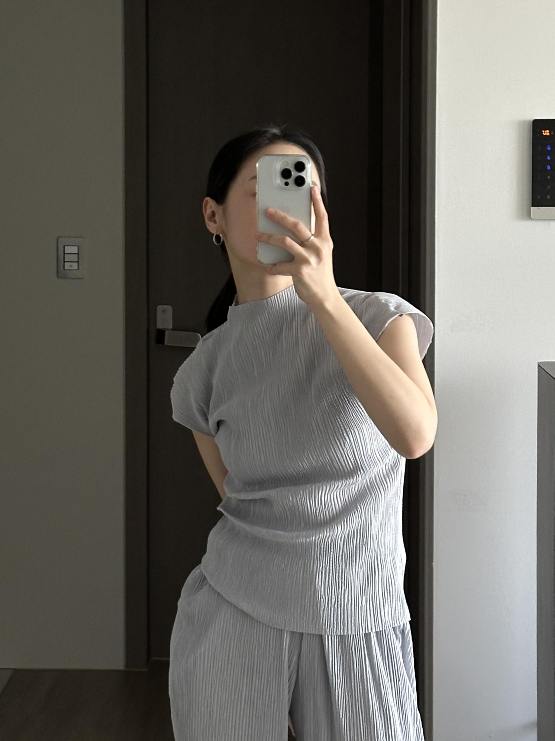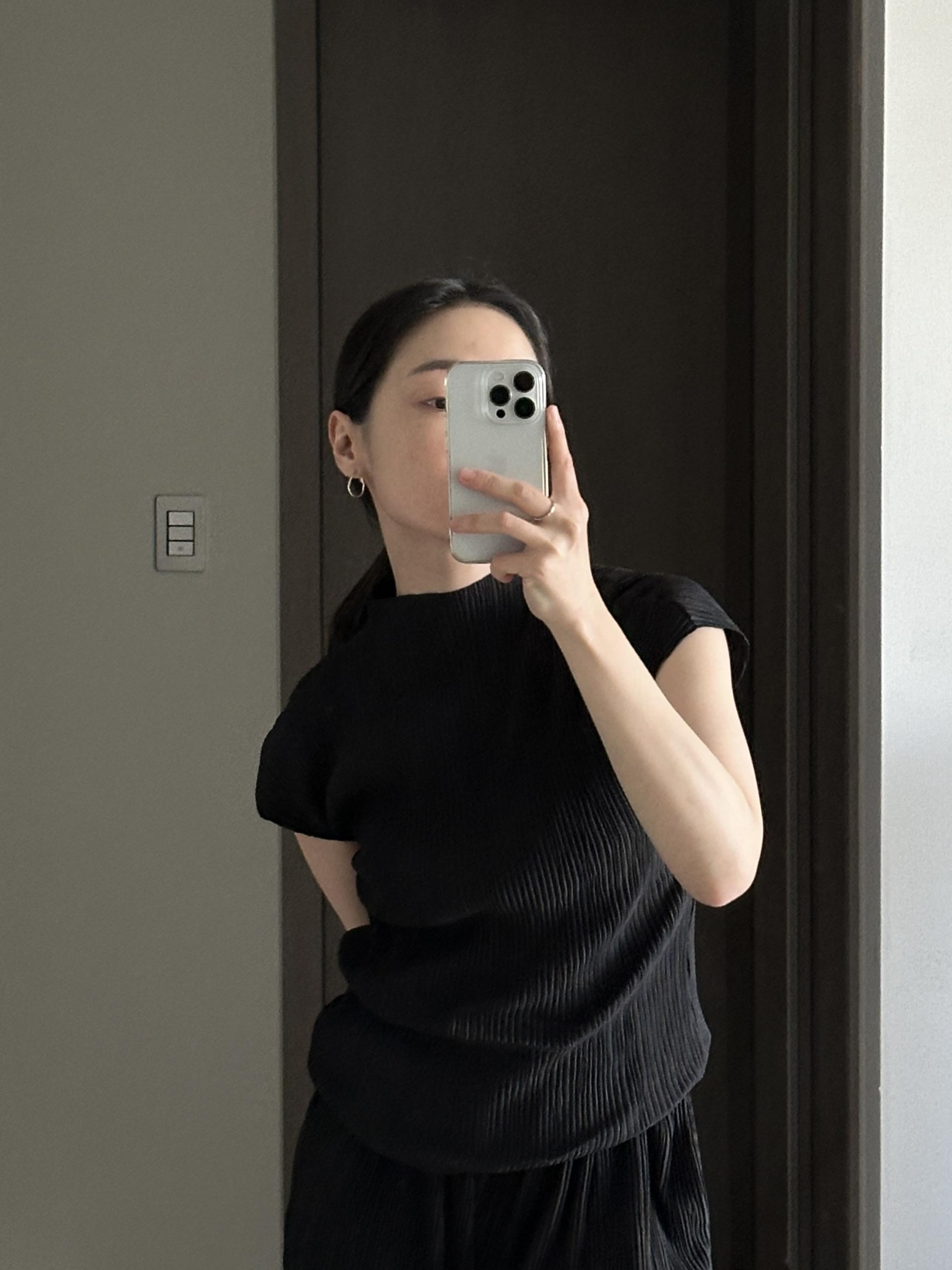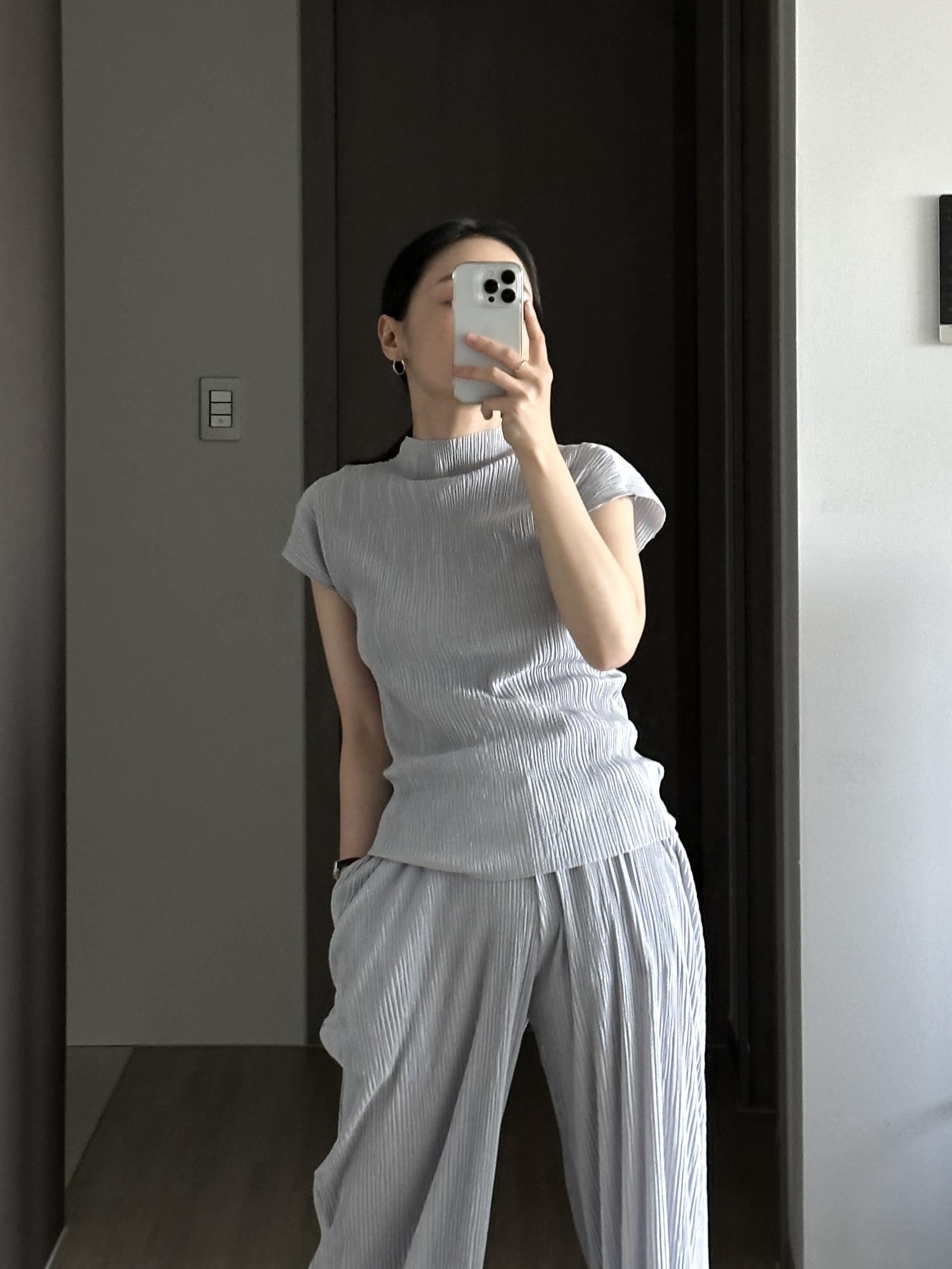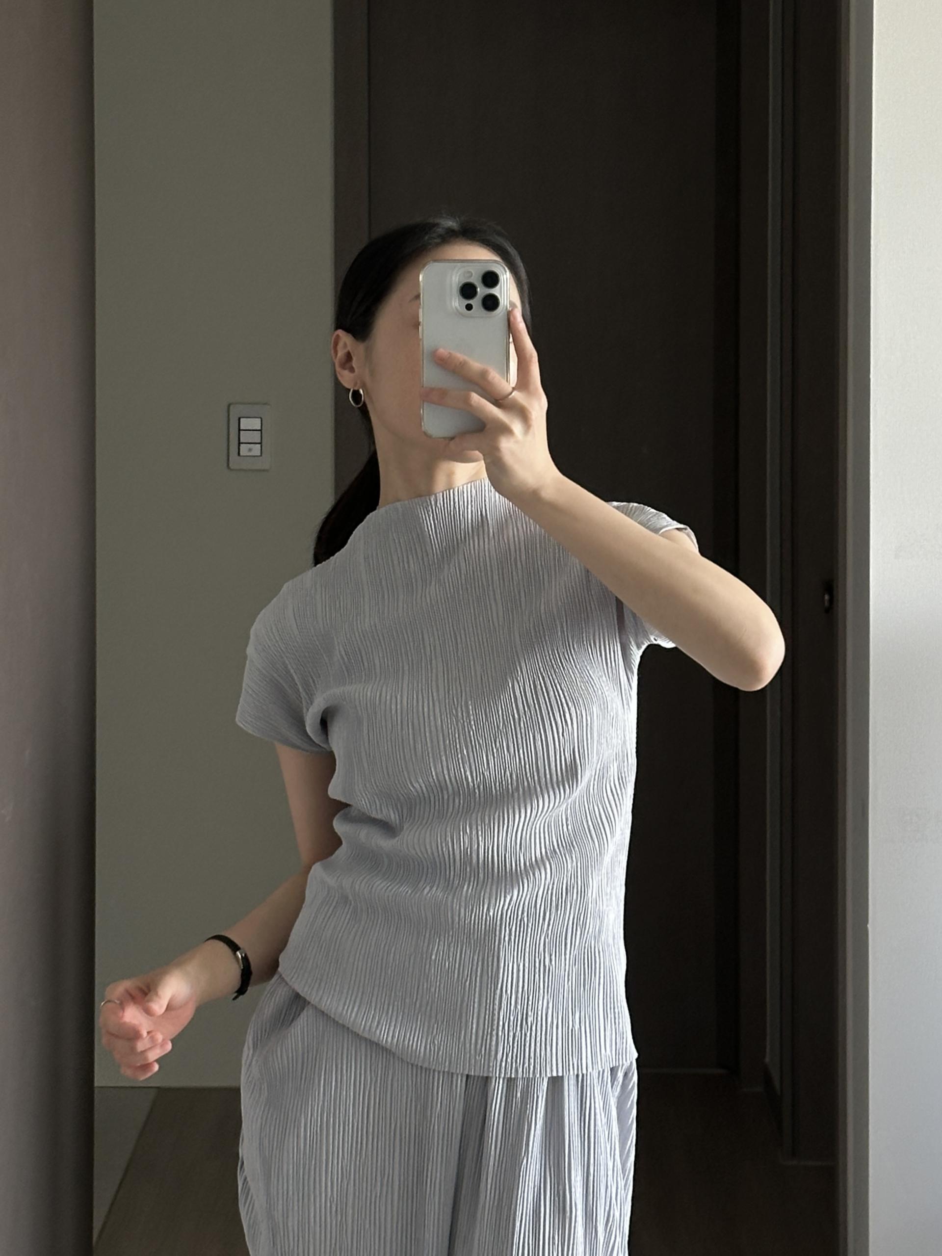 미니멀한 디자인에 소재가 매력적인 플리츠 탑입니다.