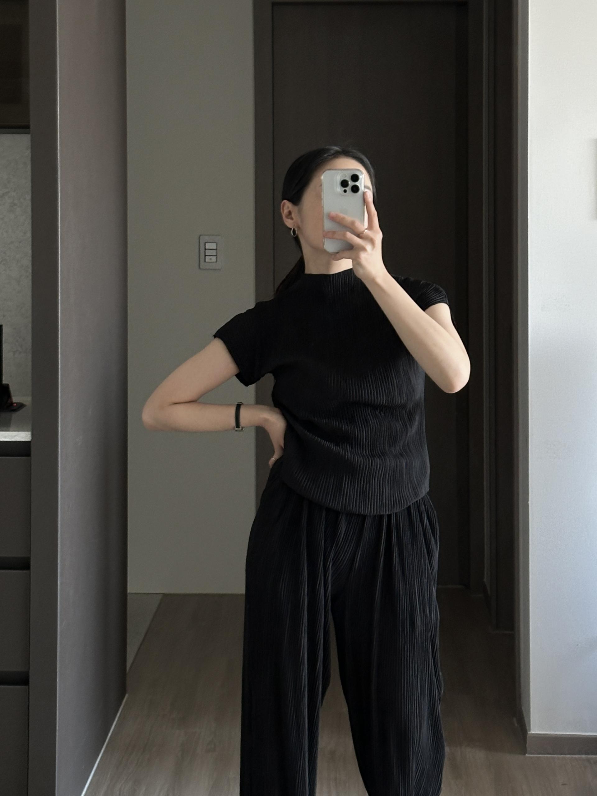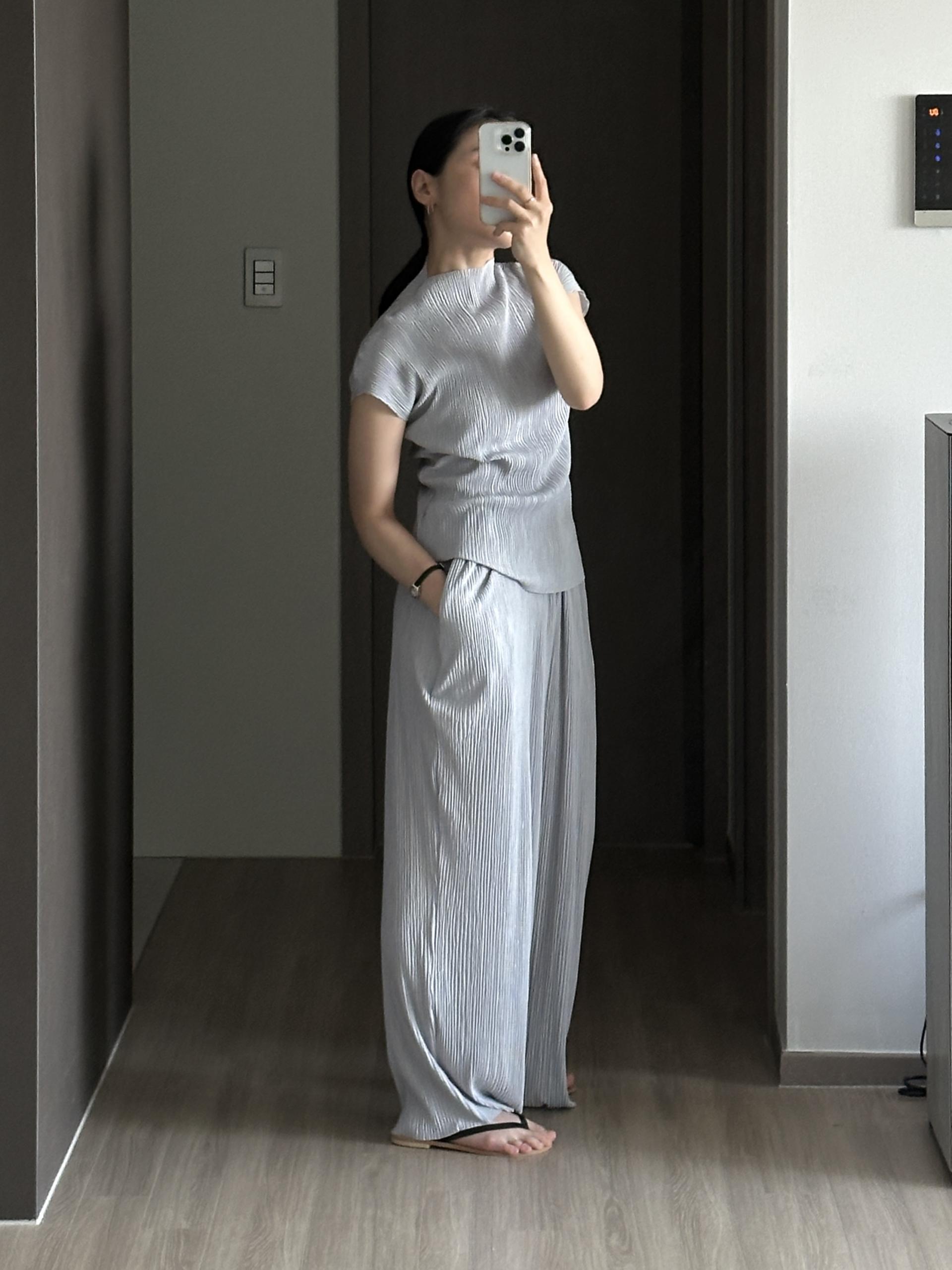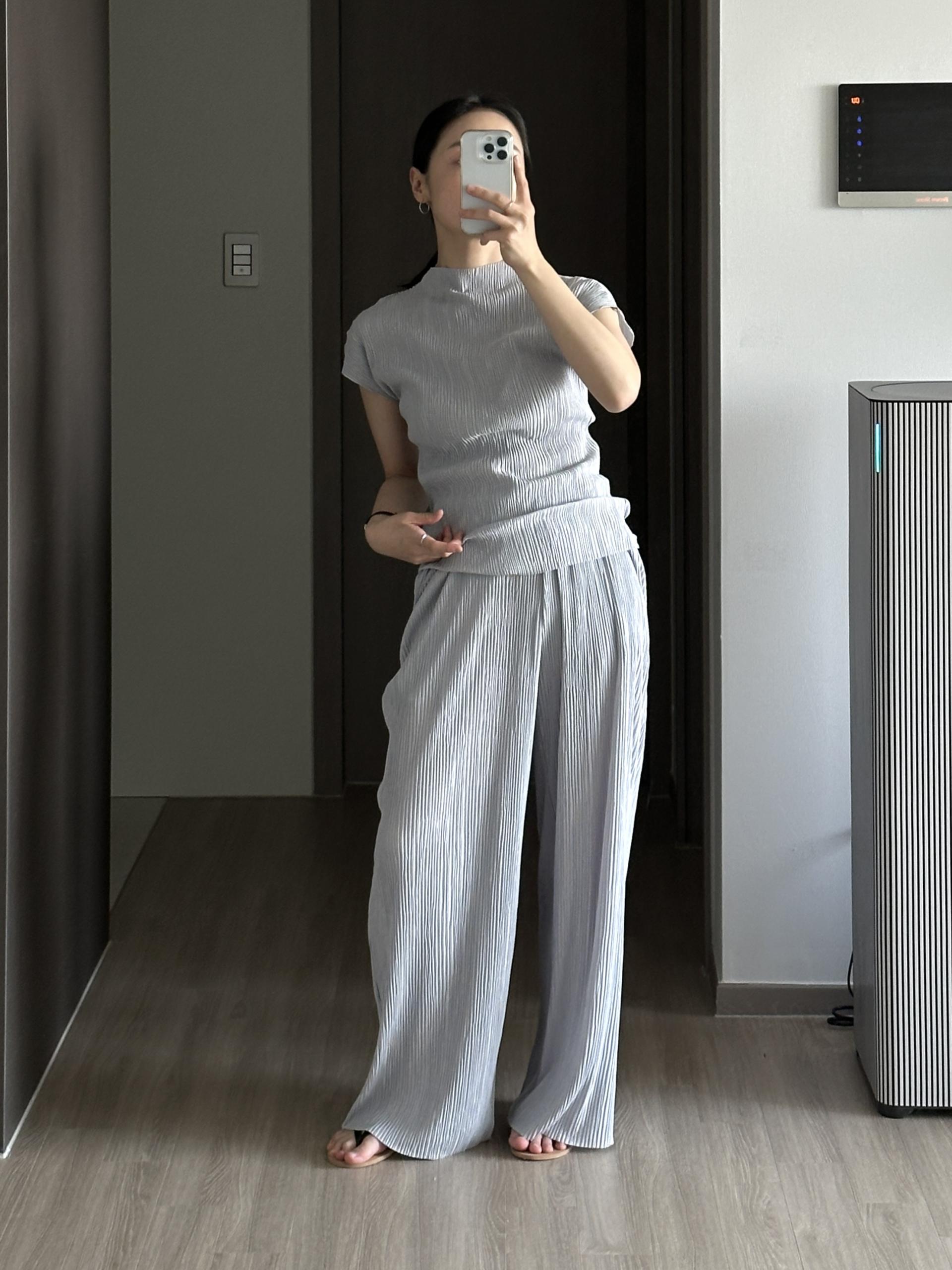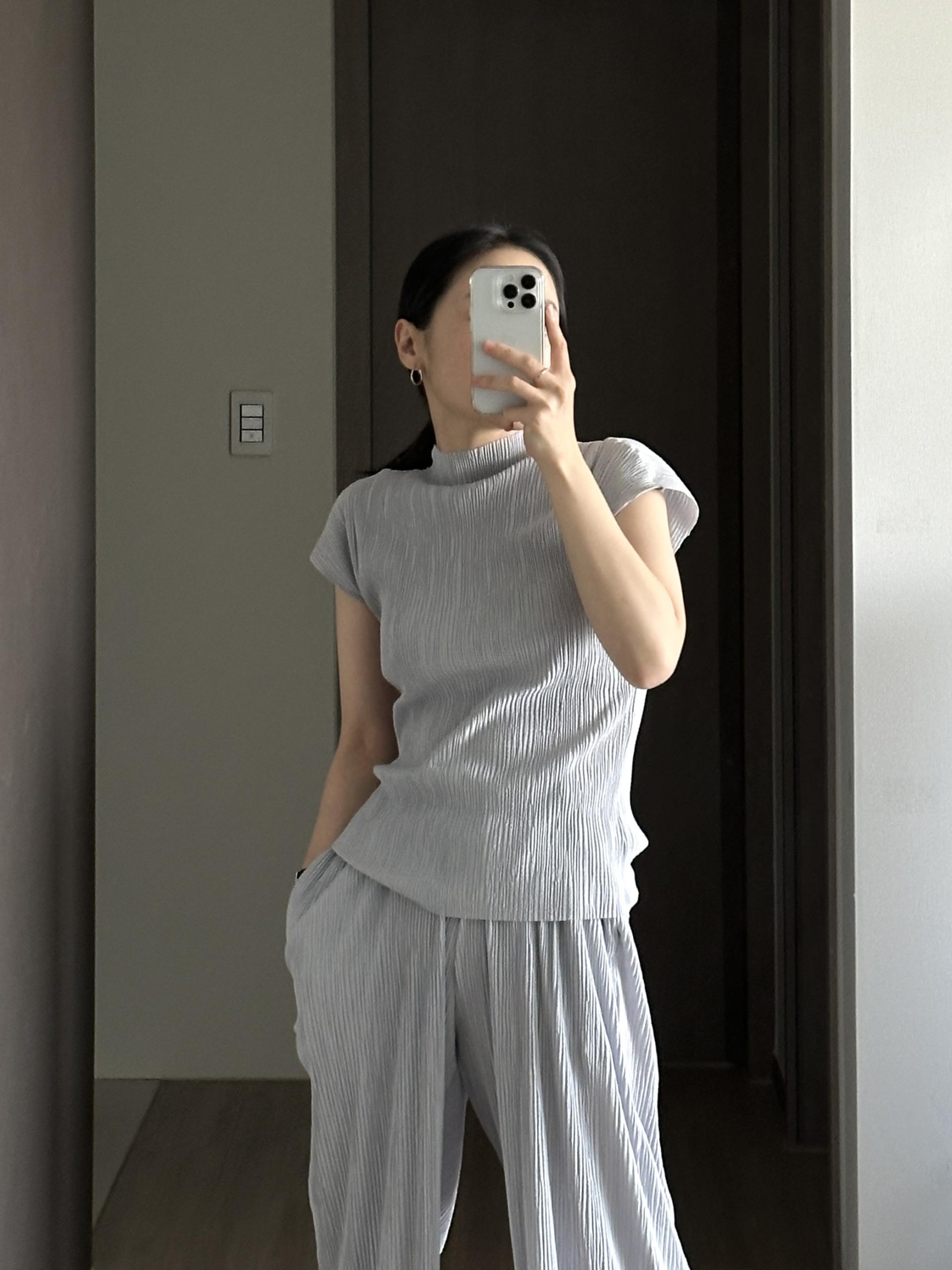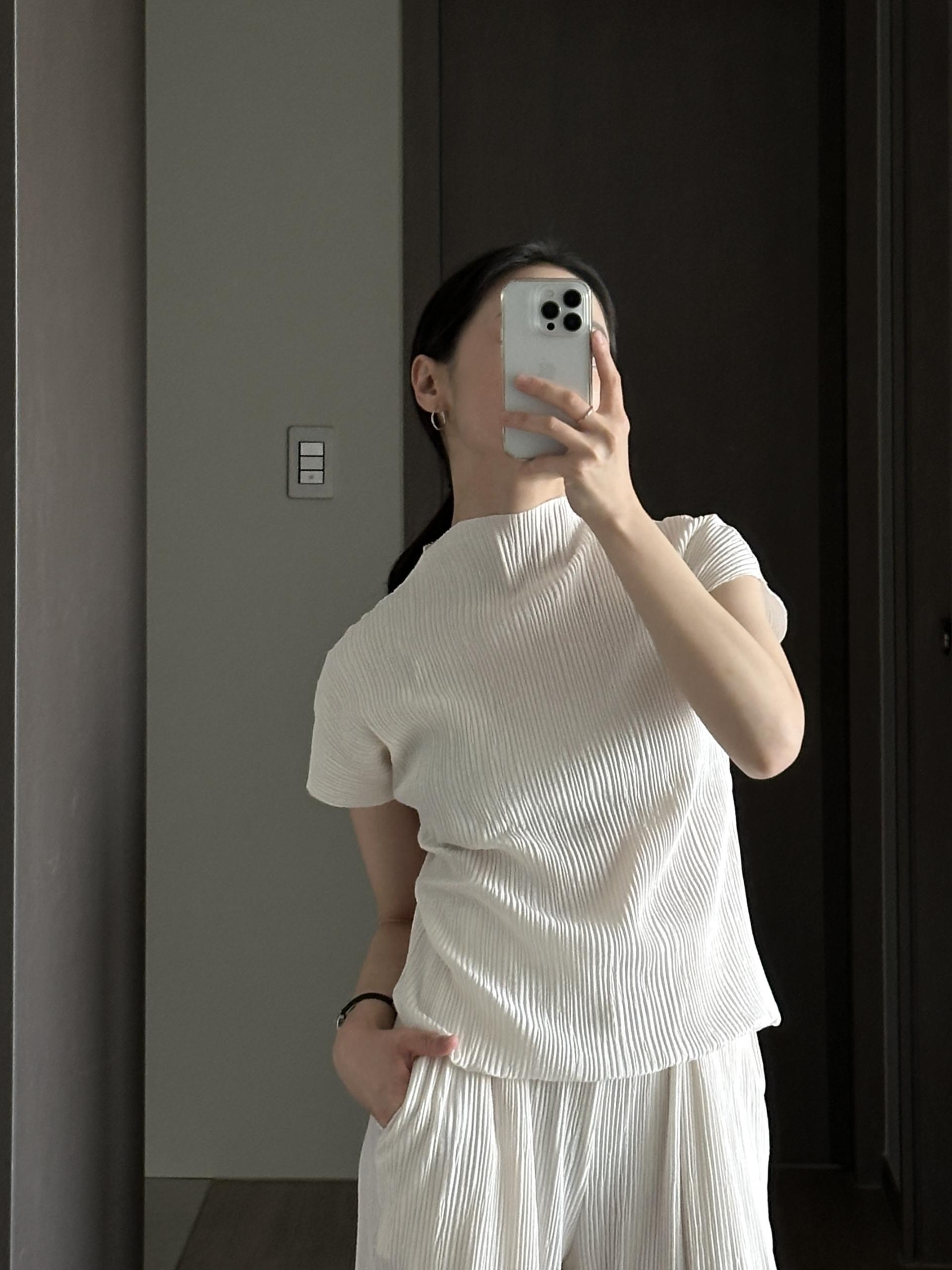 미니멀한 디자인에 소재가 매력적인 플리츠 탑입니다.