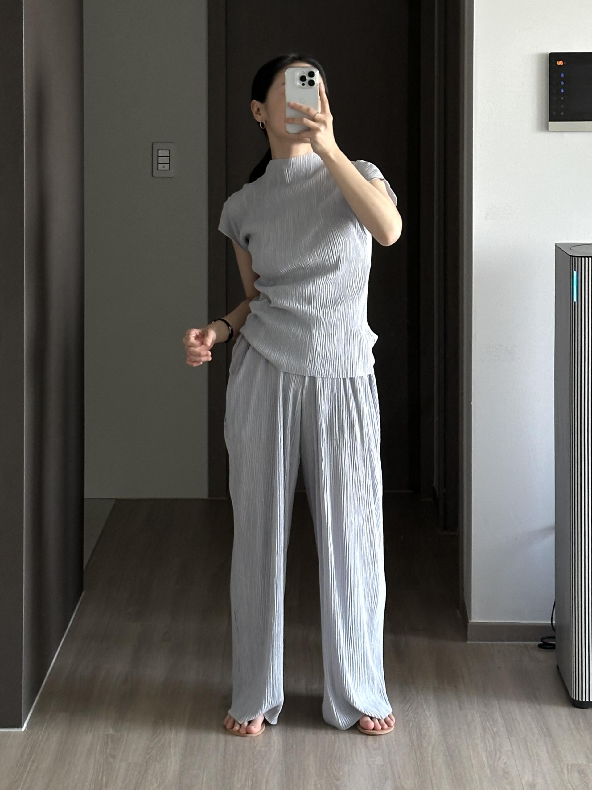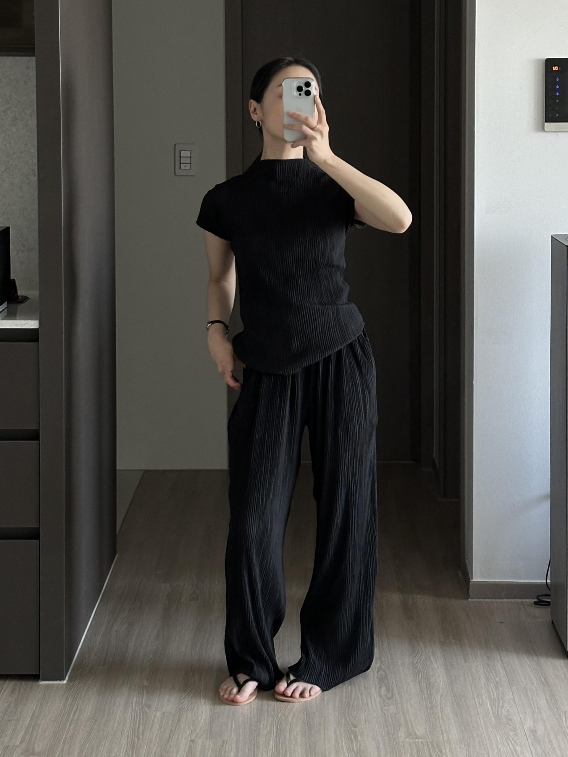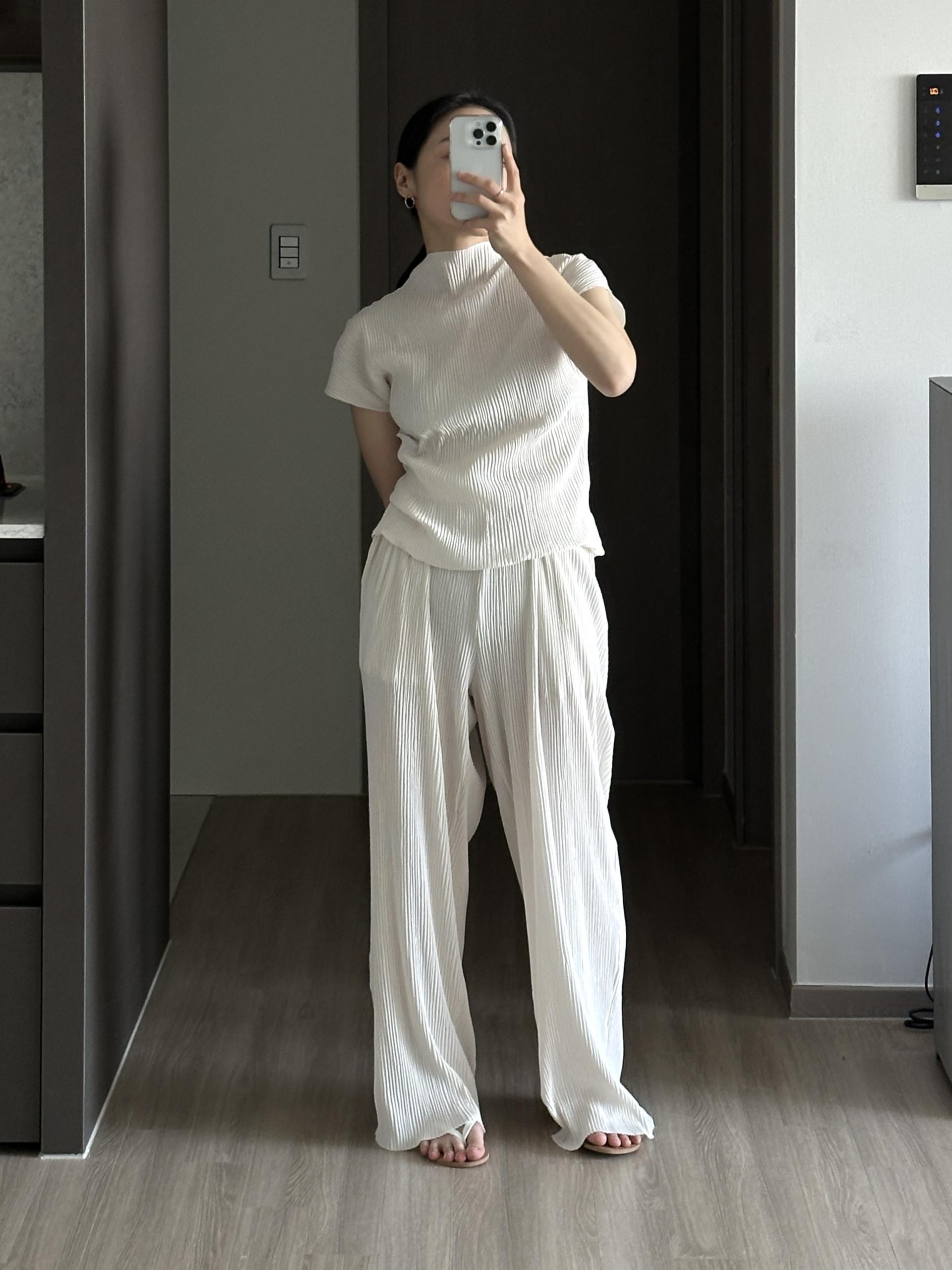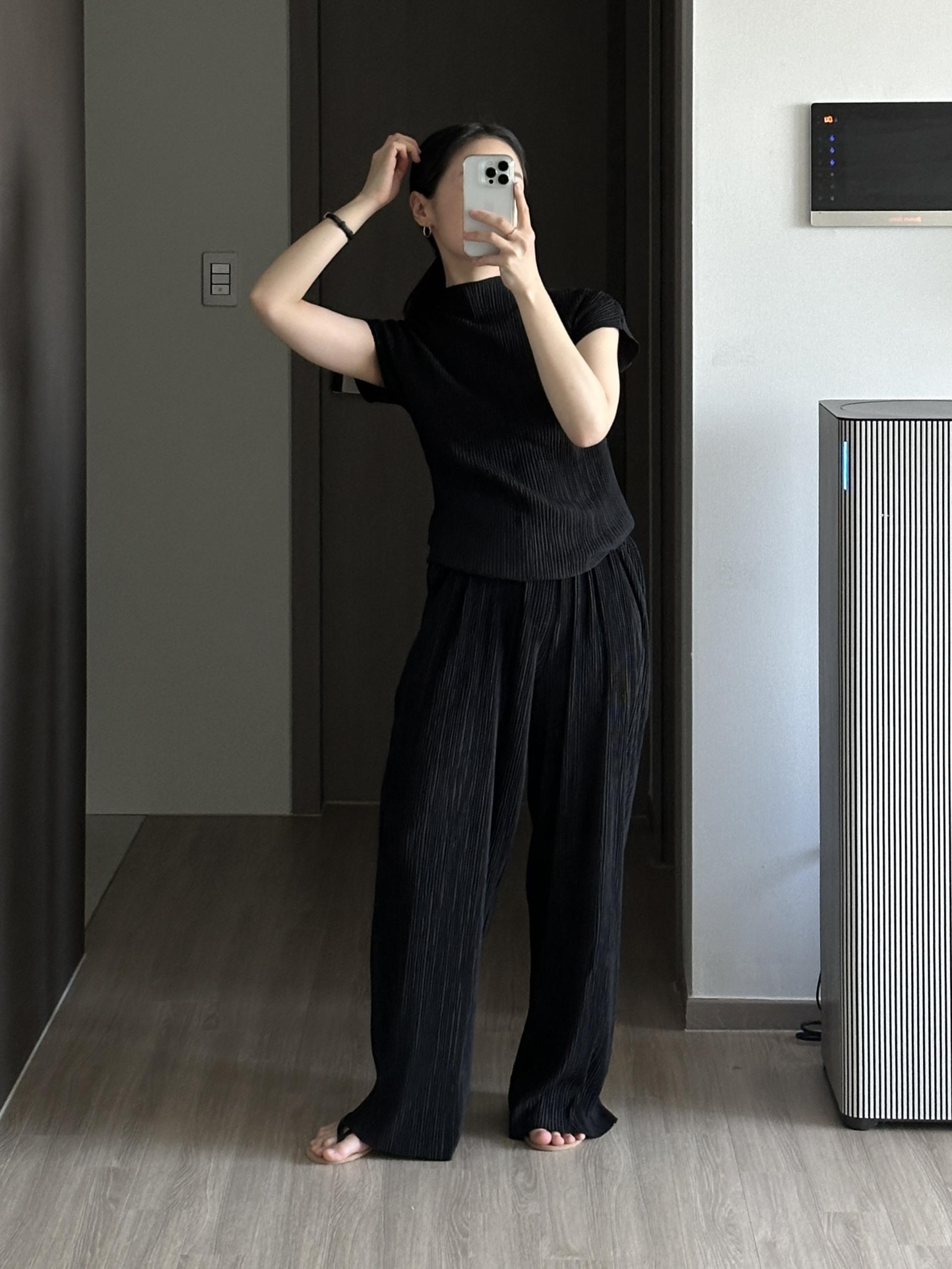 미니멀한 디자인에 소재가 매력적인 플리츠 탑입니다.