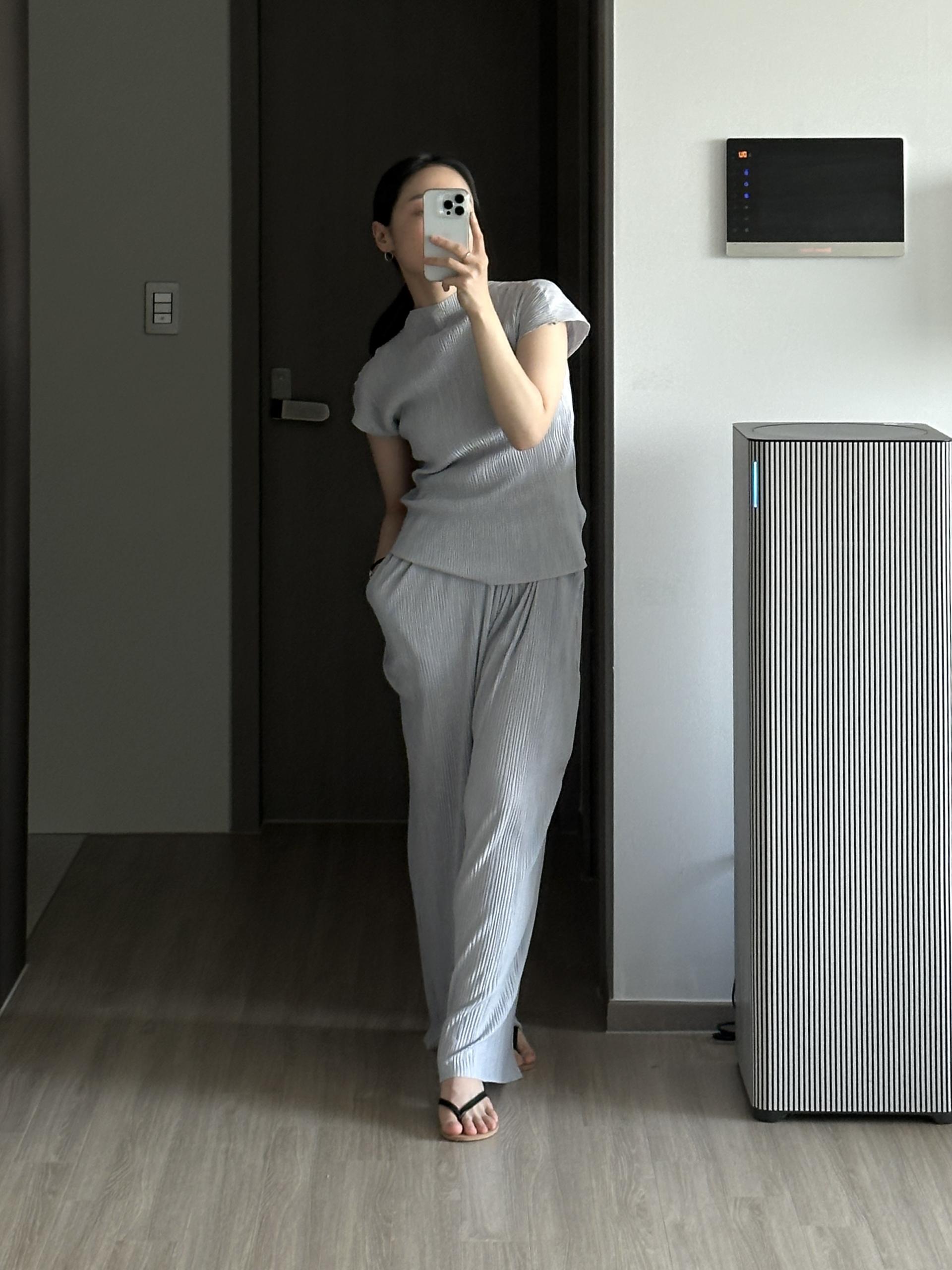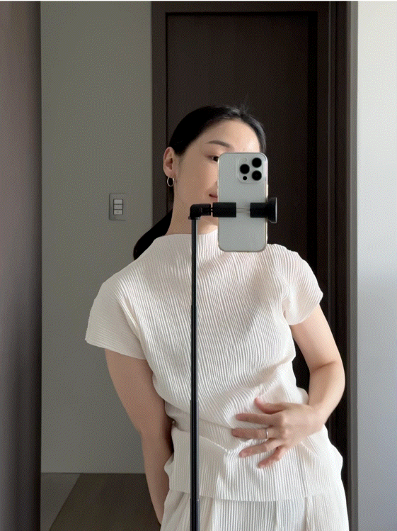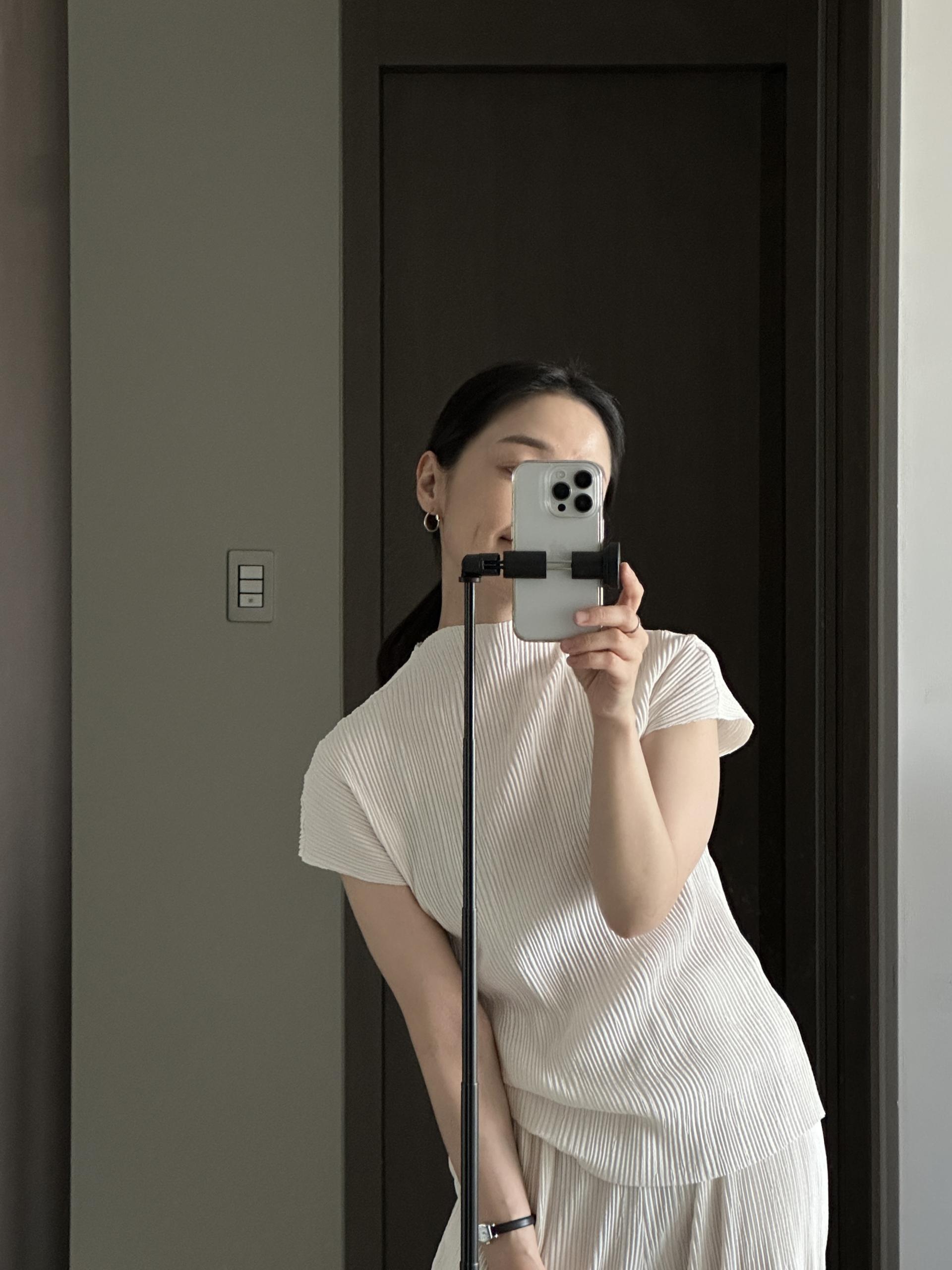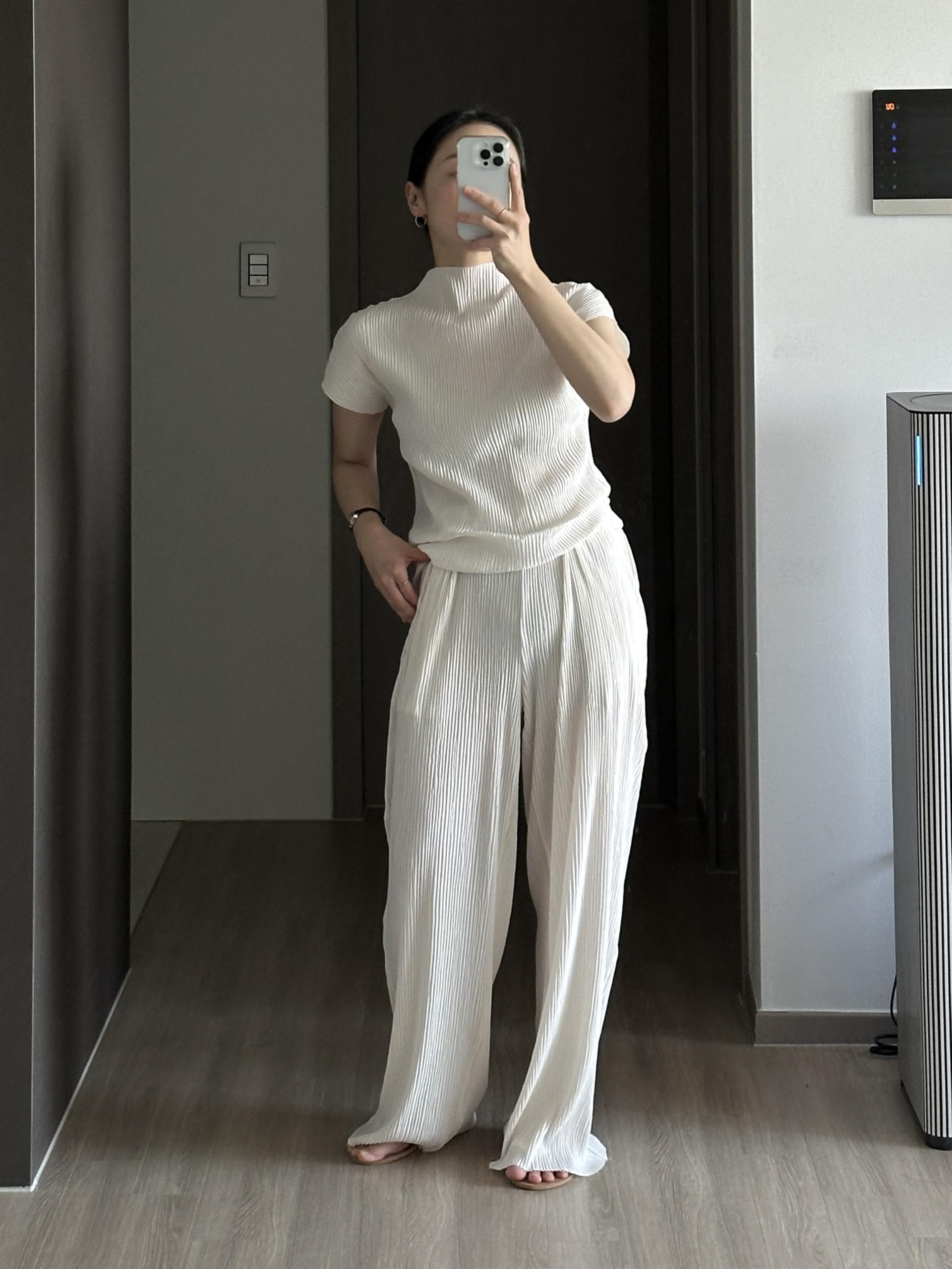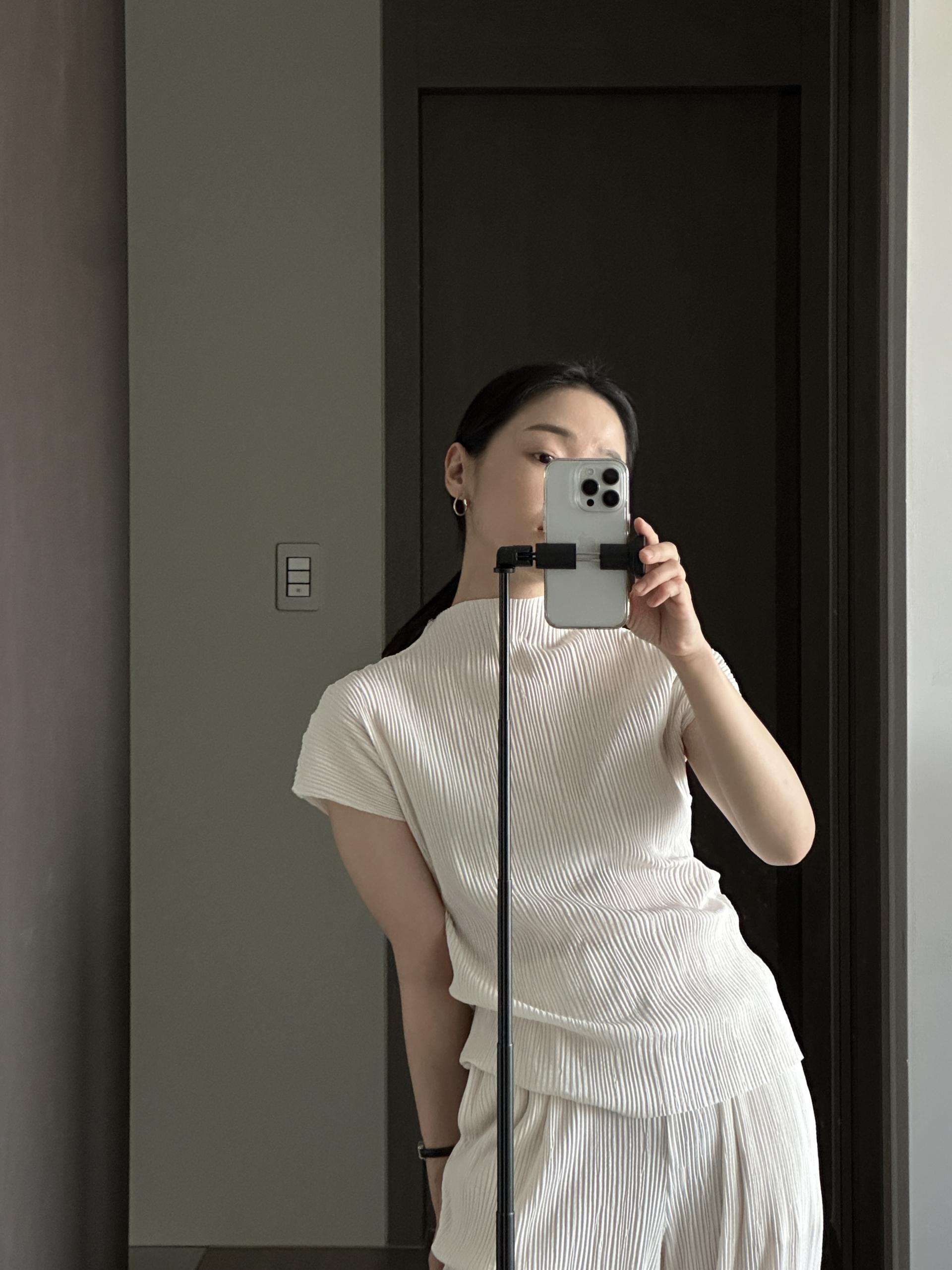 미니멀한 디자인에 소재가 매력적인 플리츠 탑입니다.