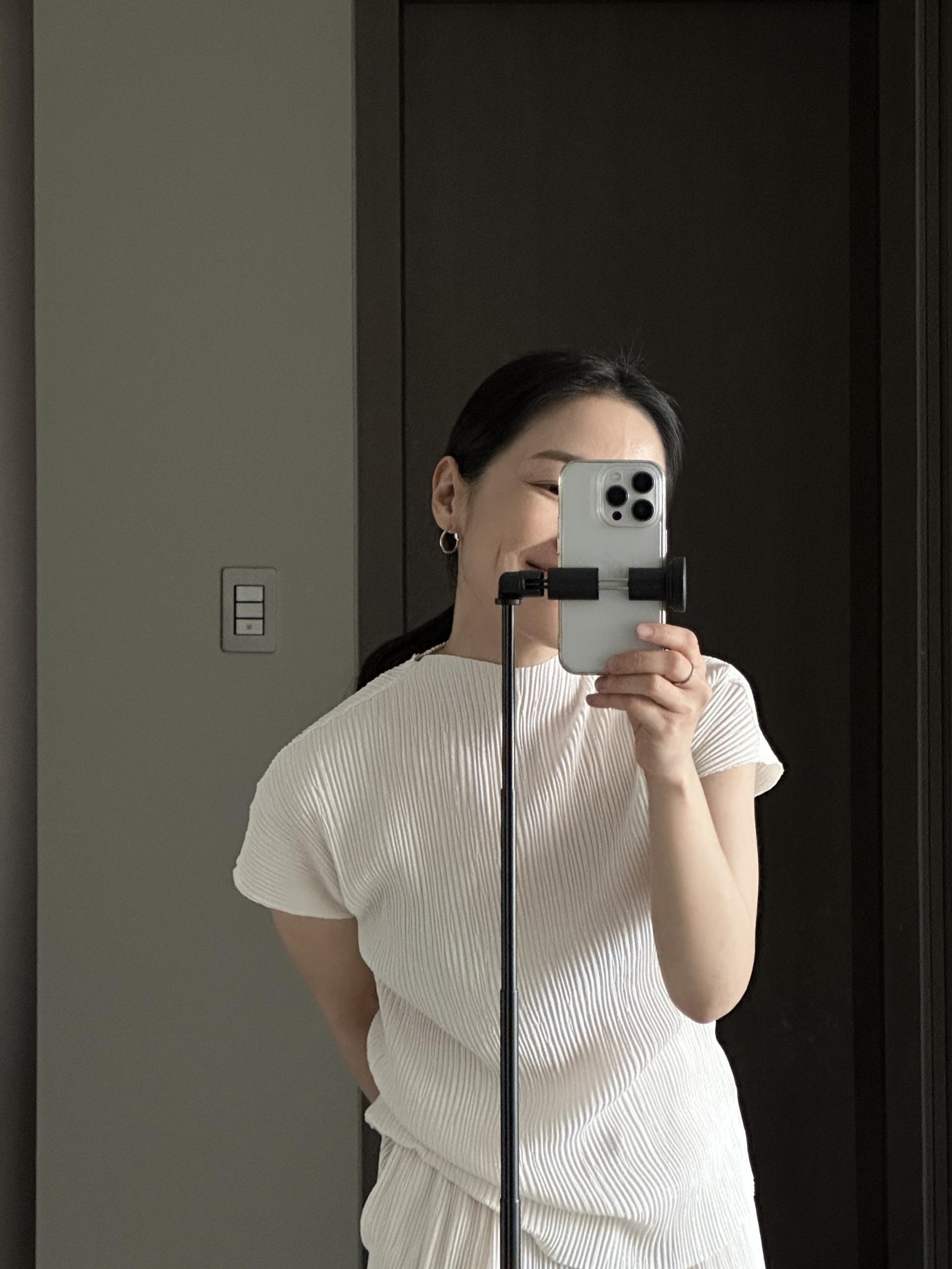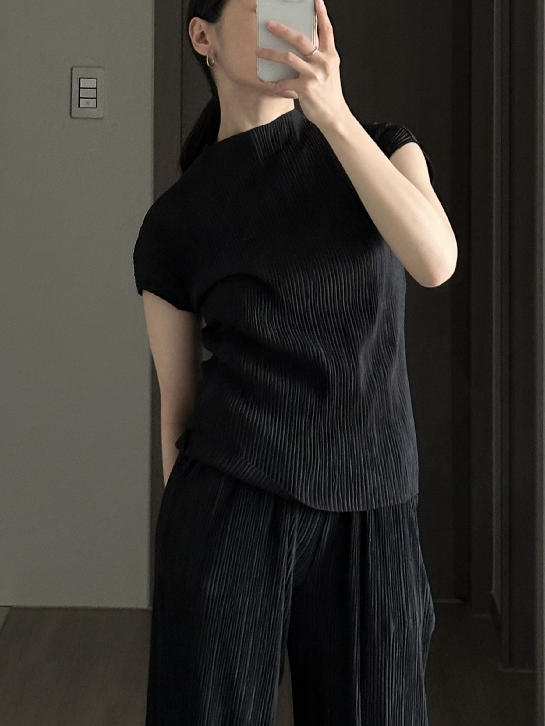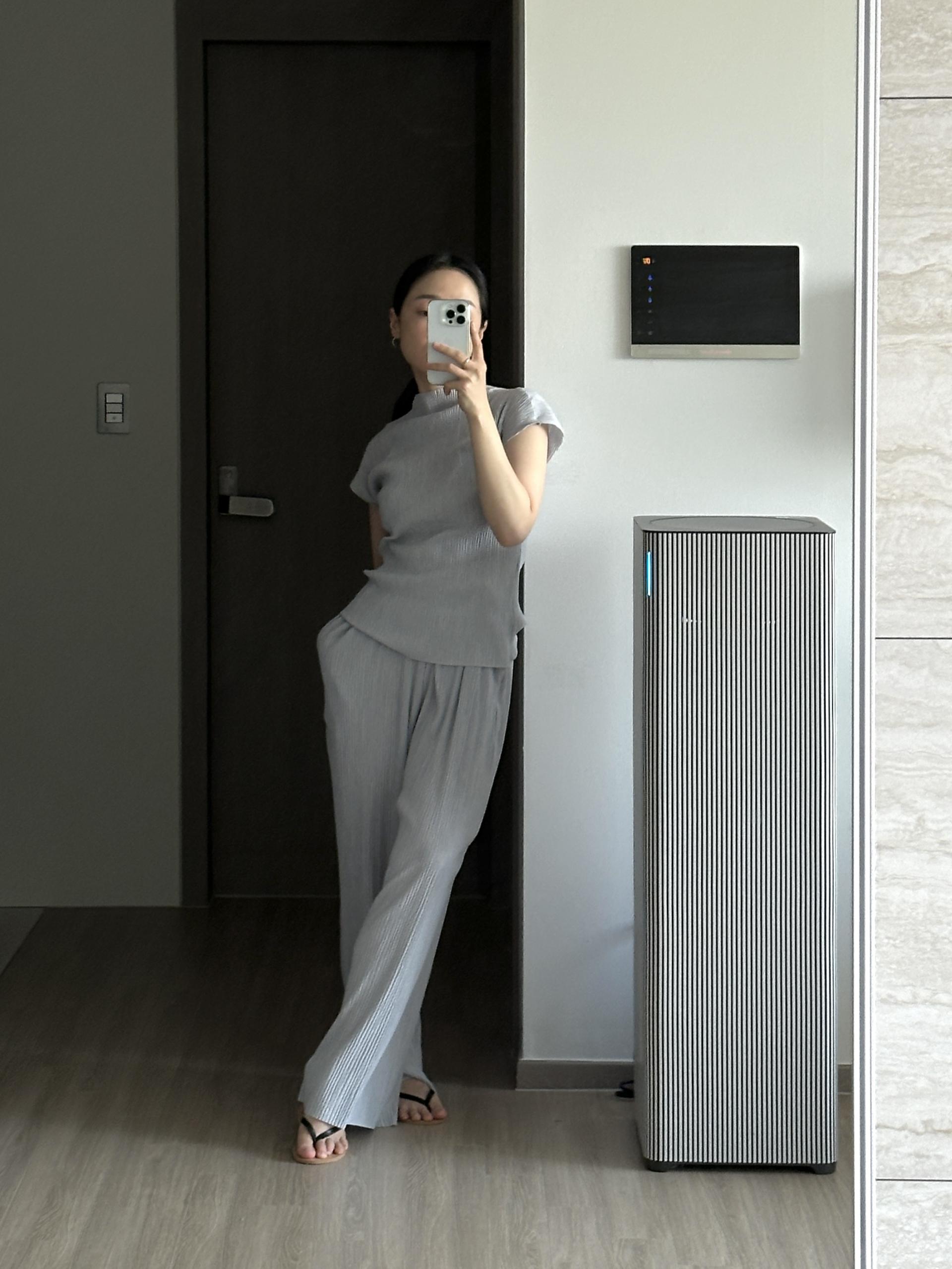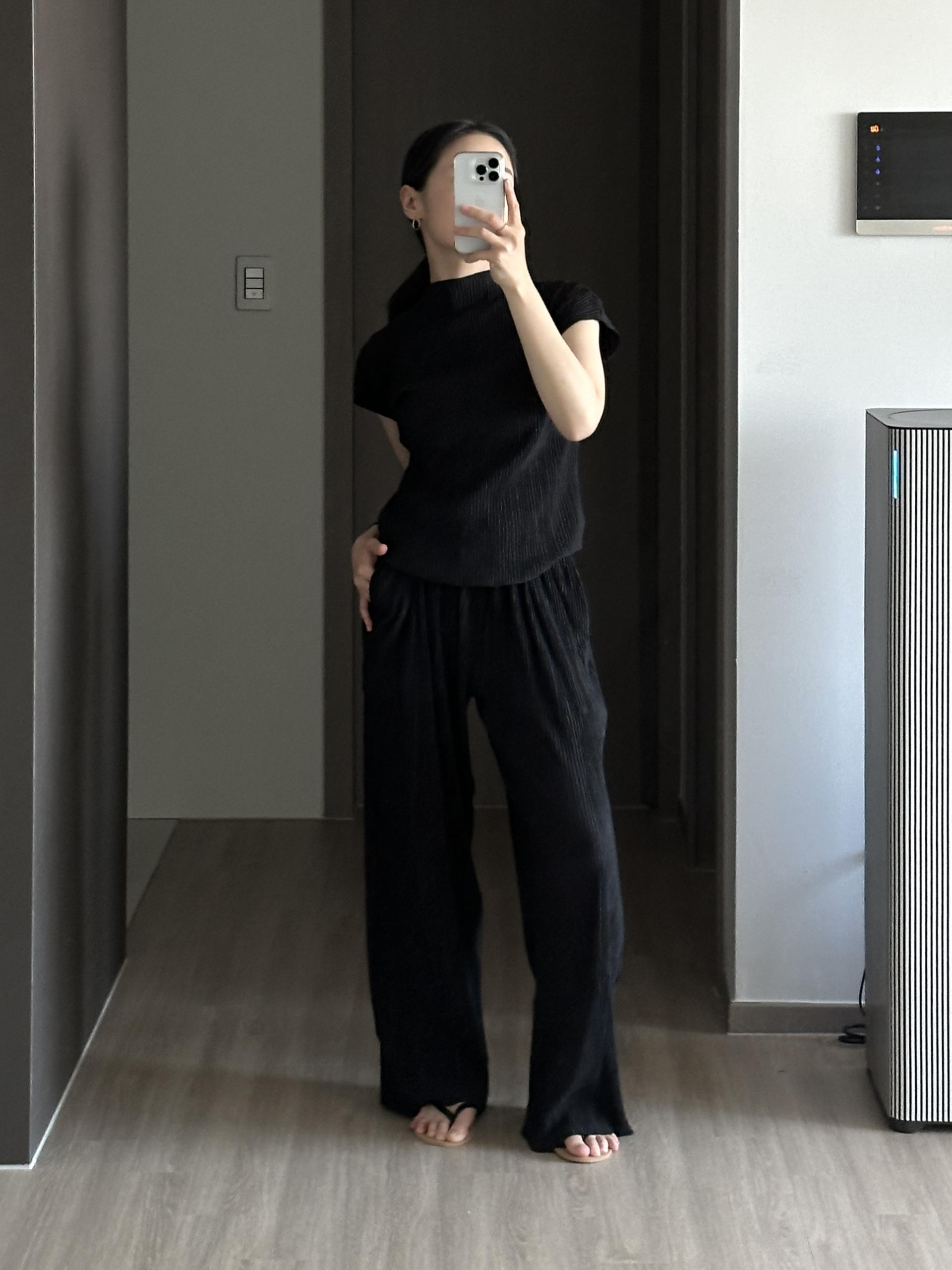 미니멀한 디자인에 소재가 매력적인 플리츠 탑입니다.