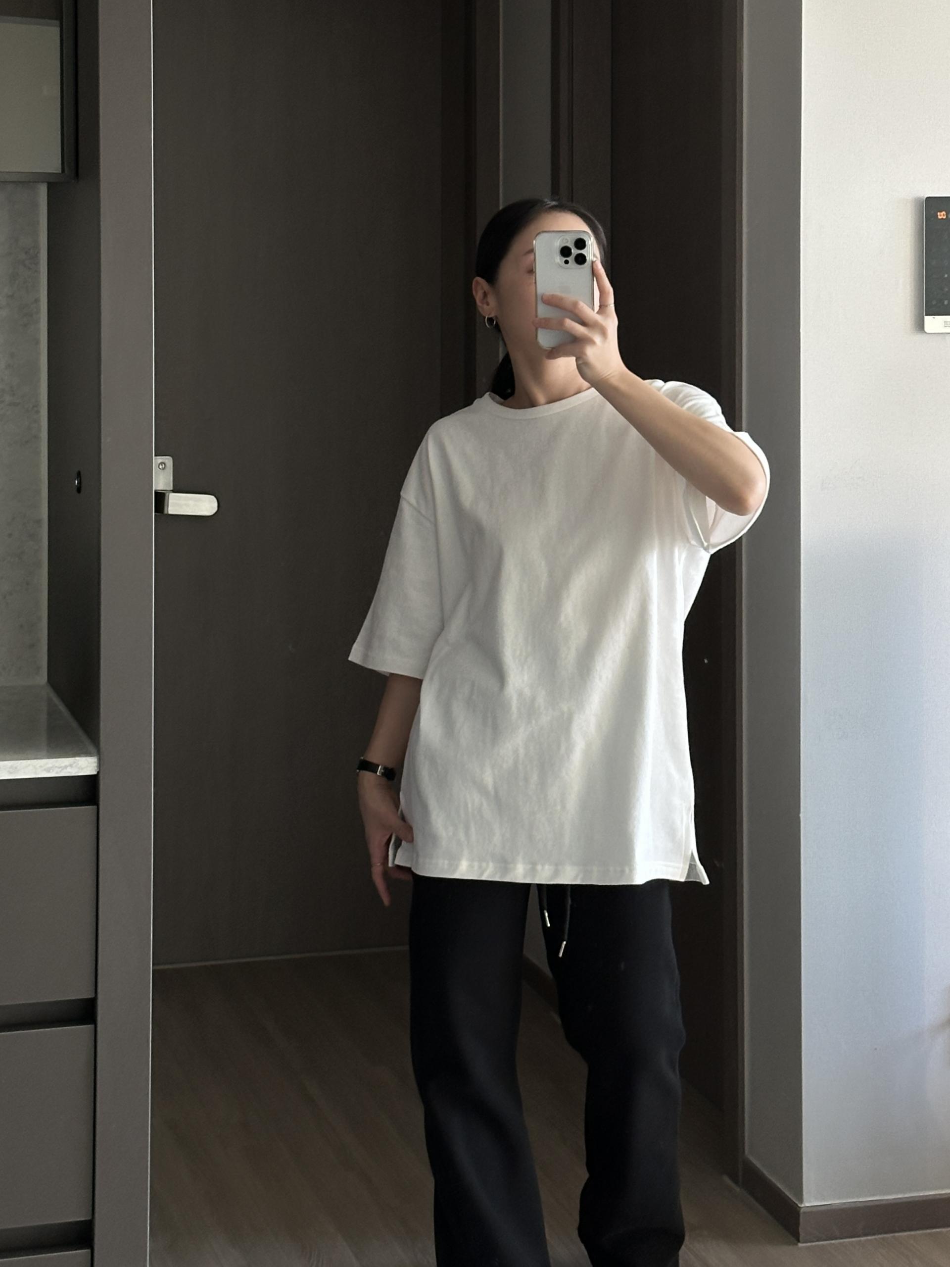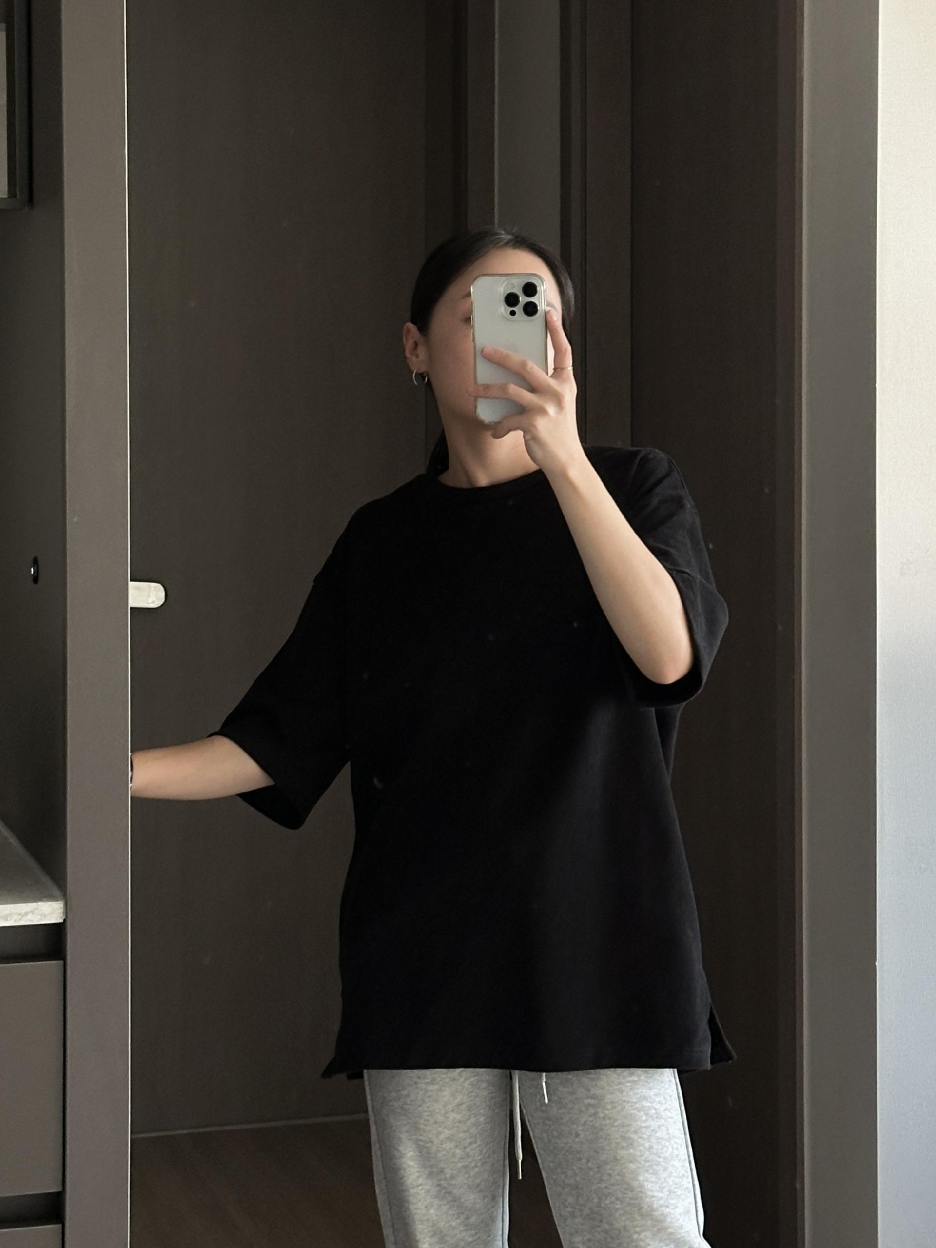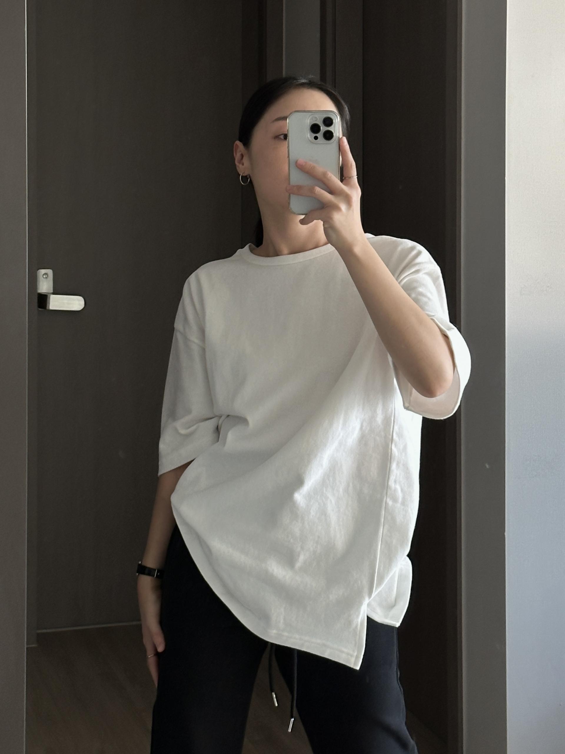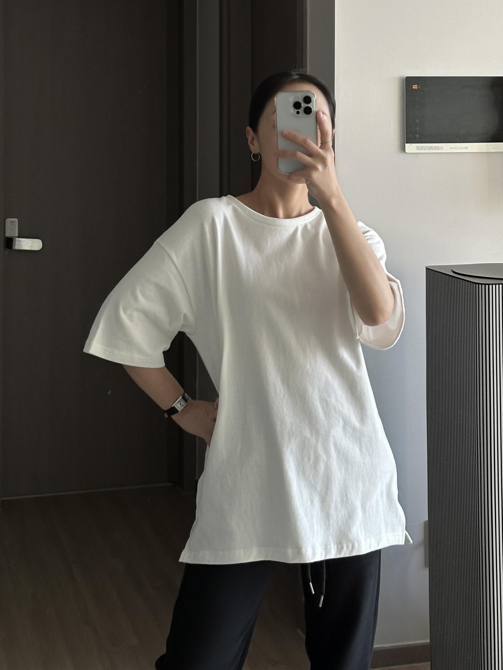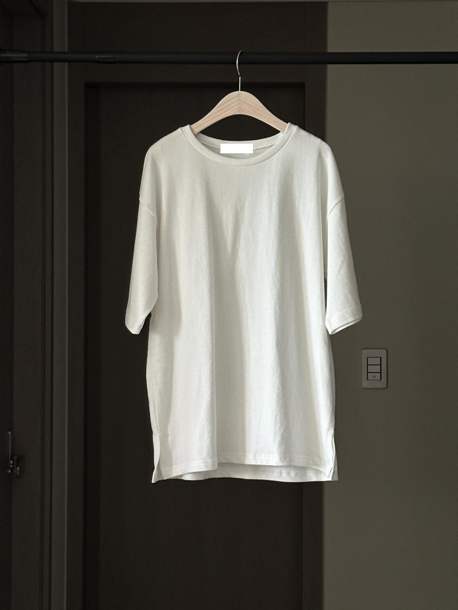 심플한 디자인의 오버핏 피치 기모 티셔츠입니다.