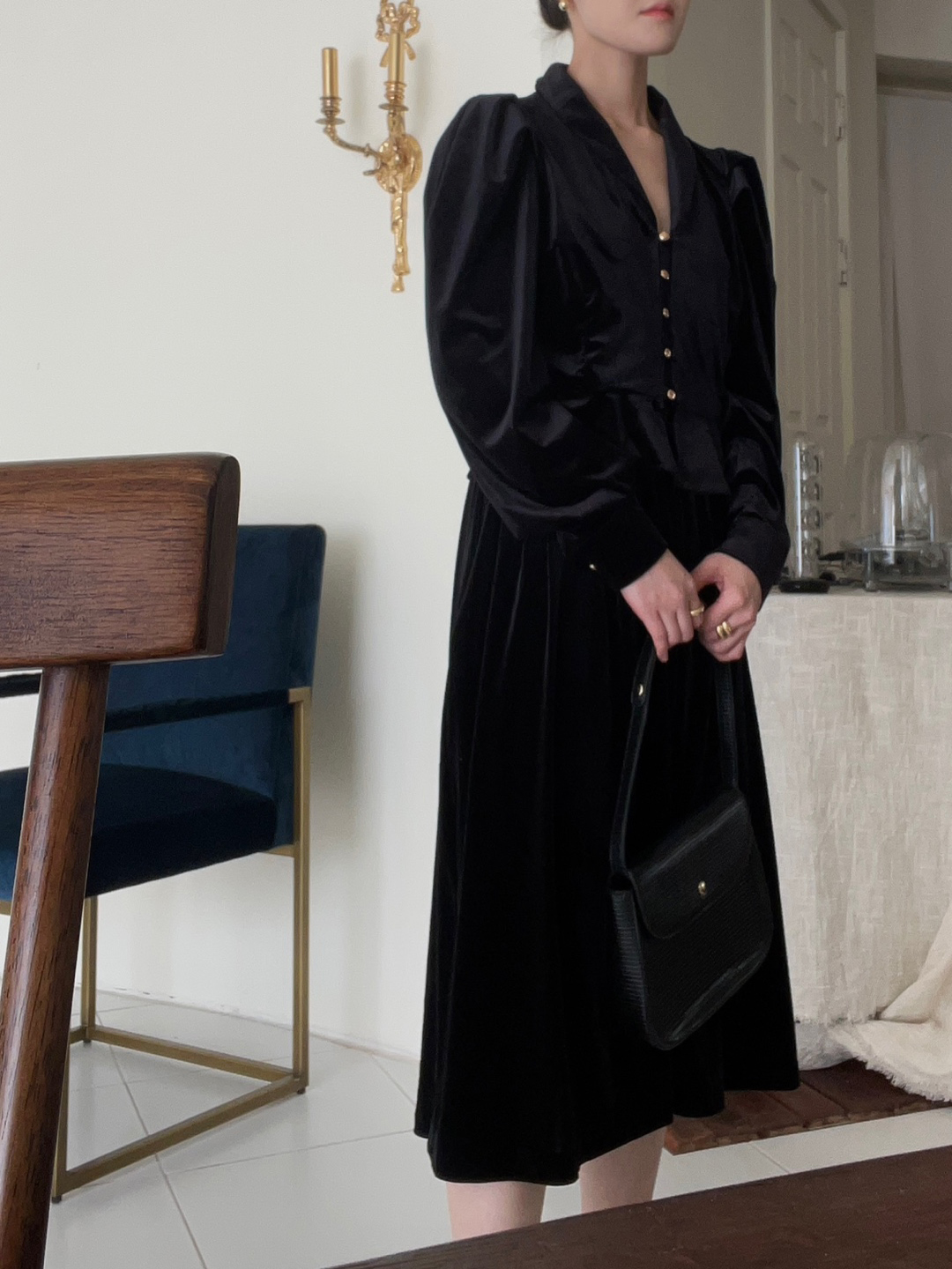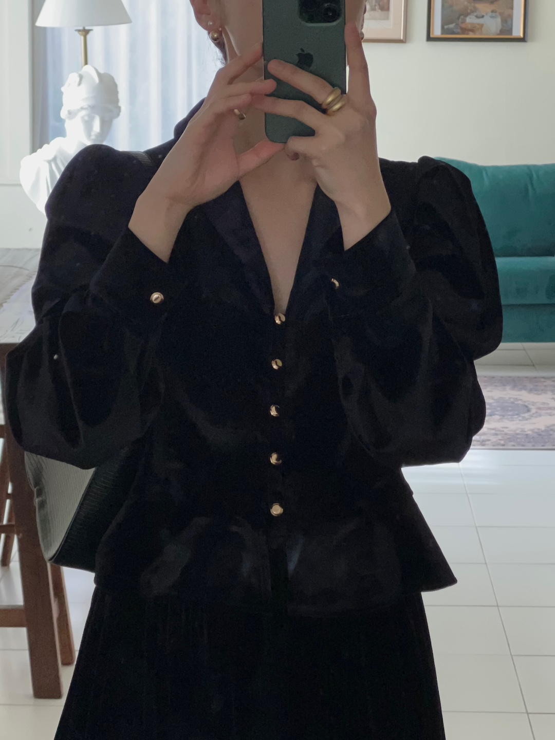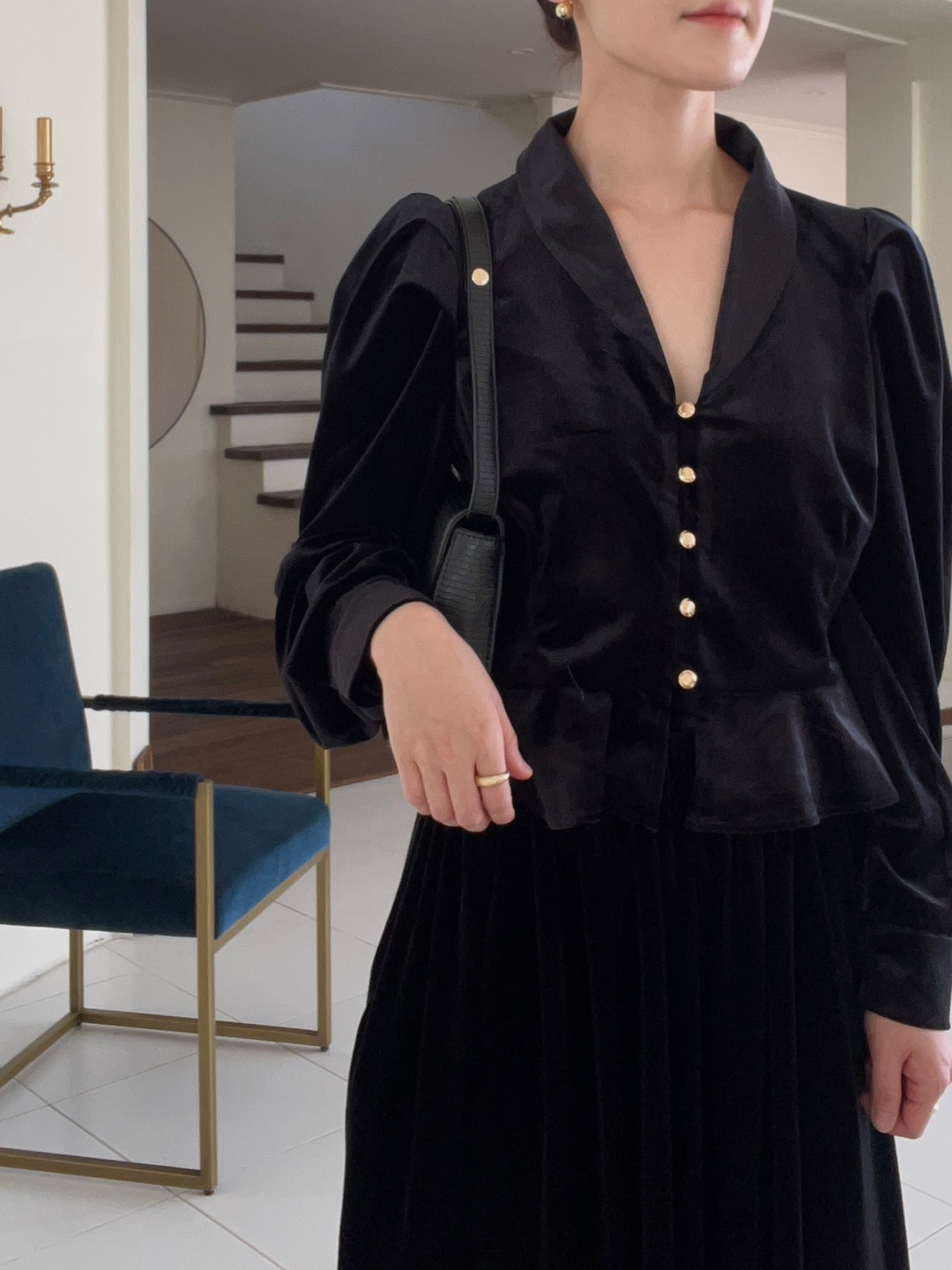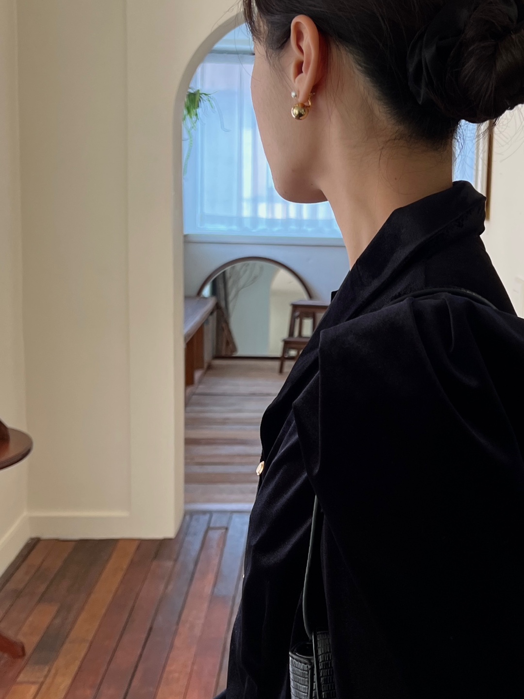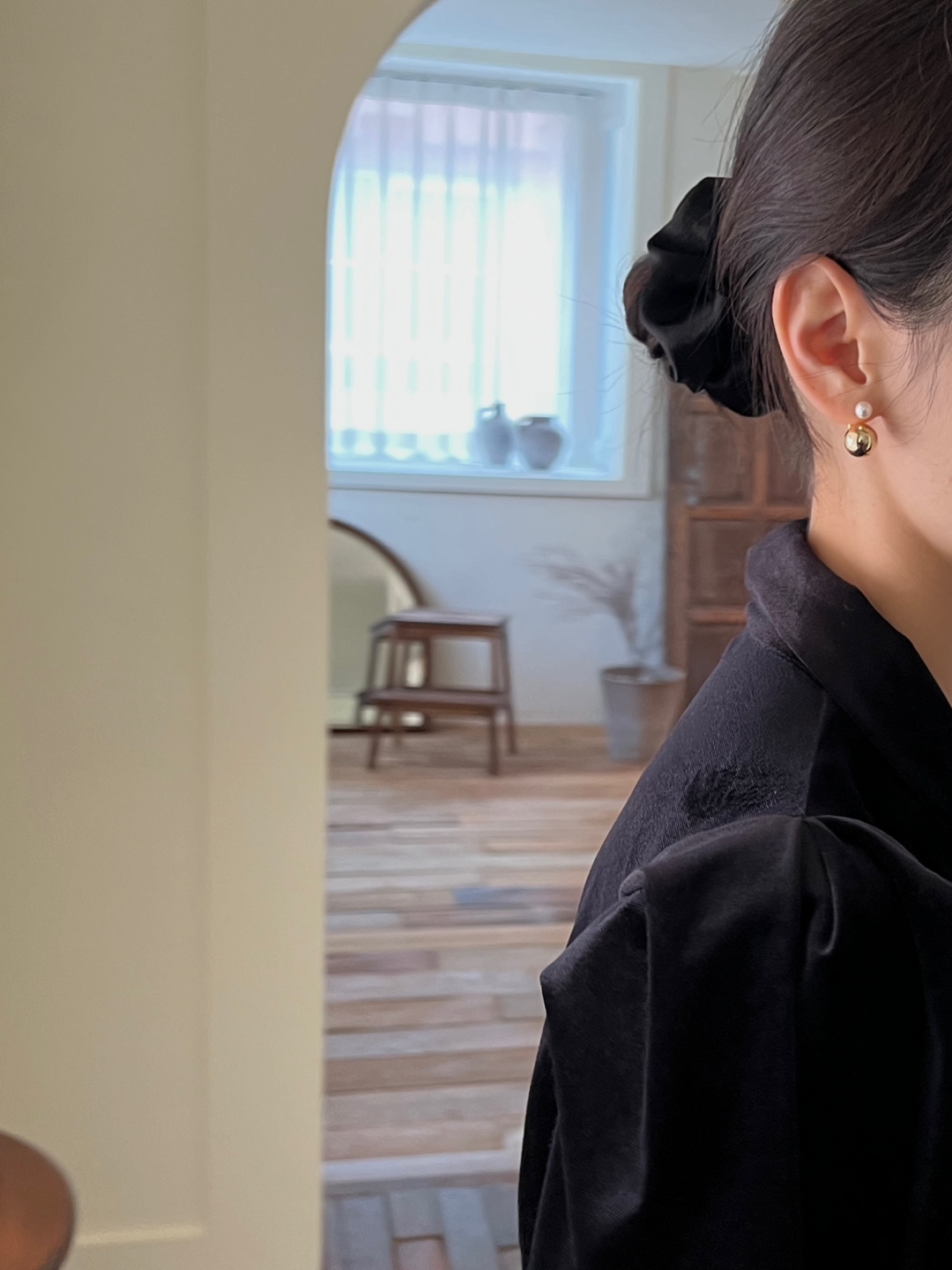 미니 진주에 볼드한 골드볼로 간결하면서도 볼드한 느낌을 주어서
