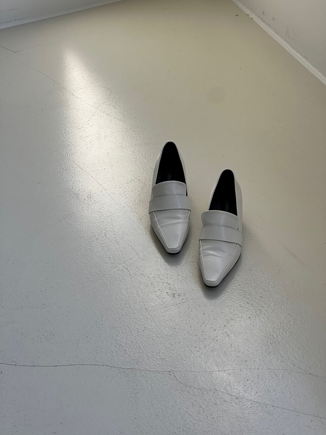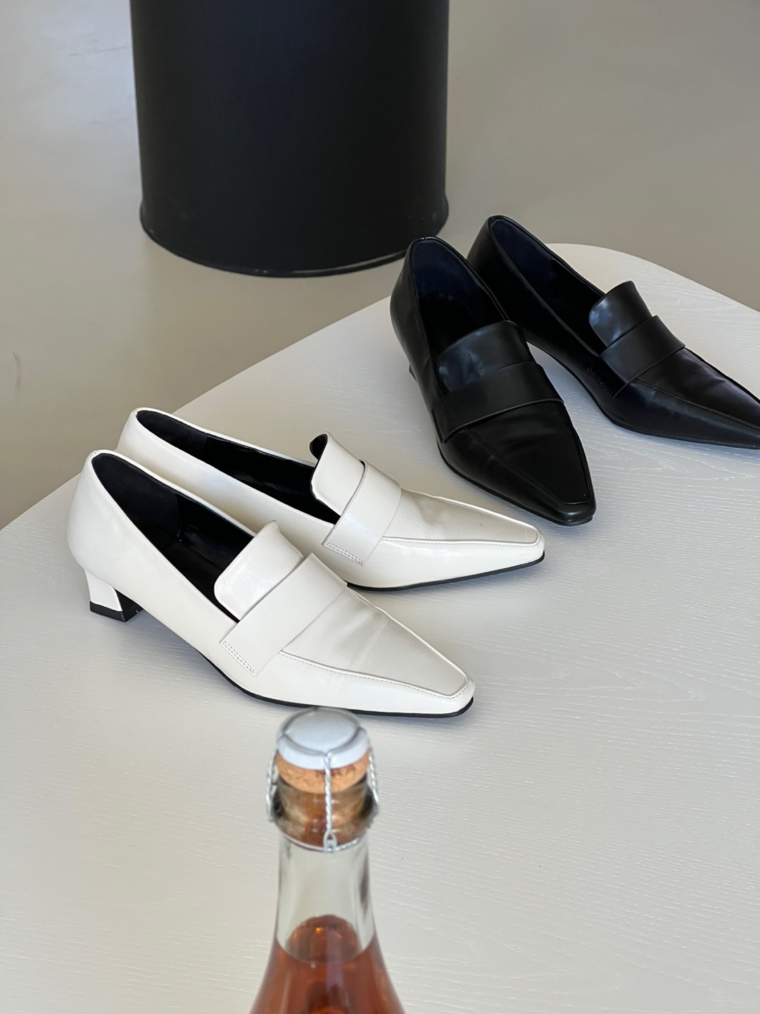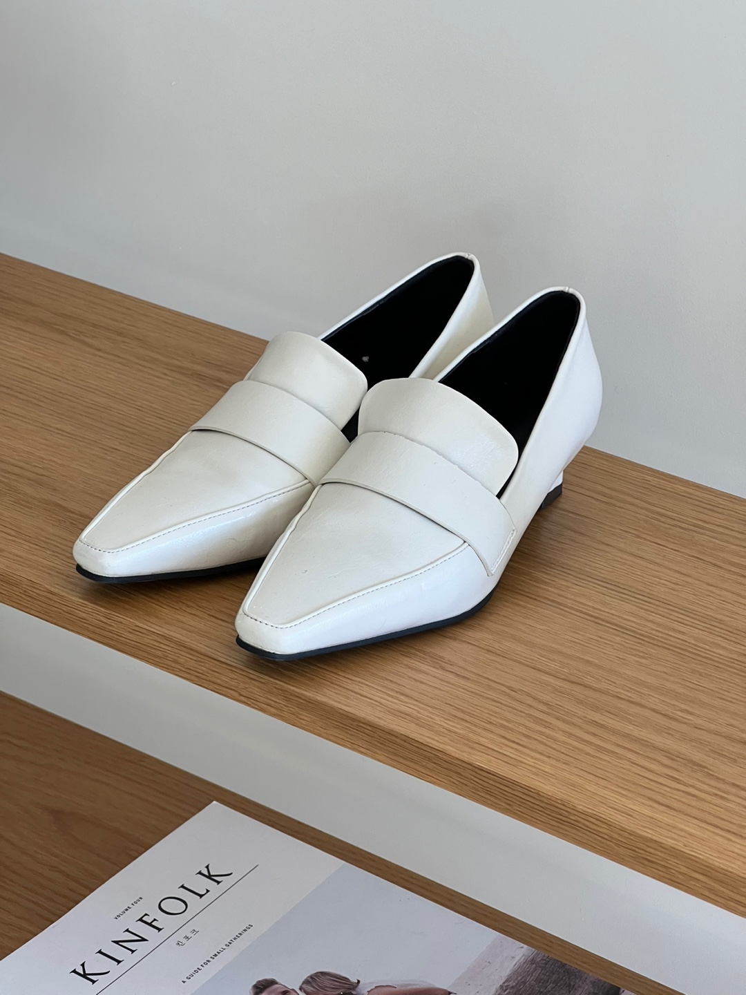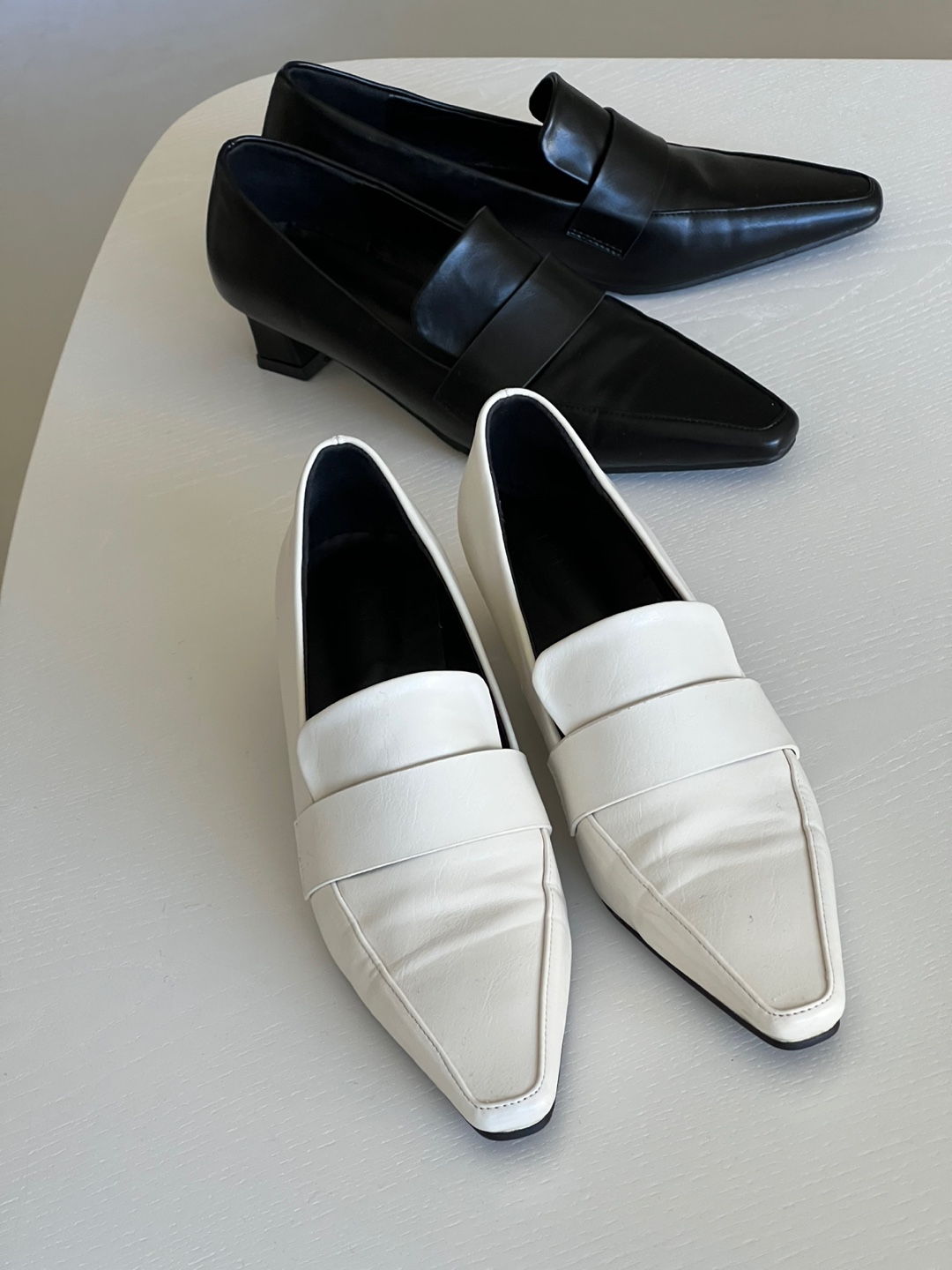 뾰족한 스퀘어 앞코가 매력적으로 느껴지는 로퍼 슈즈로