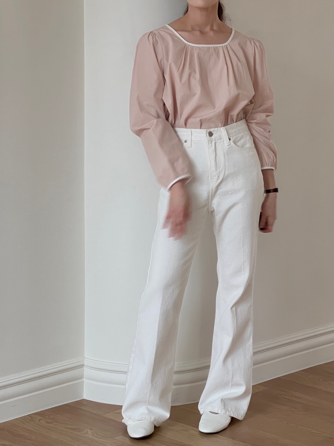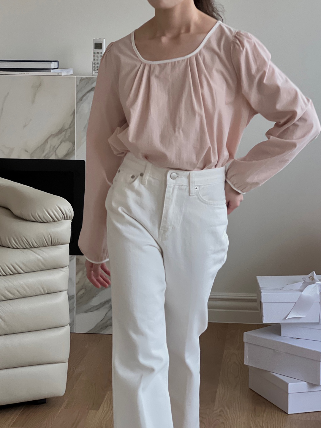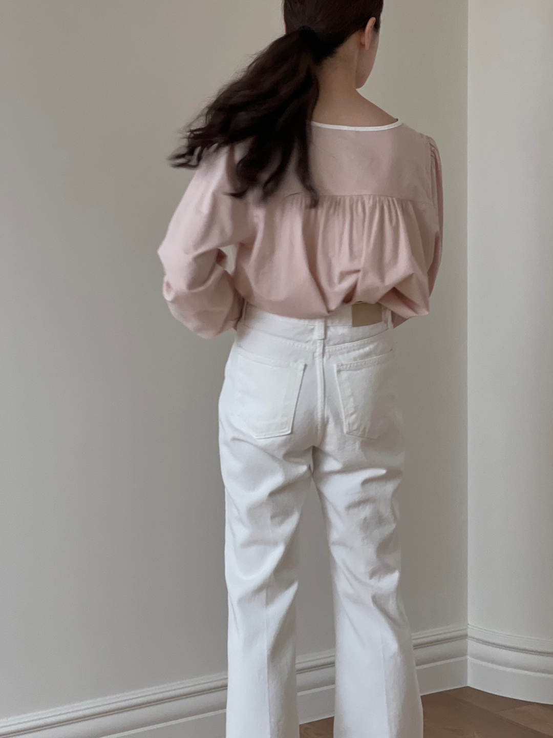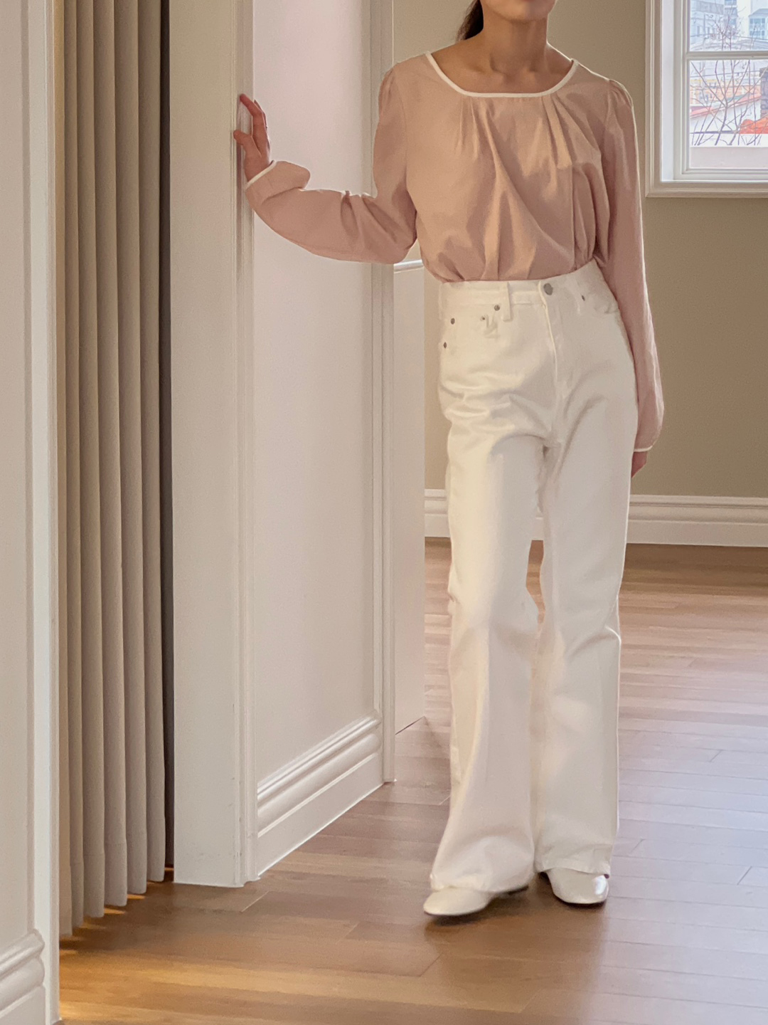 파우더리한 원단감과 어우러져 페미닌한 매력이 느껴져요.