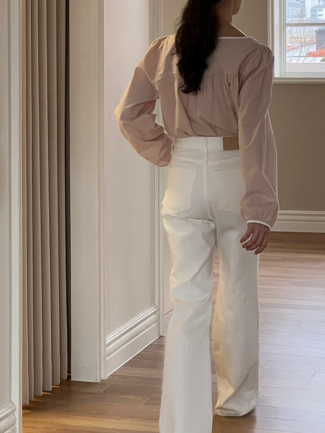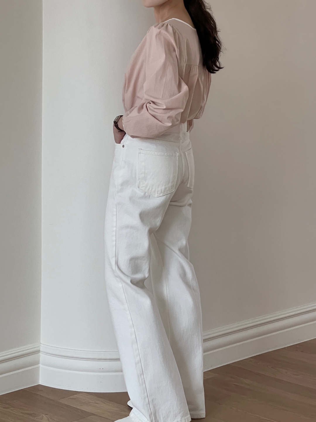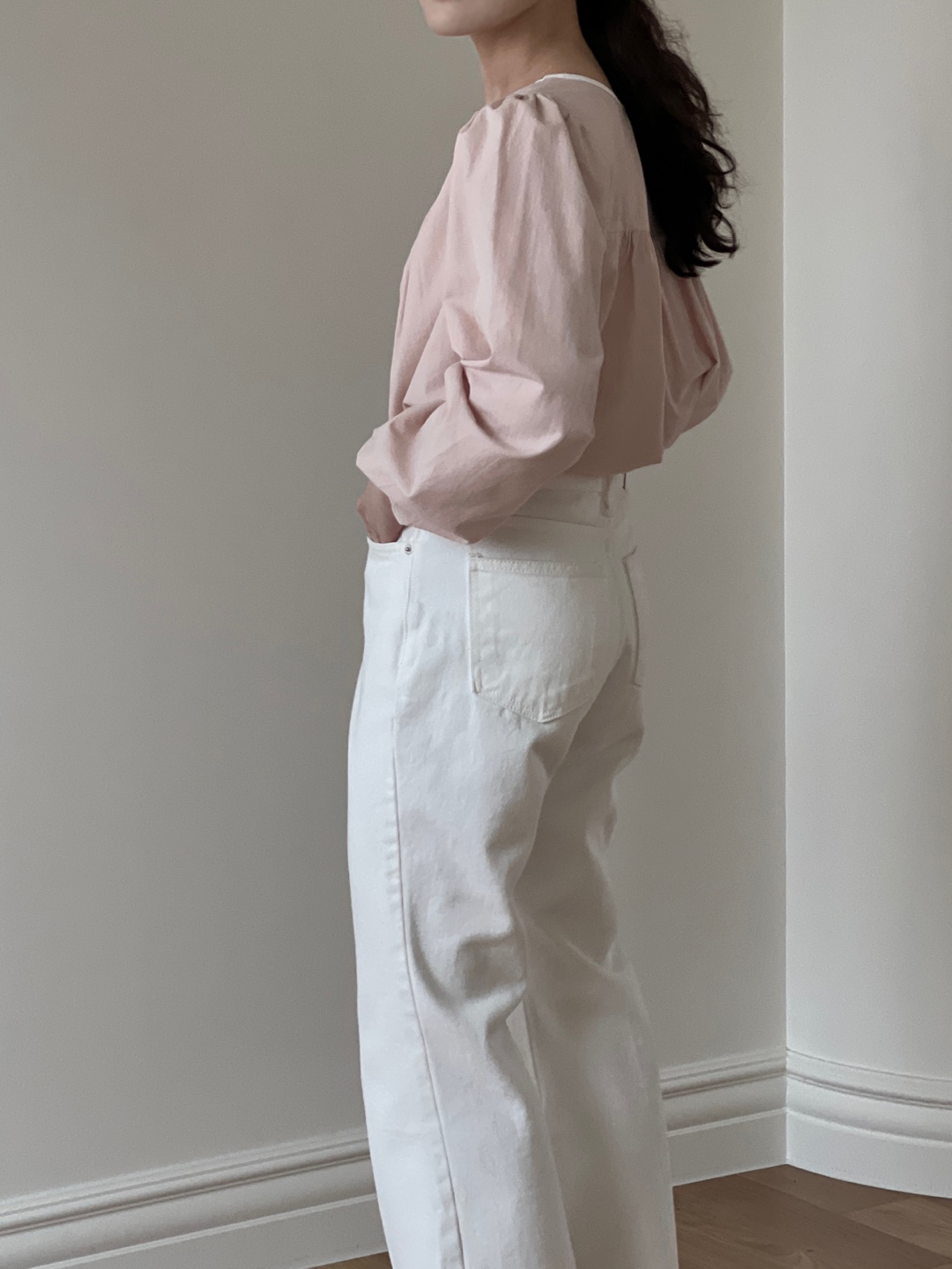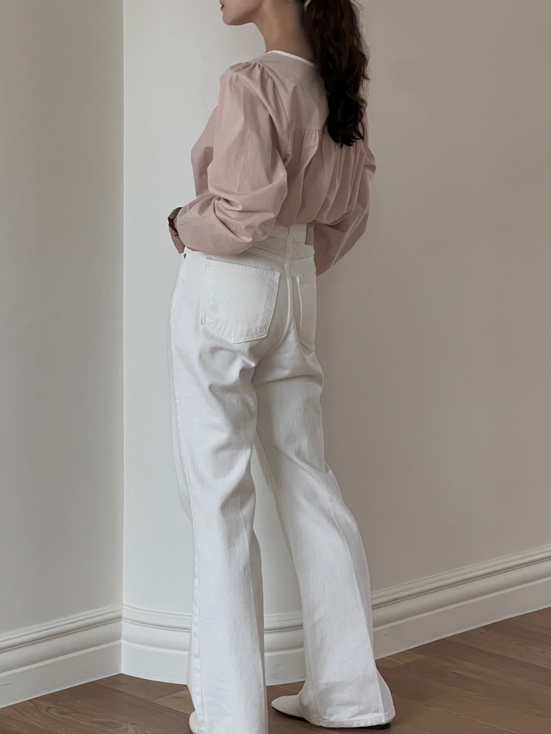 파우더리한 원단감과 어우러져 페미닌한 매력이 느껴져요.