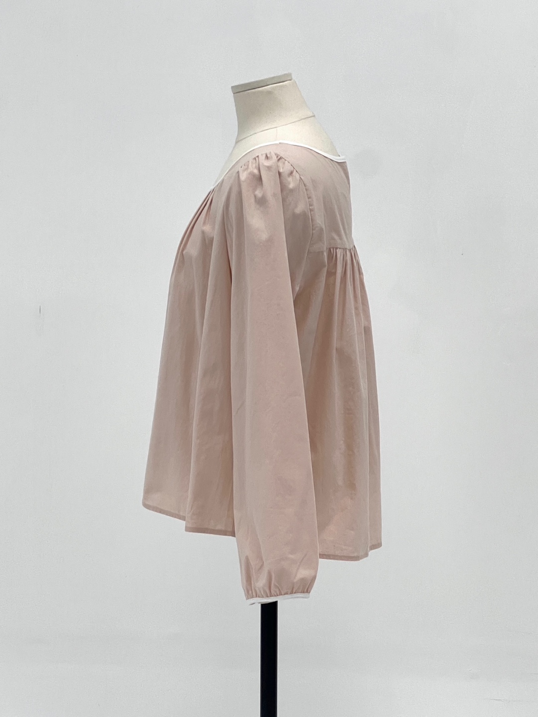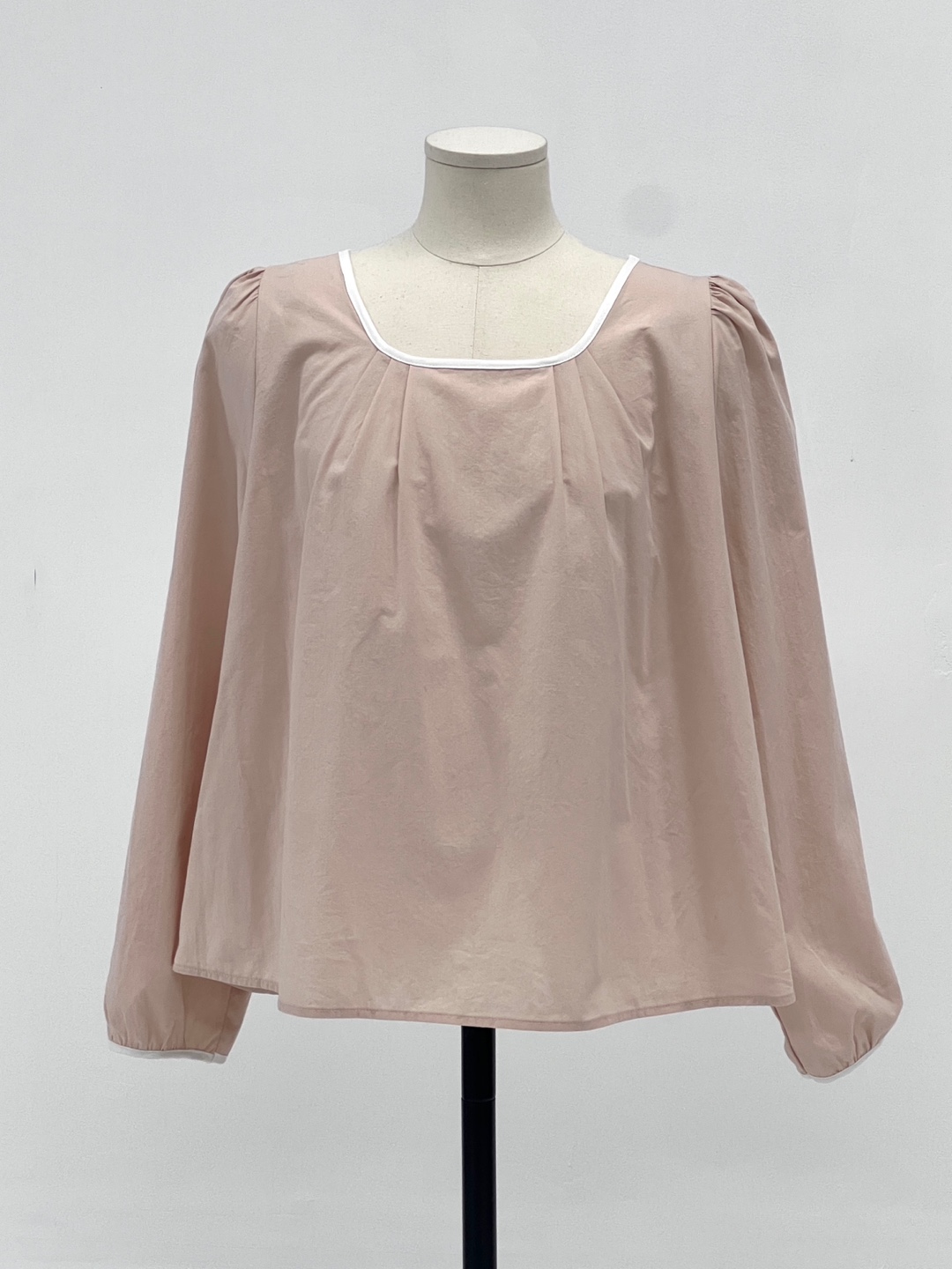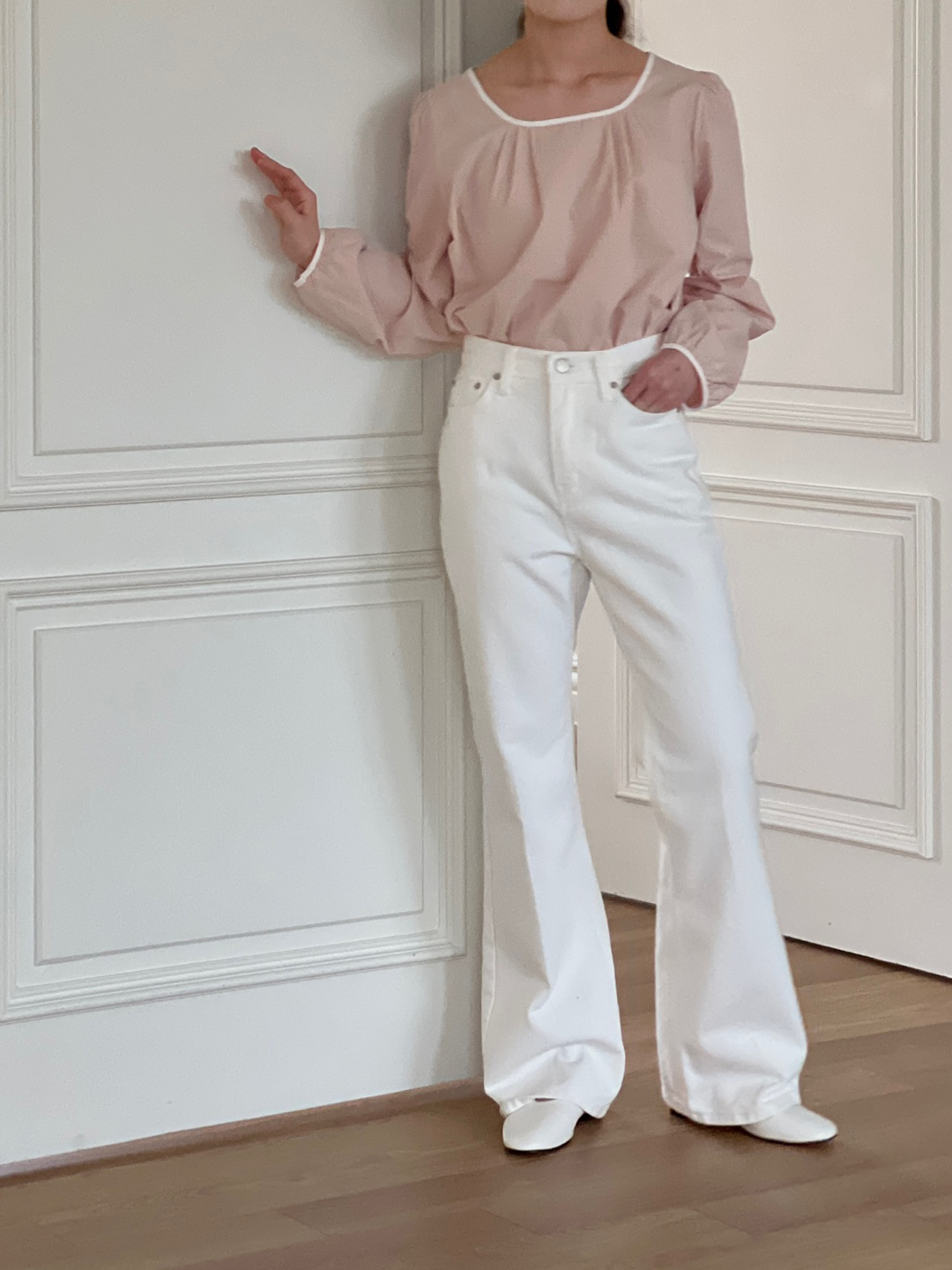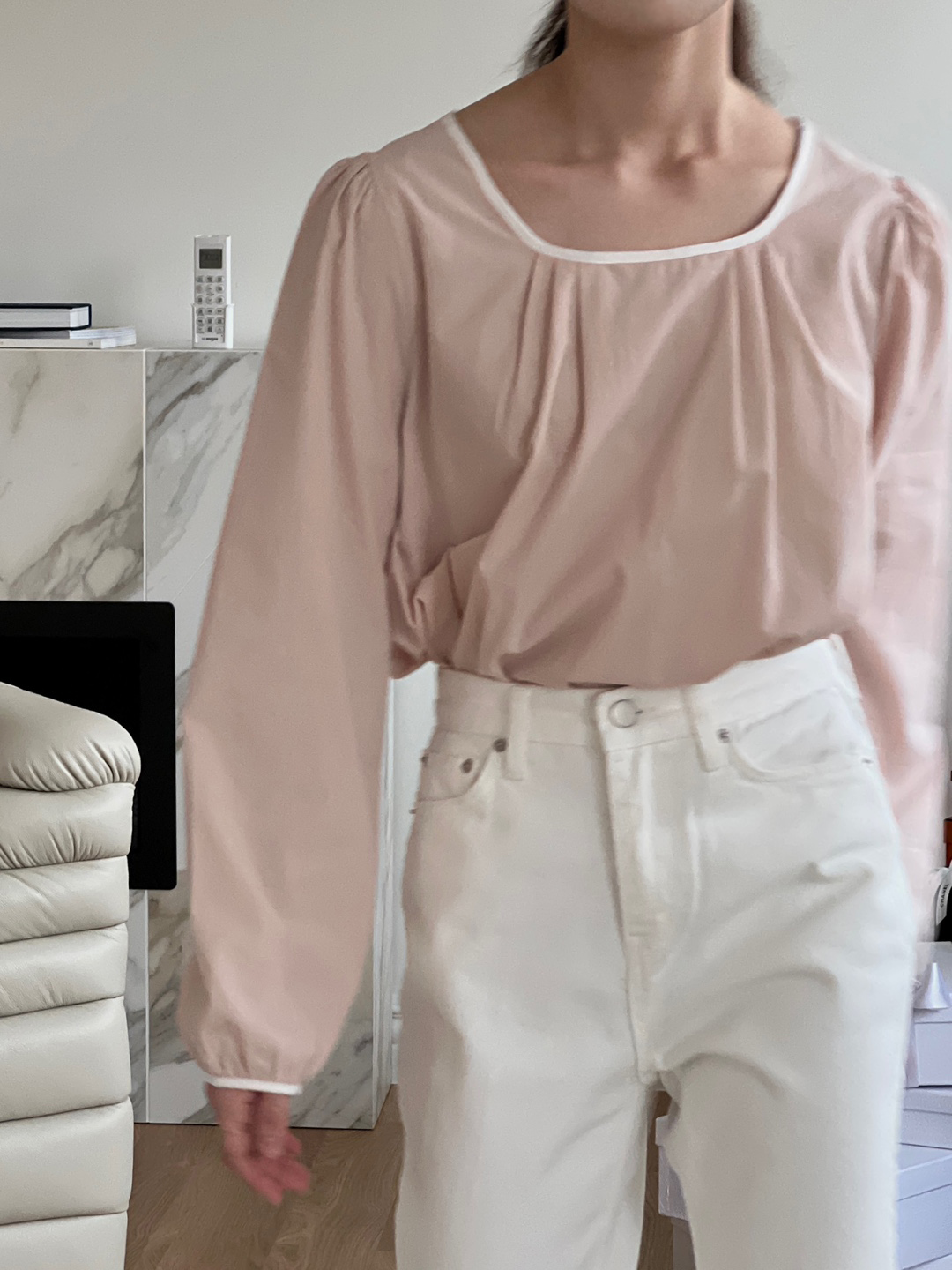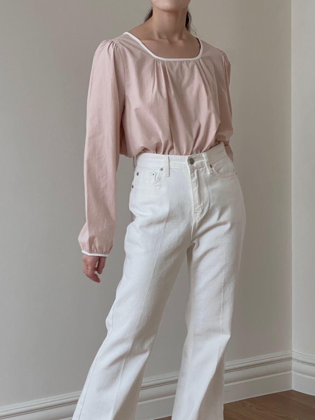 넥라인과 소매단이 아이보리 배색으로 바인딩