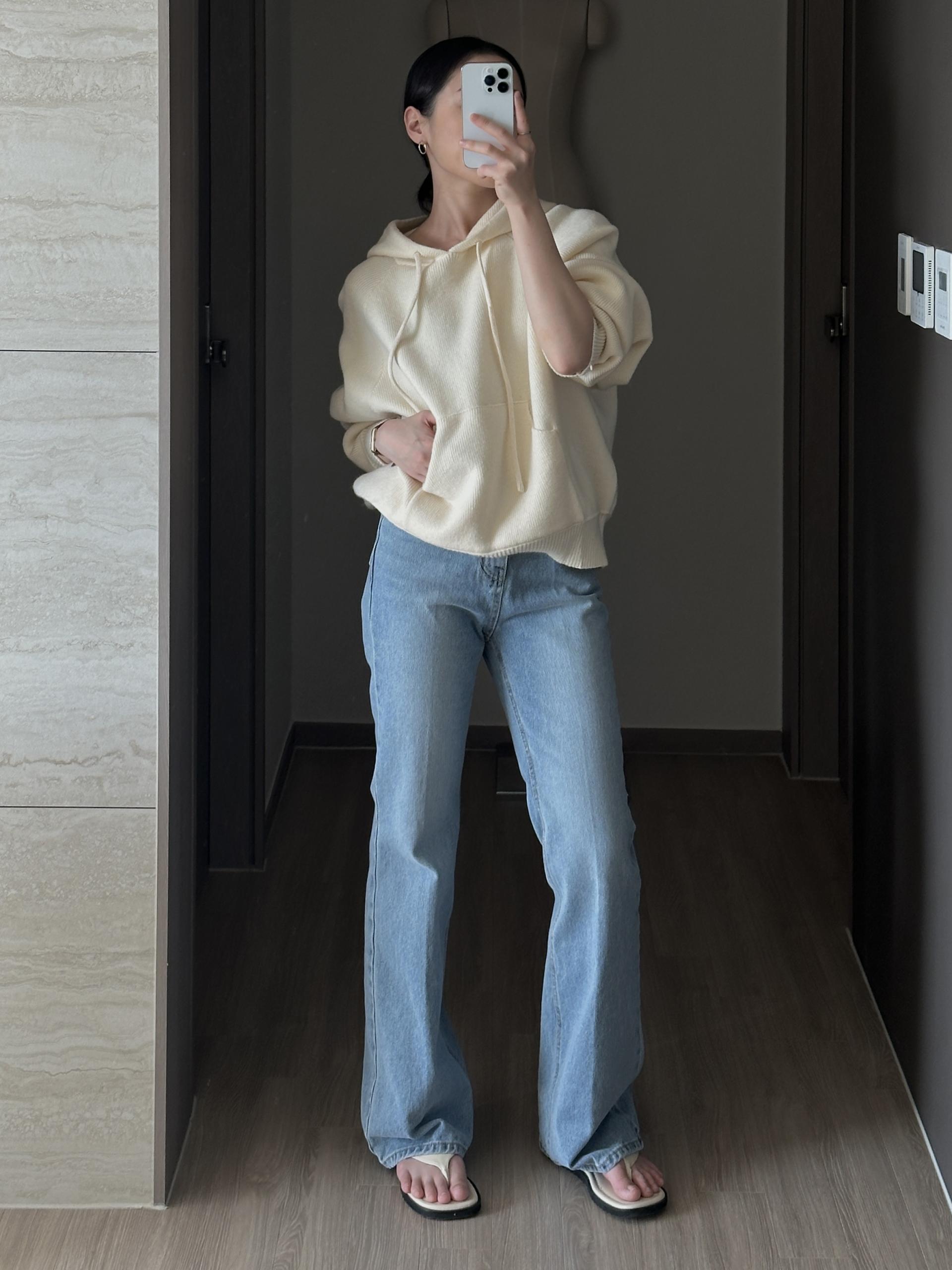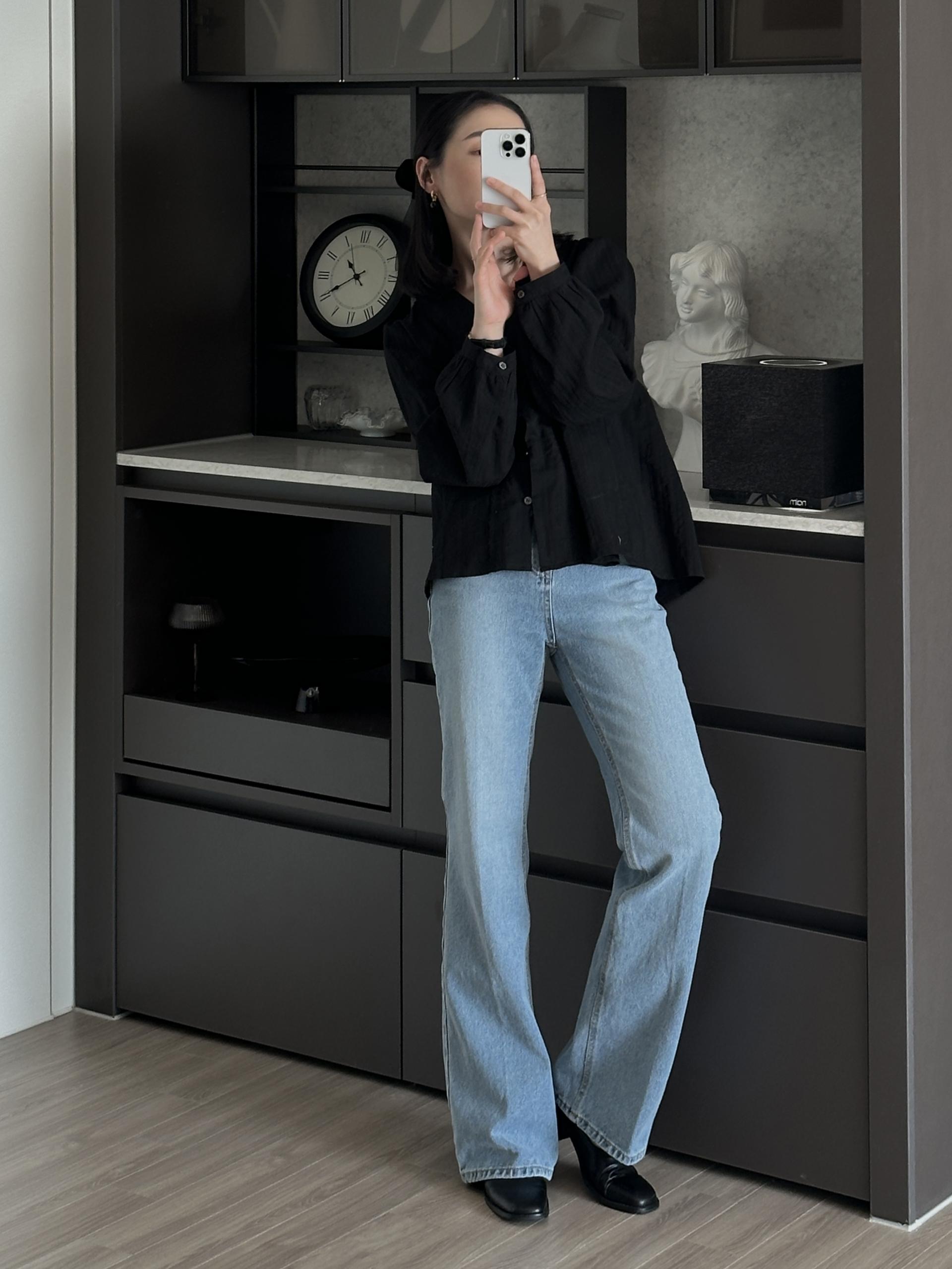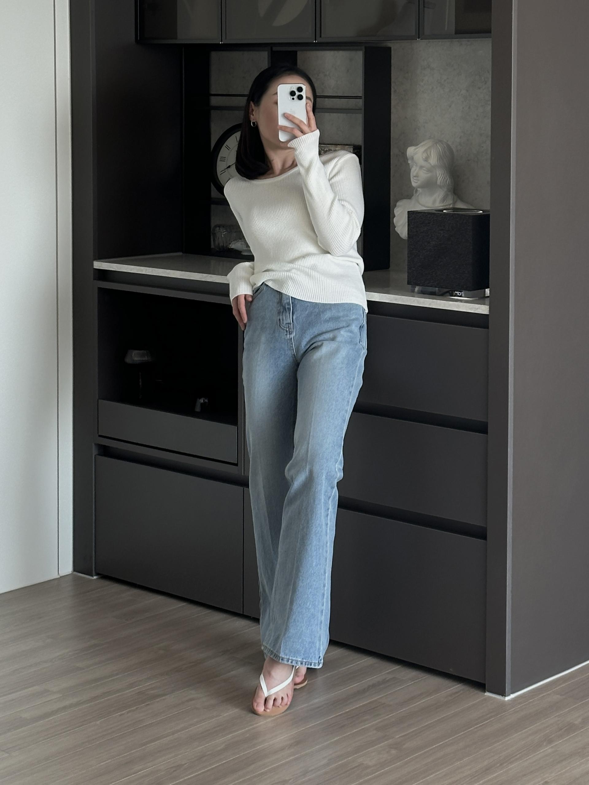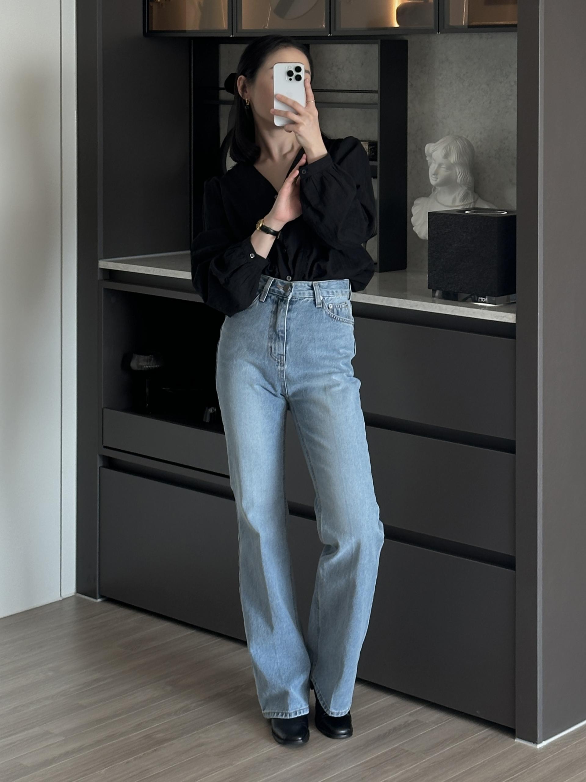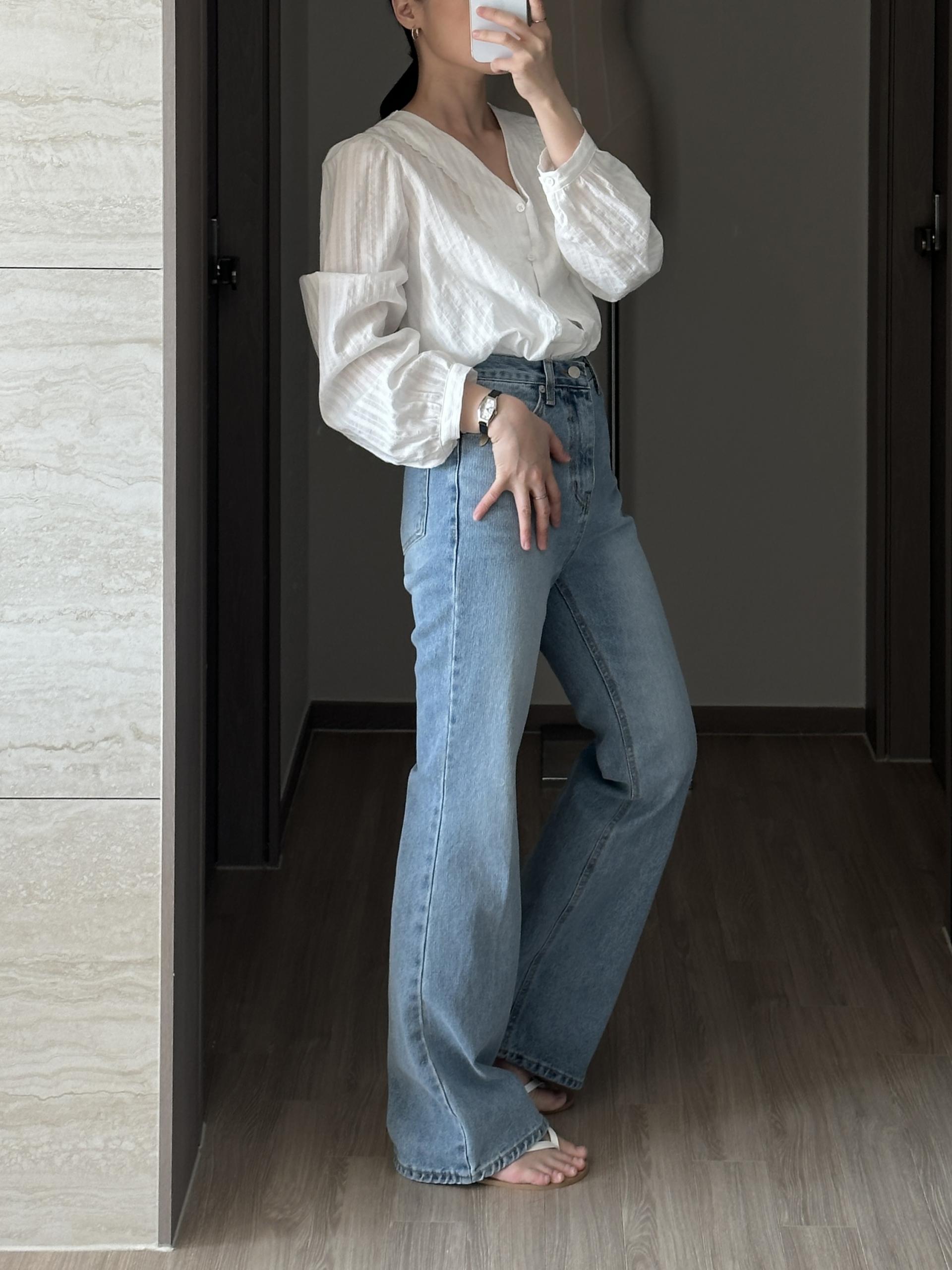 예쁜 연청 컬러에 탄탄하게 제작된 부츠컷 데님 팬츠에요.