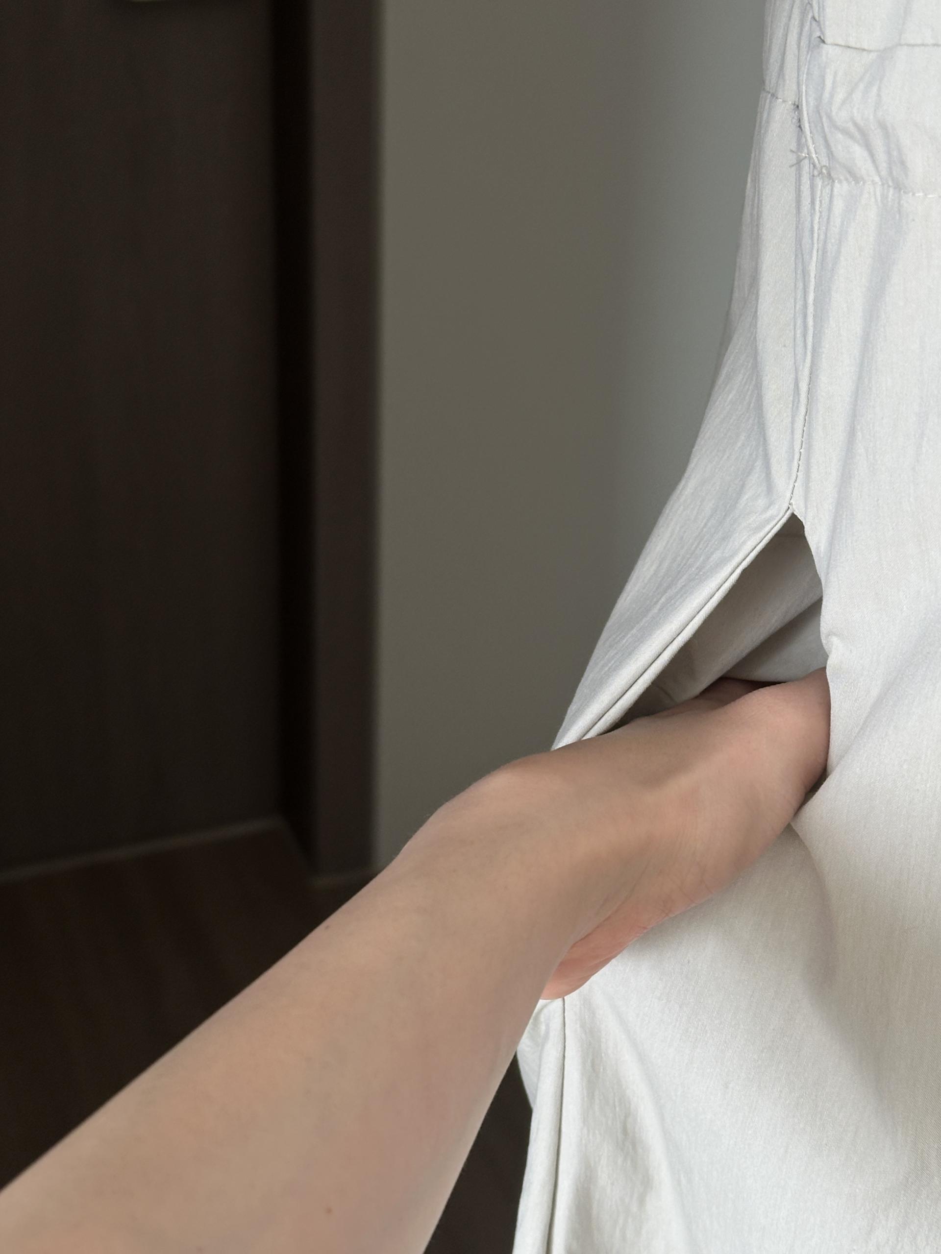 허리 부분에는 디테일이 터널을 통과해 앞중심에서 스토퍼, 스트링이 있어