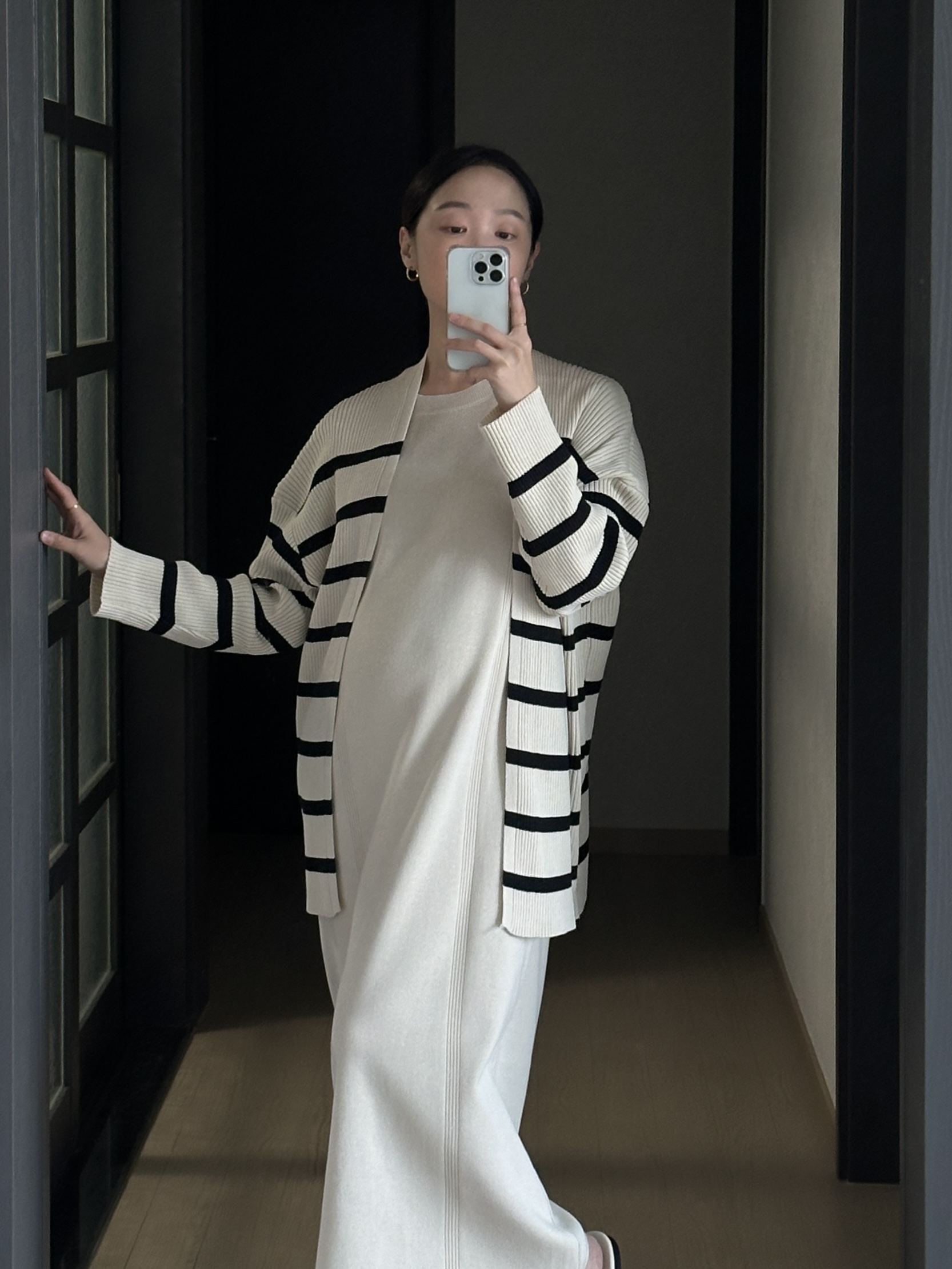 가디건은 힙을 모두 가리는 기장이고
