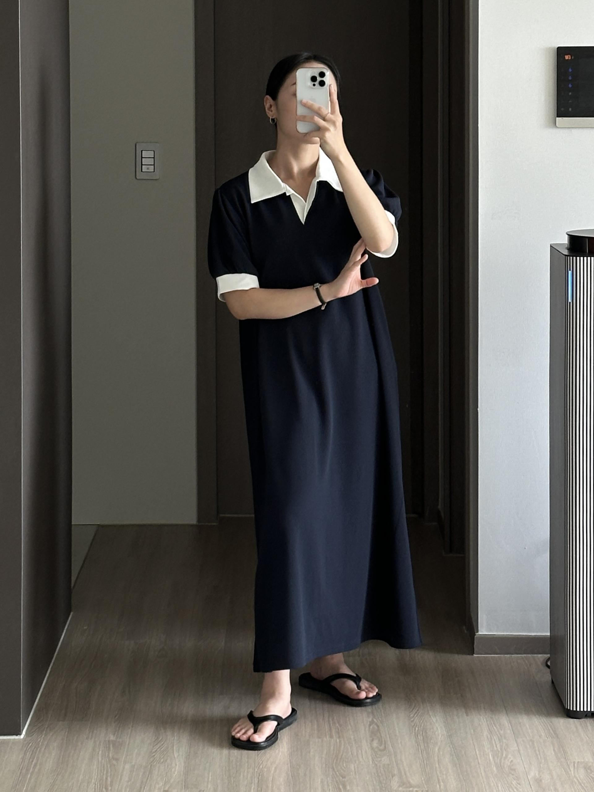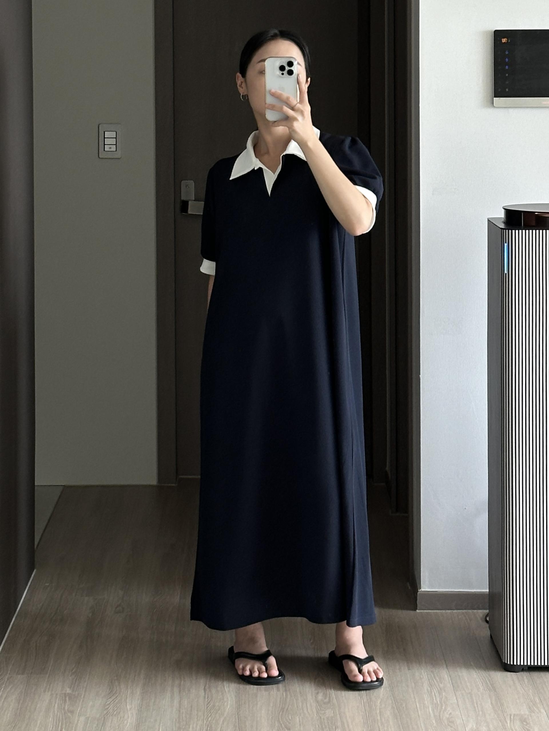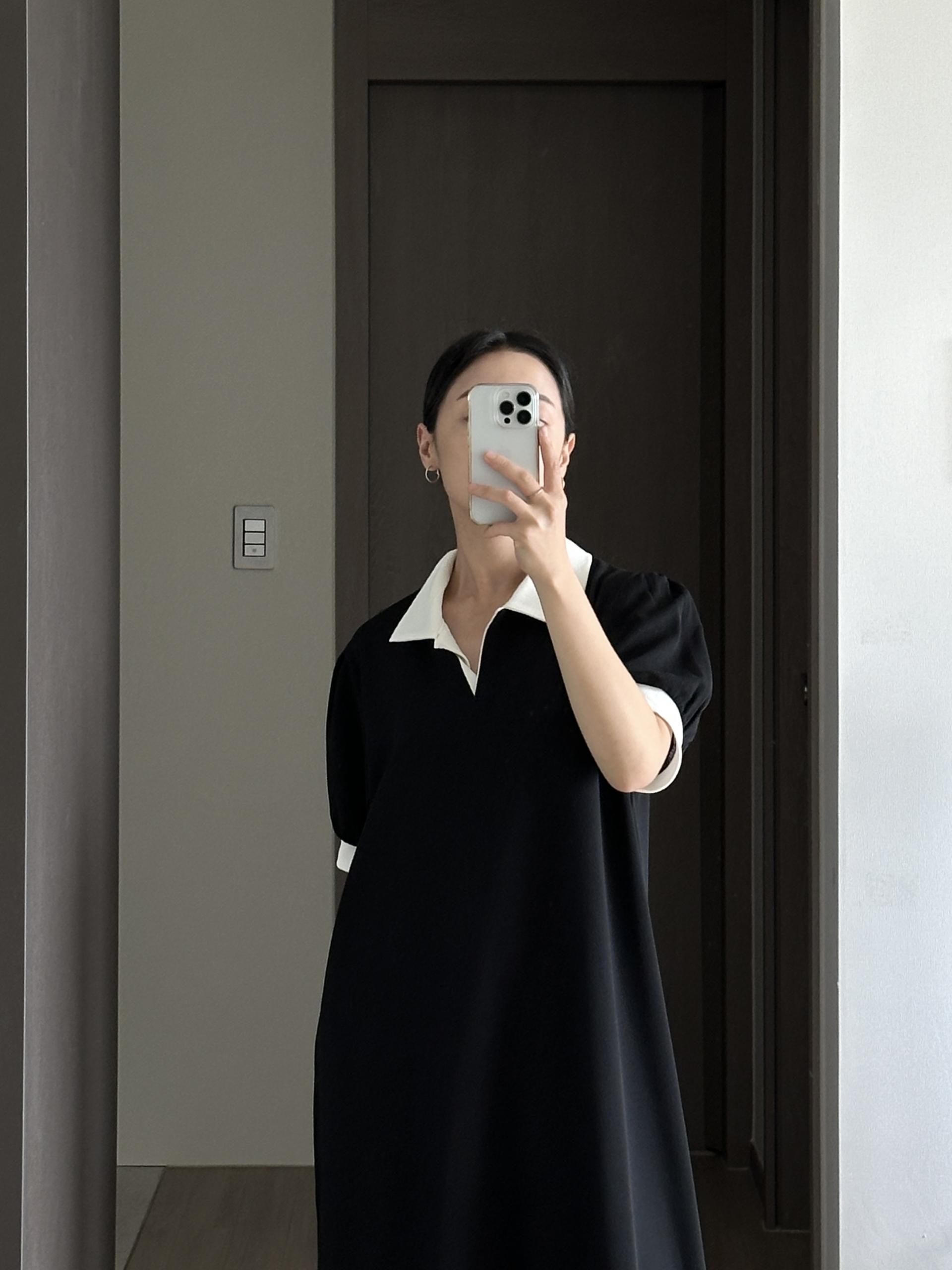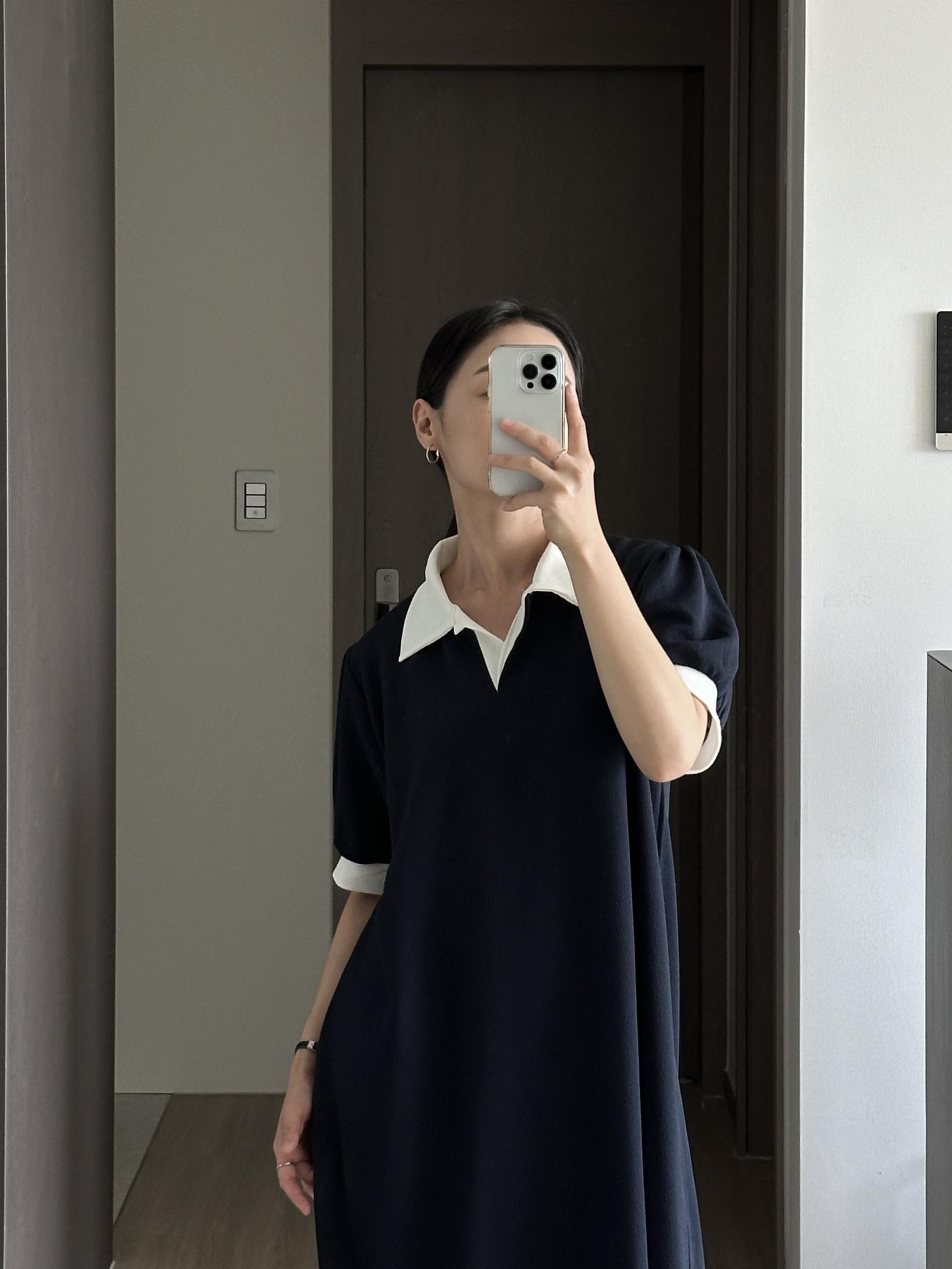 실용적인 소재, 모던한 스타일의 리안 카라 원피스입니다.