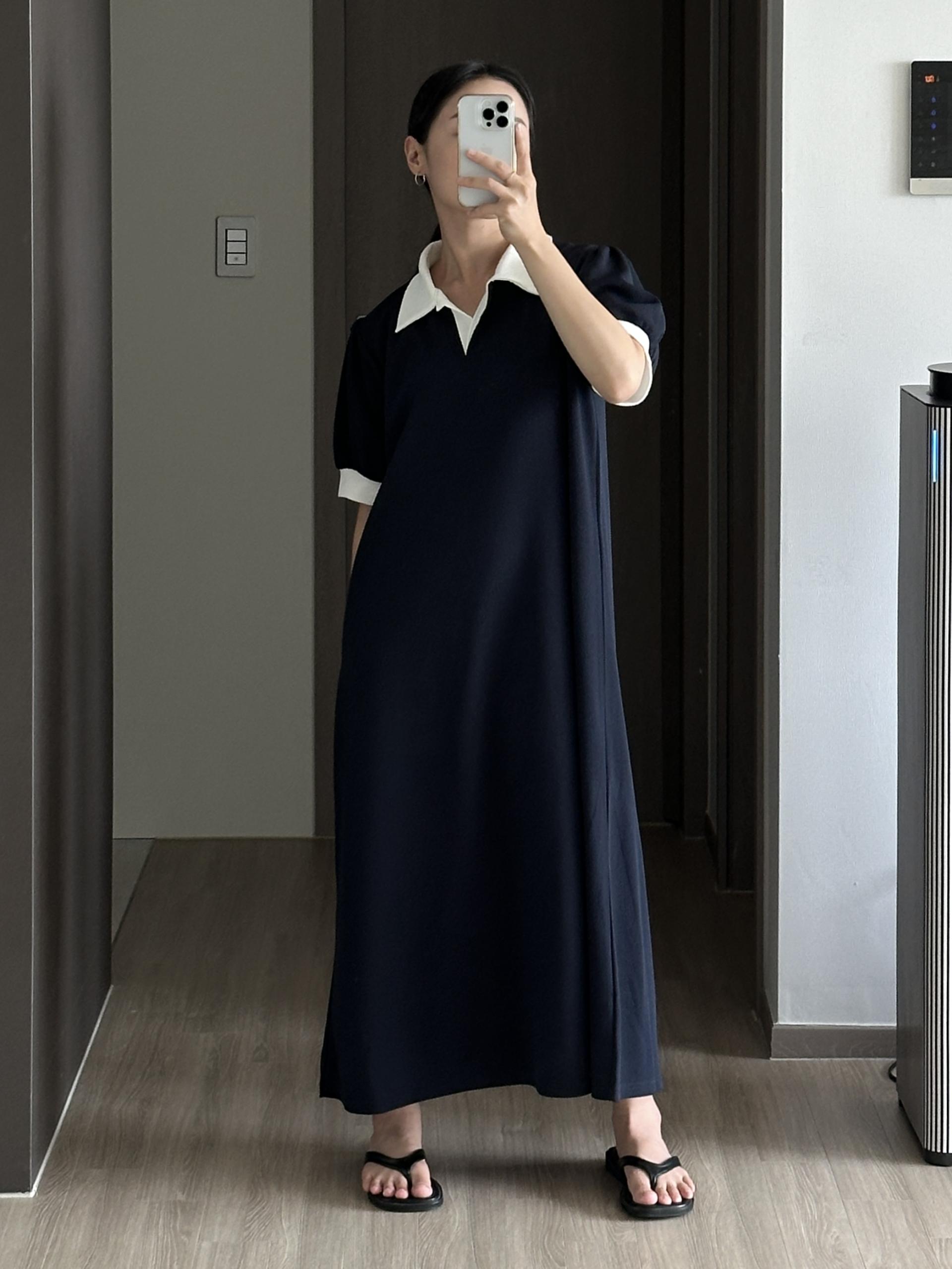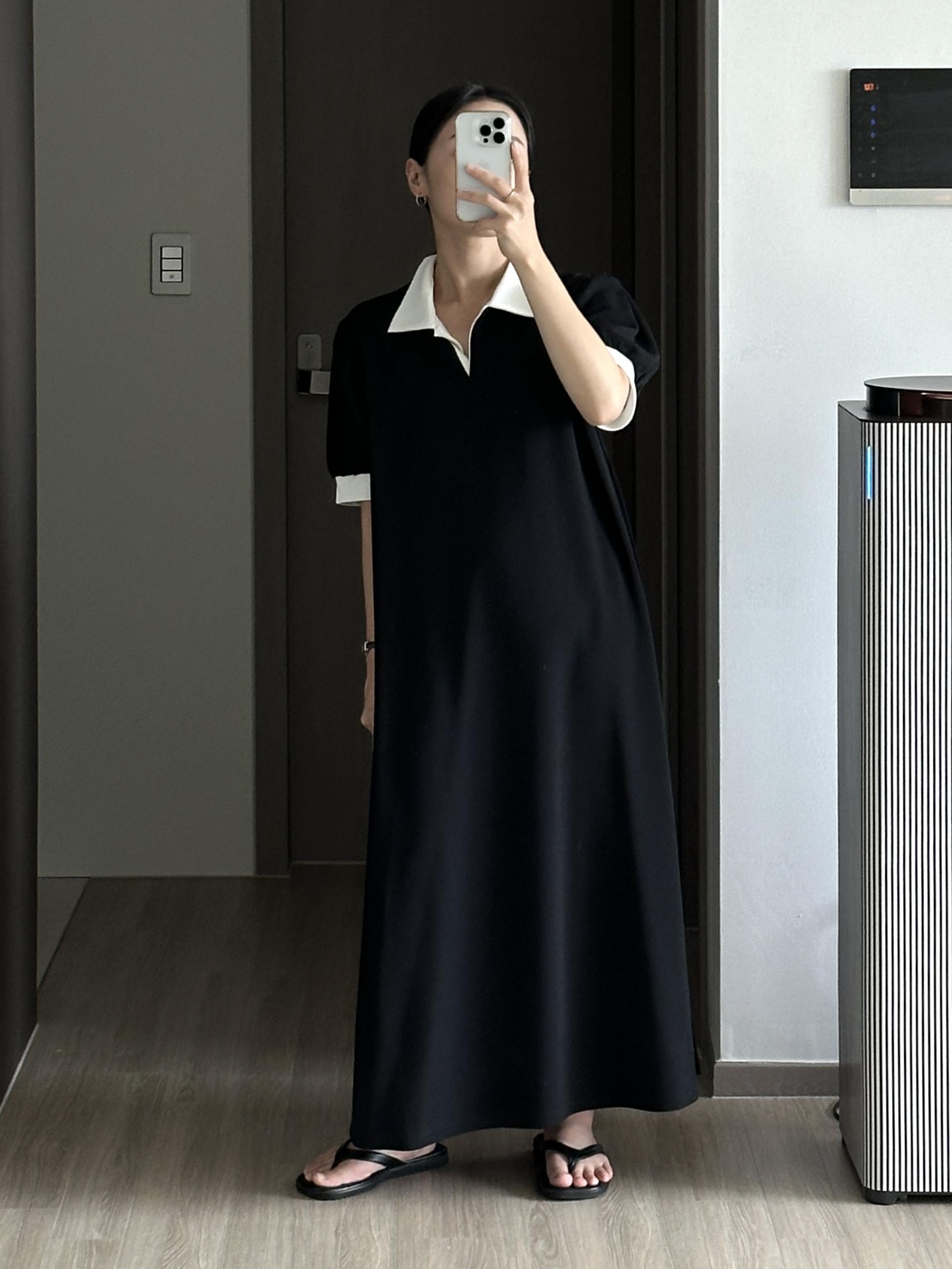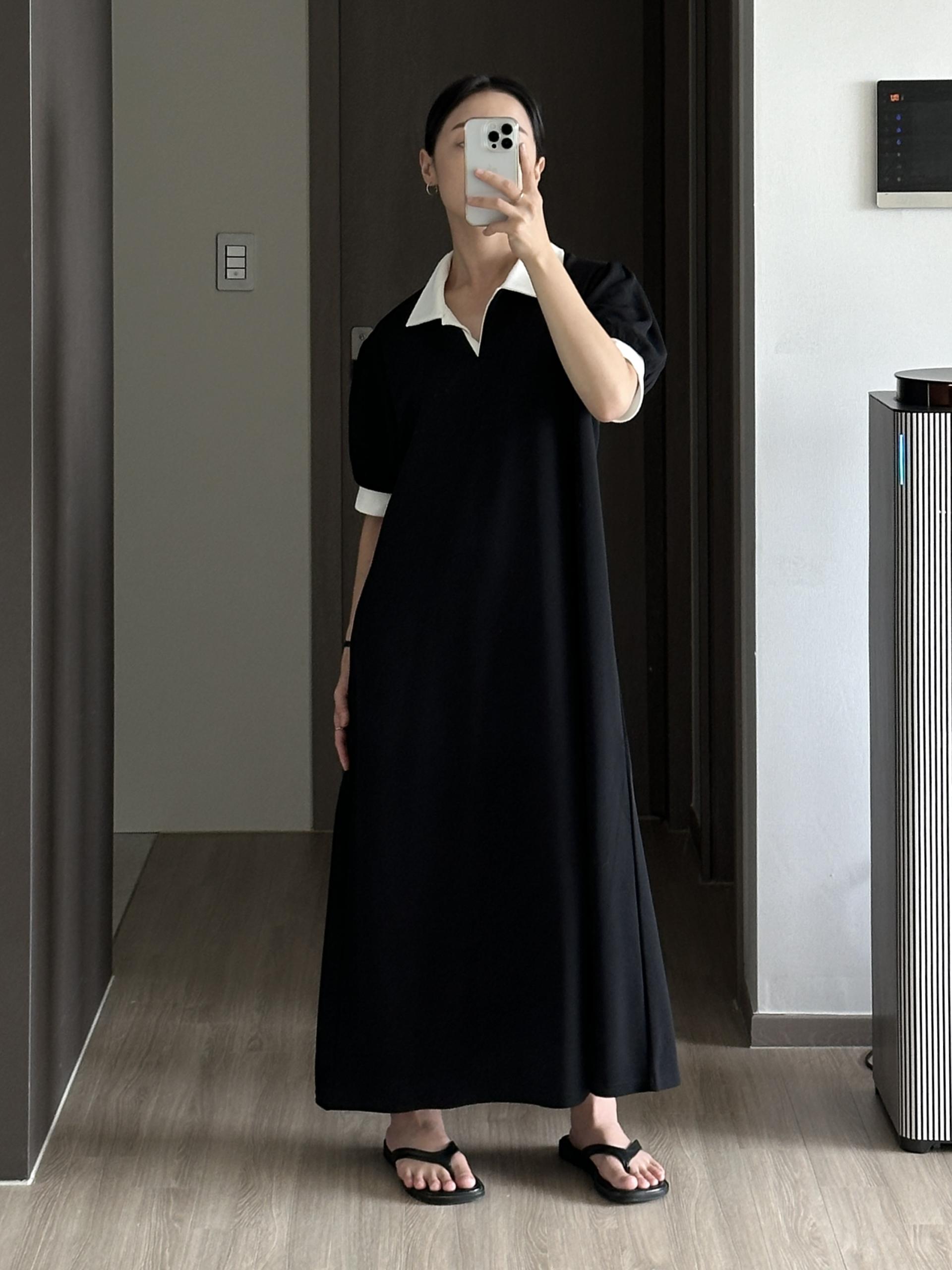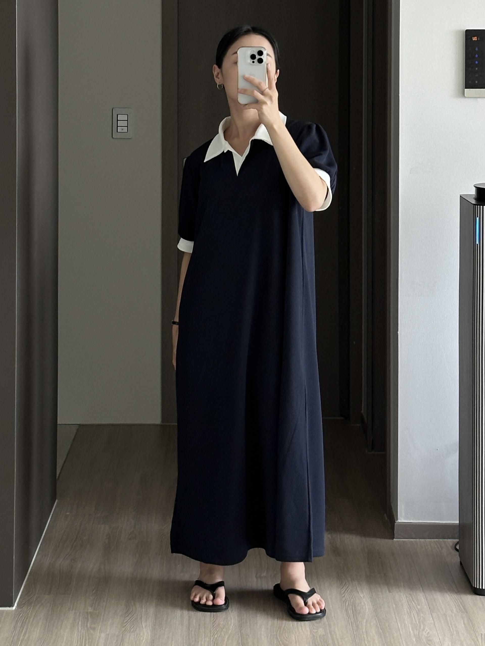 실용적인 소재, 모던한 스타일의 리안 카라 원피스입니다.