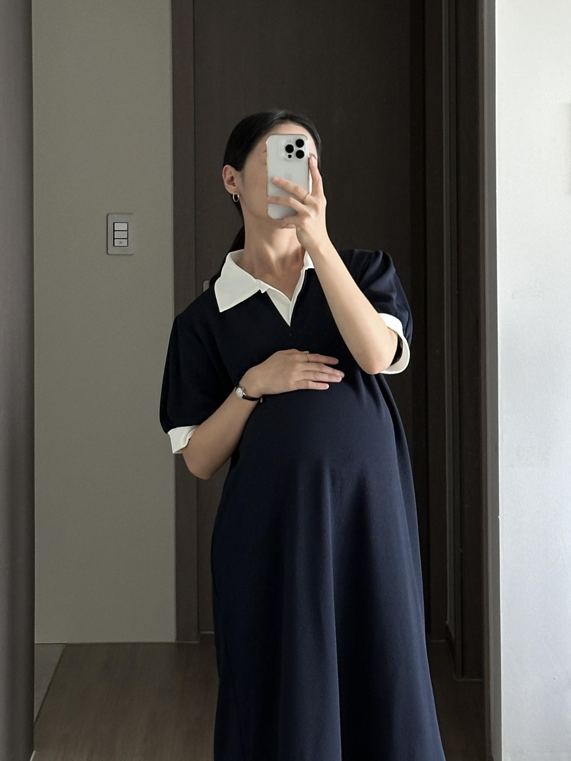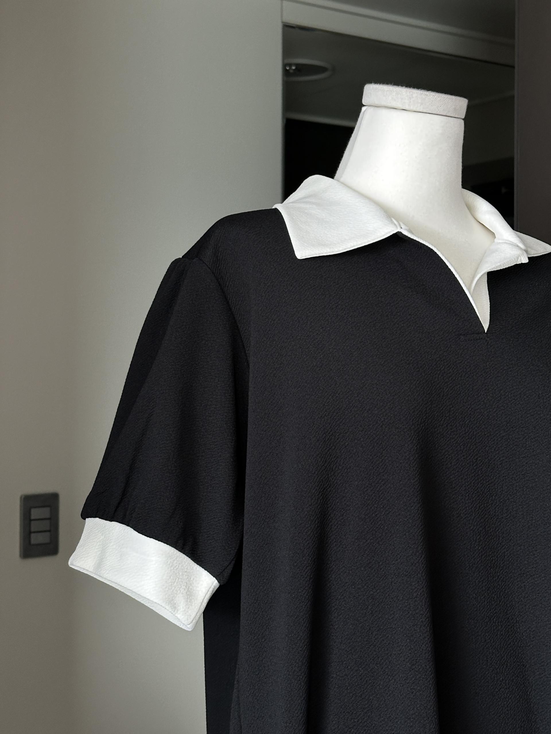 사랑스러운 퍼프 소매와 카라와 카브라 배색이 은은하게