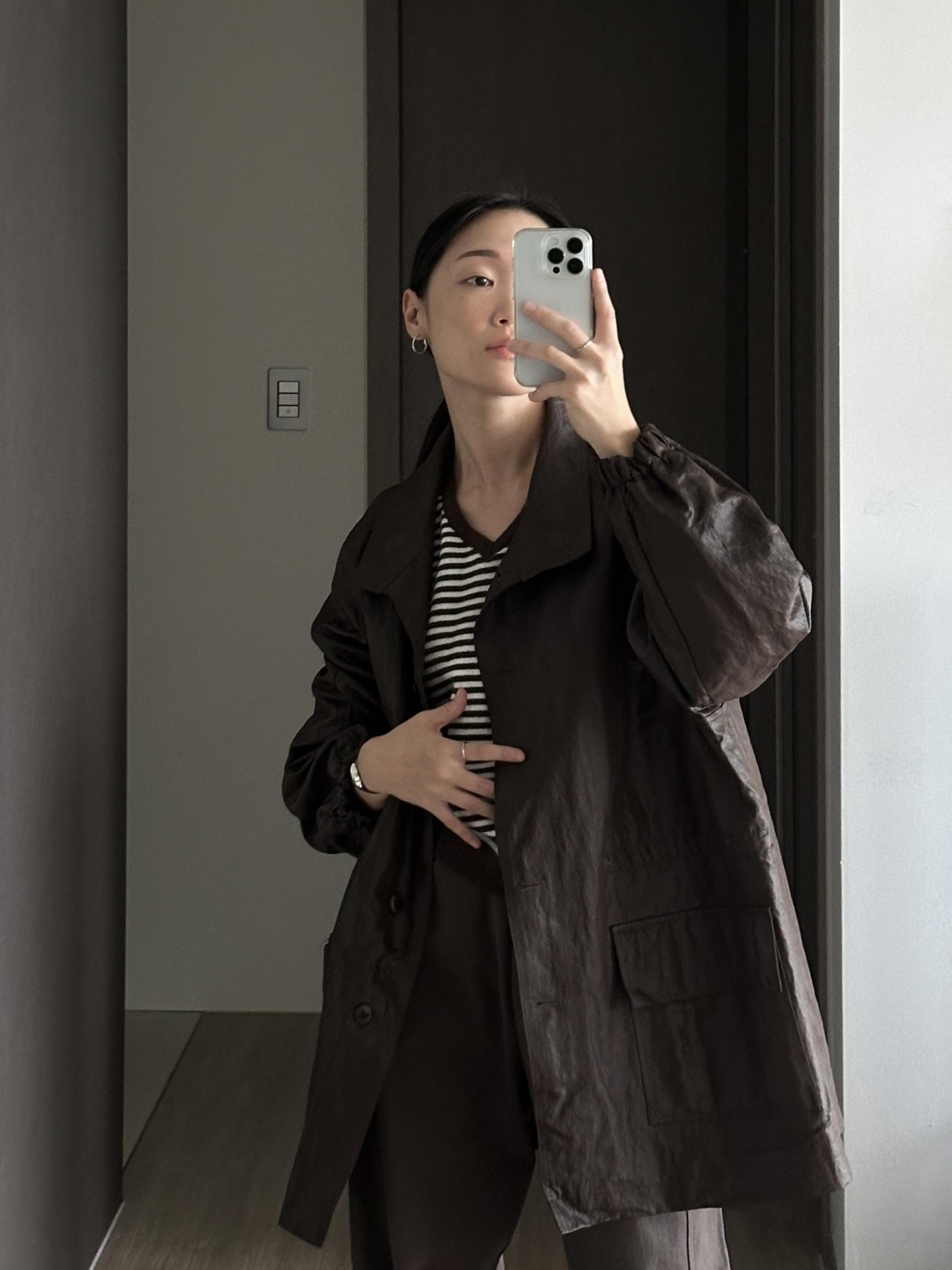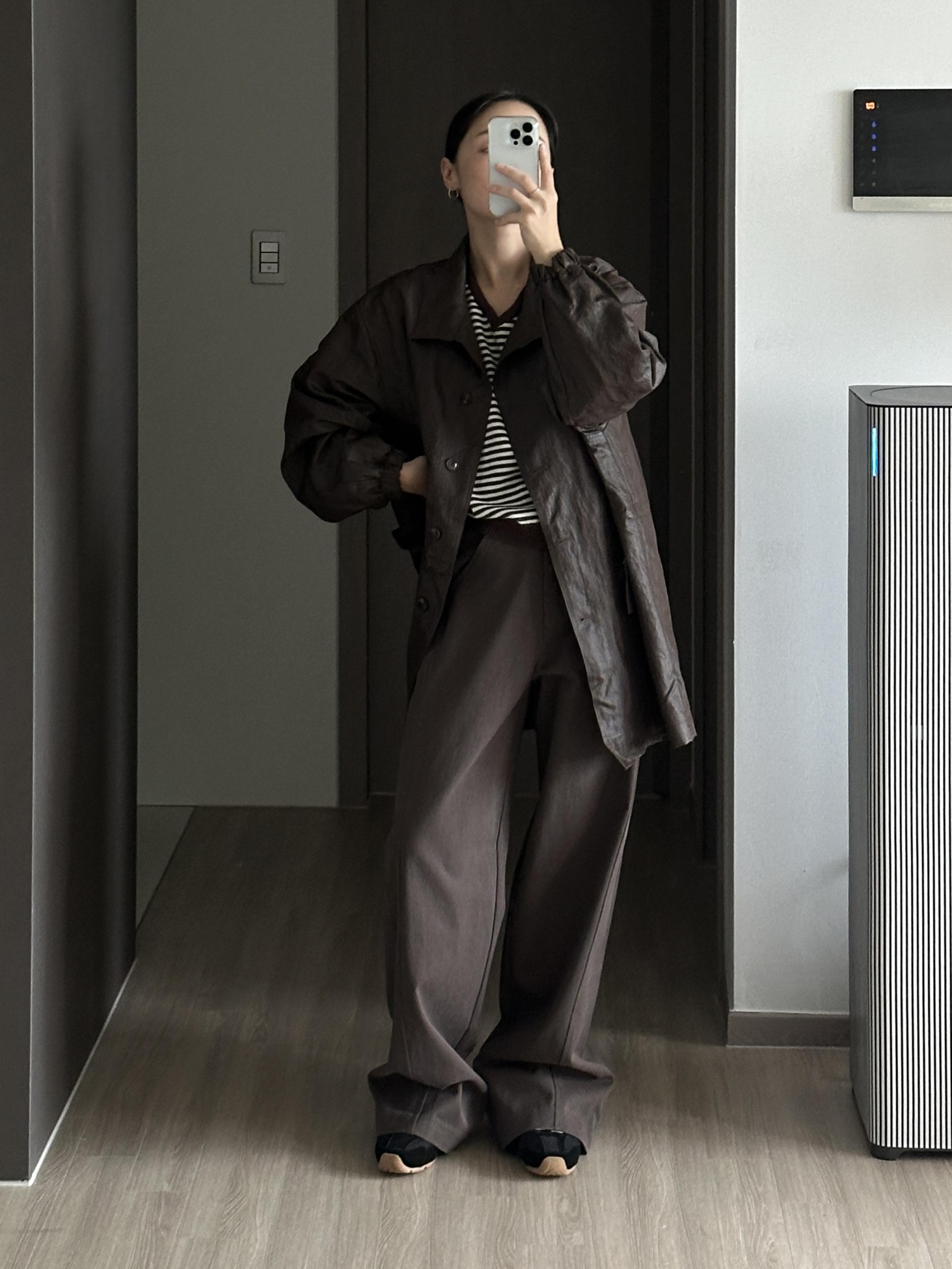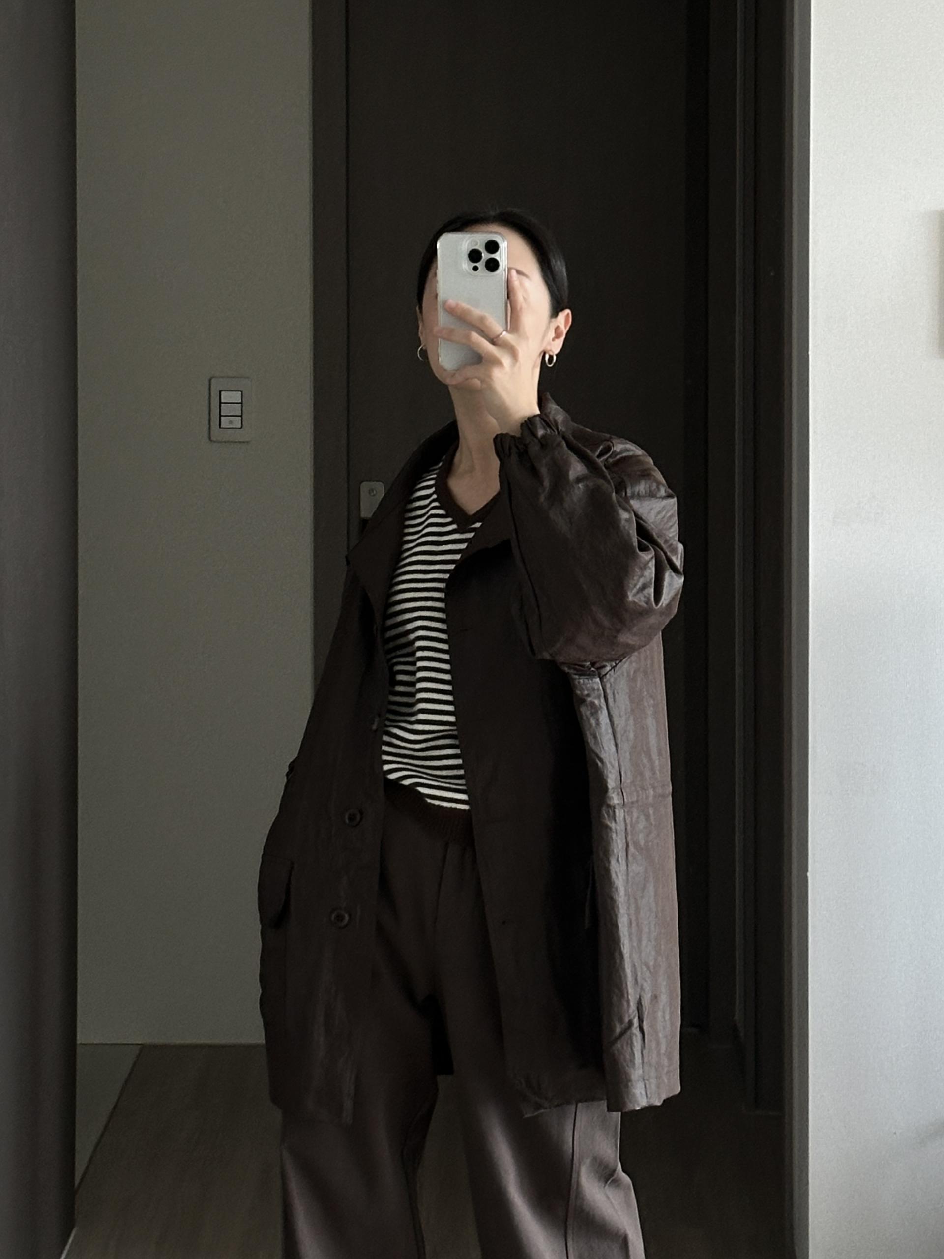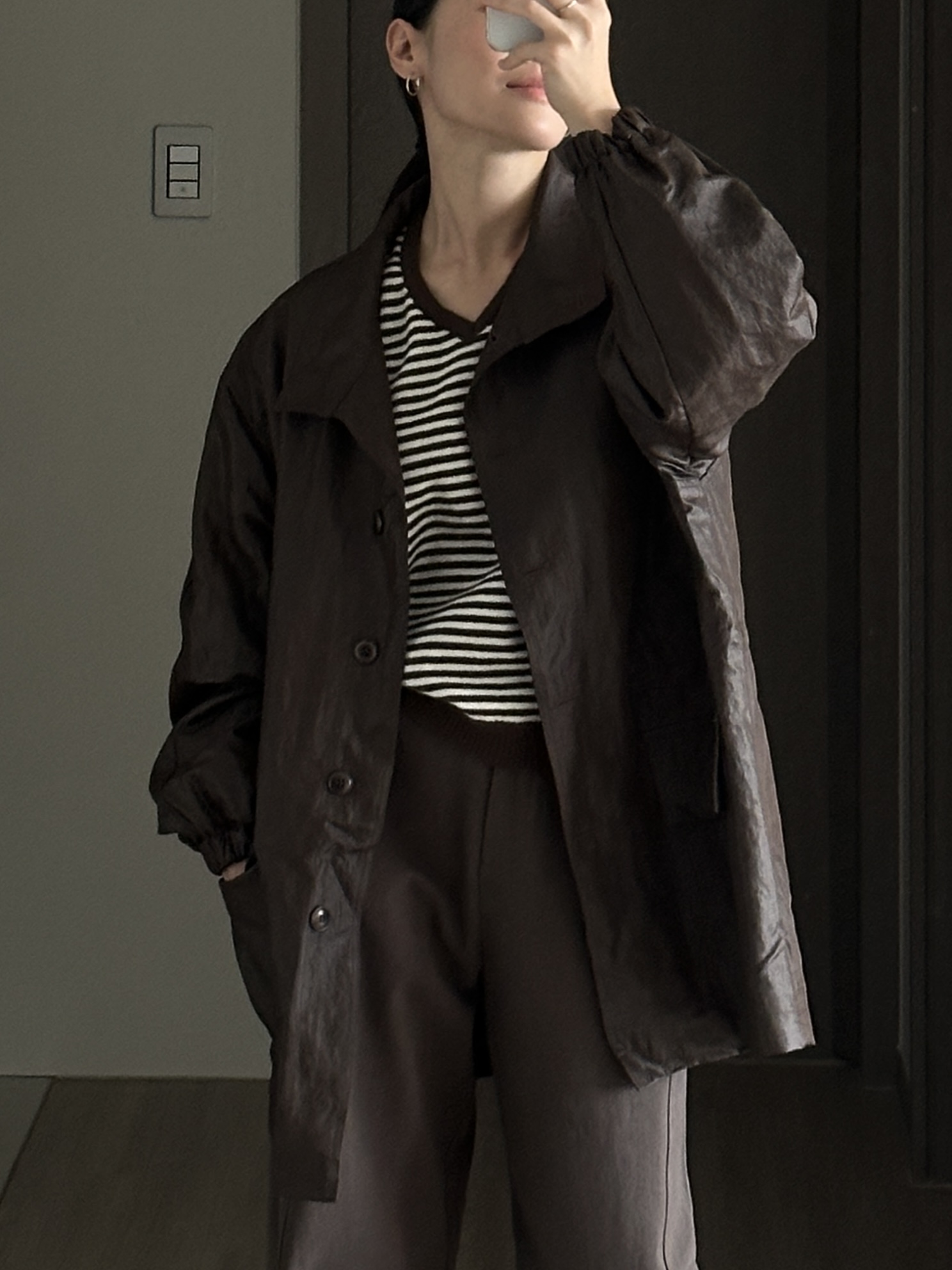 러프한 실루엣에 은은한 광택이 감도는 소재가