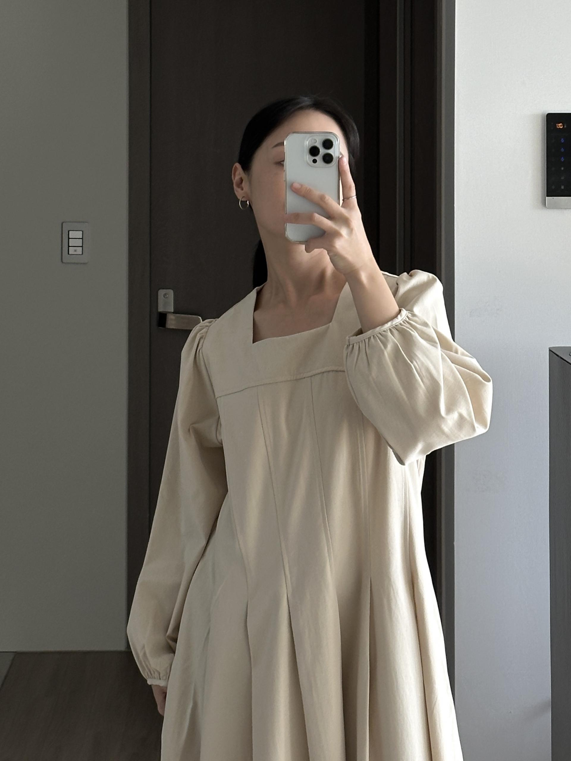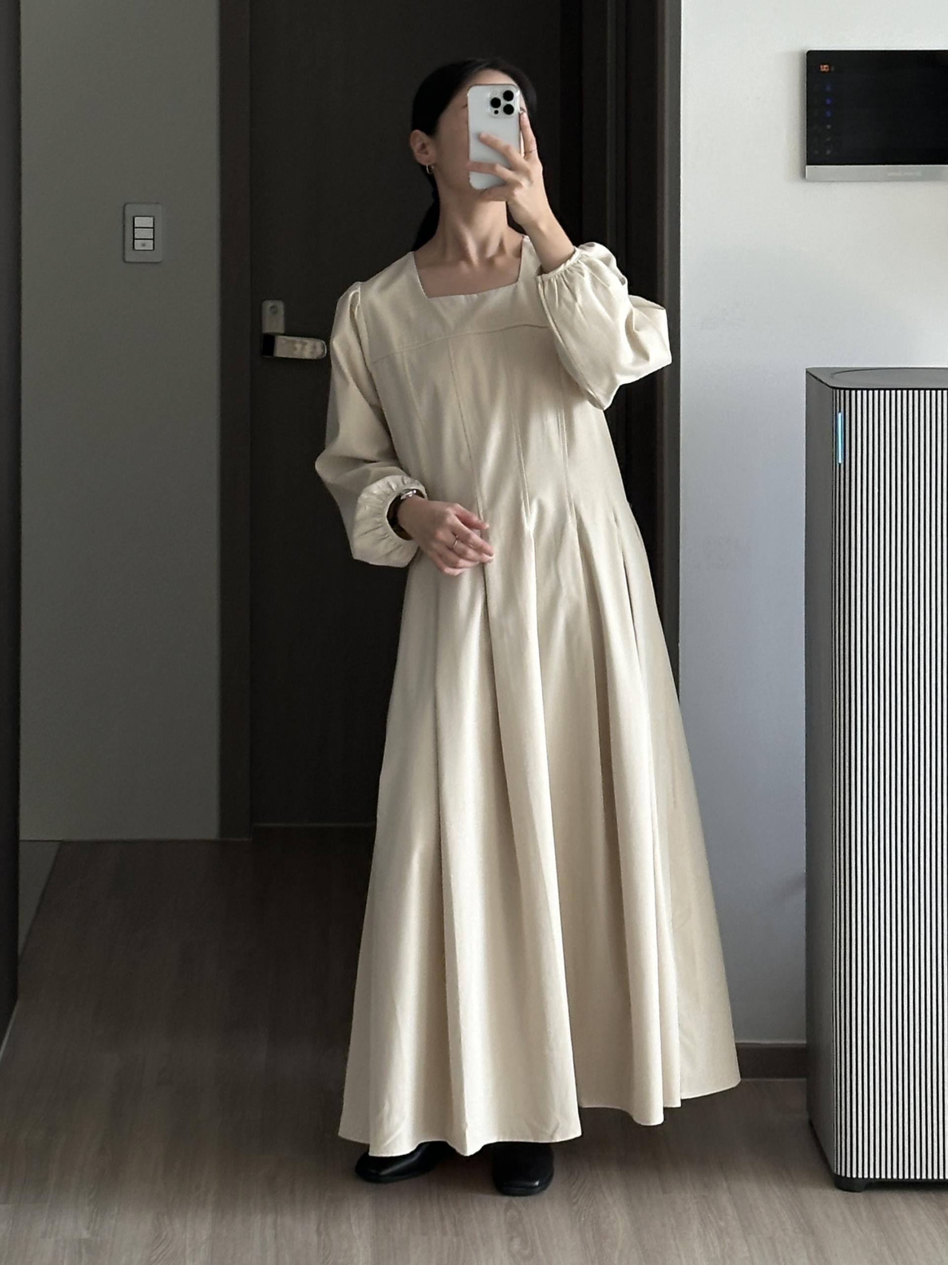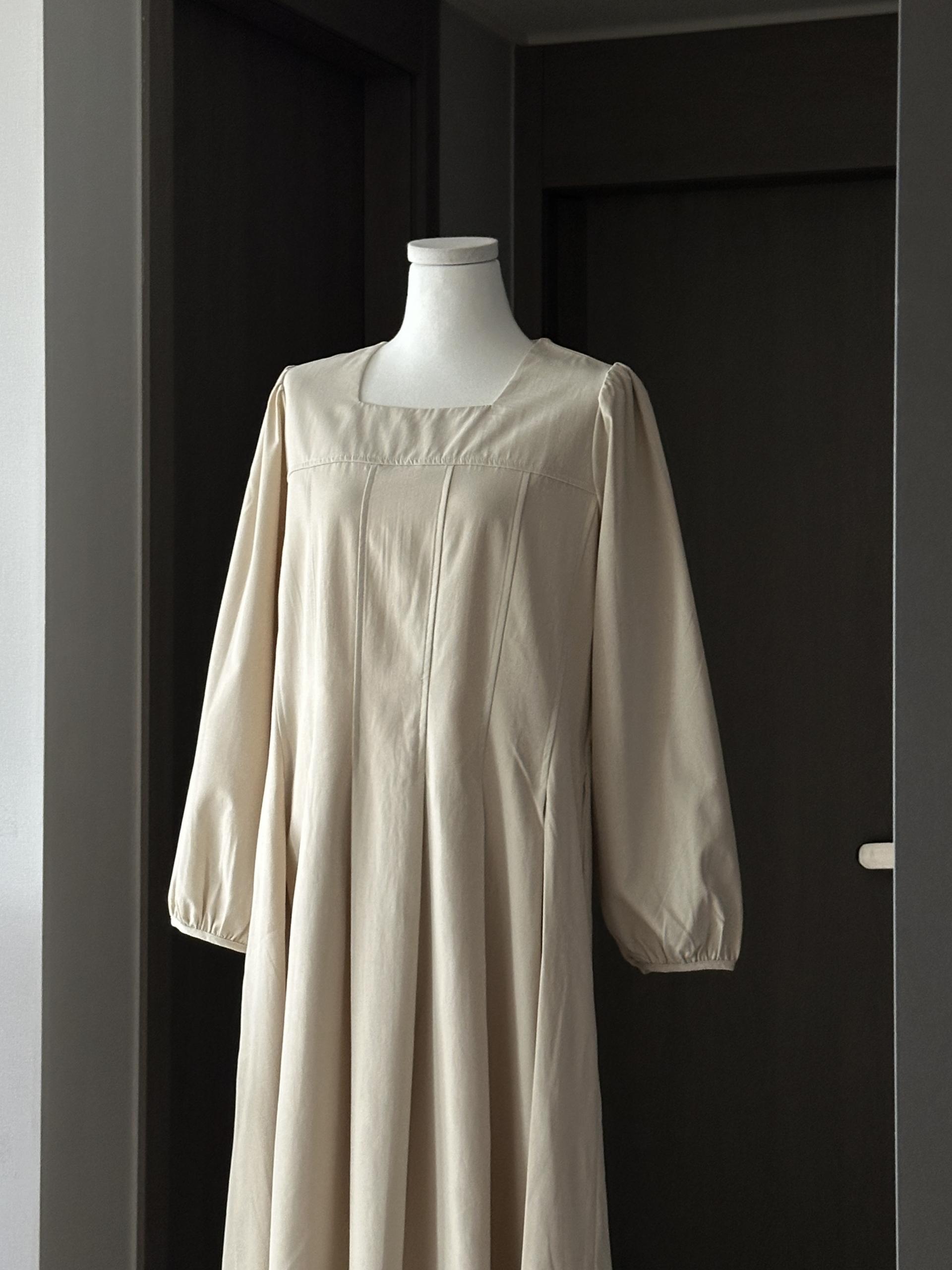 완만한 스퀘어 네크라인으로 깔끔하고 단정하며