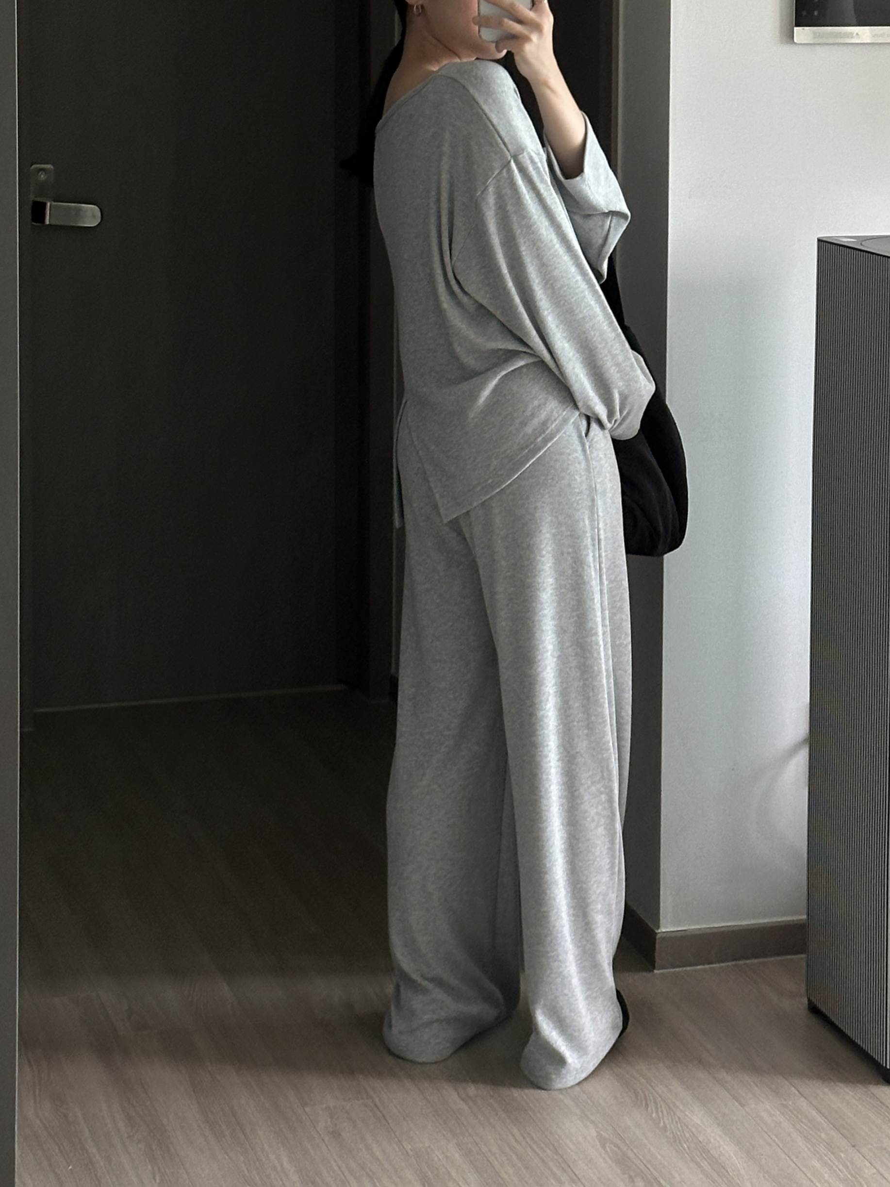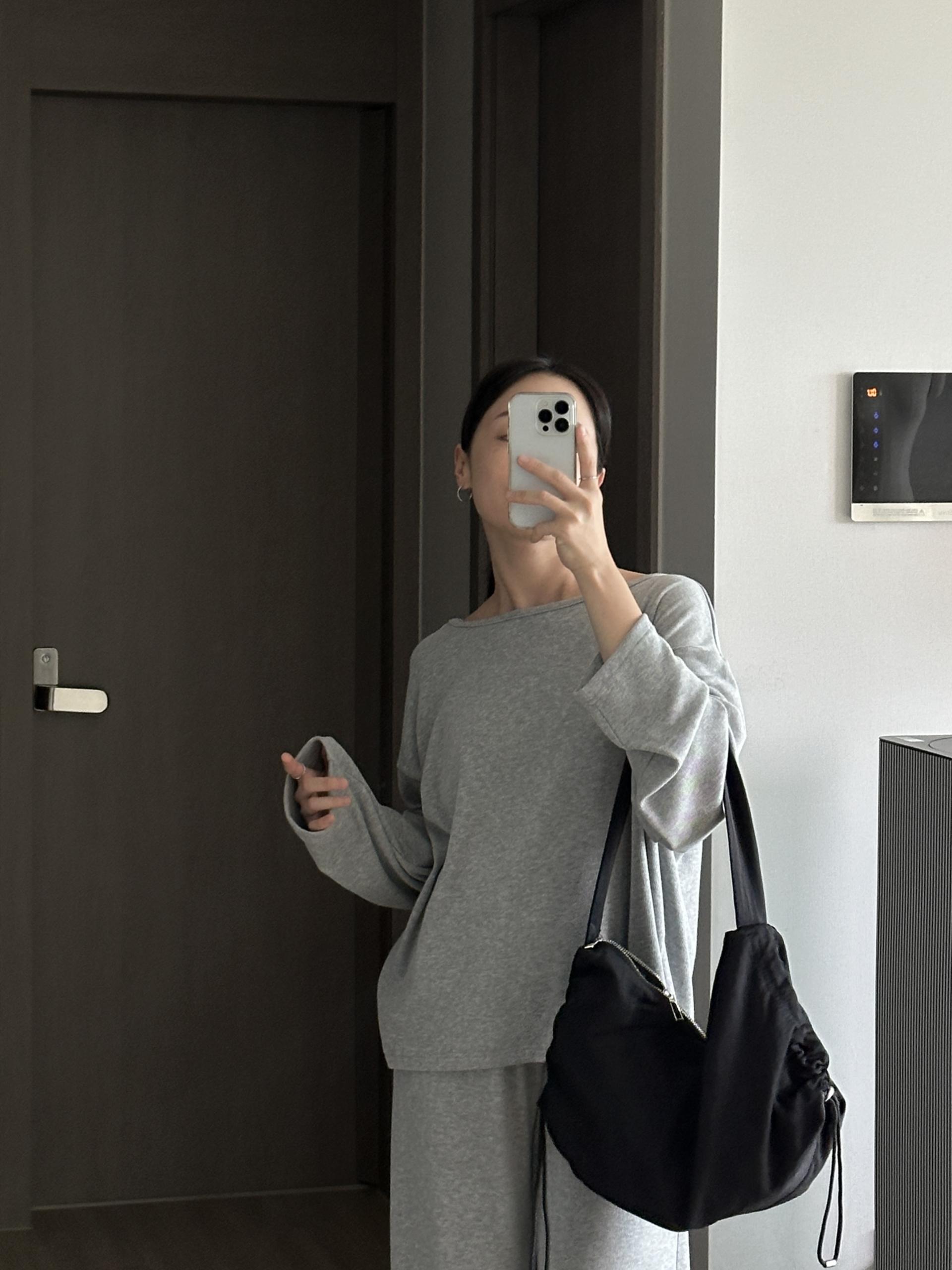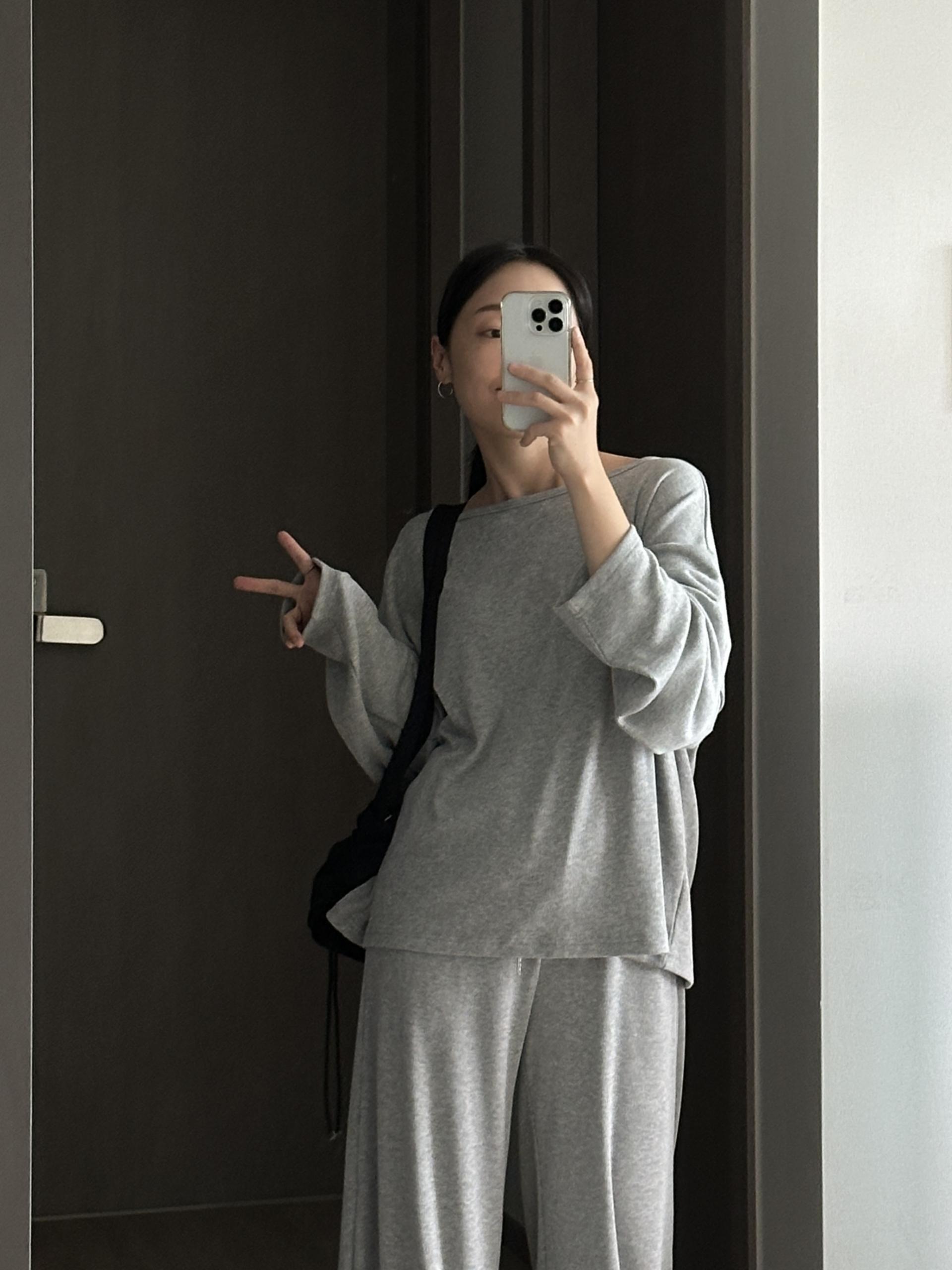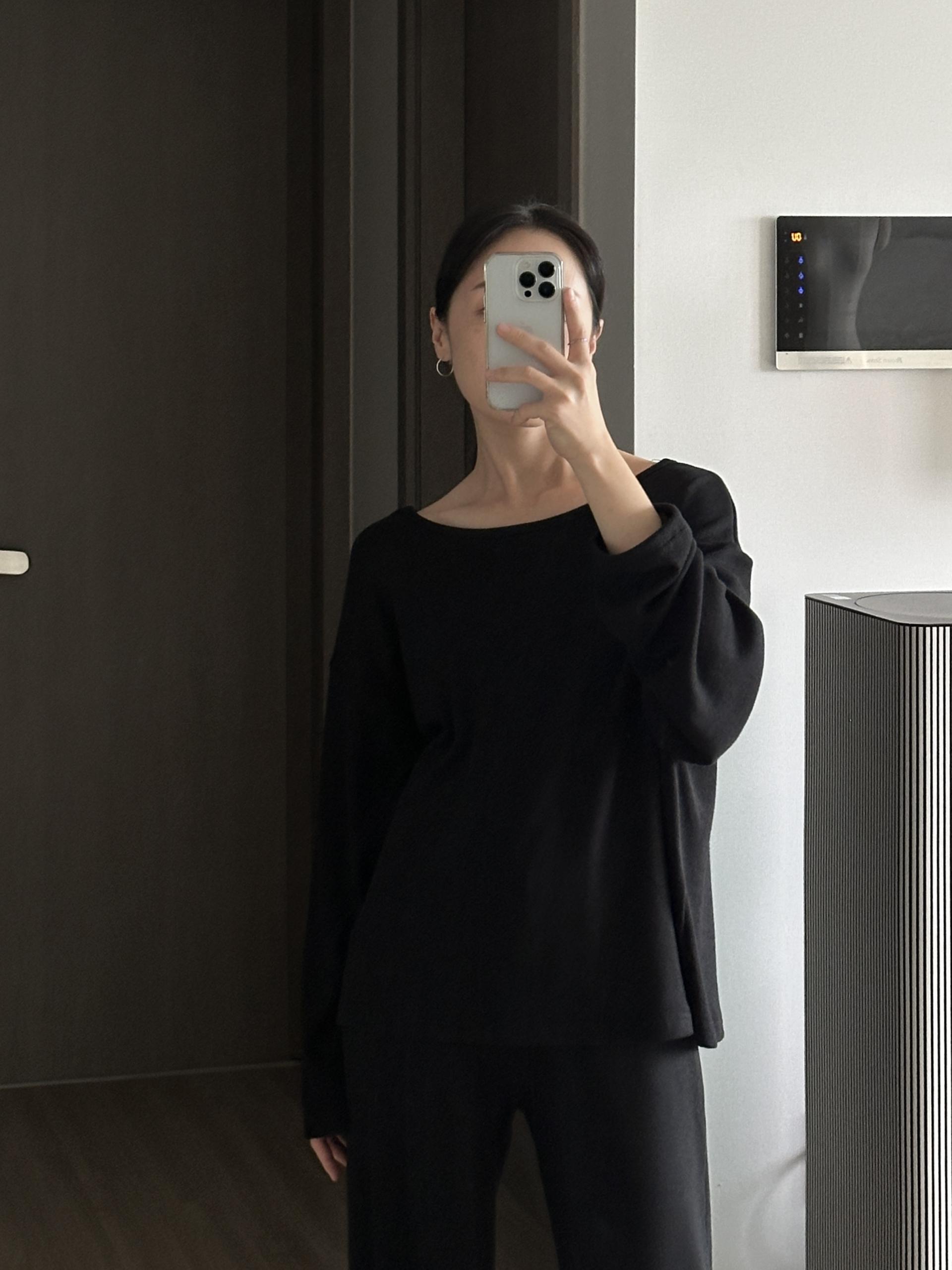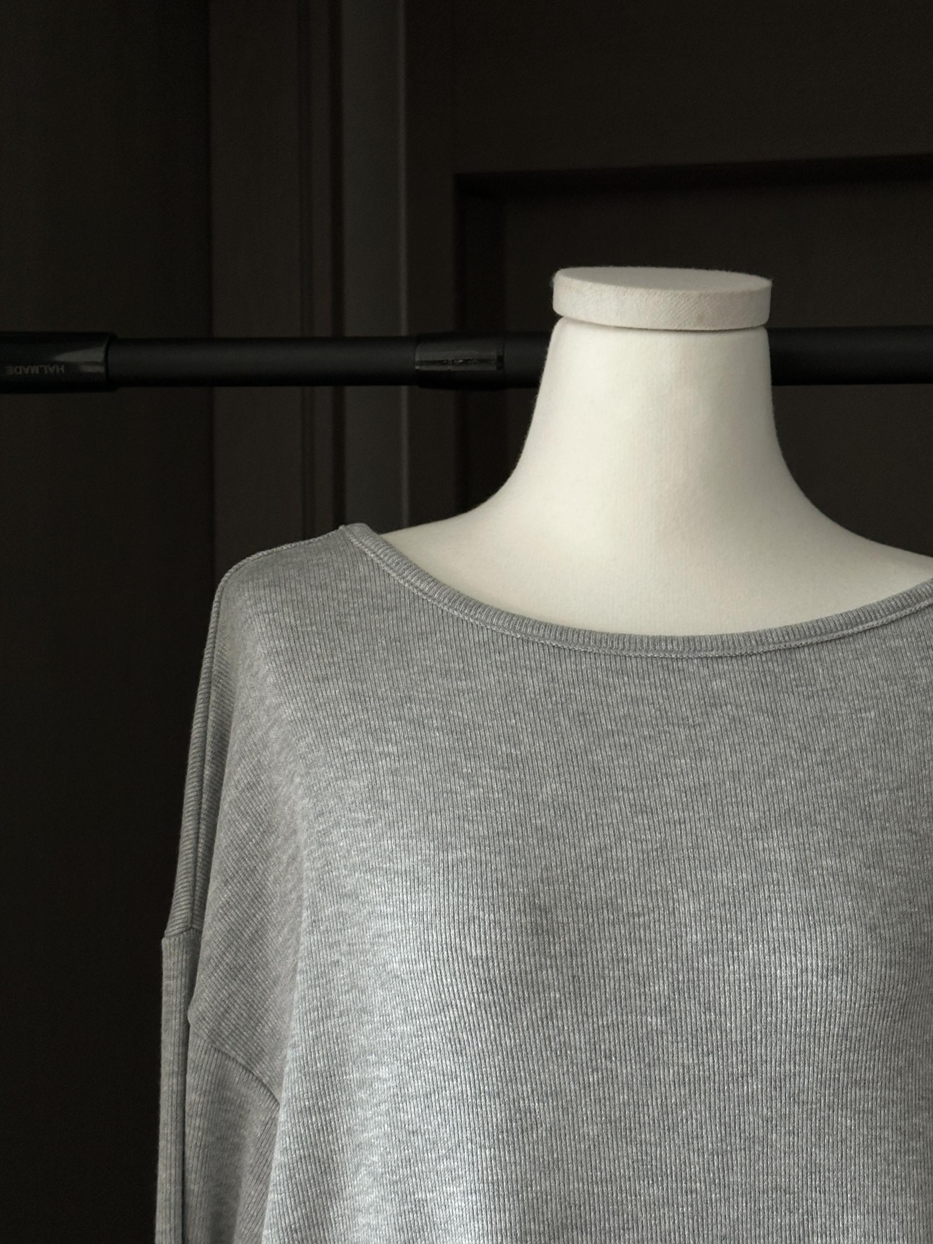살짝 보트넥 형태로 목선이 길고 깔끔하게