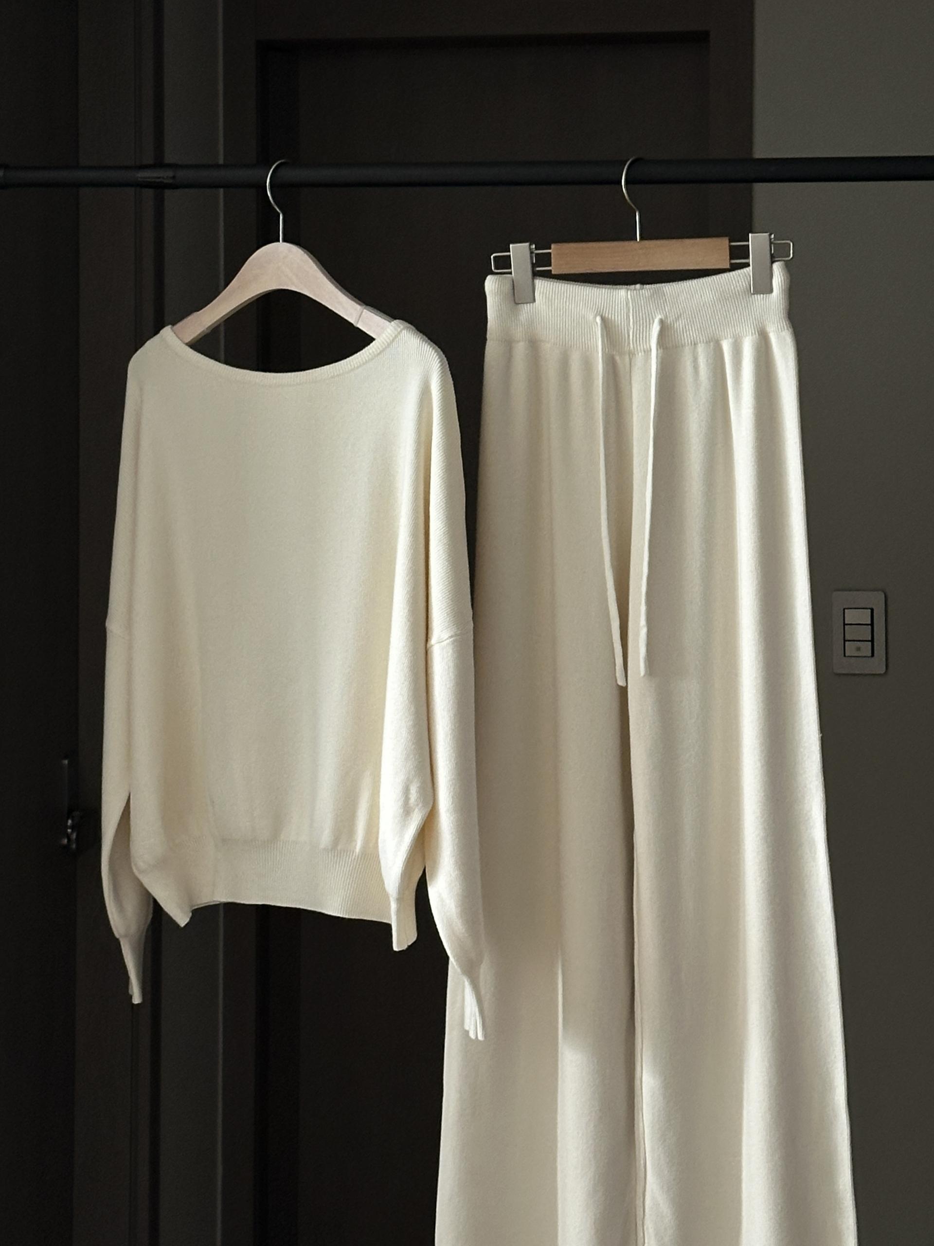 상의 니트는 루즈핏 풀오버 형태 어깨선이 자연스레