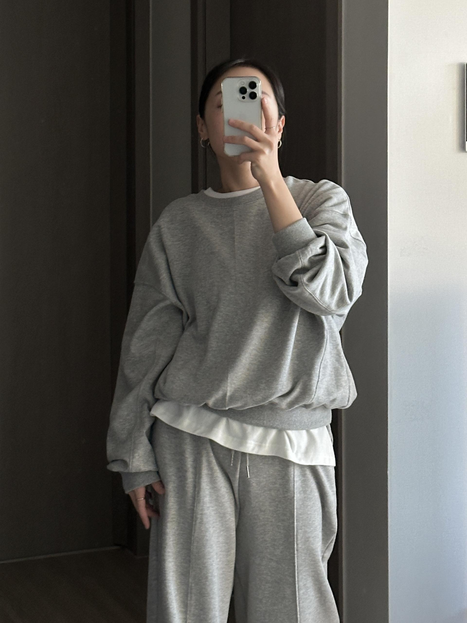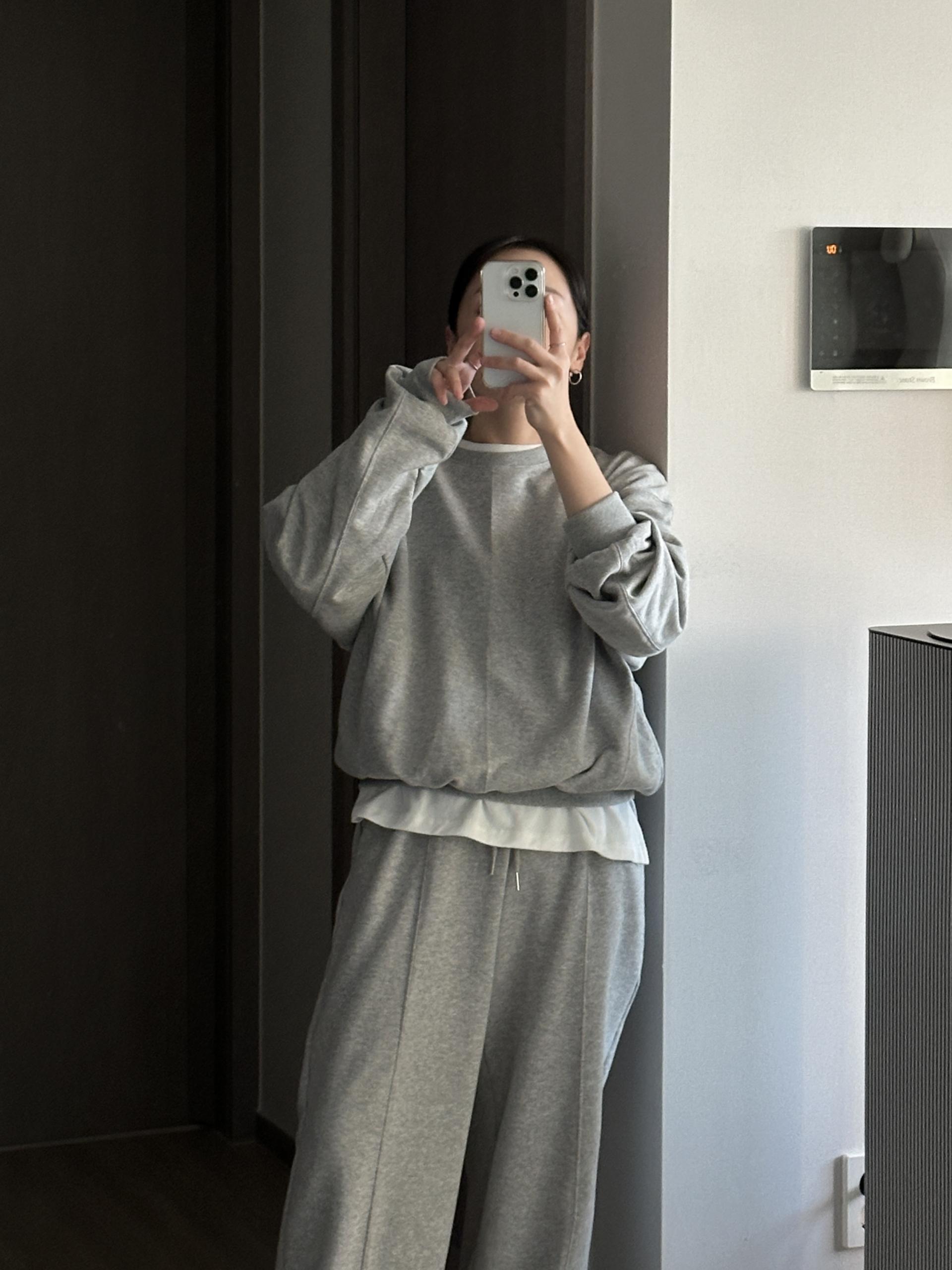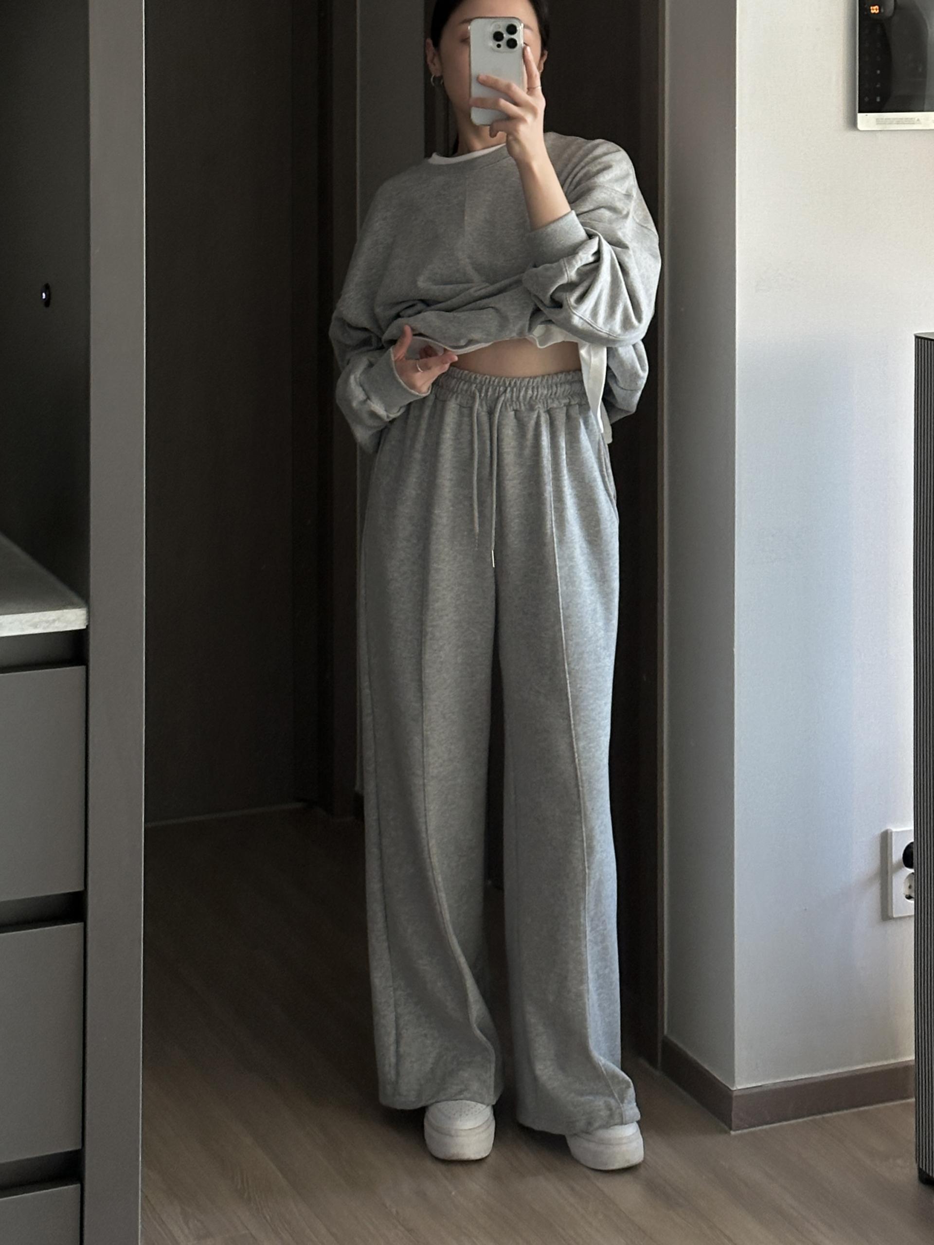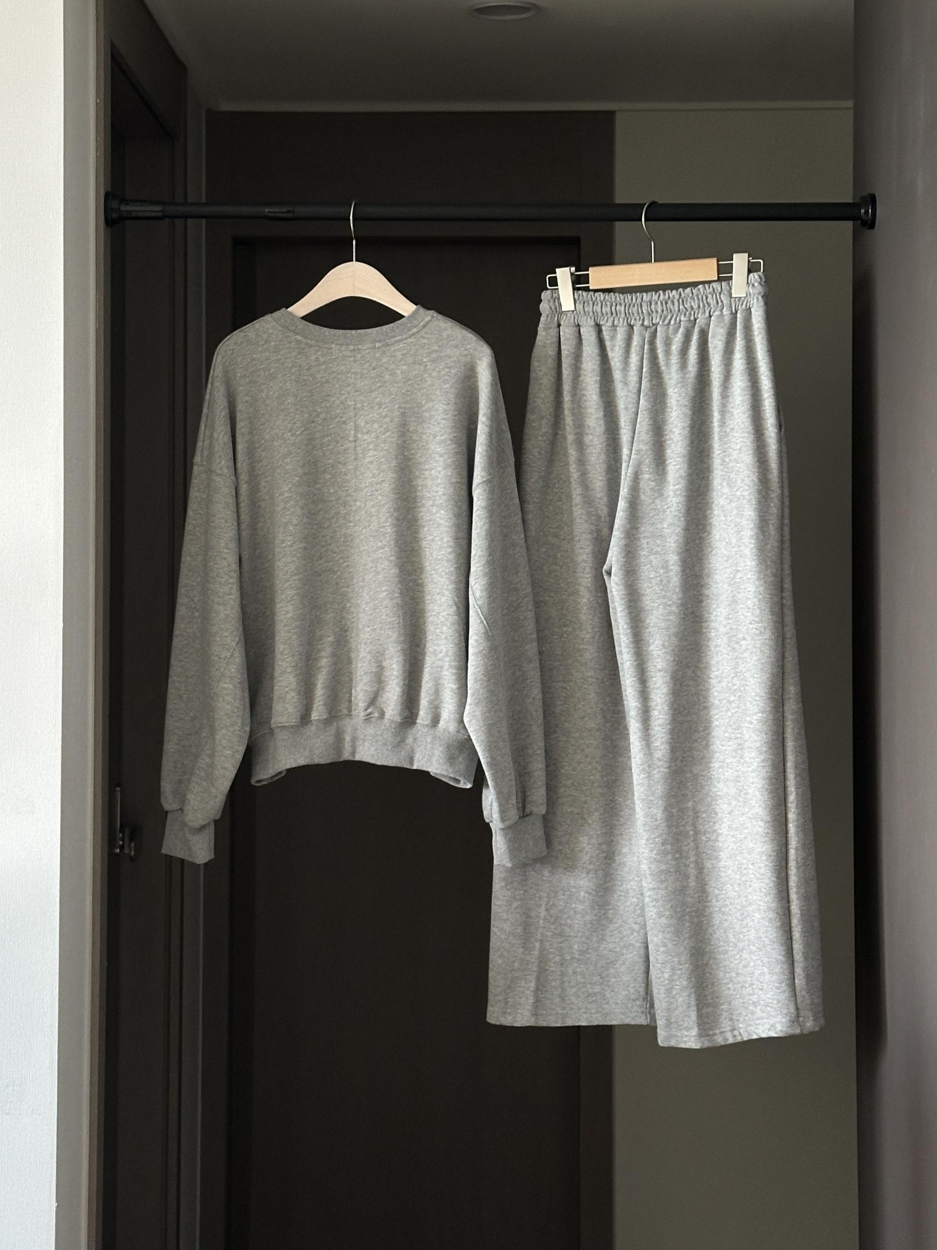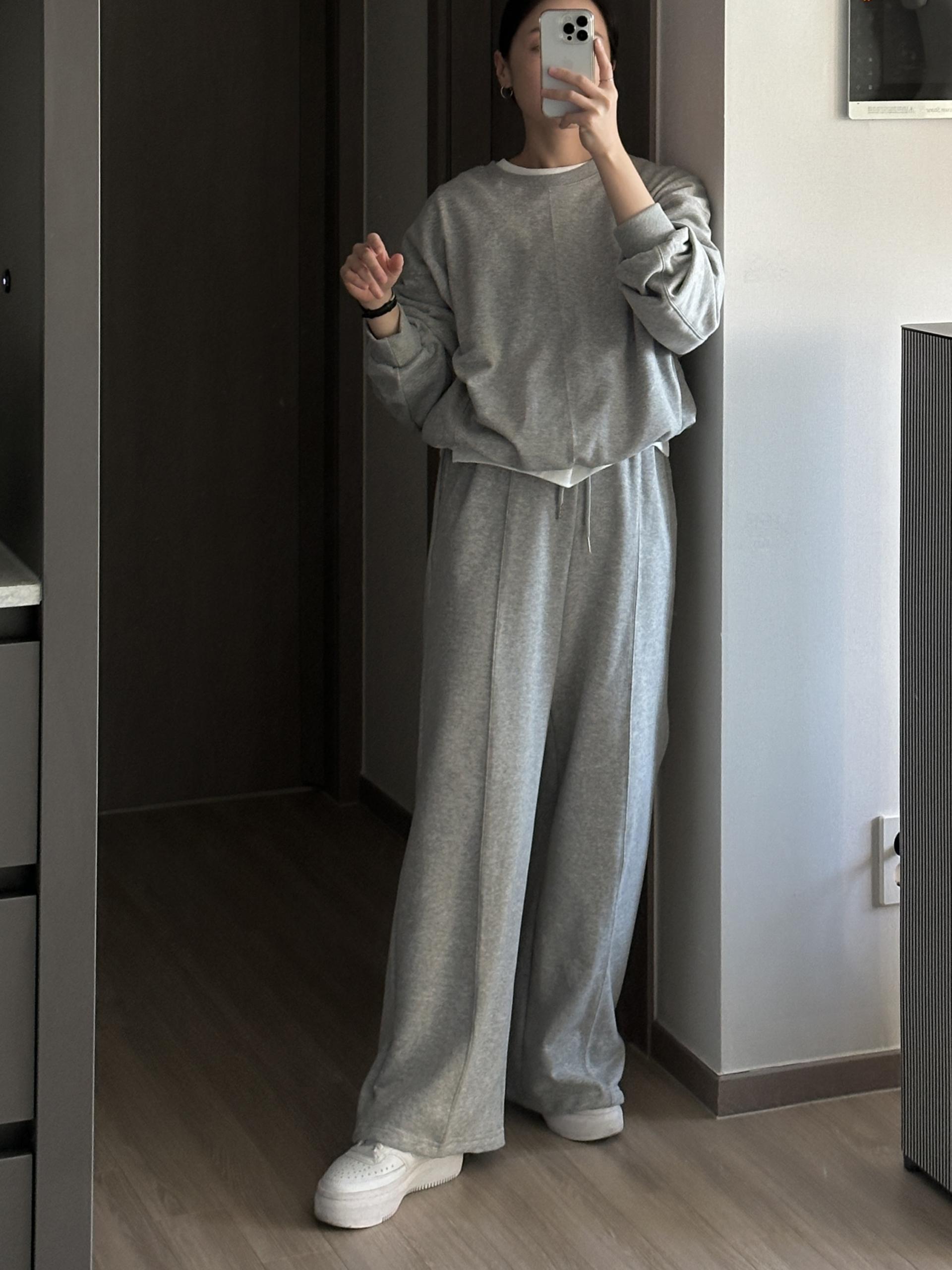 루즈핏 맨투맨 와이드 팬츠 구성의 캐쥬얼 세트에요.