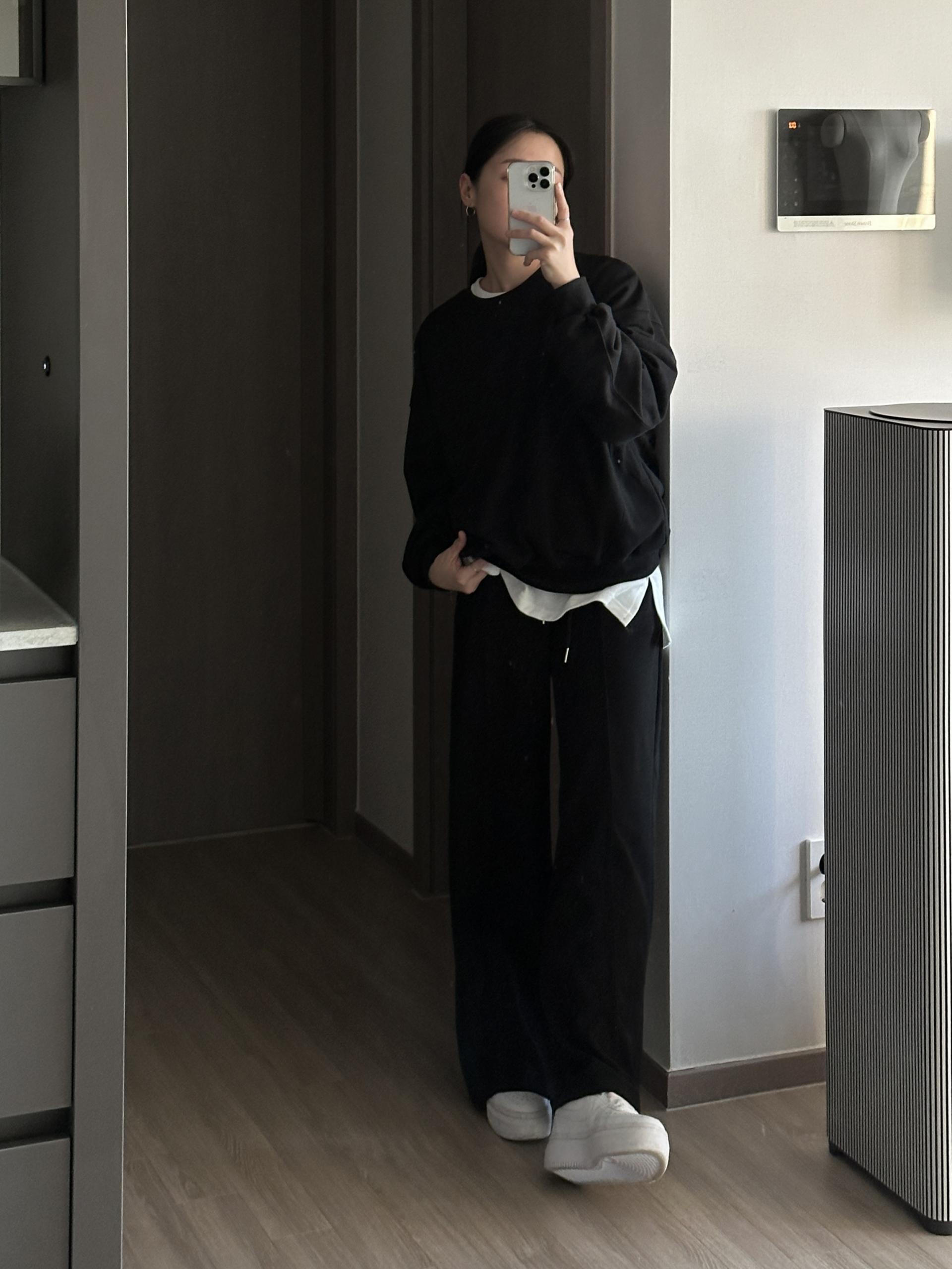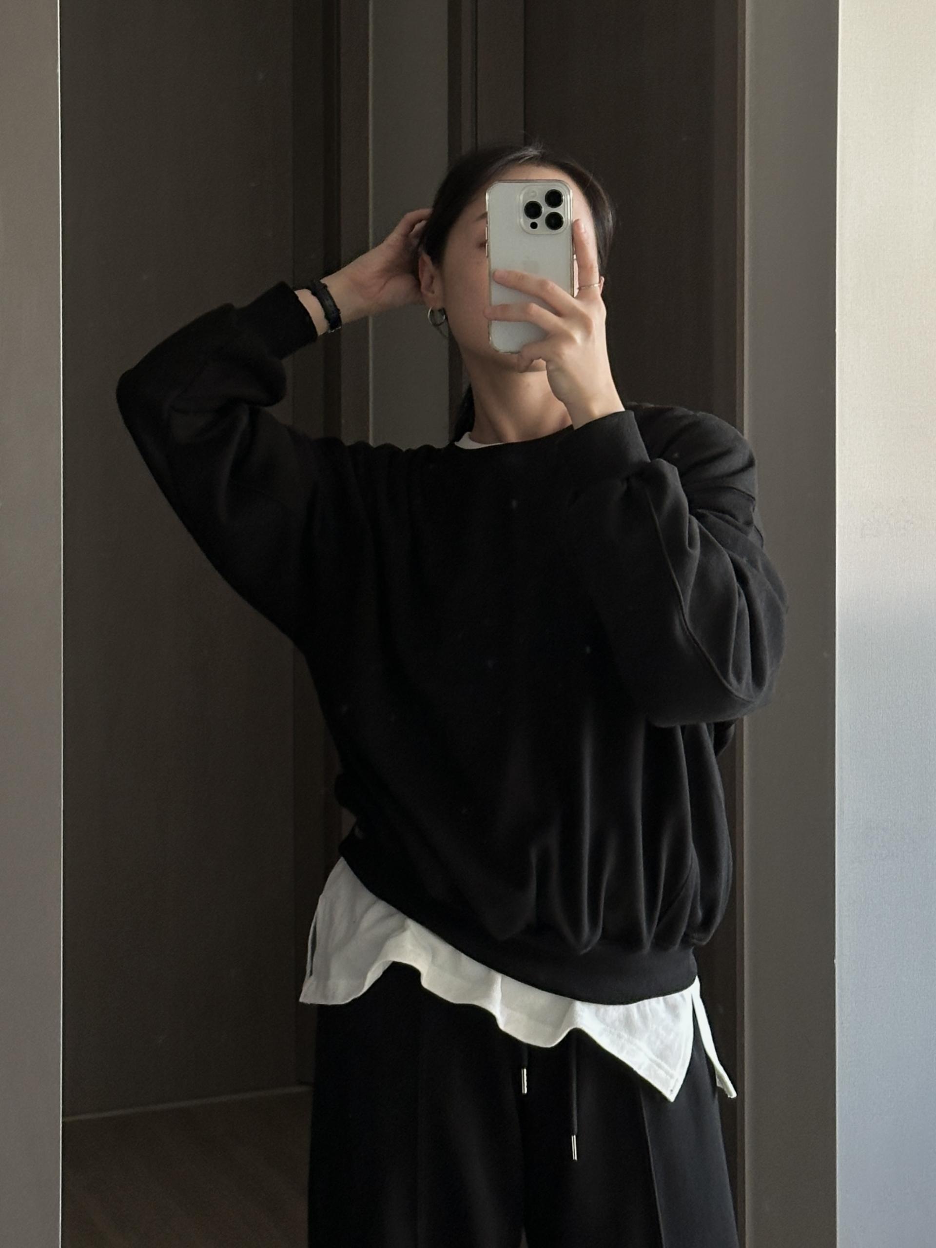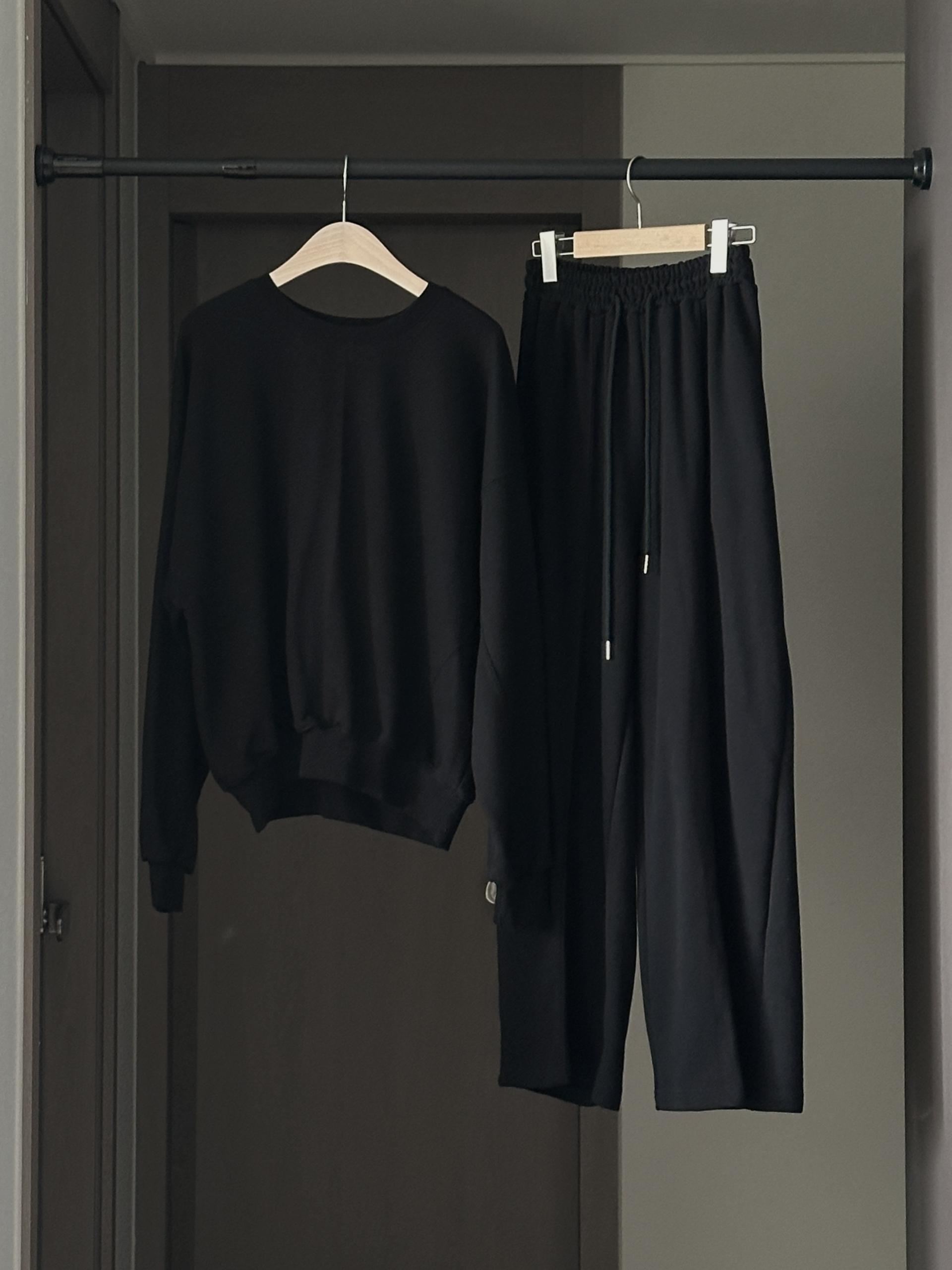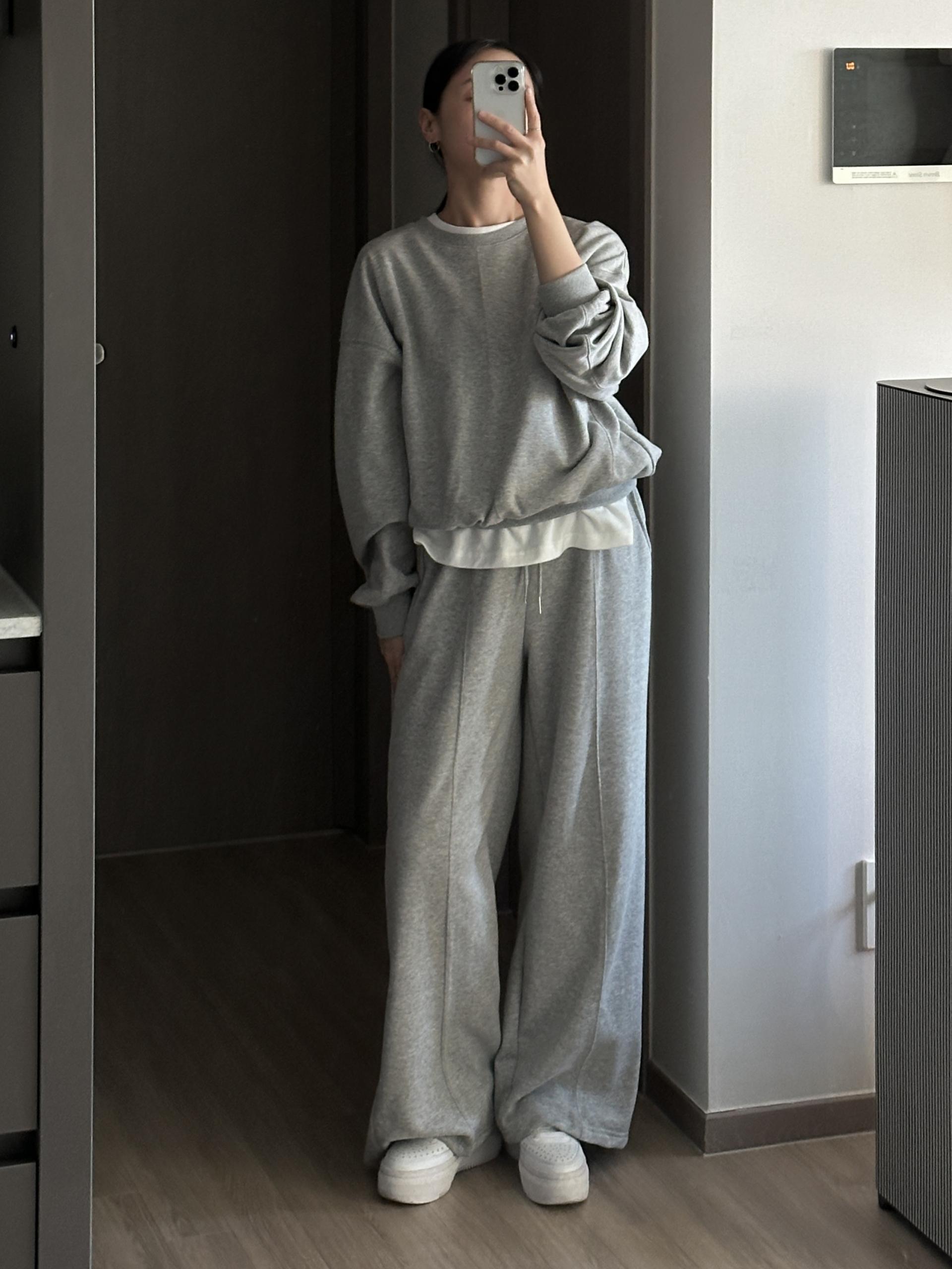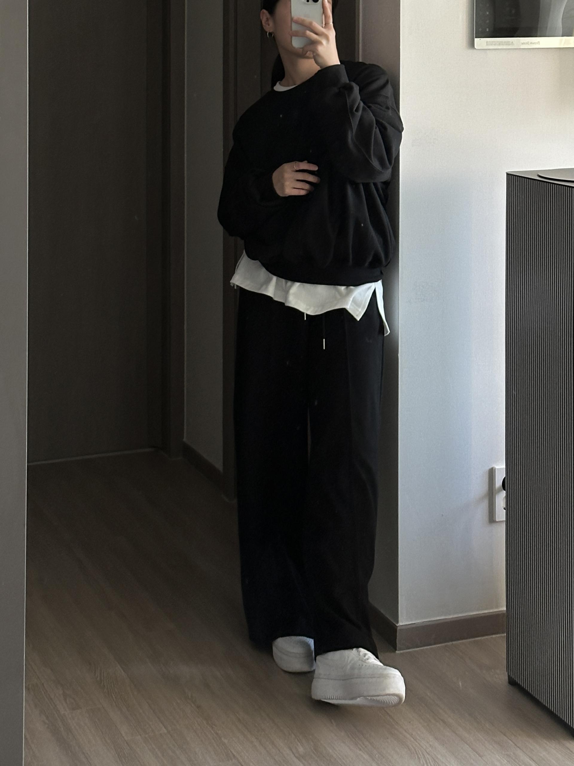 루즈핏 맨투맨 와이드 팬츠 구성의 캐쥬얼 세트에요.