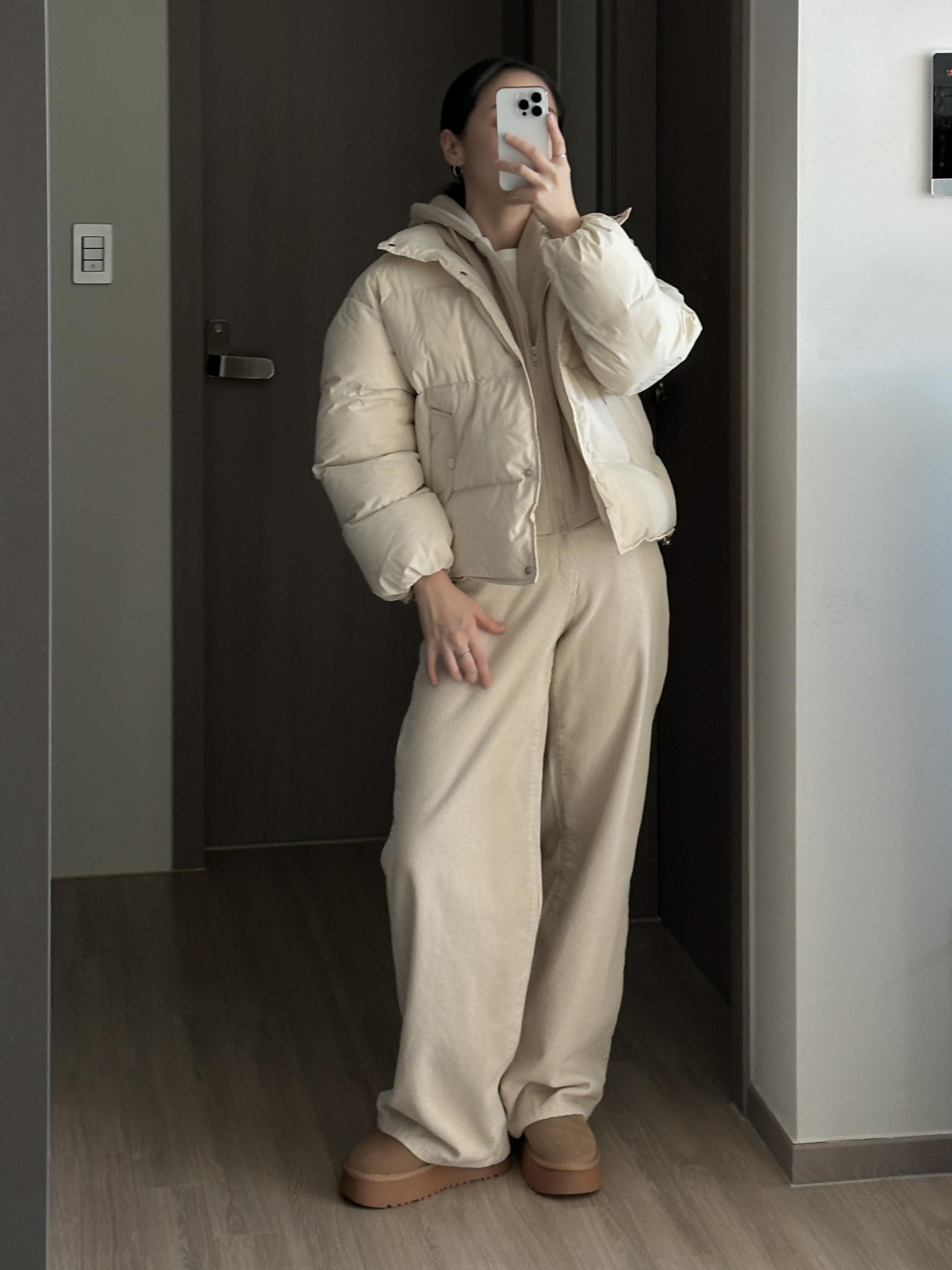 약간 숏한 기장감으로 다양한 하의와 함께 밸런스 있게
