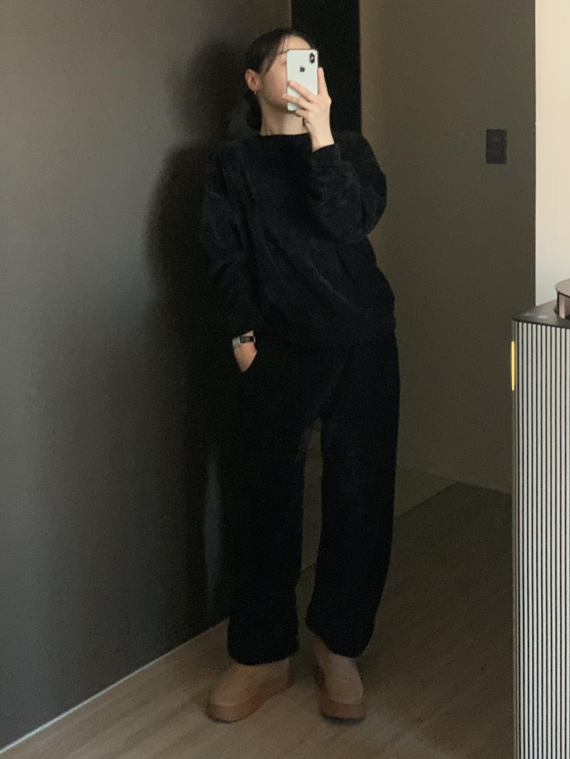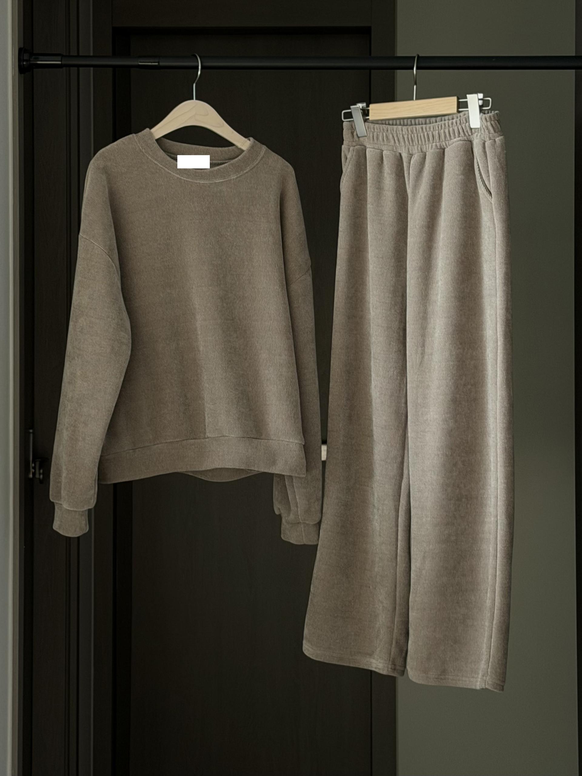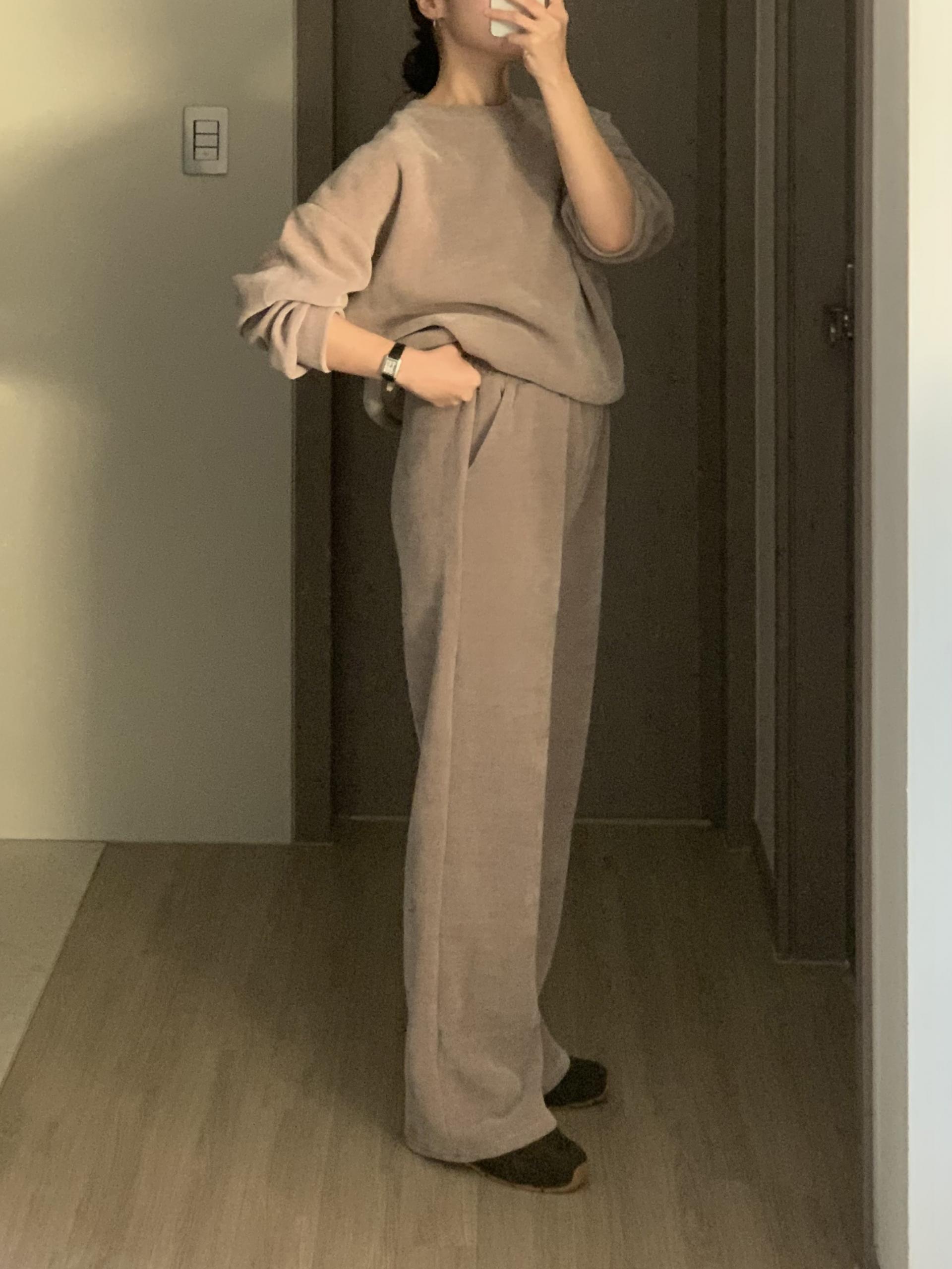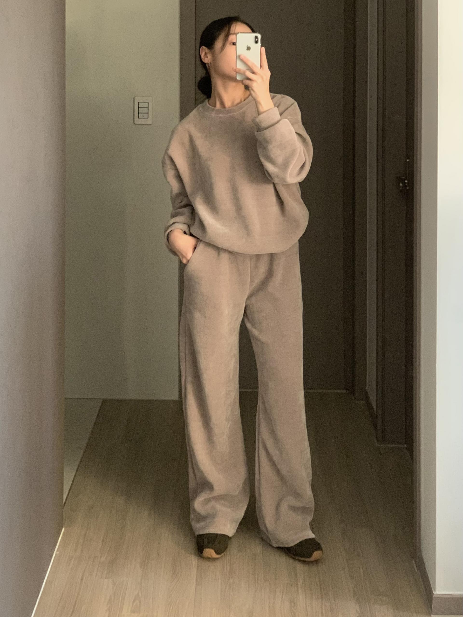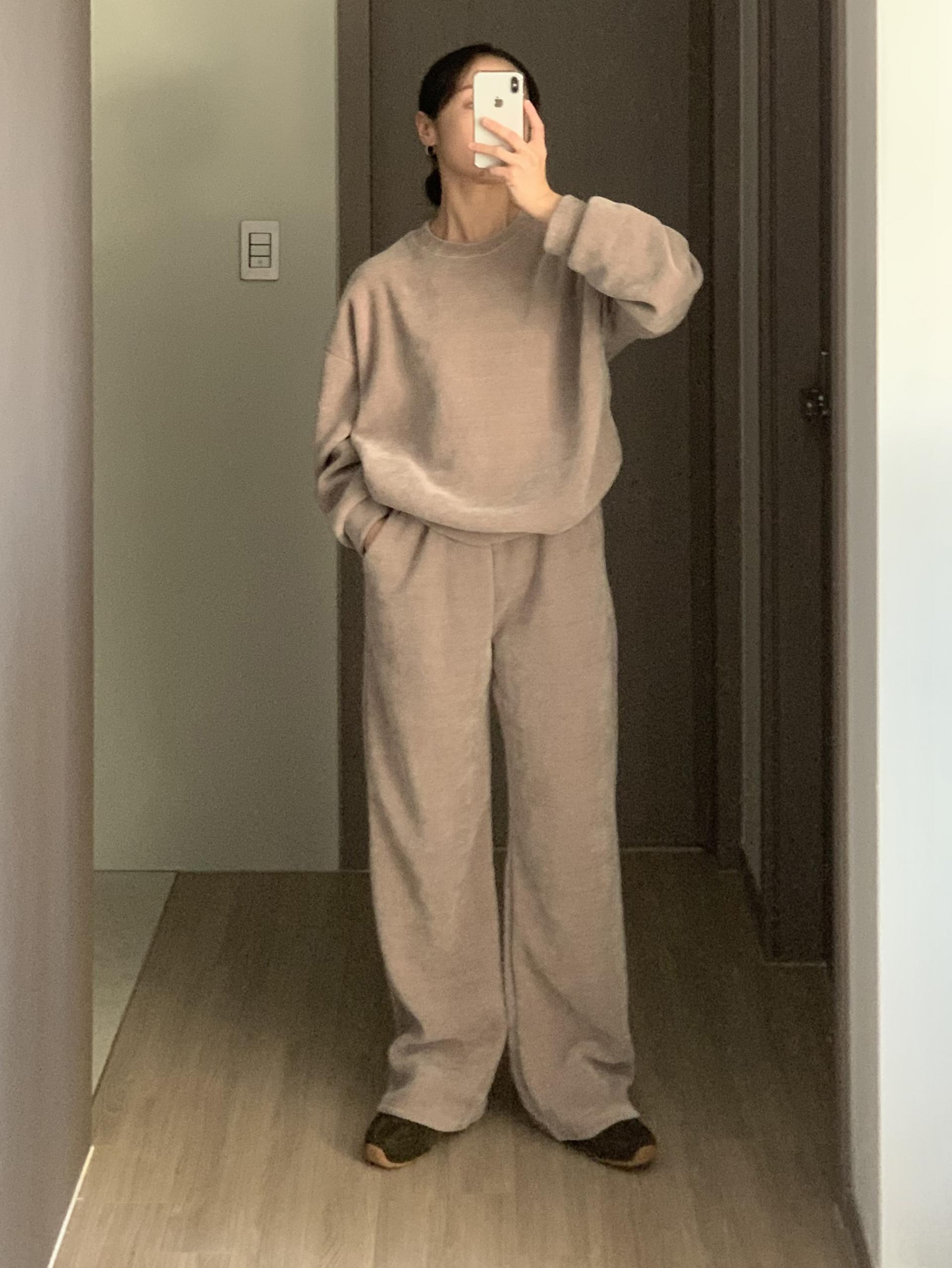깔끔한 맨투맨에 스트레이트 밴딩 팬츠 구성으로
