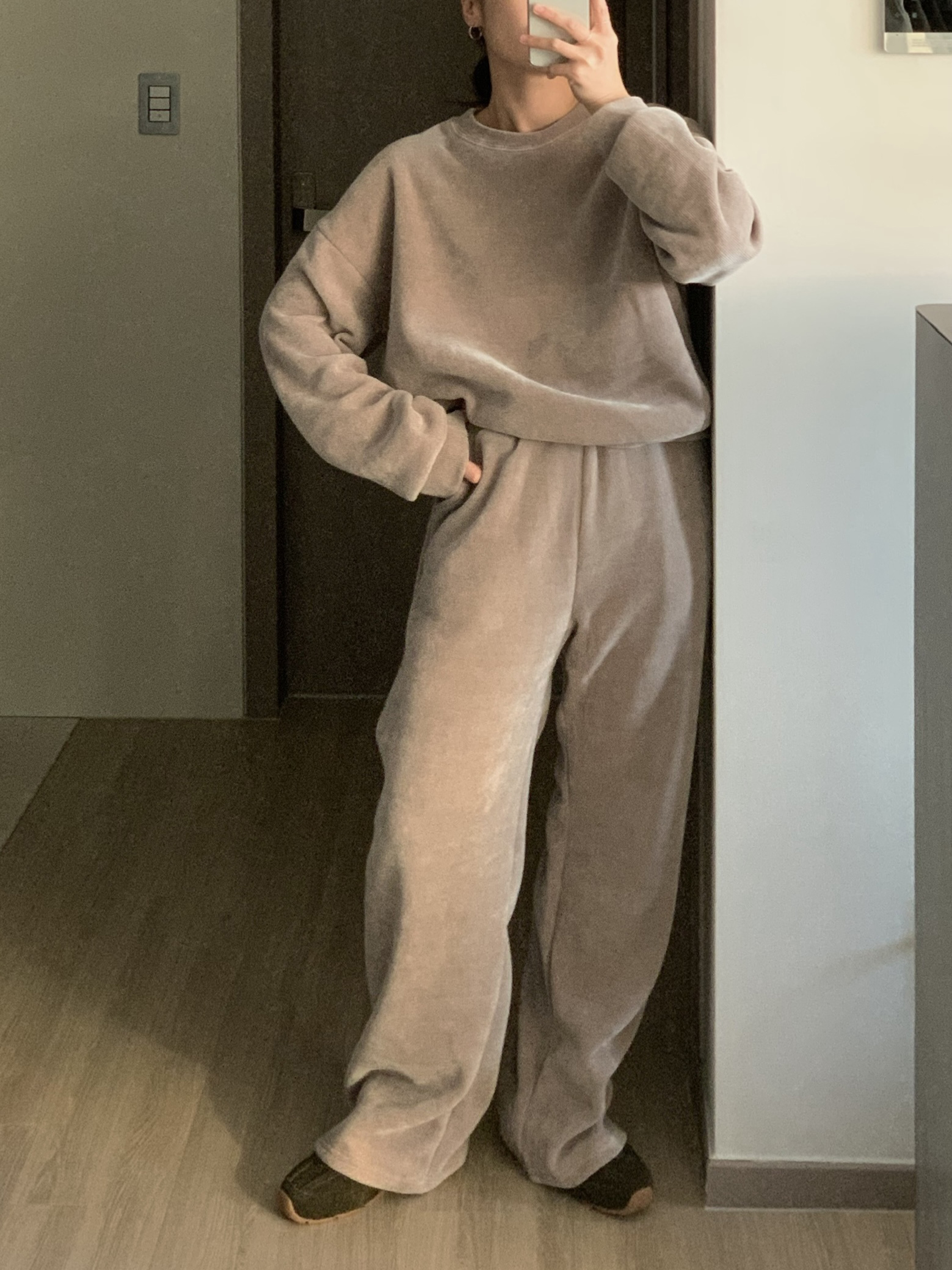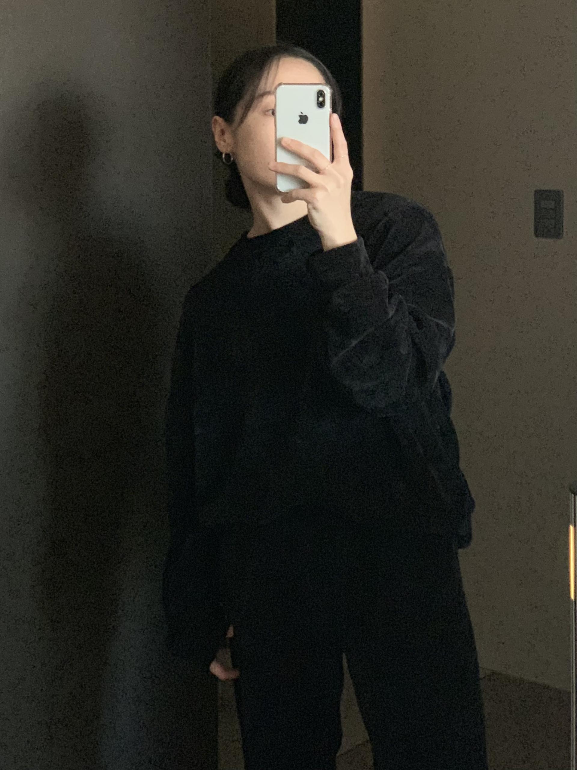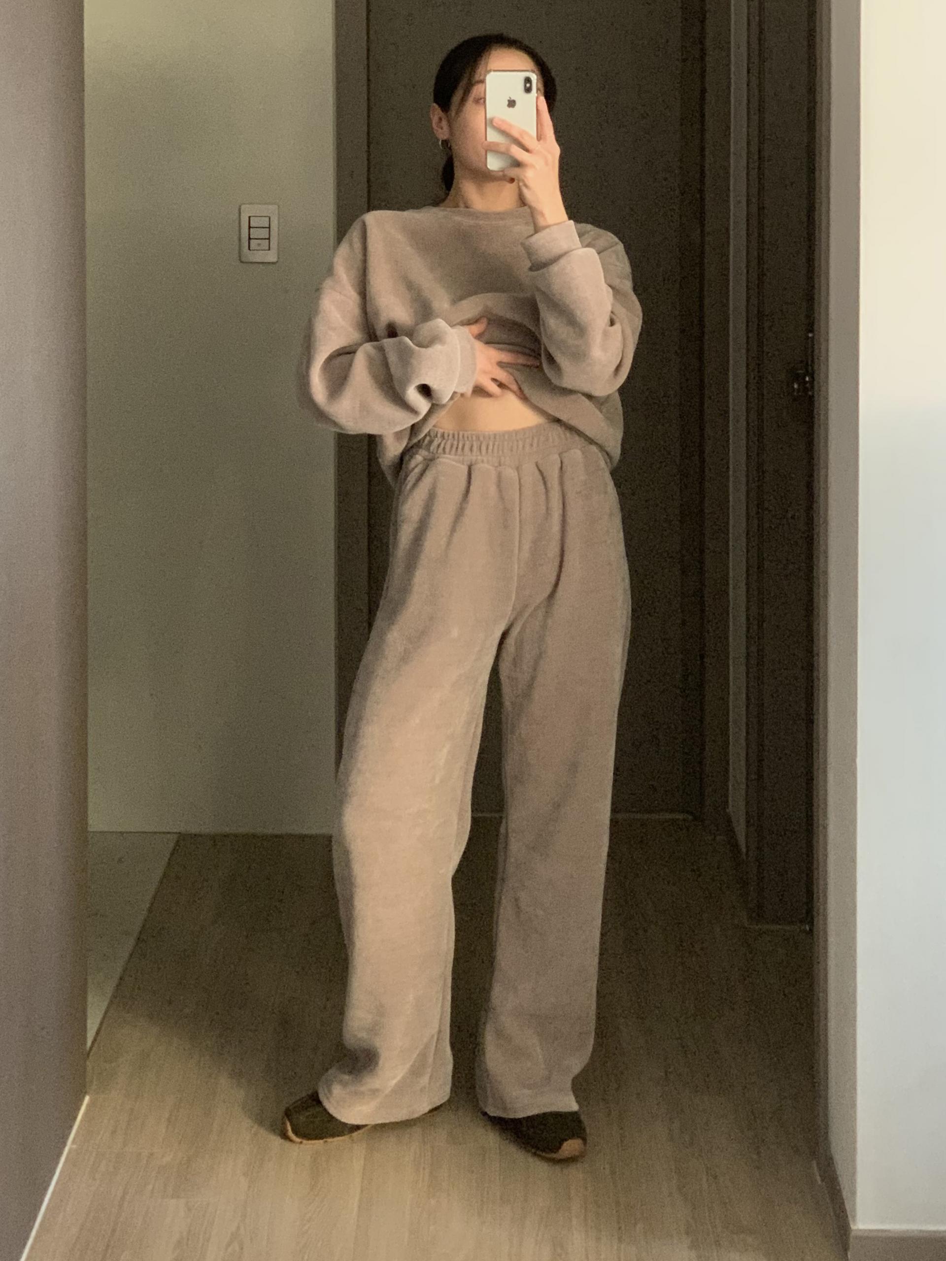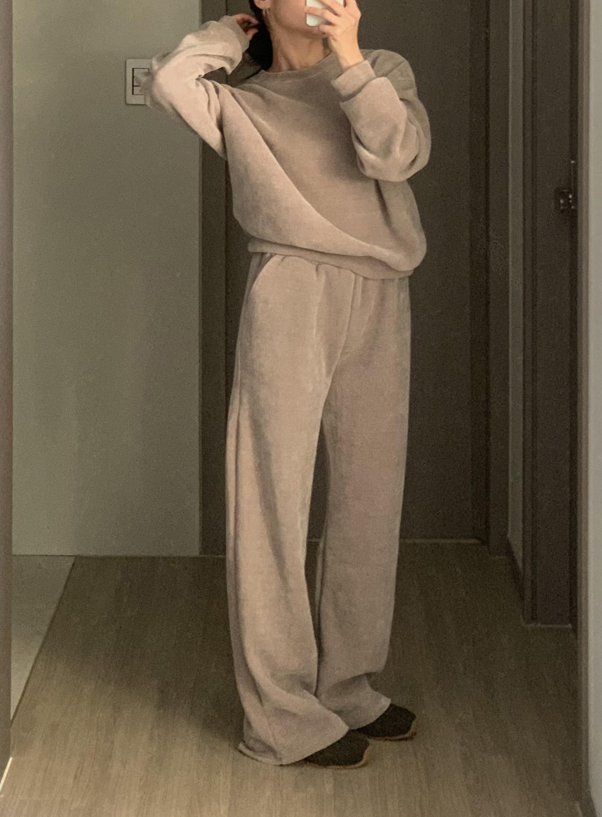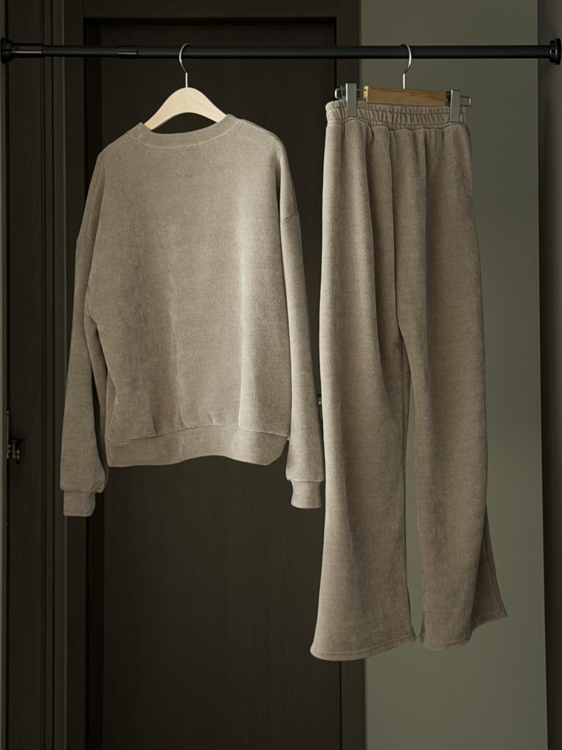 깔끔한 맨투맨에 스트레이트 밴딩 팬츠 구성으로