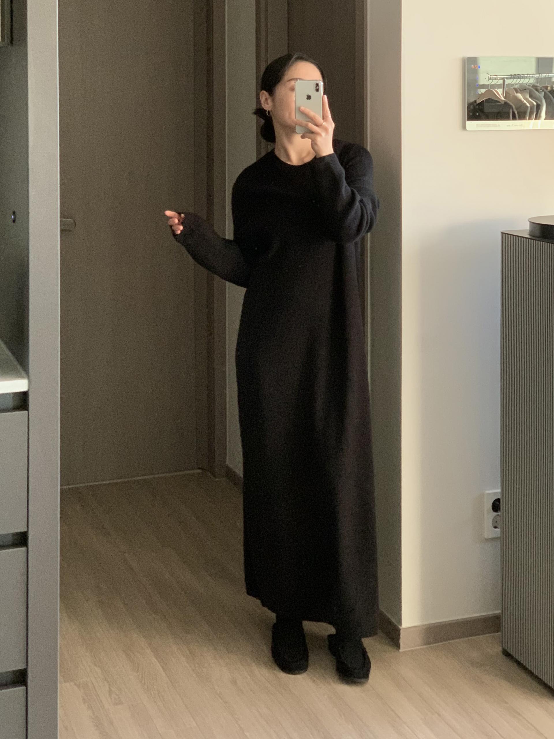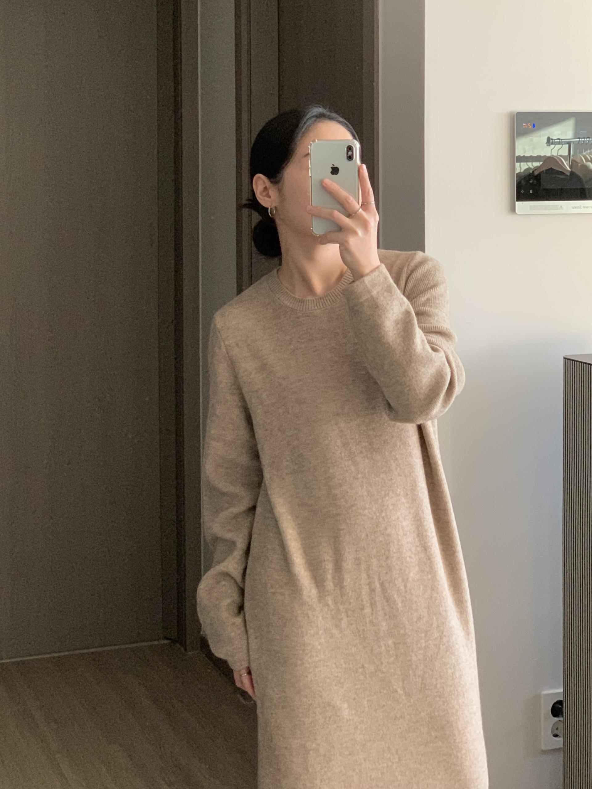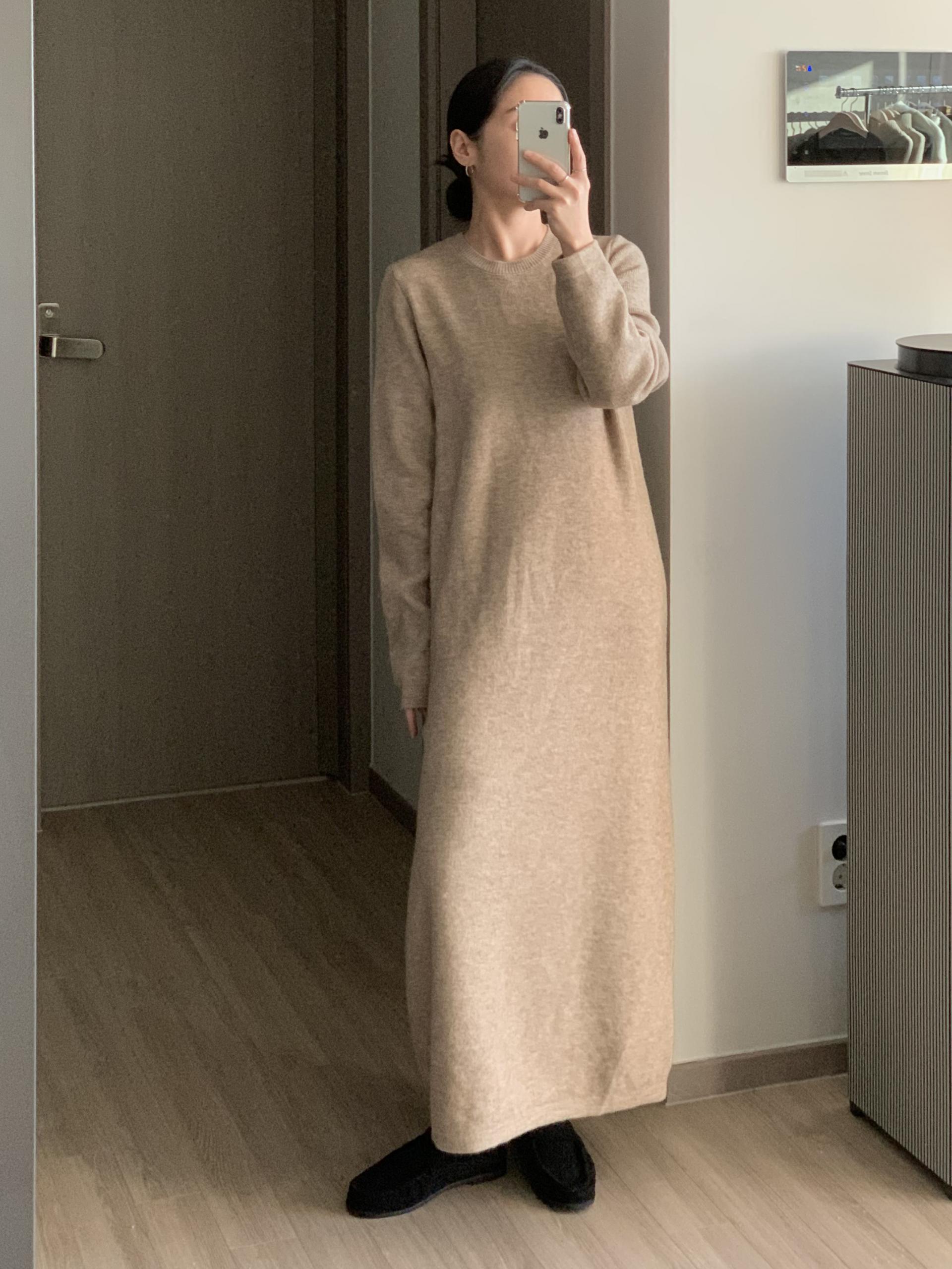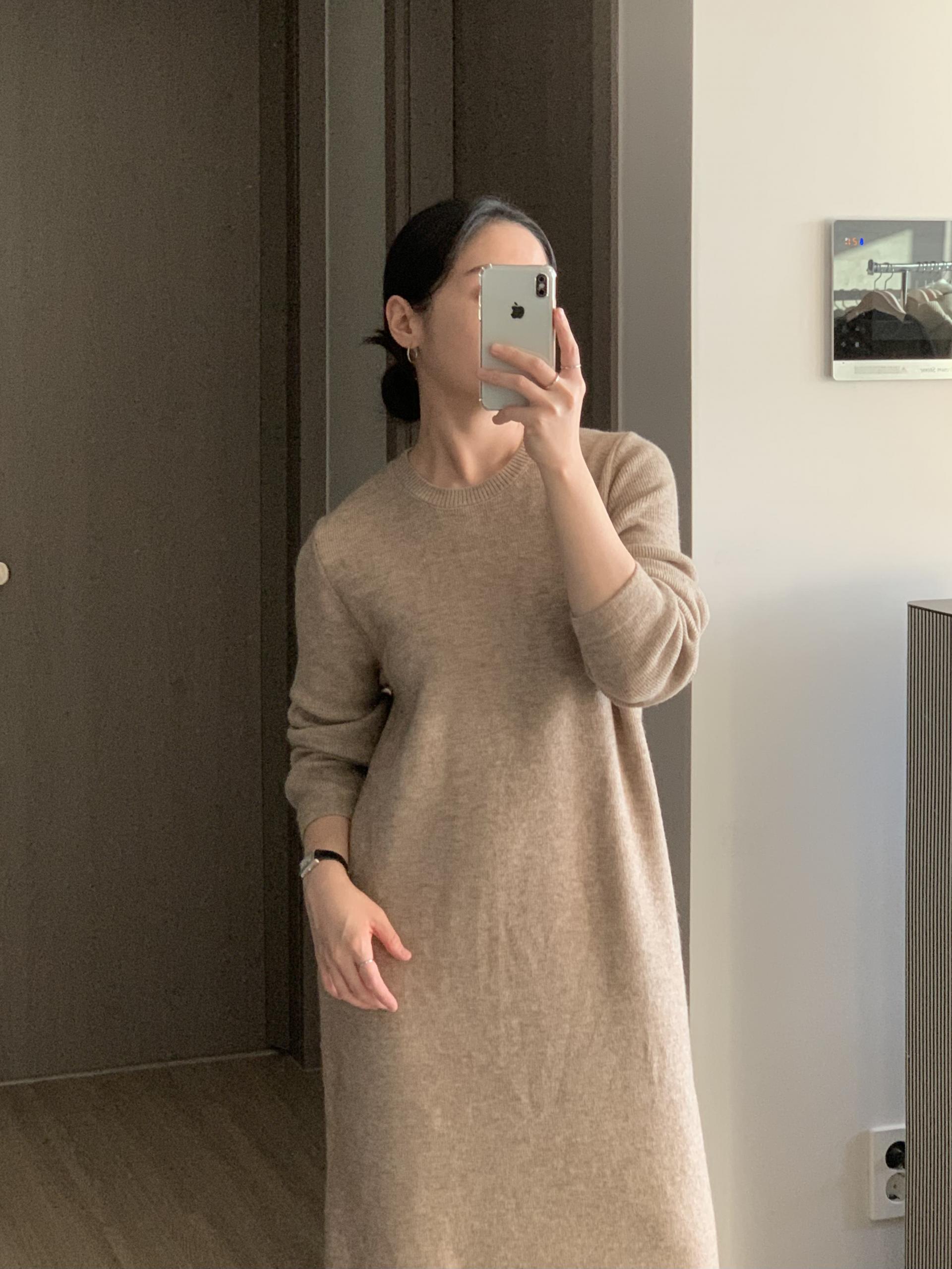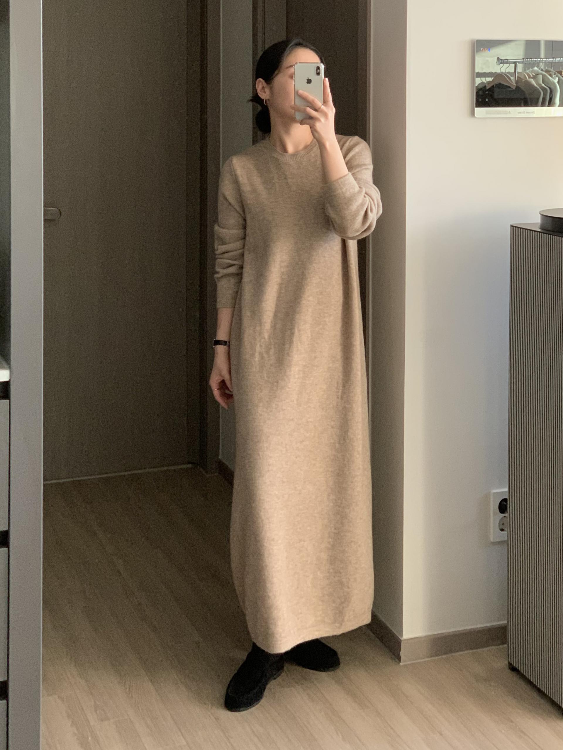 연출 되는 보테르 니트 원피스입니다.