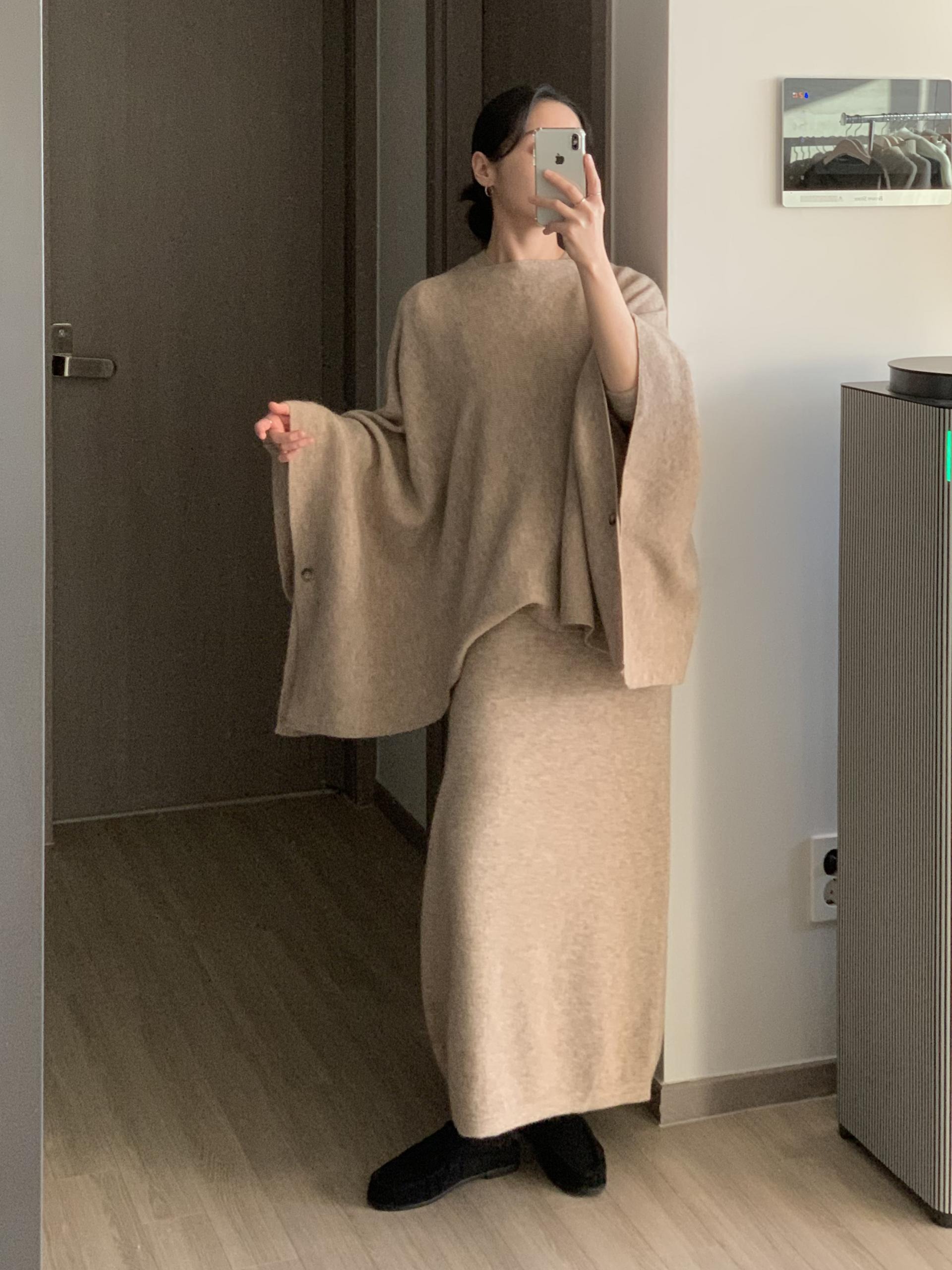같은 원사로 짜인 루즈숄과 함께 세트로도 코디가