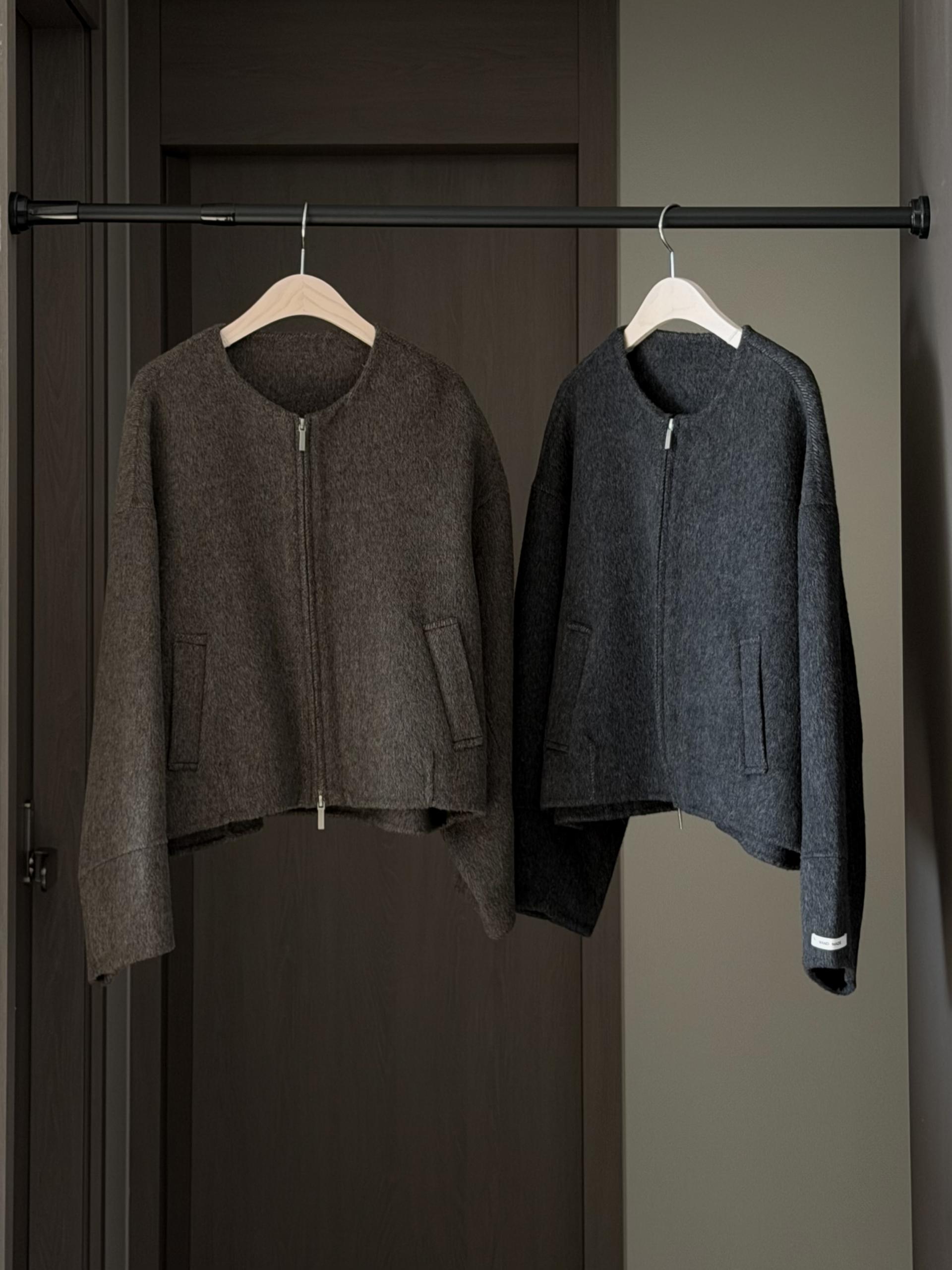심플한 라운드넥의 모노 노카라 핸드메이드 자켓입니다.