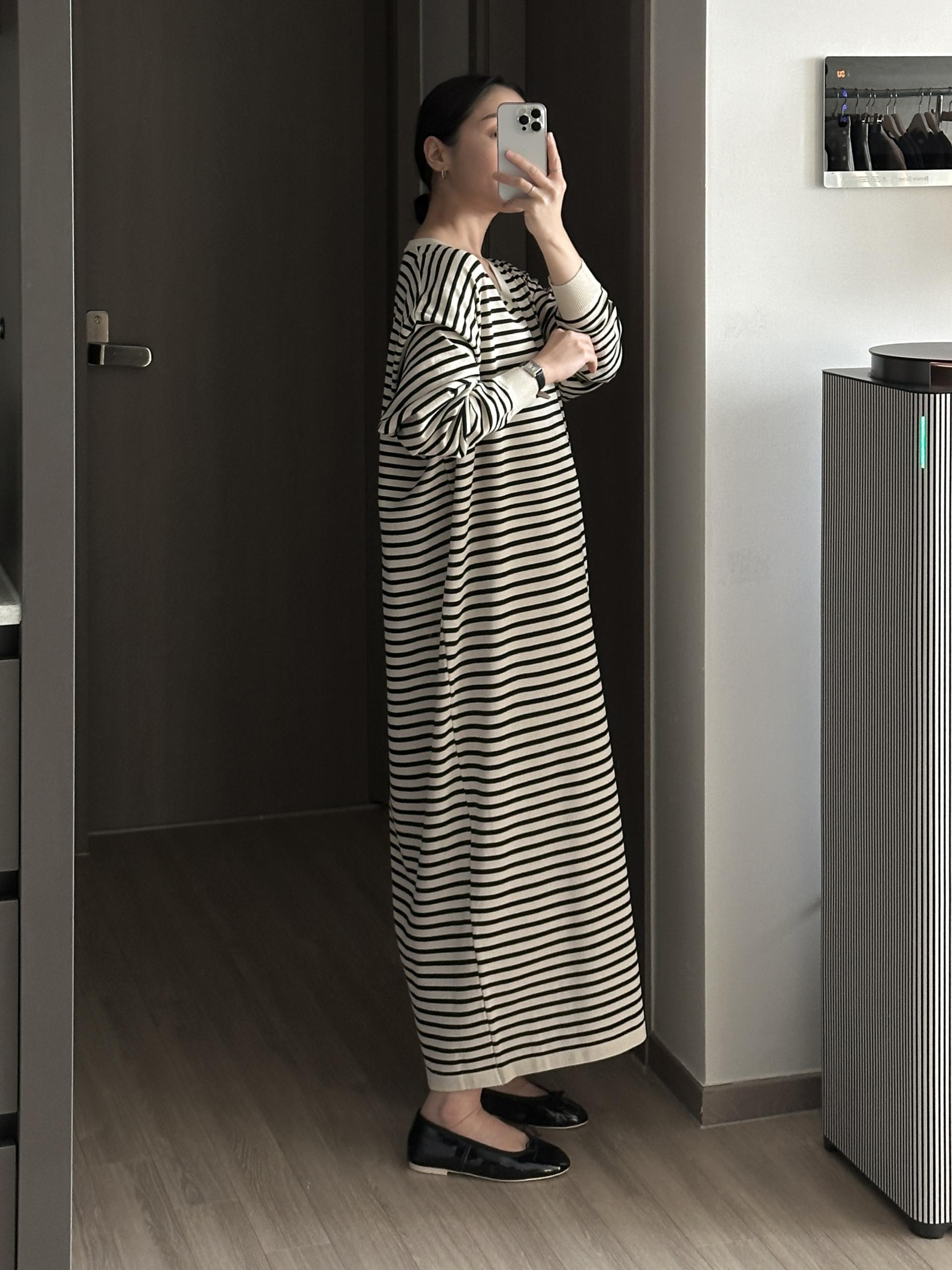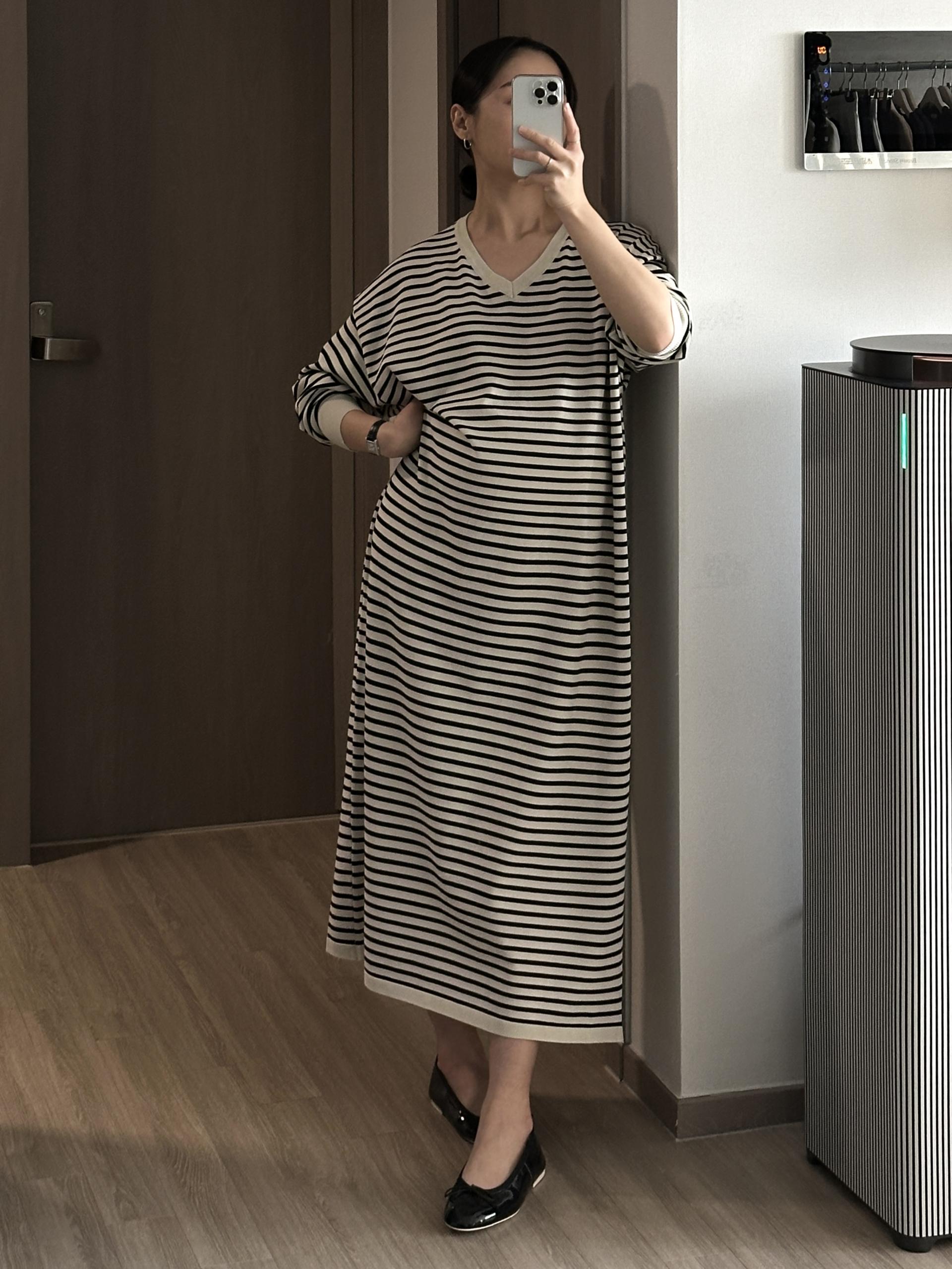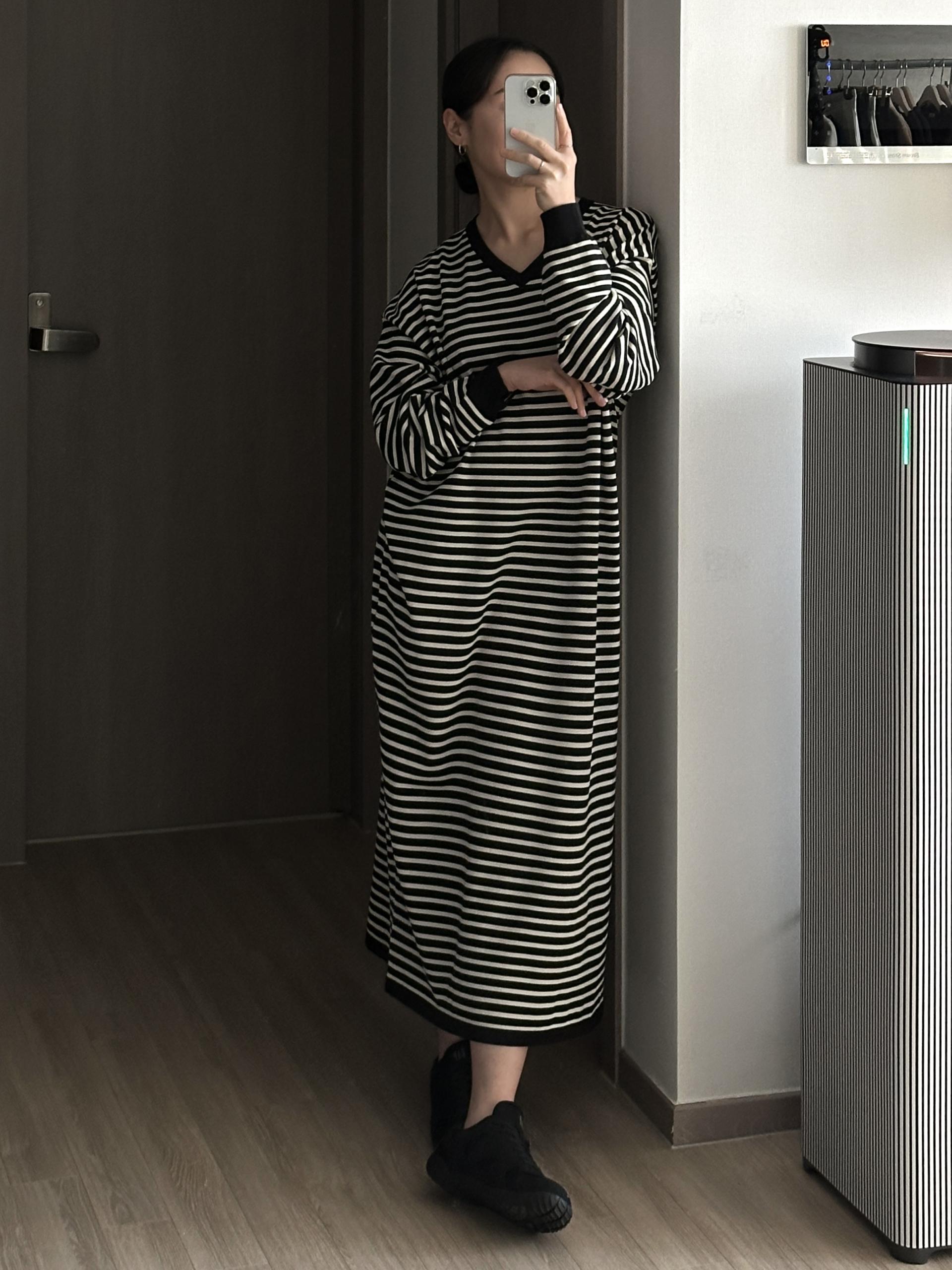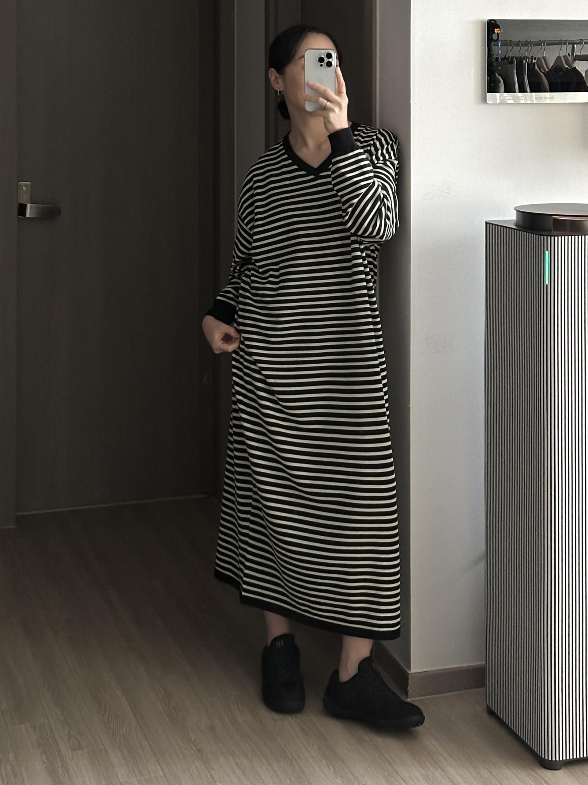 잔잔한 스트라이프 패턴에 루즈한 실루엣으로