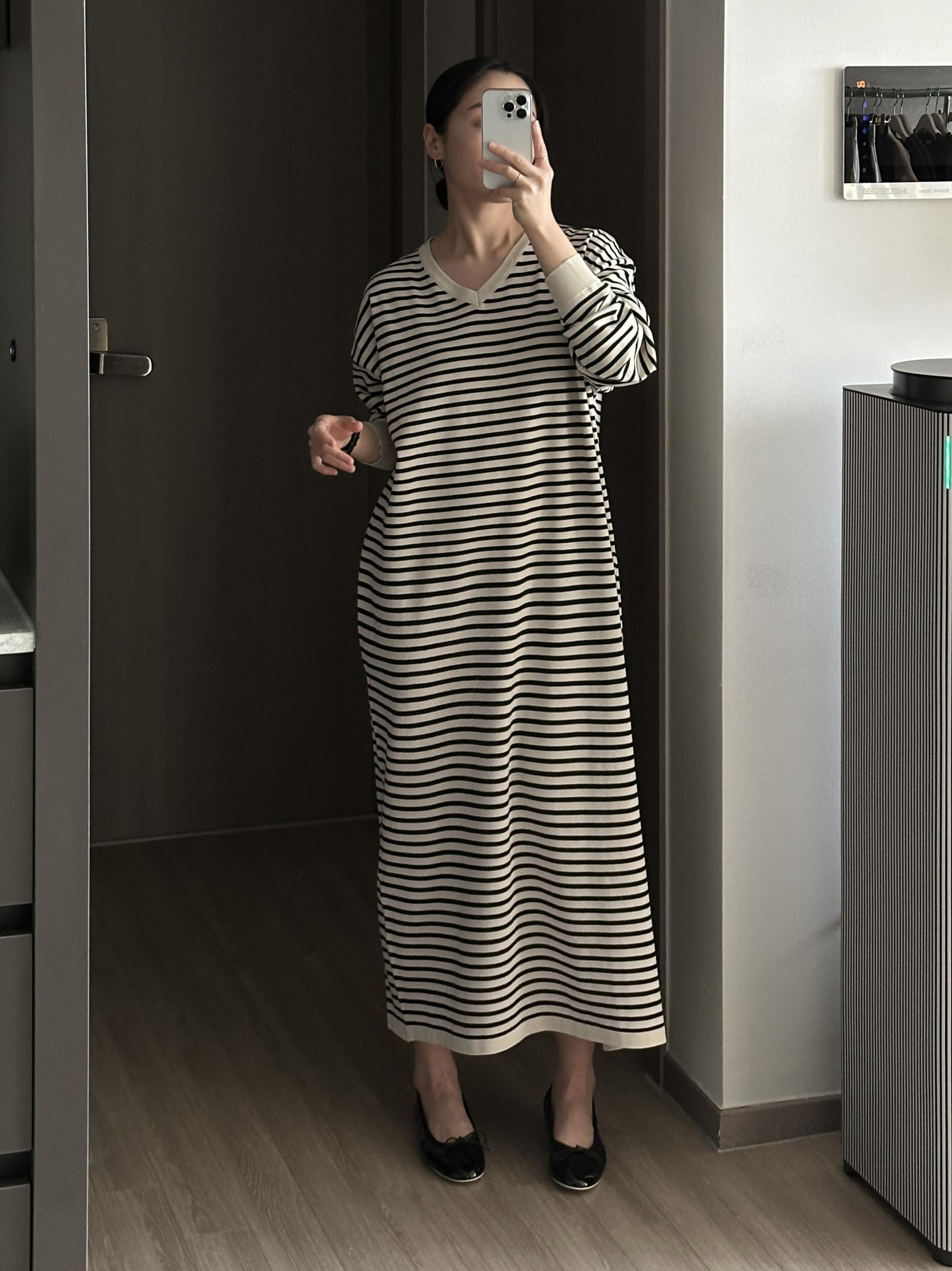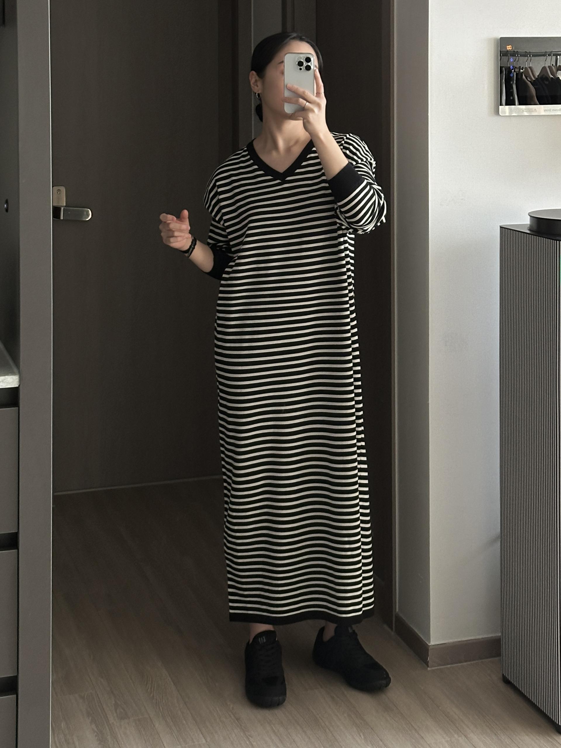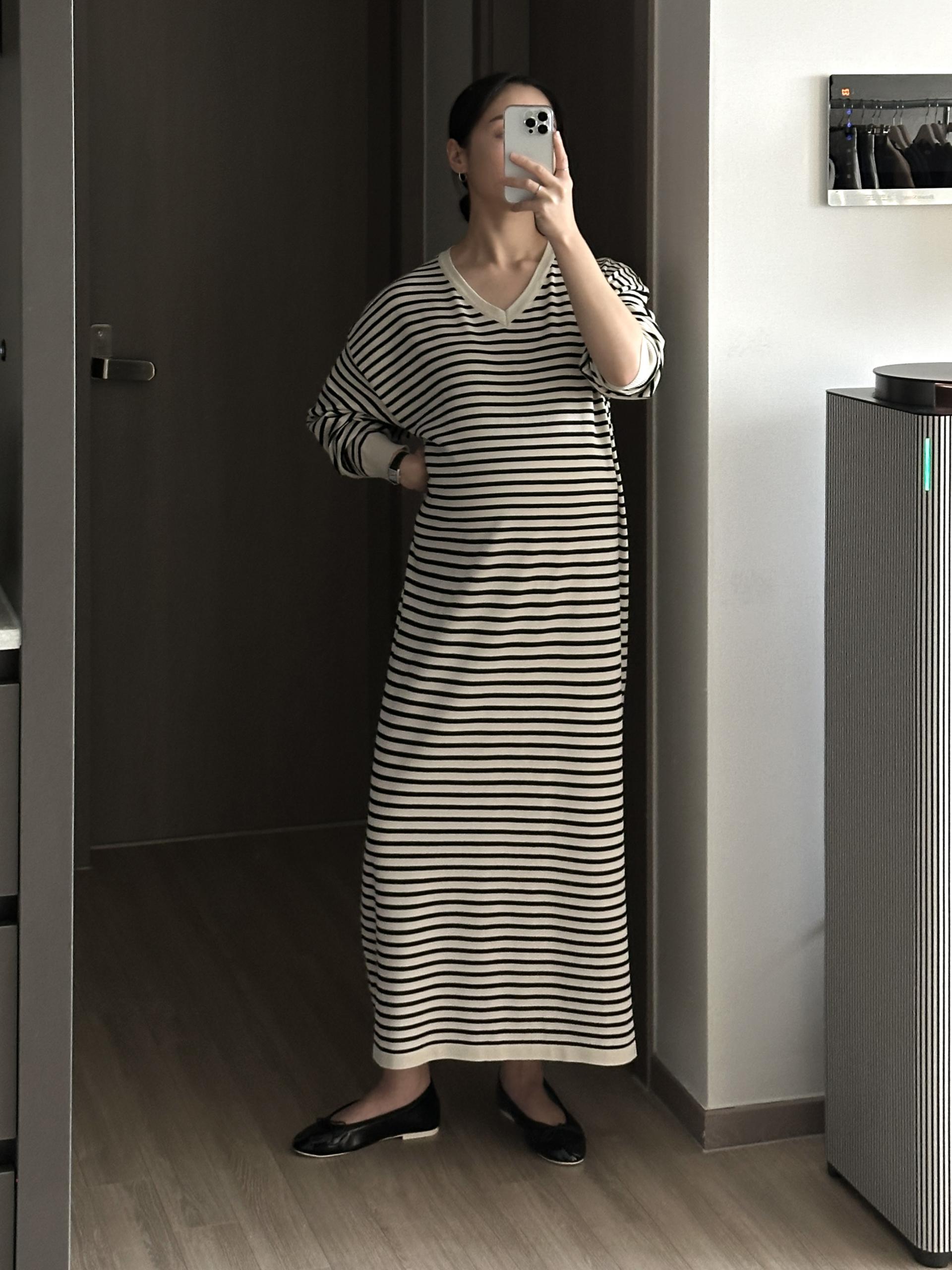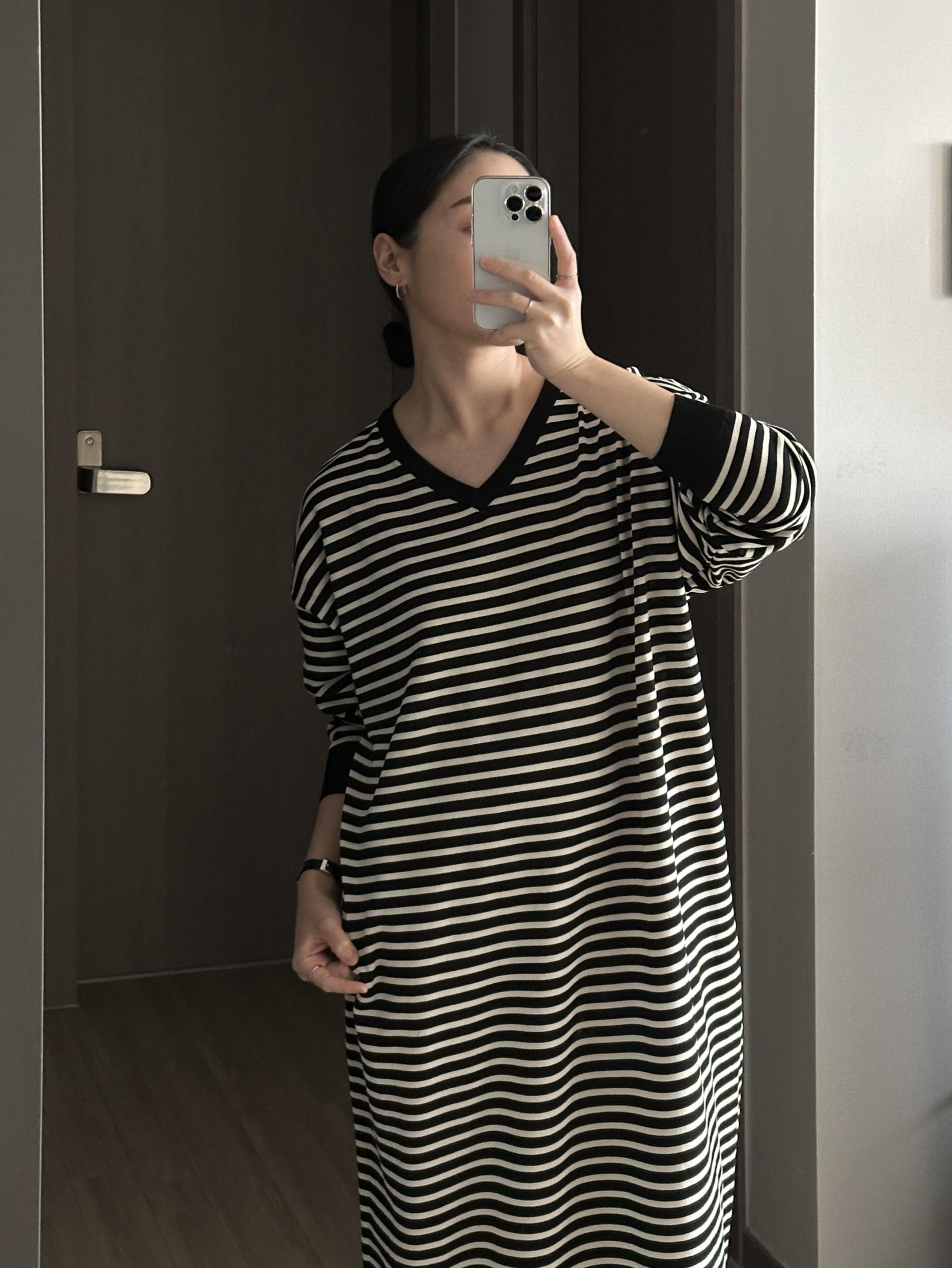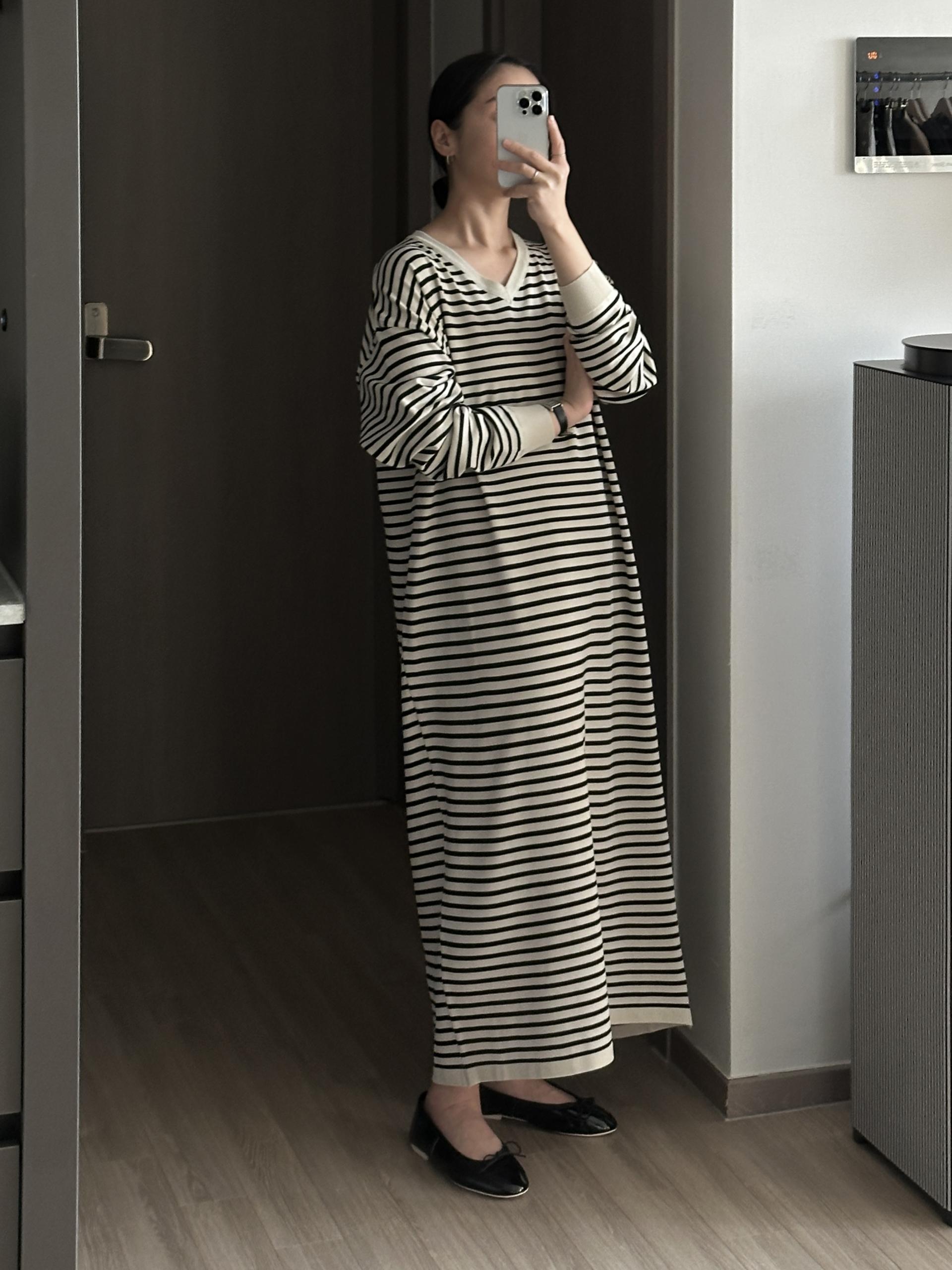 잔잔한 스트라이프 패턴에 루즈한 실루엣으로