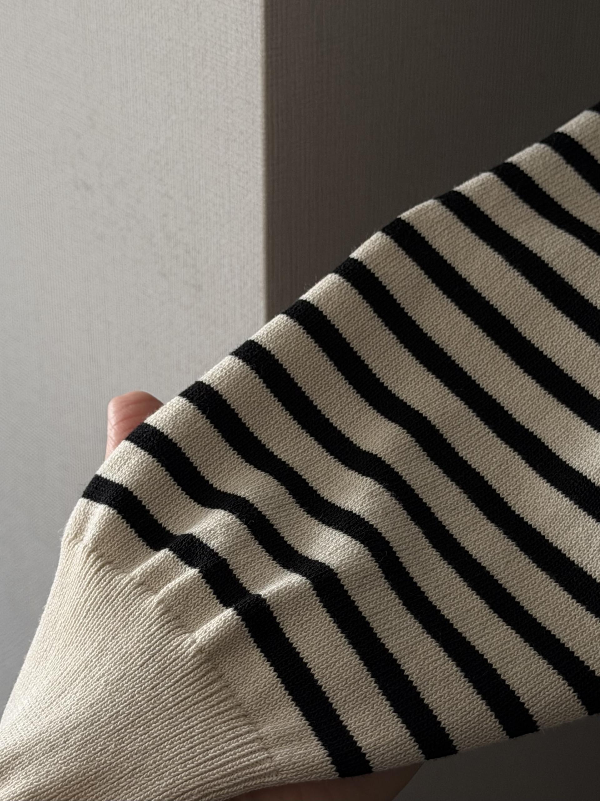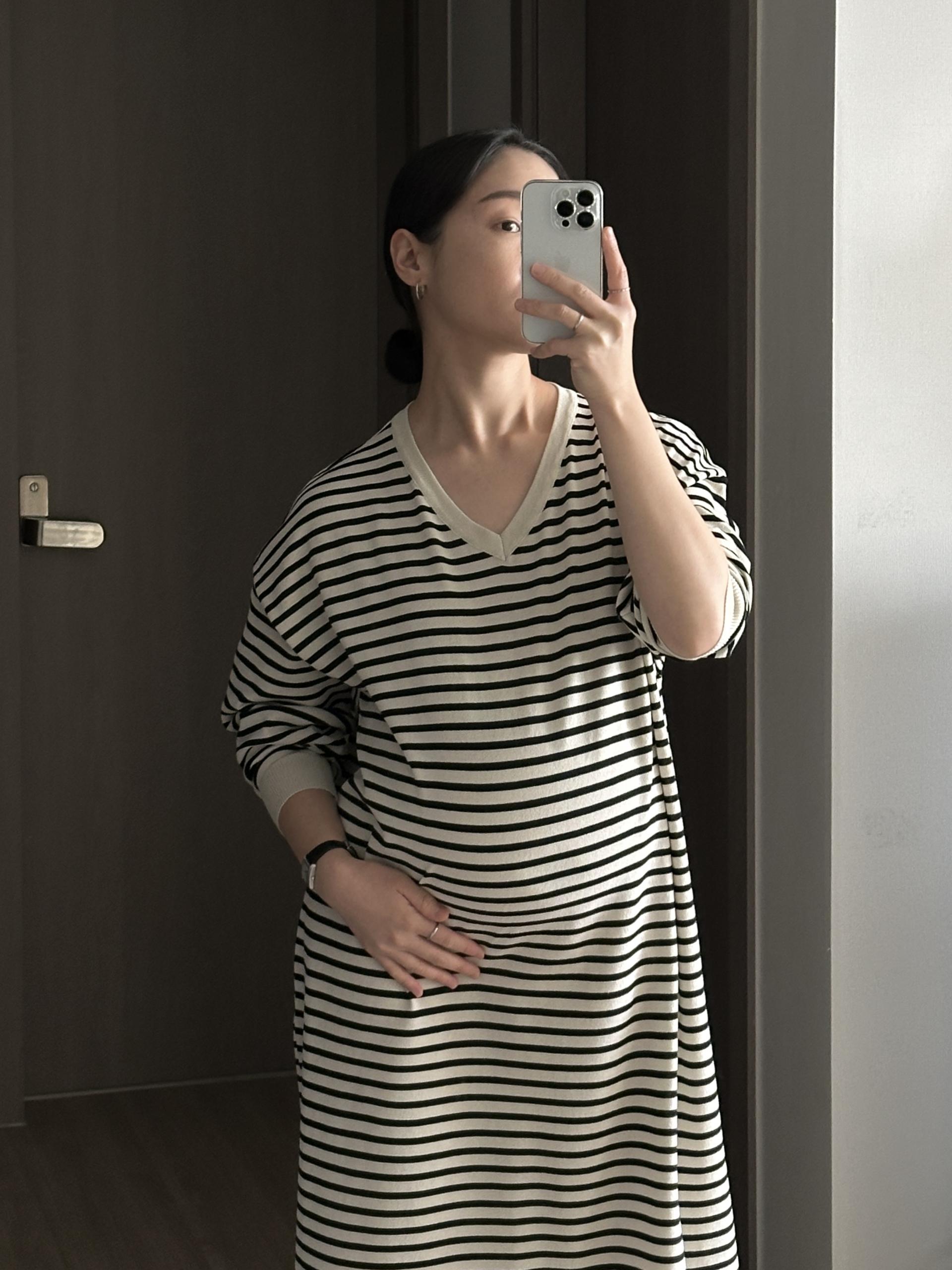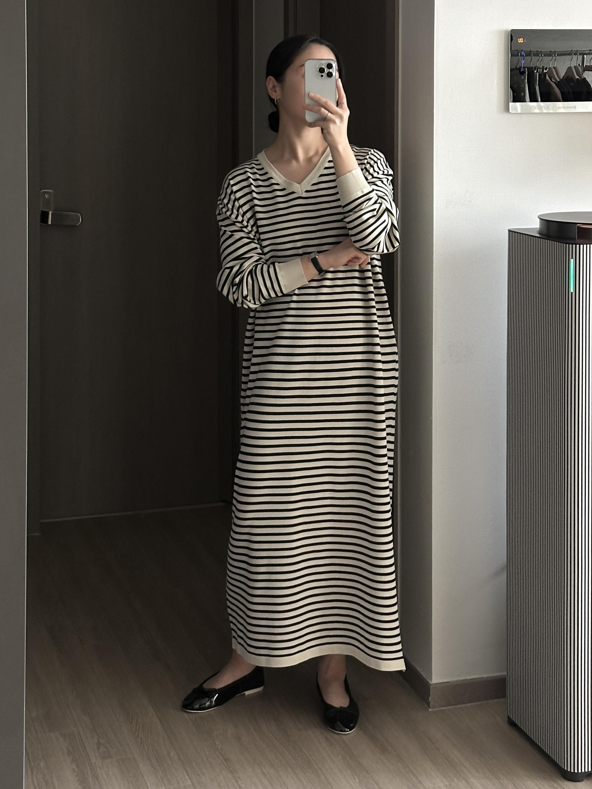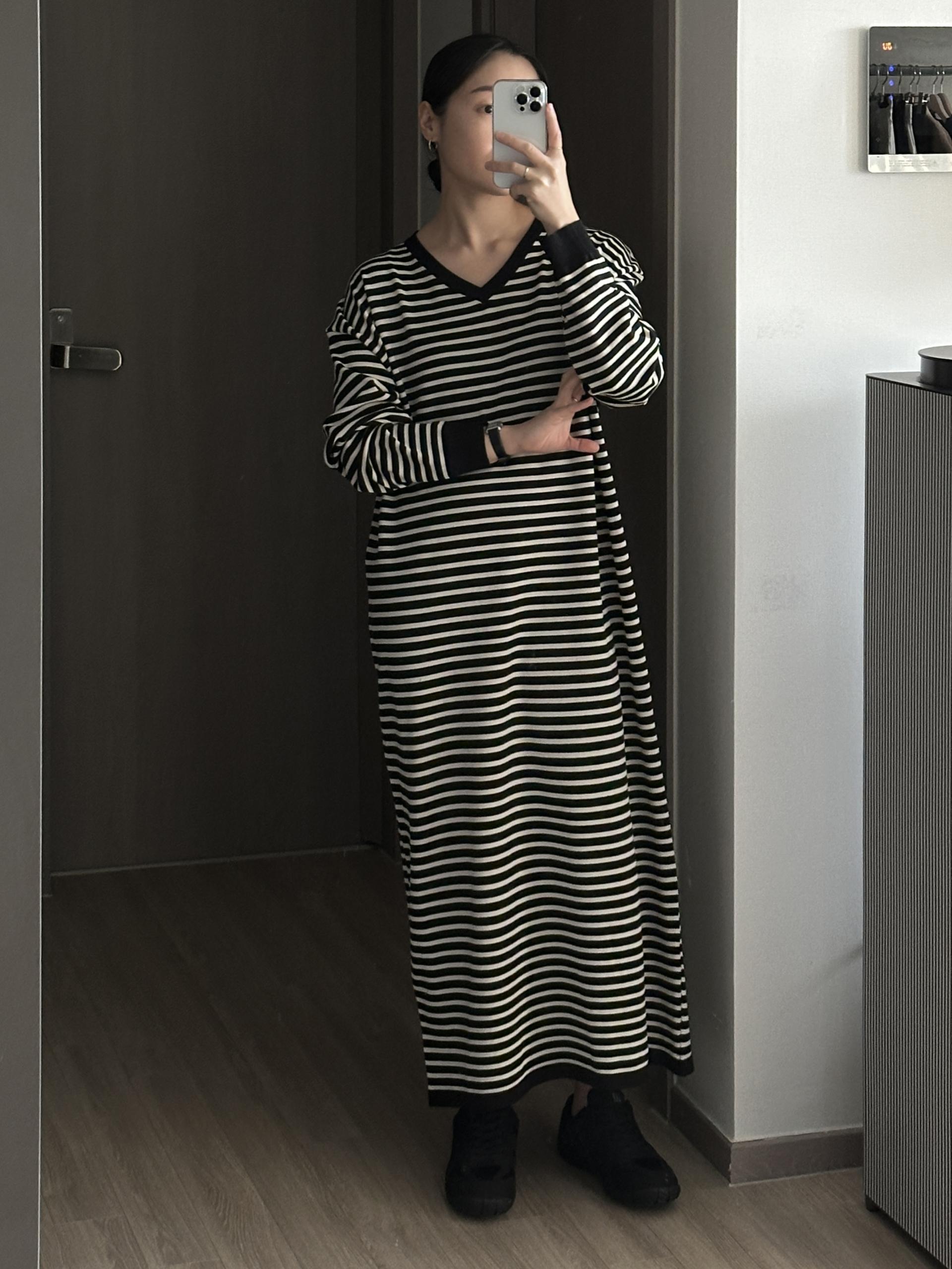 잔잔한 스트라이프 패턴에 루즈한 실루엣으로