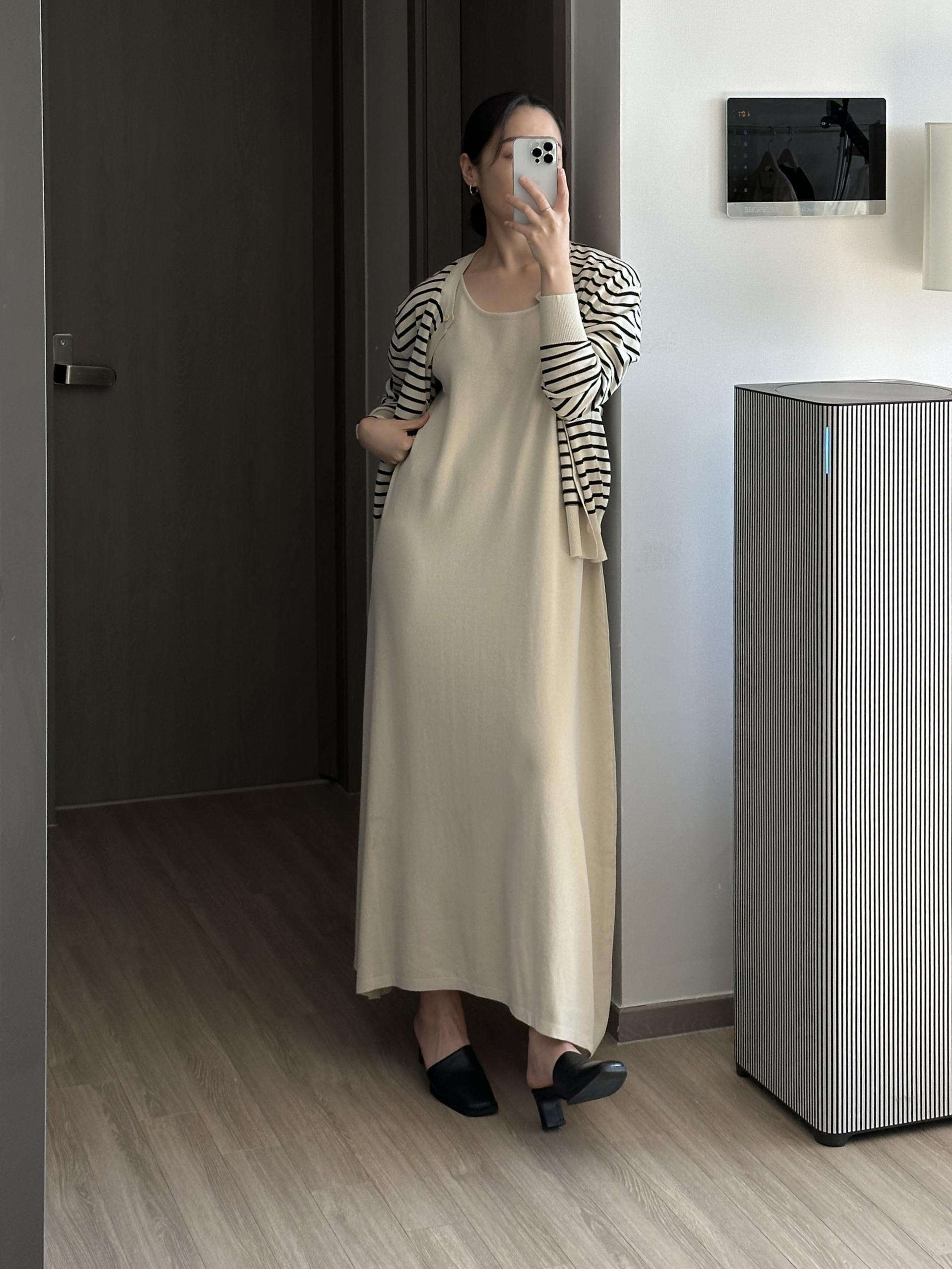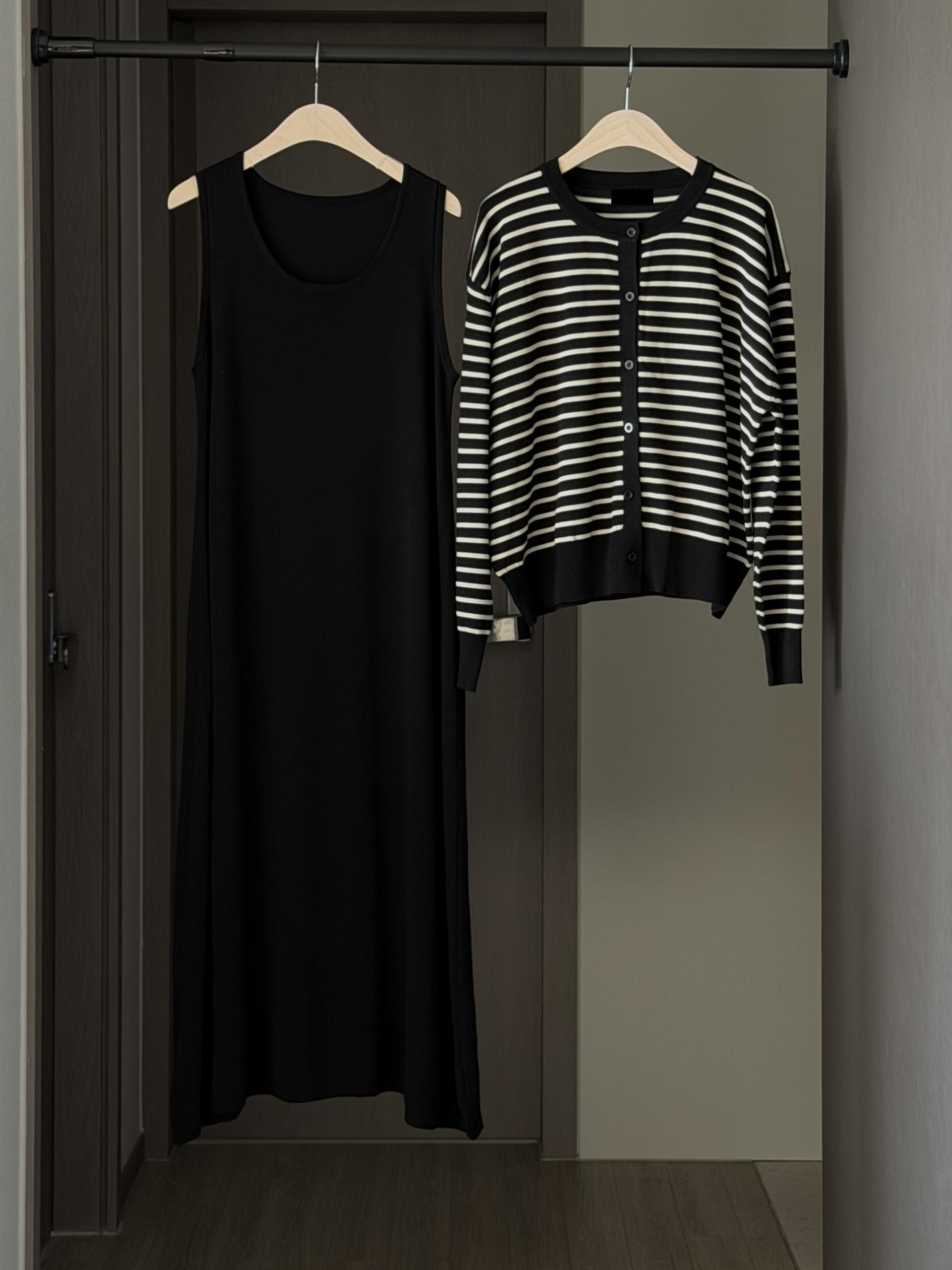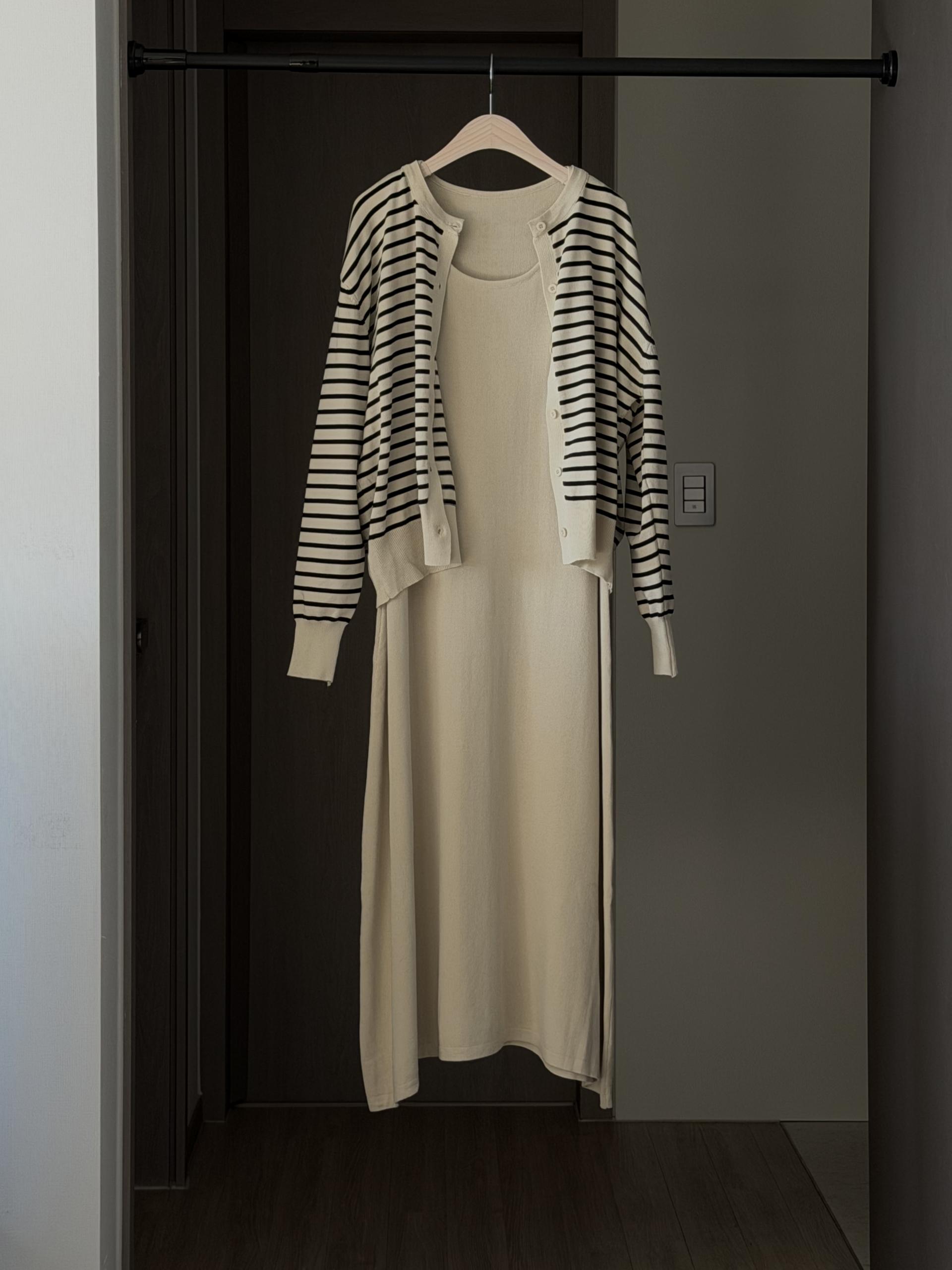 슬리브리스 롱 원피스와 가디건이 함께 구성 되어