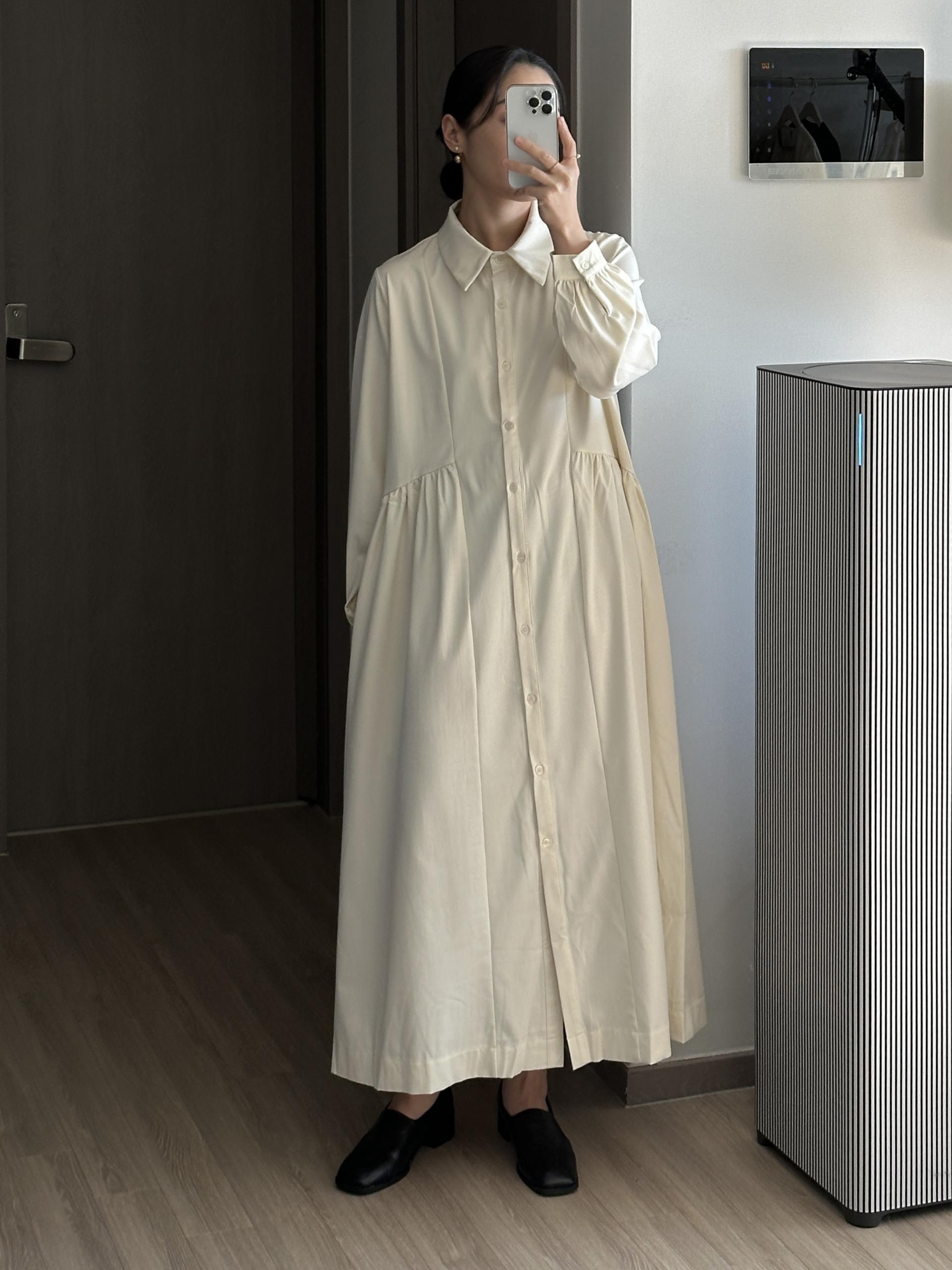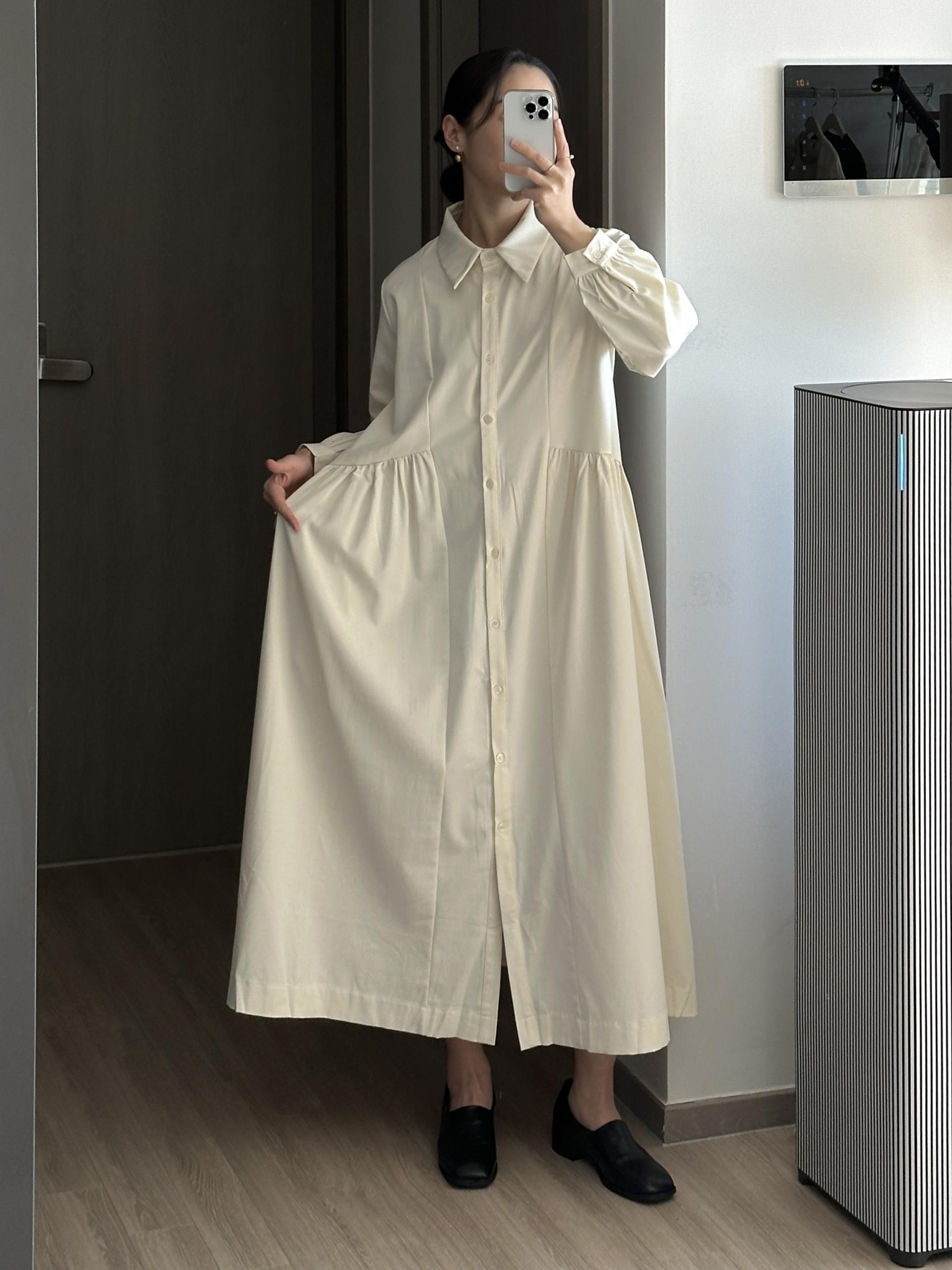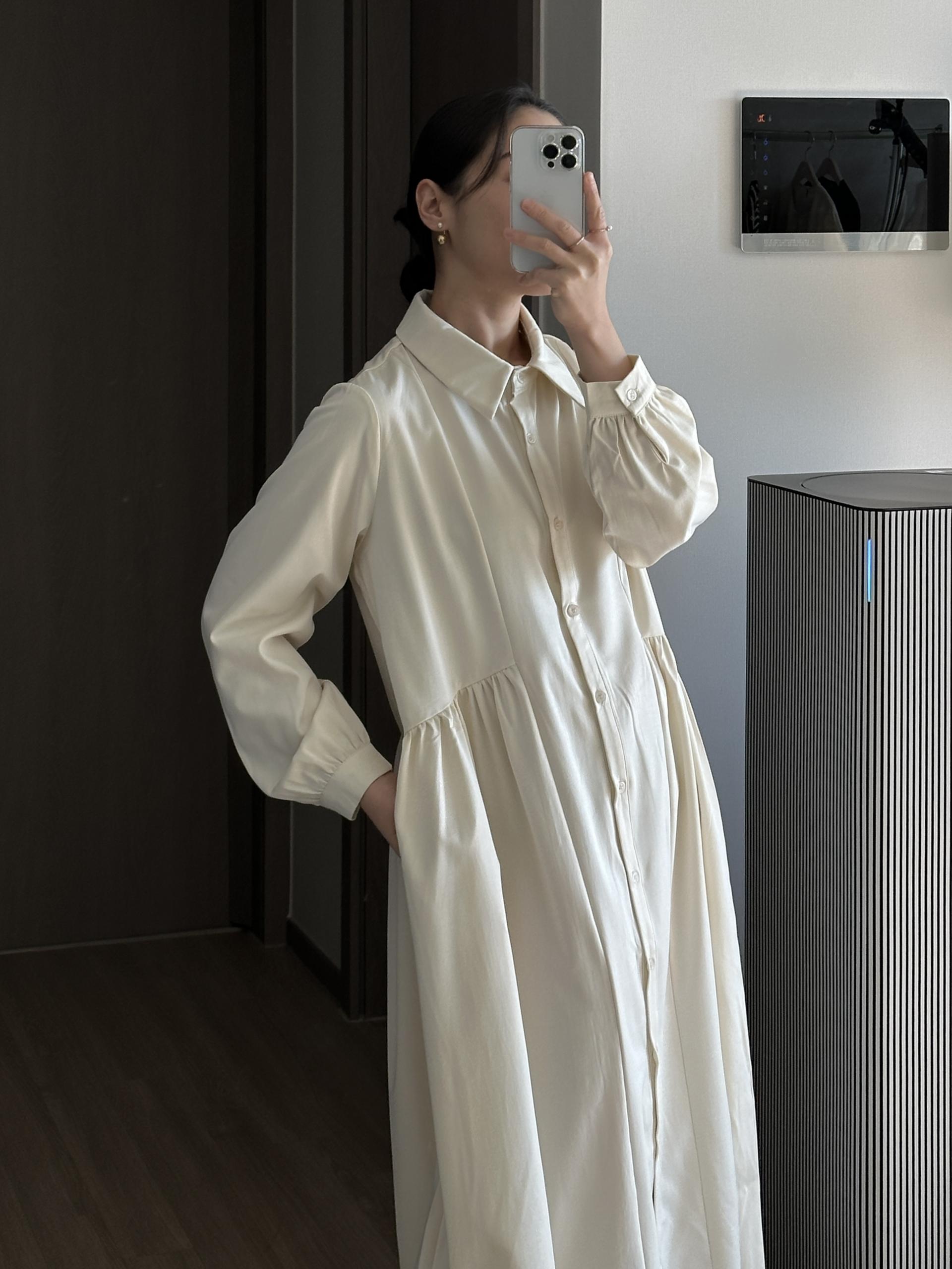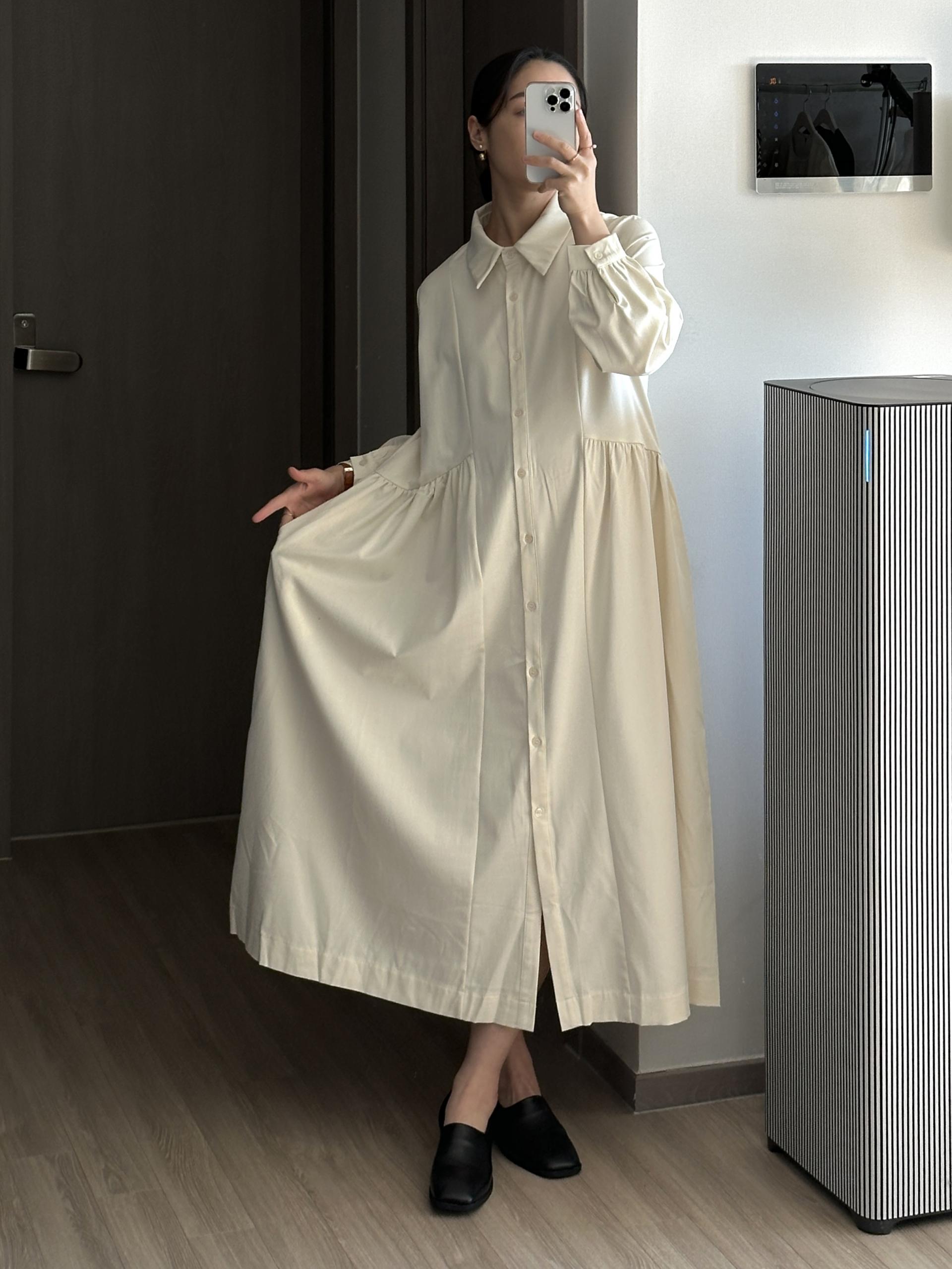 셔츠 타입에 깔끔하면서 여성스러운 디테일의 페노 원피스입니다.