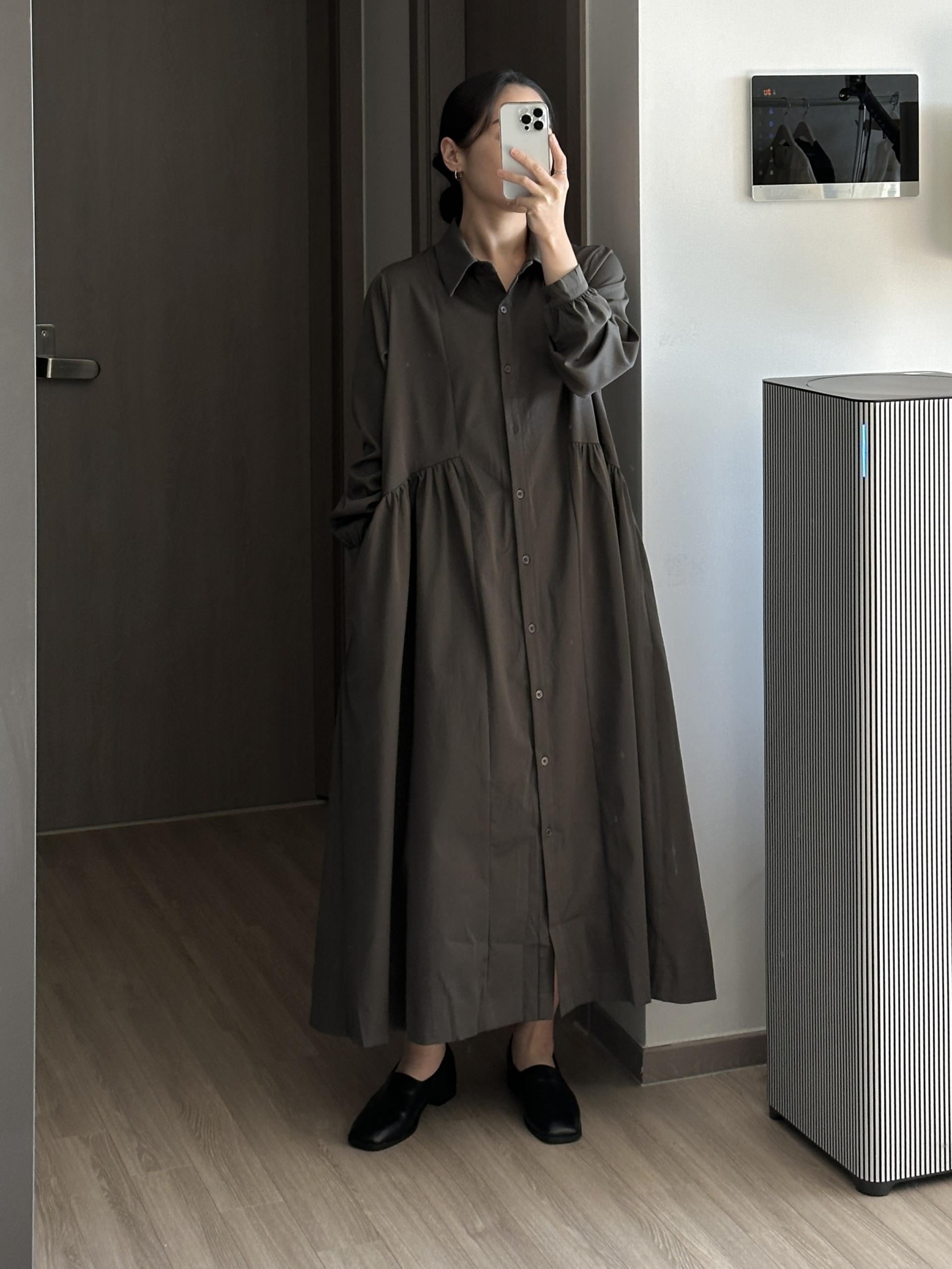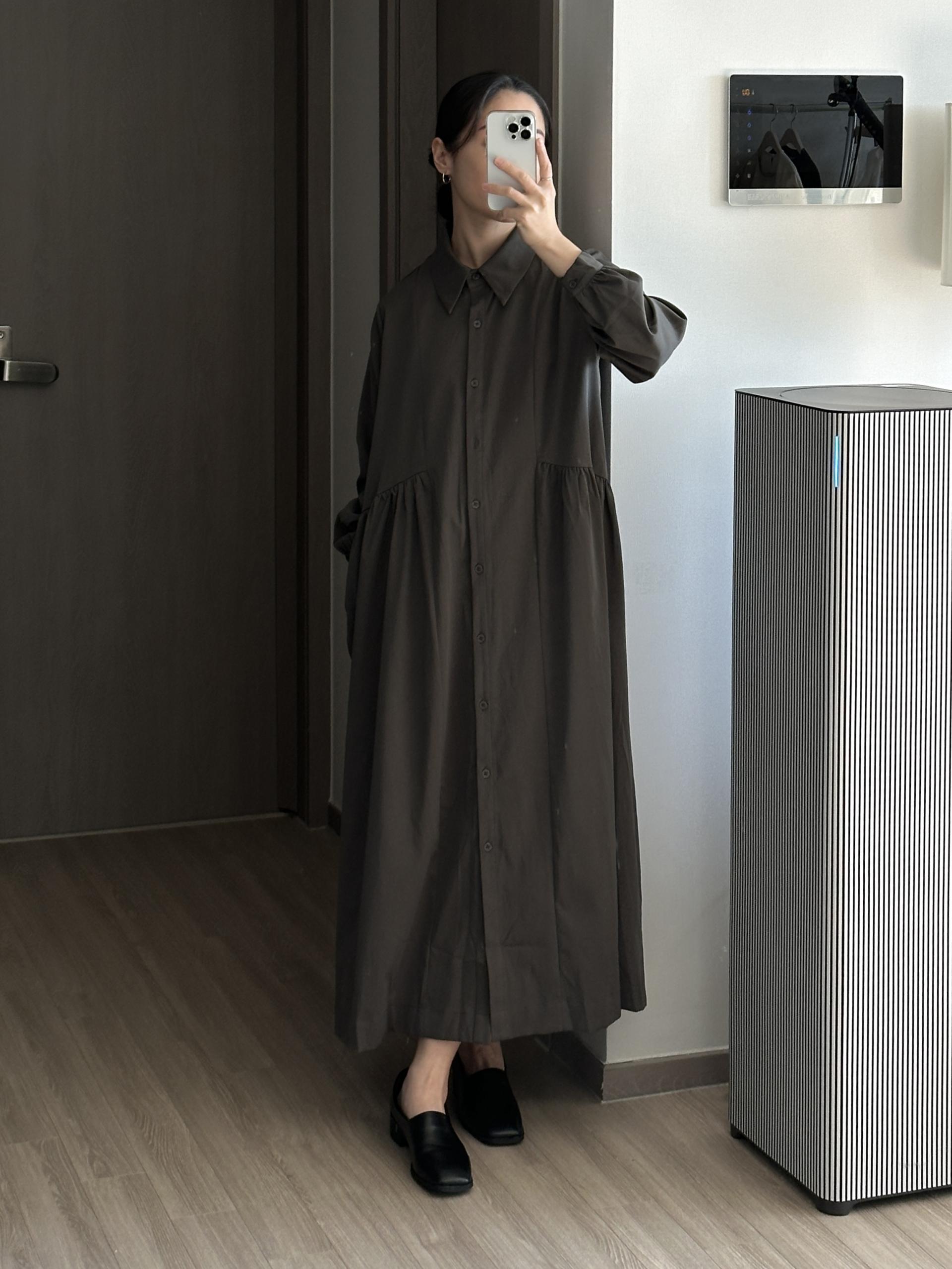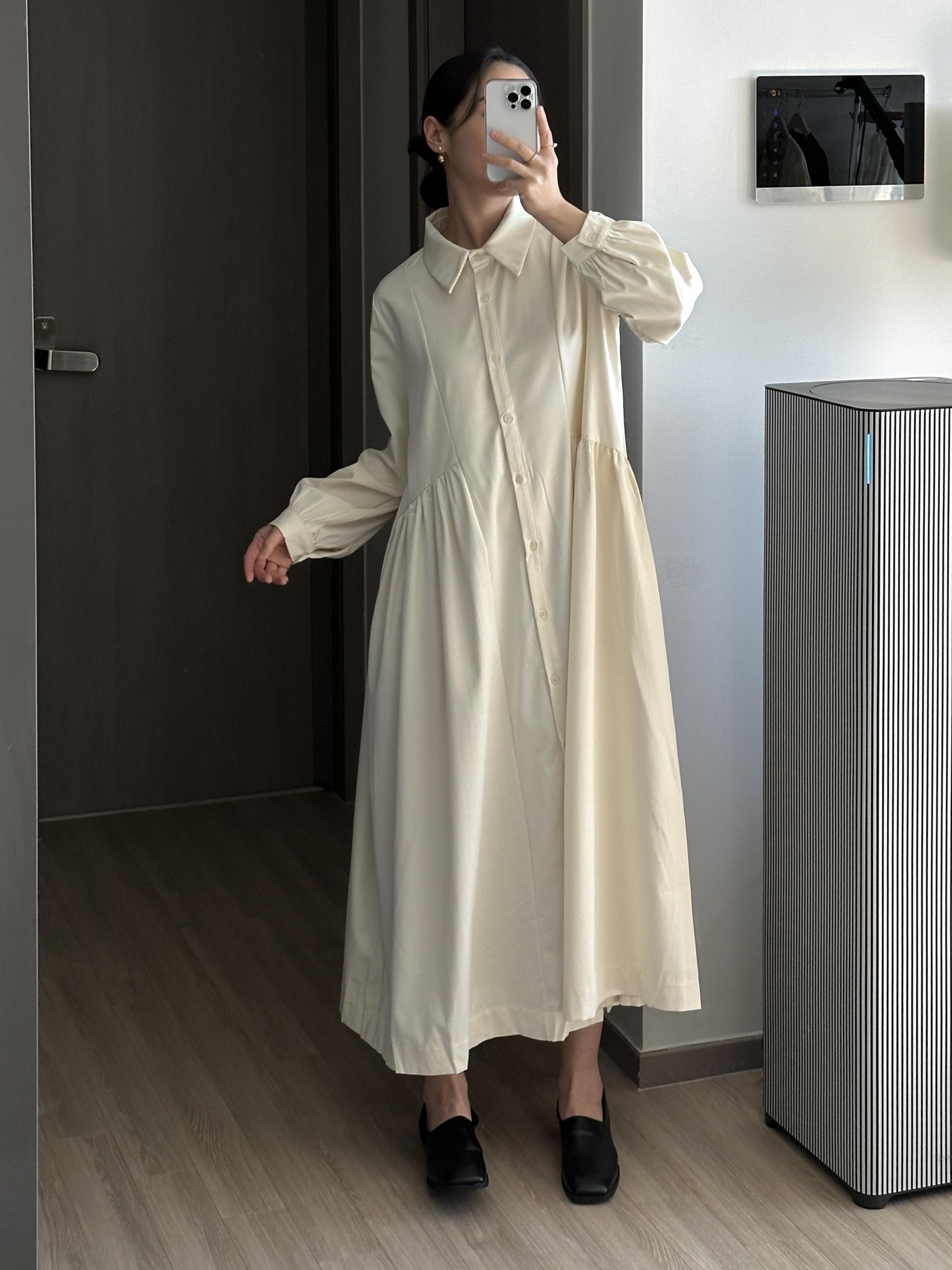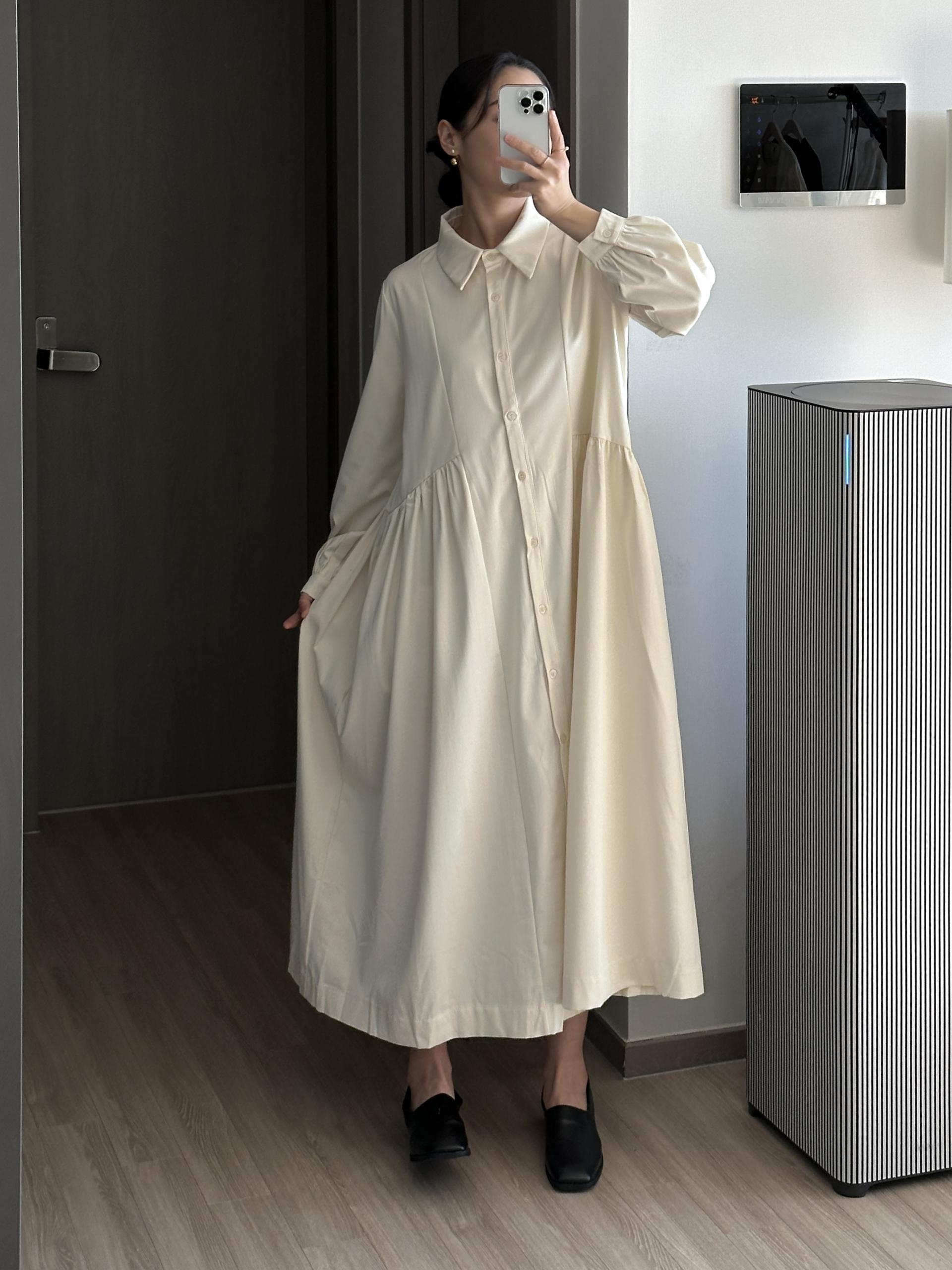셔츠 타입에 깔끔하면서 여성스러운 디테일의 페노 원피스입니다.