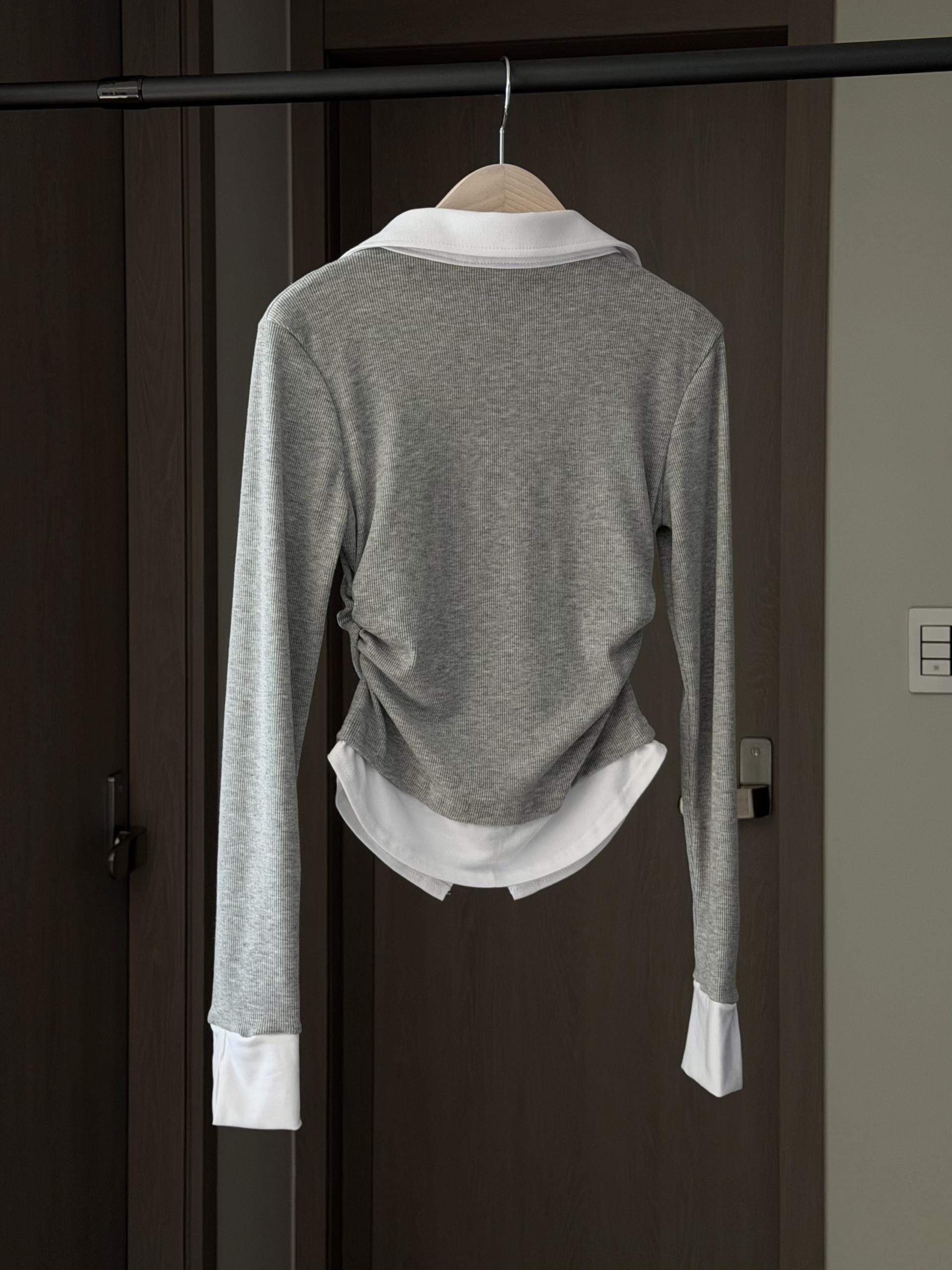 클래식한 분위기의 셔츠 배색 레이어드 스타일의