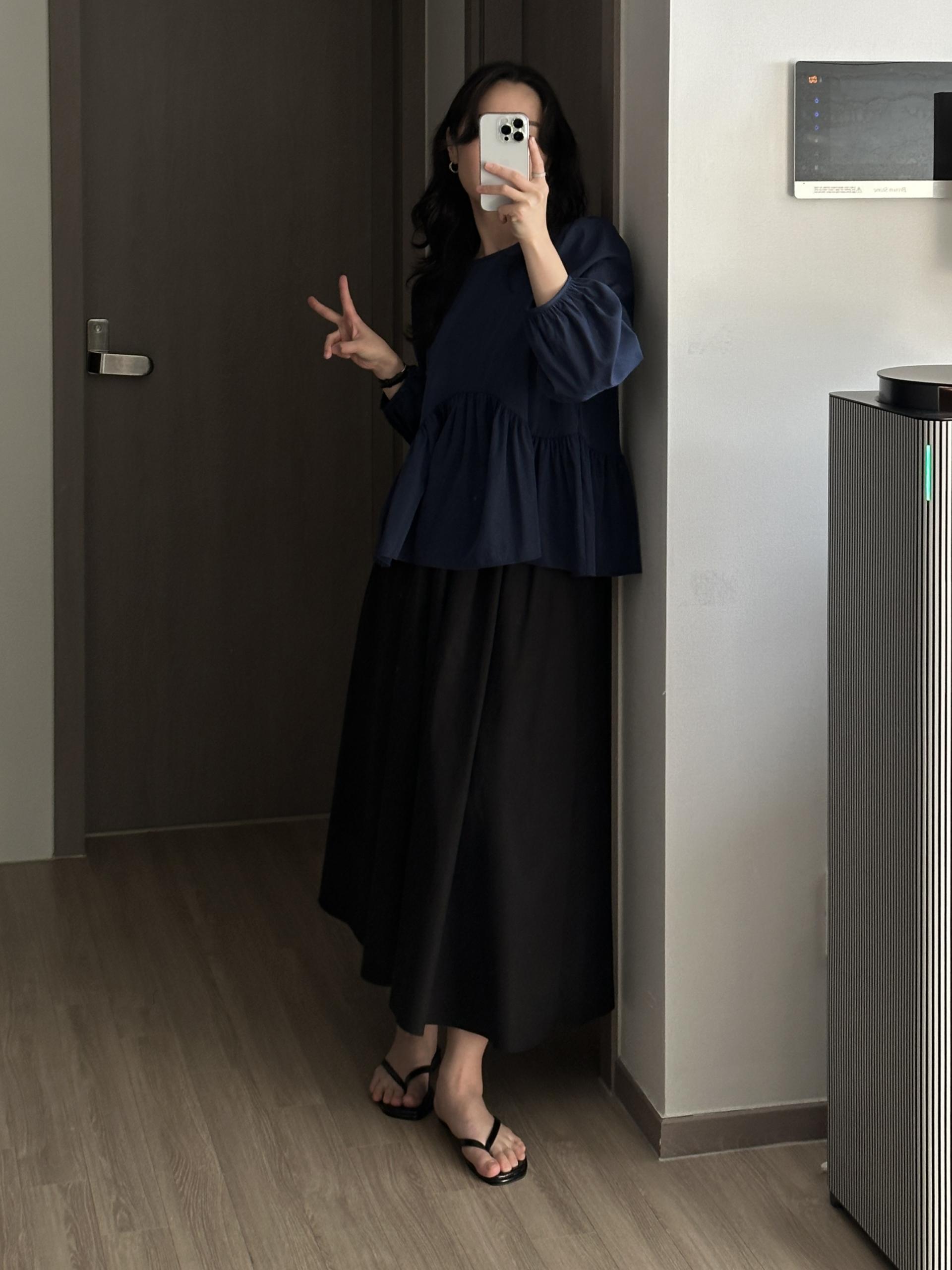 허리 선을 은은하게 잡아주고 밑단도 완만한 굴림으로