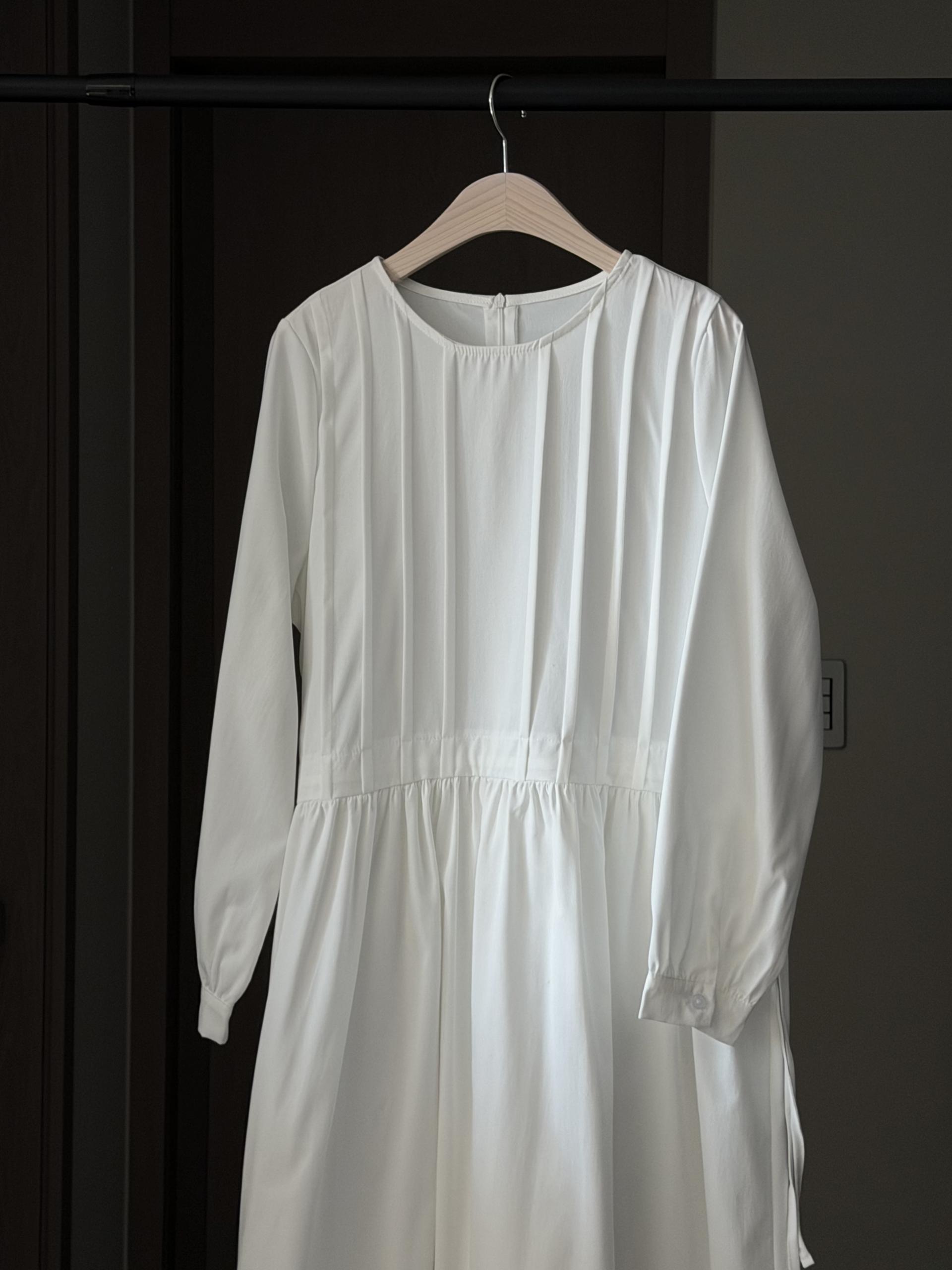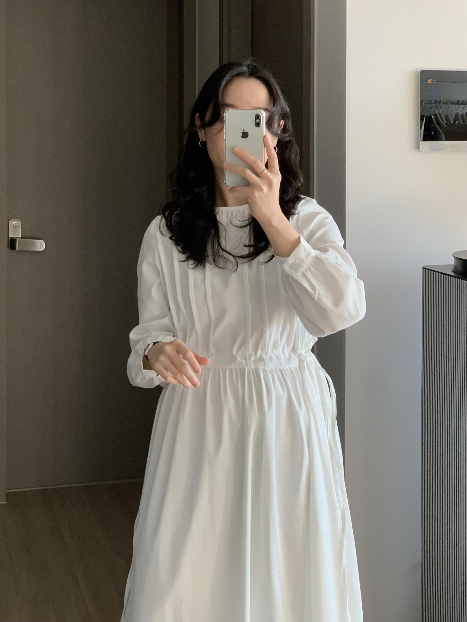 깔끔한 라운드넥 핀턱 디테일이 매력적인