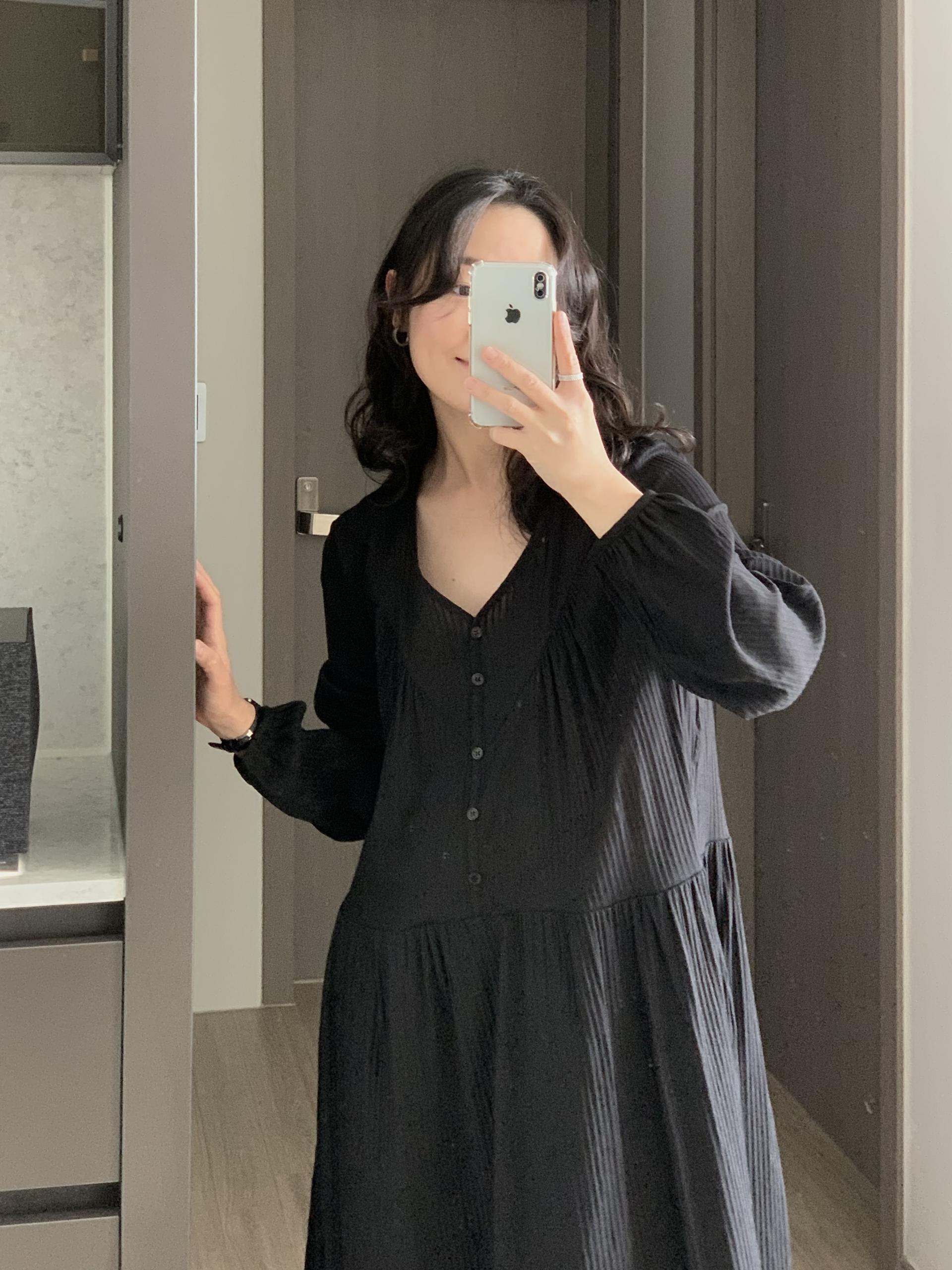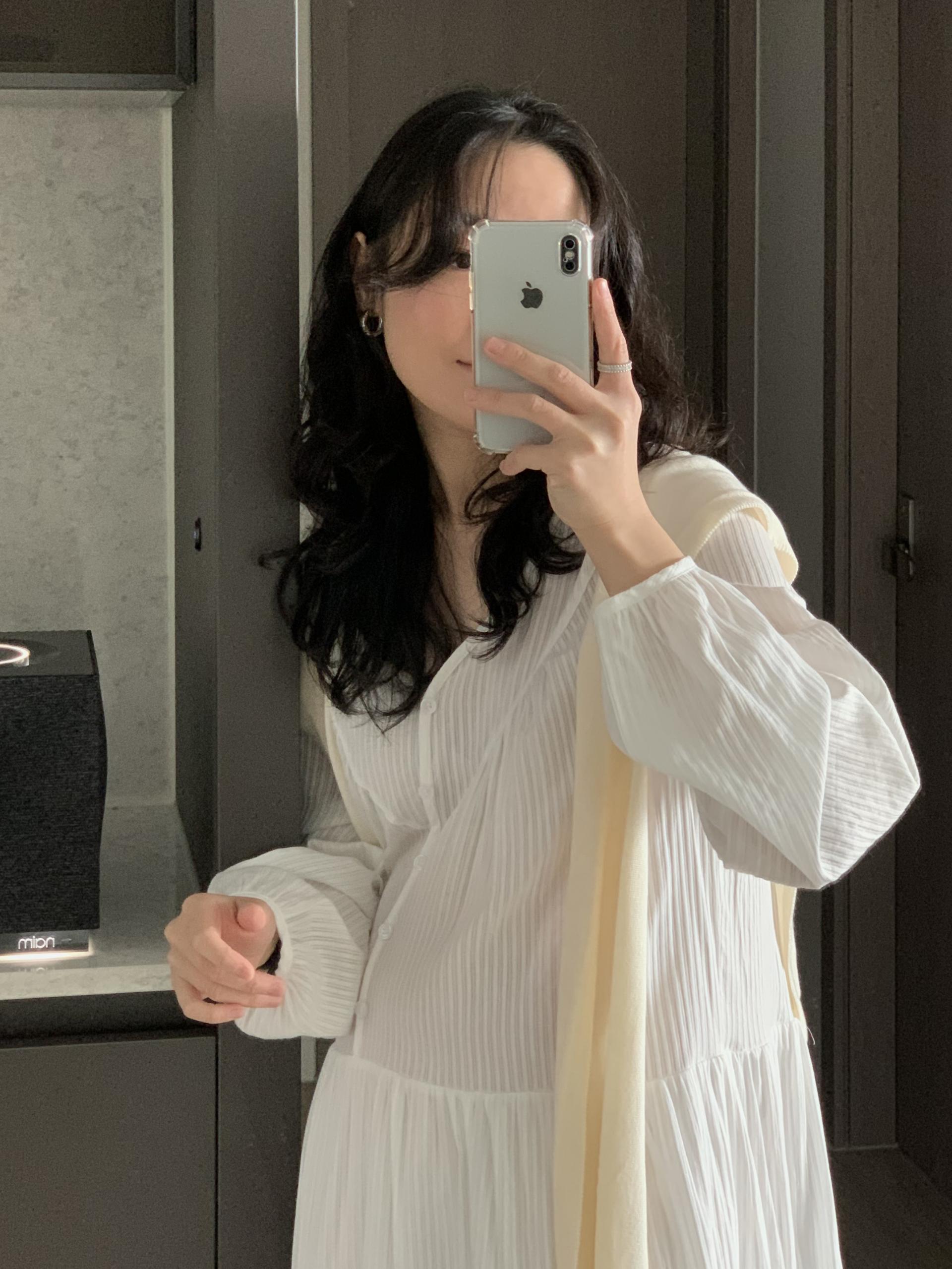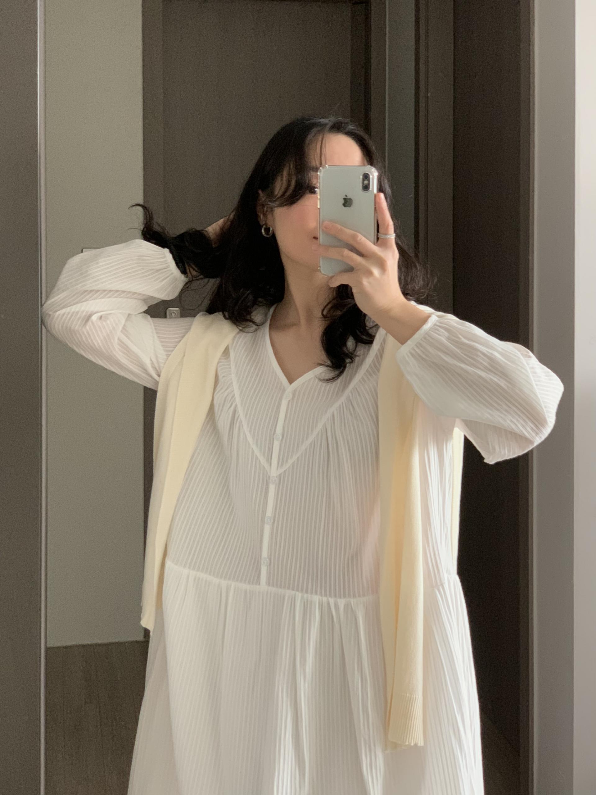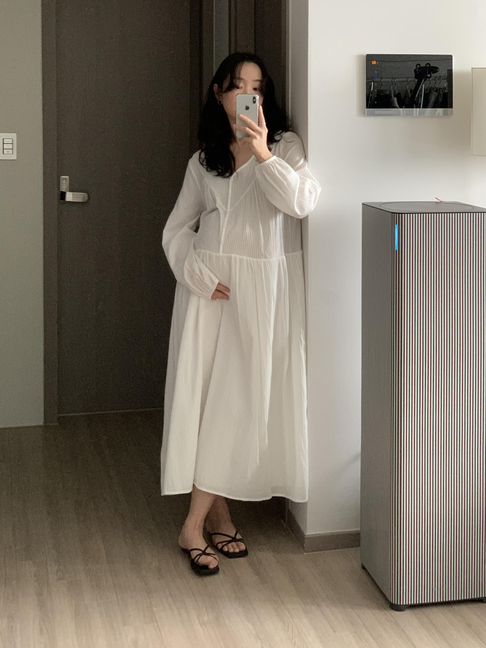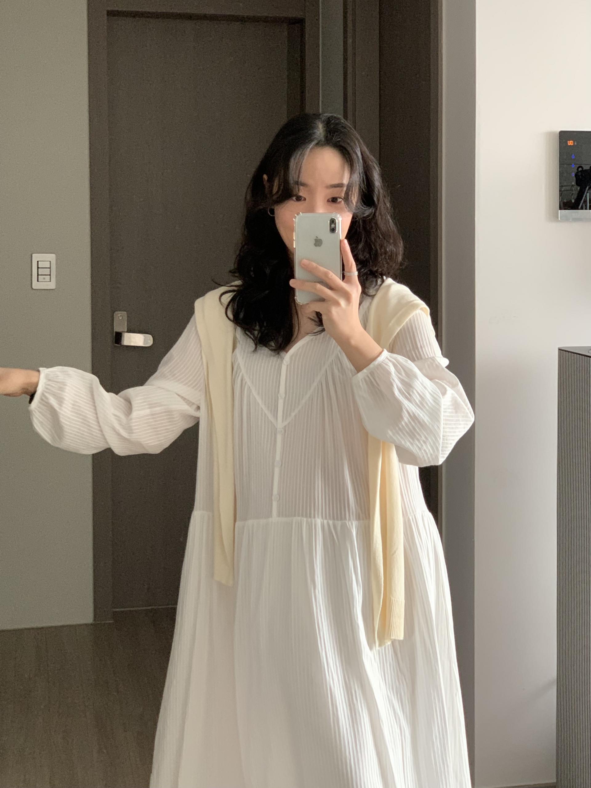 넥라인을 얇고 길게 연출해주며 부담없이 즐기기 좋은 원피스에요.