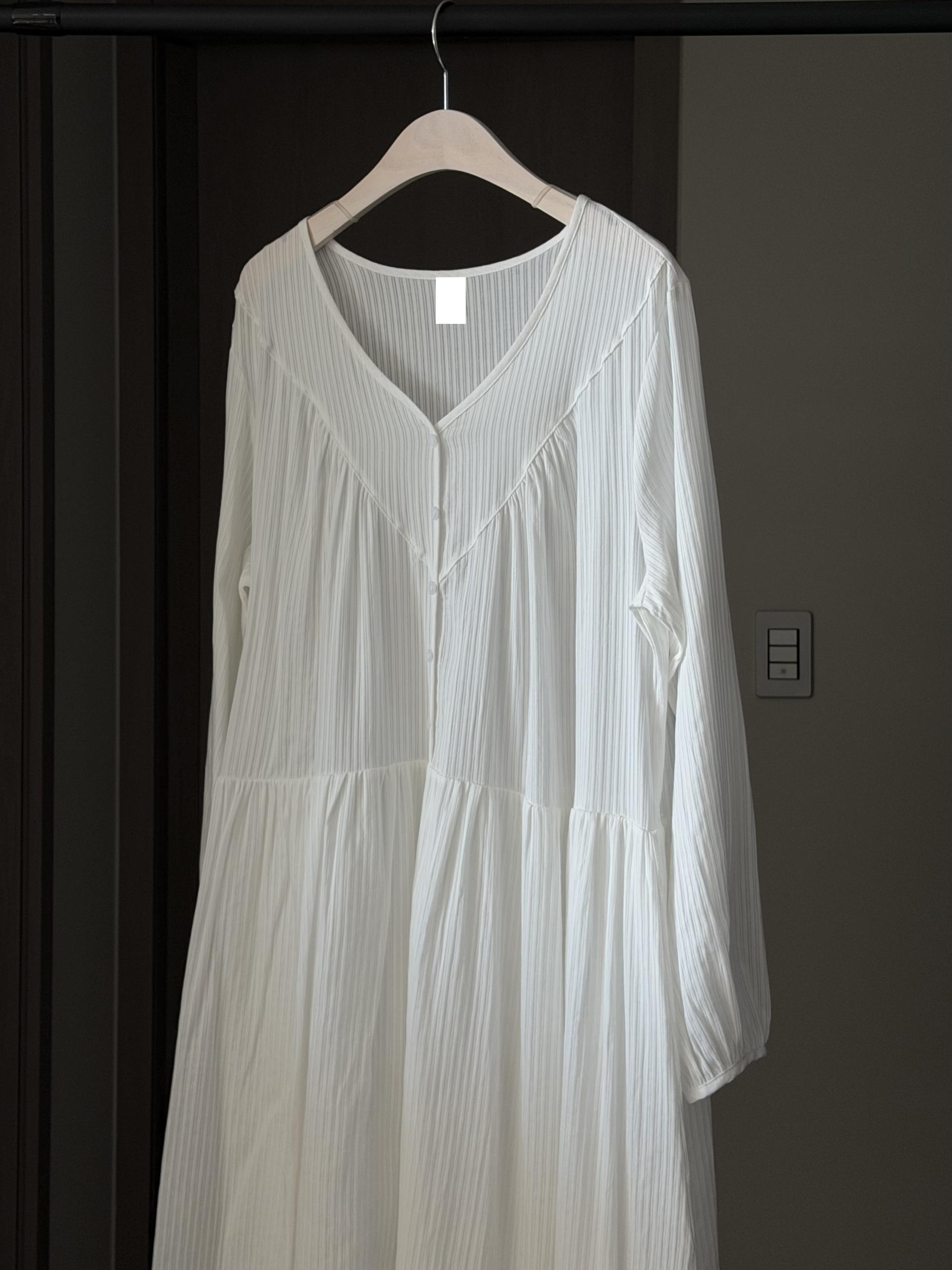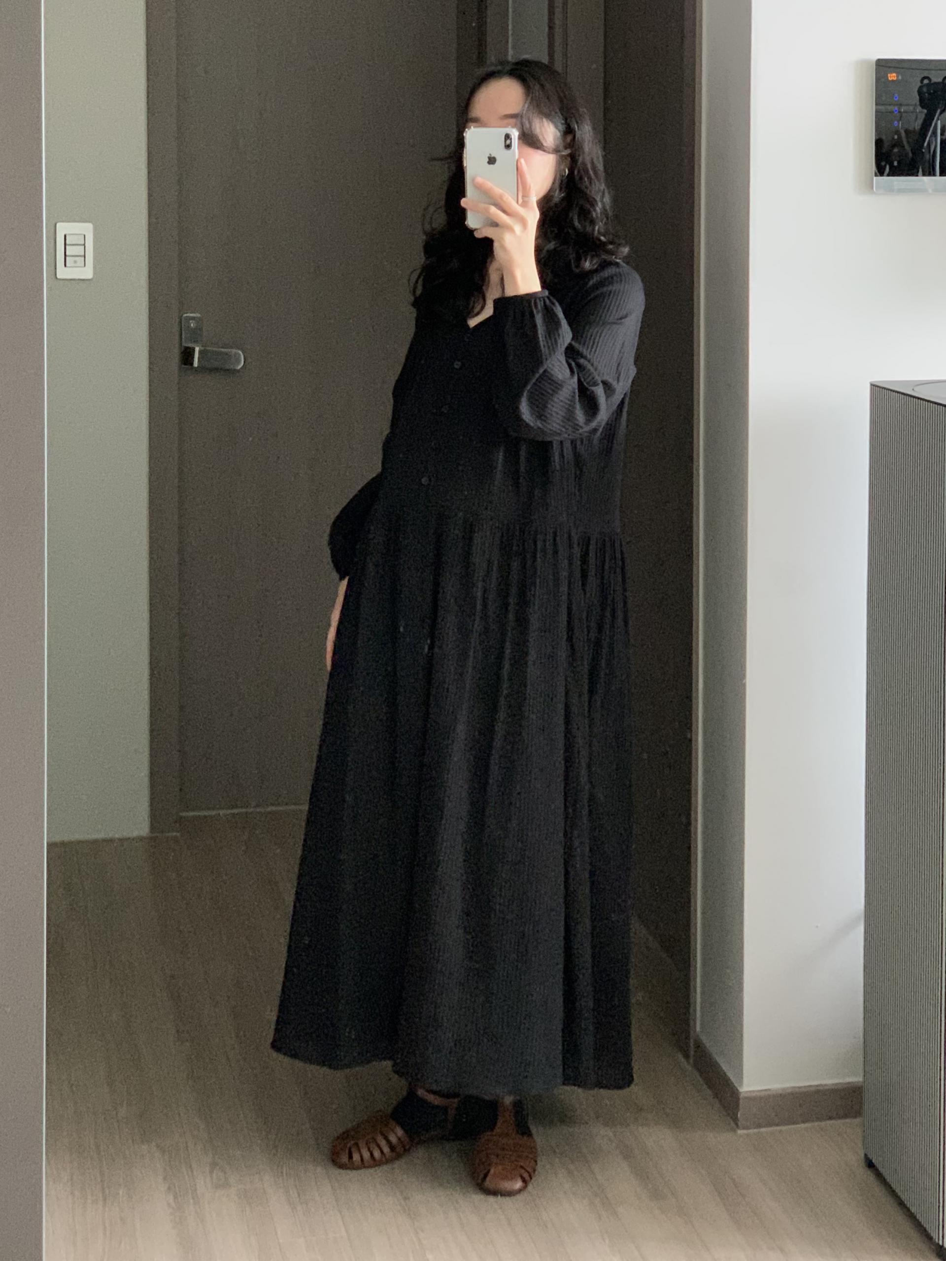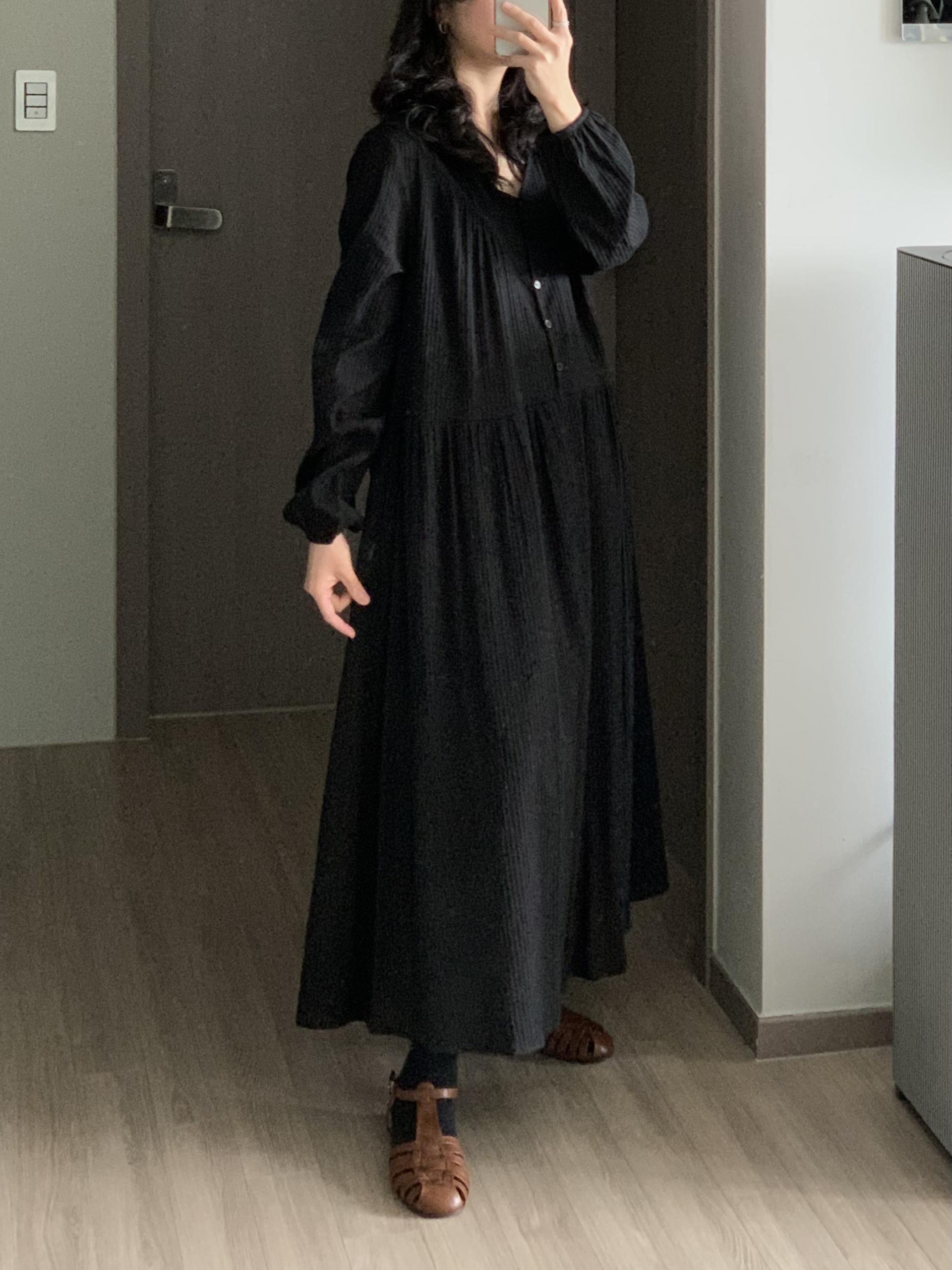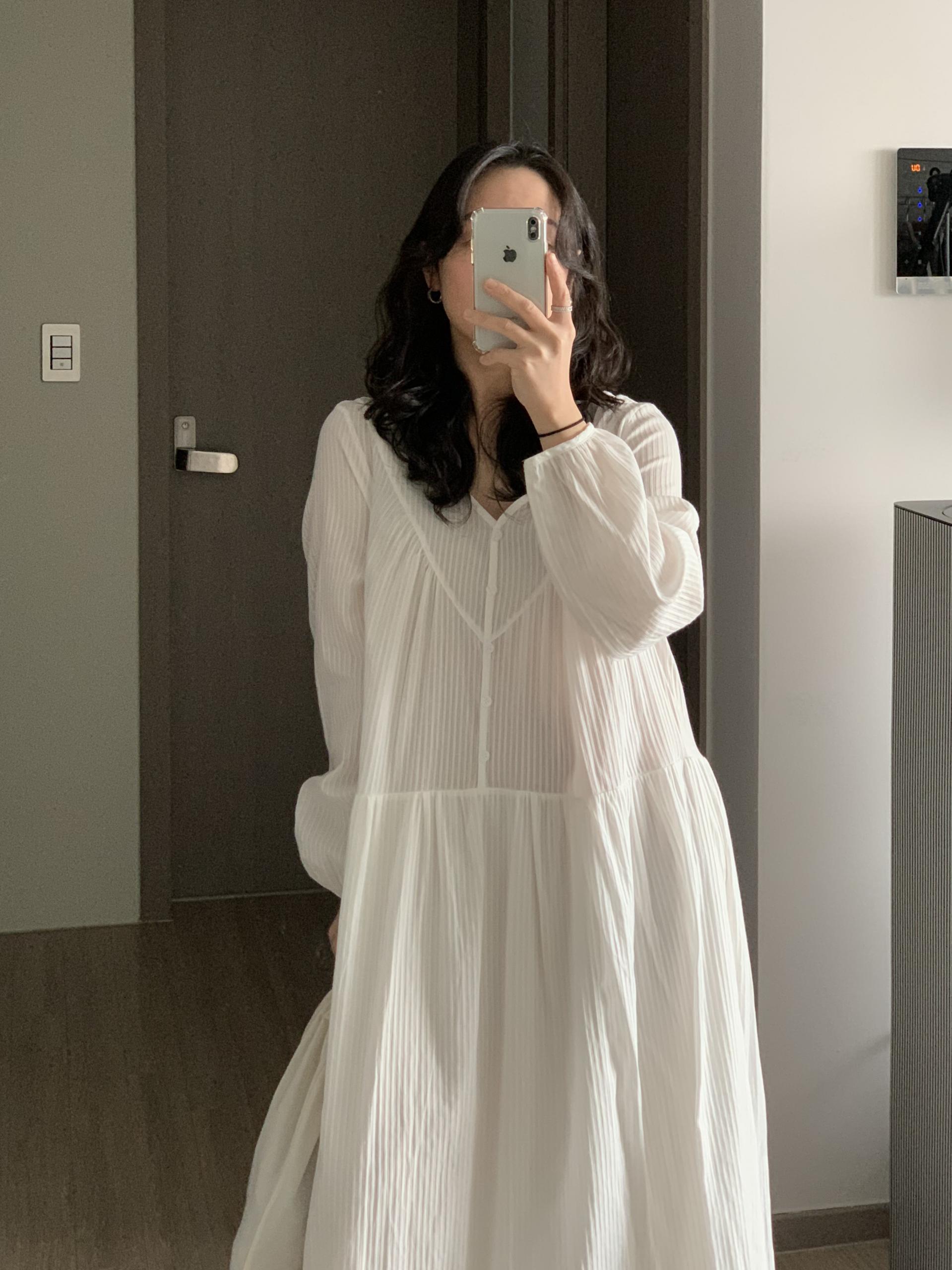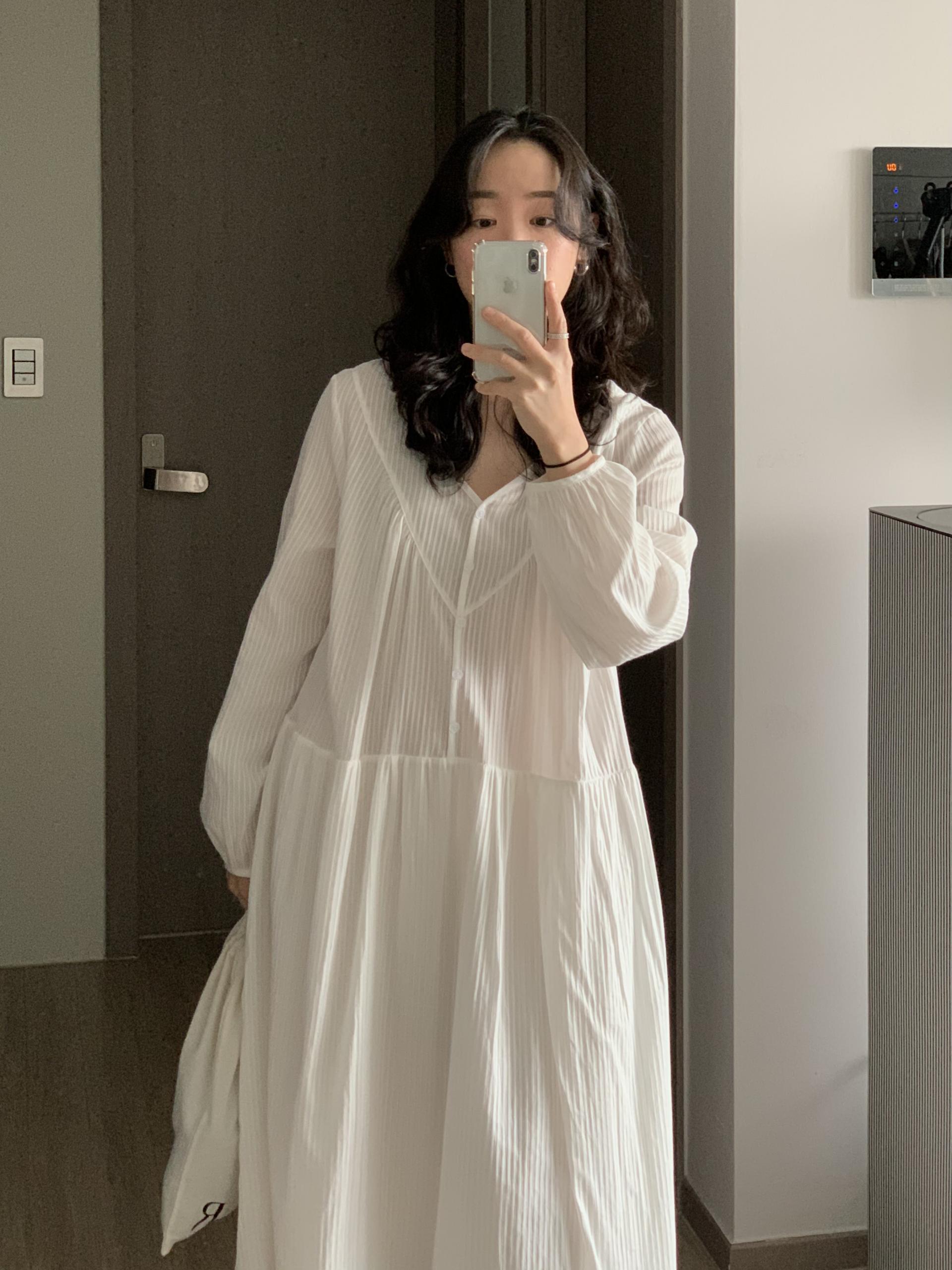 여리하면서 부드럽게 흐르는 소재감이 매력적인 롱 원피스입니다.