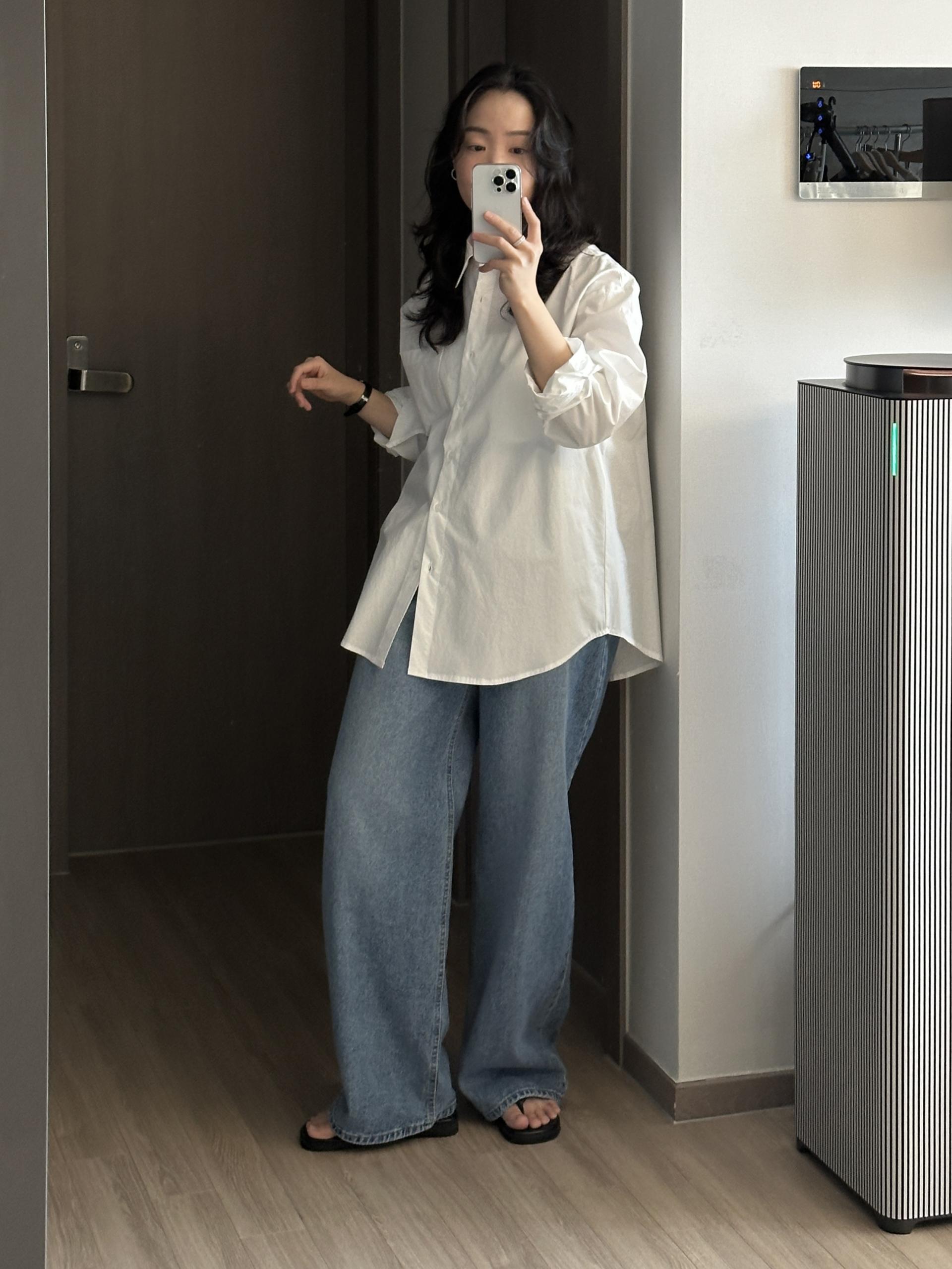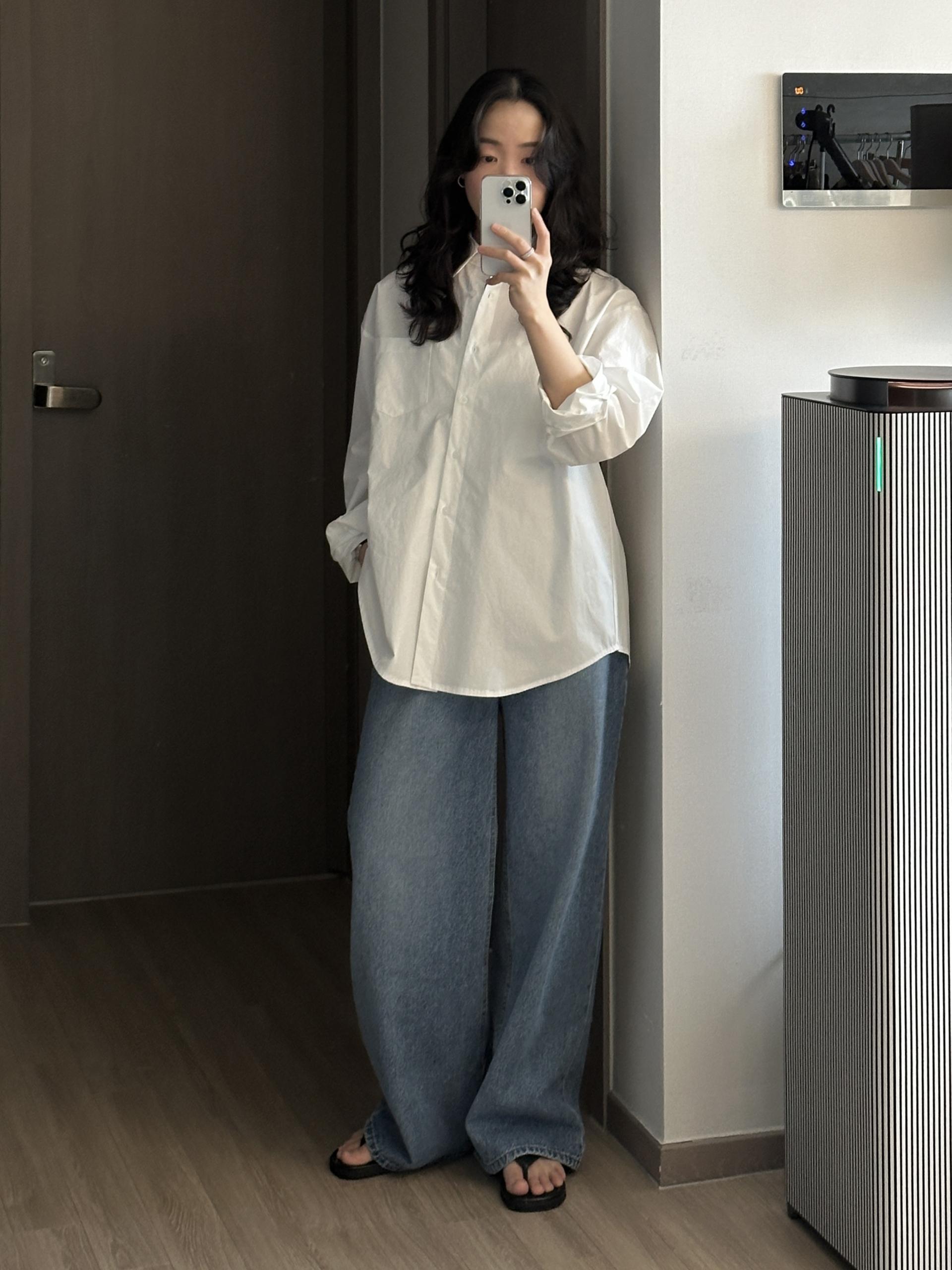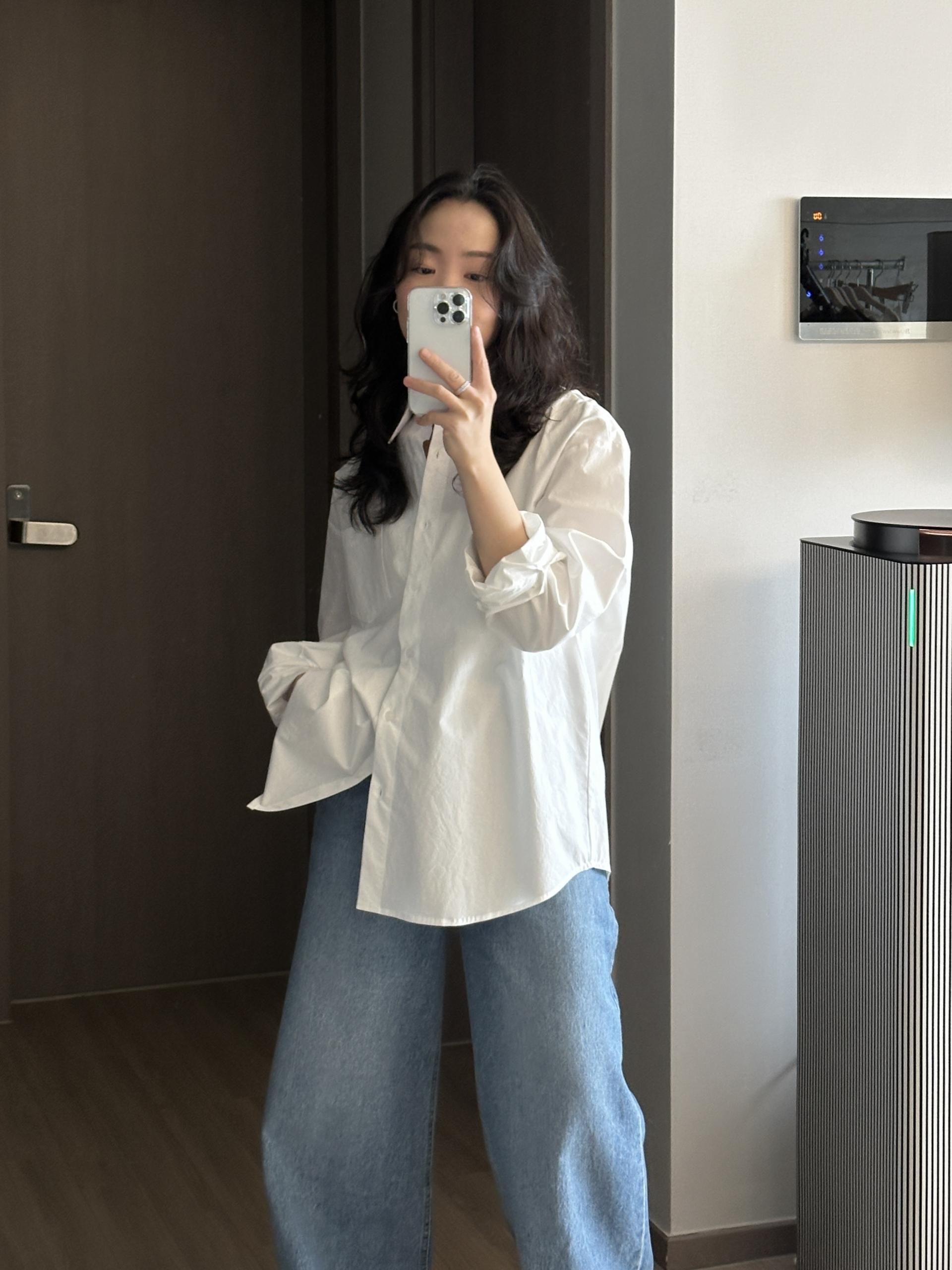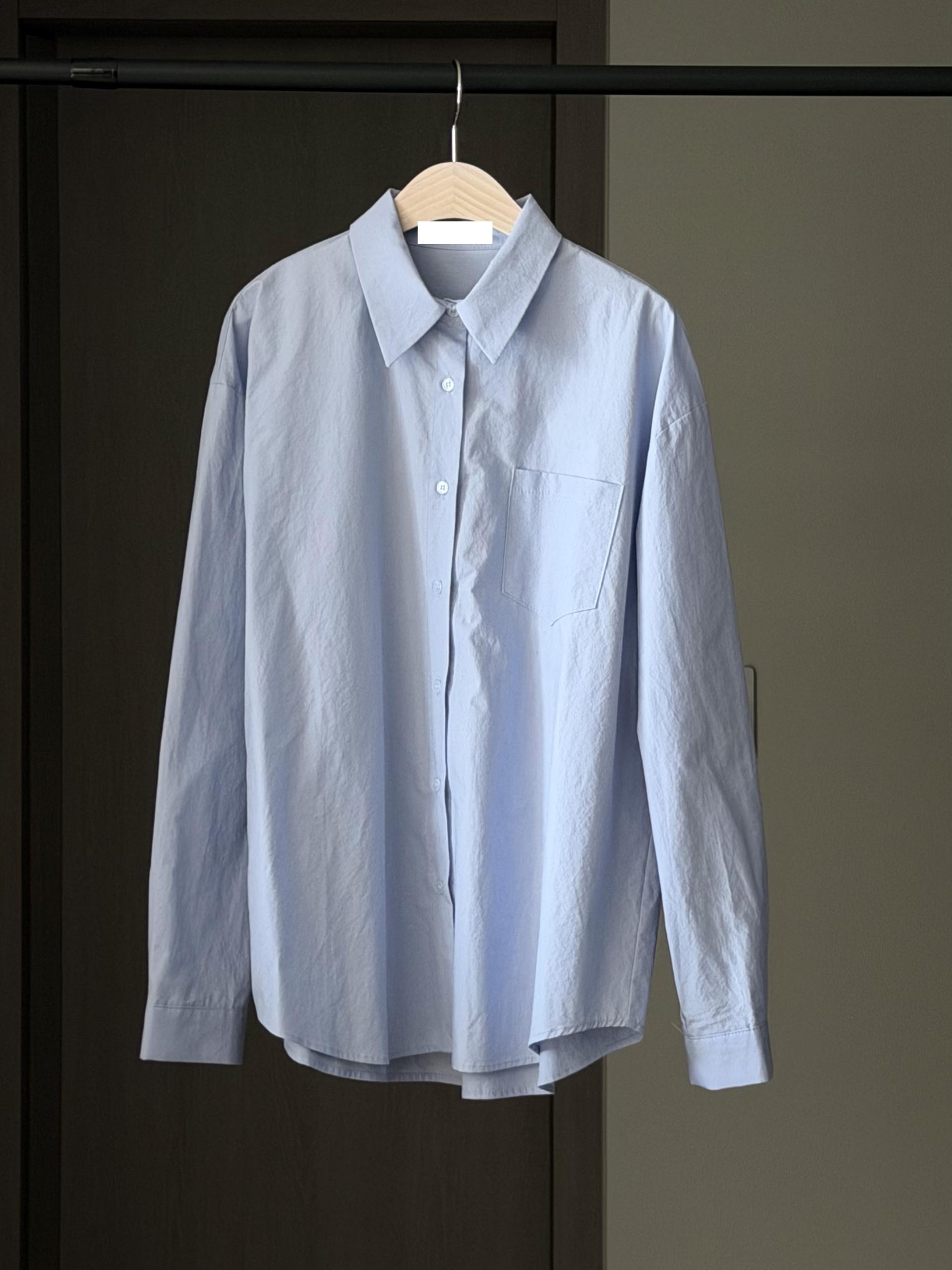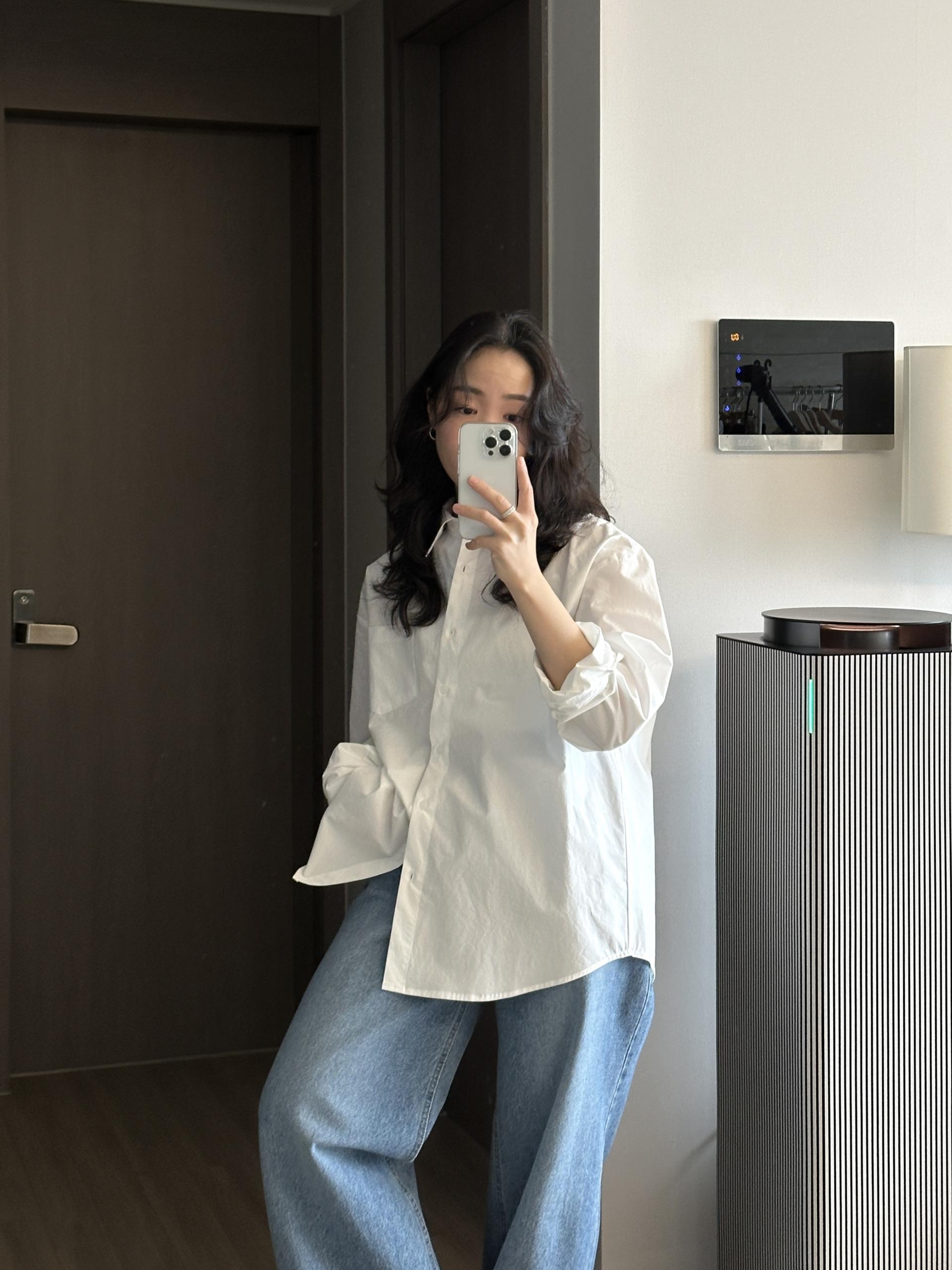 바스락한 기분 좋은 촉감에 여유로운 루즈핏의 코튼 셔츠입니다.