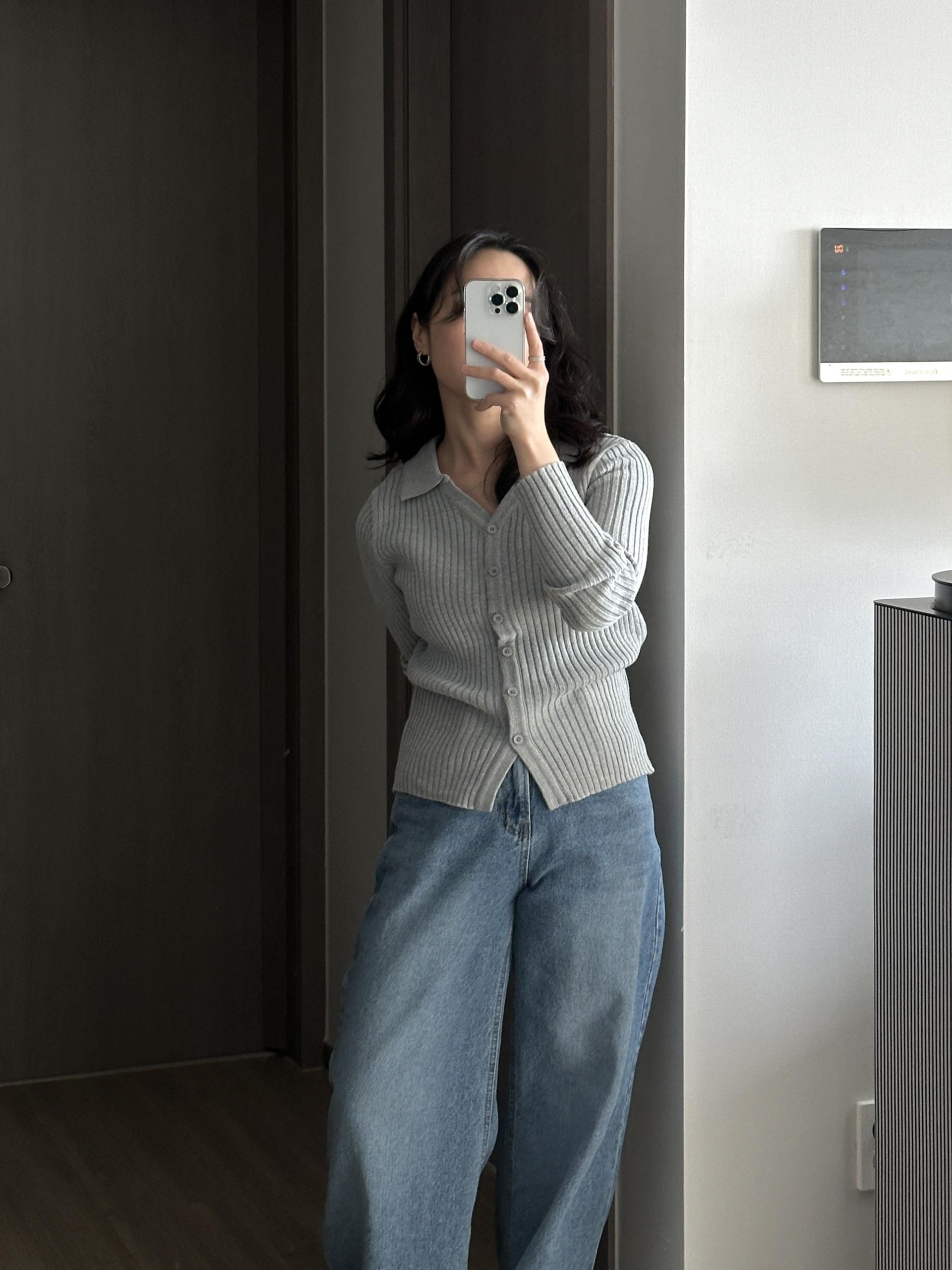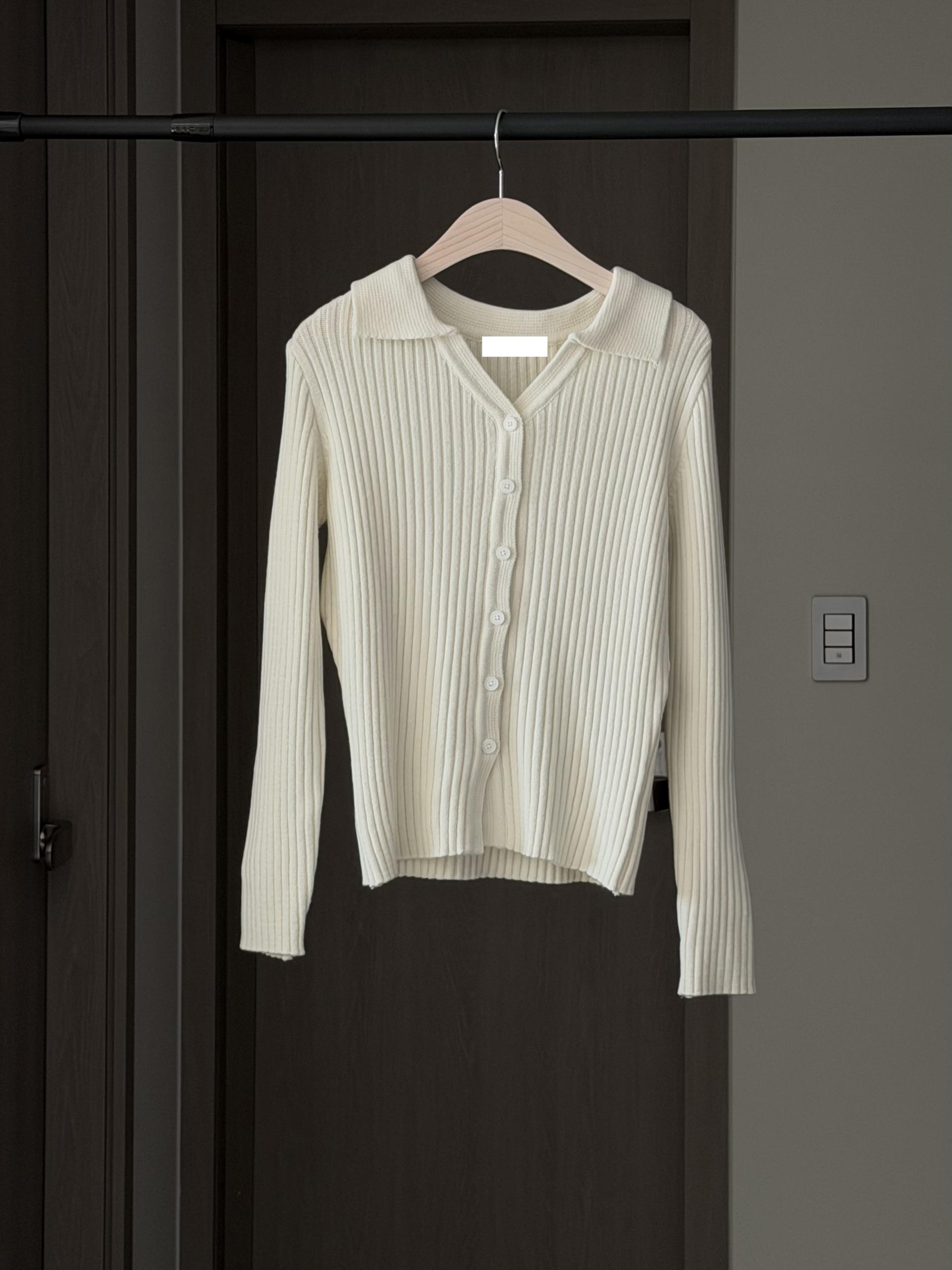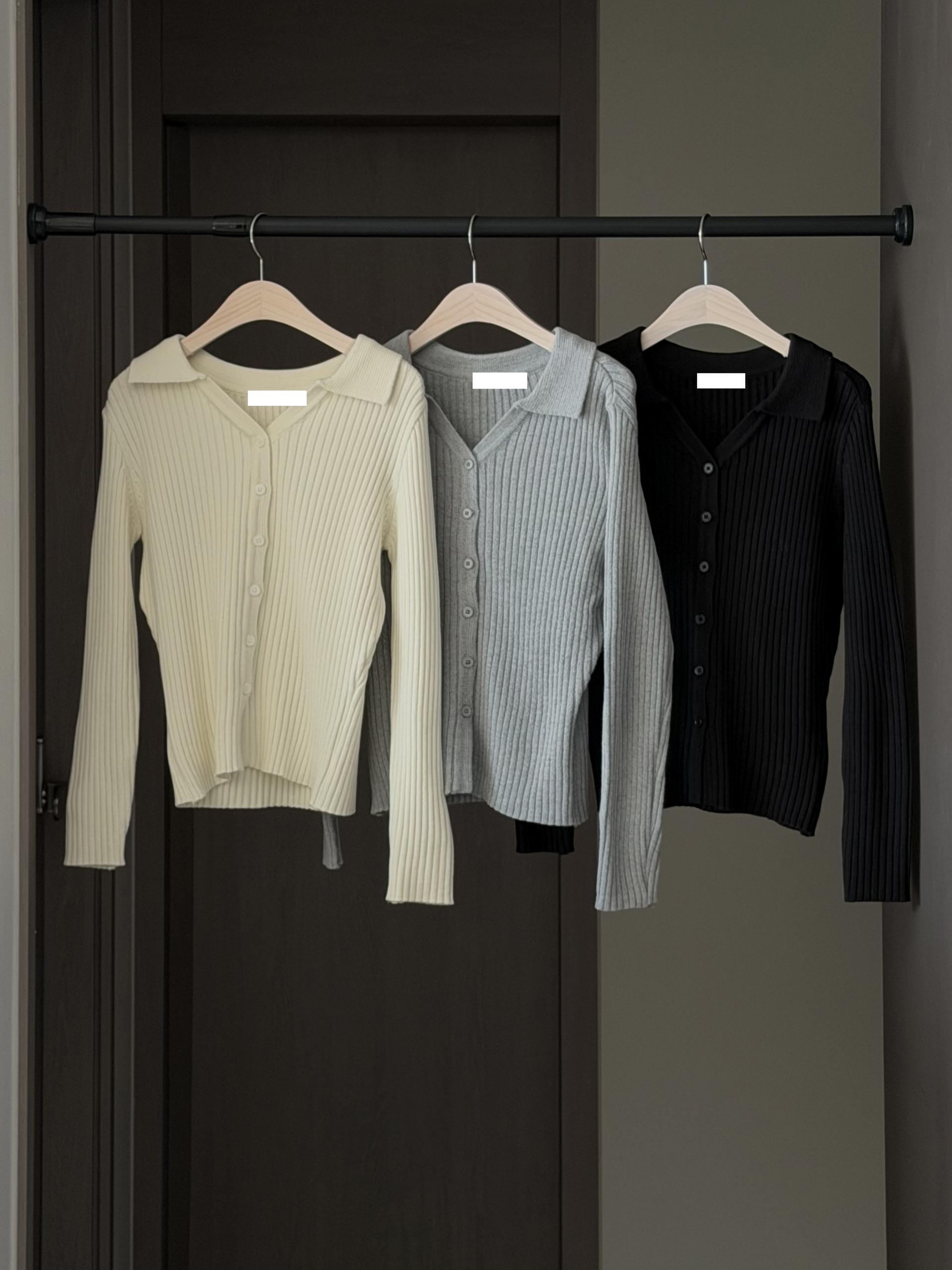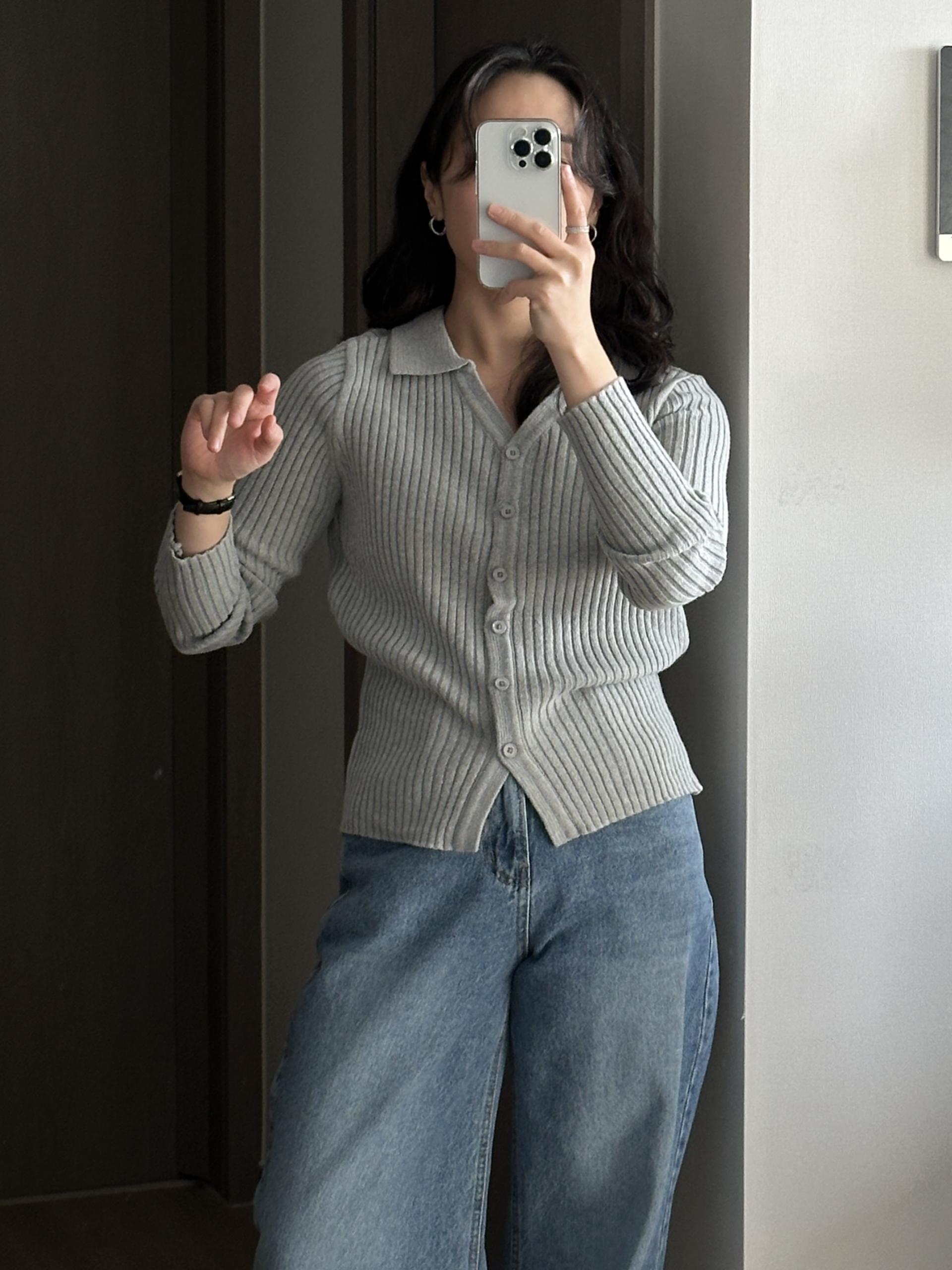 잔잔한 세로 골지로 슬림하게 떨어지는 가디건입니다.