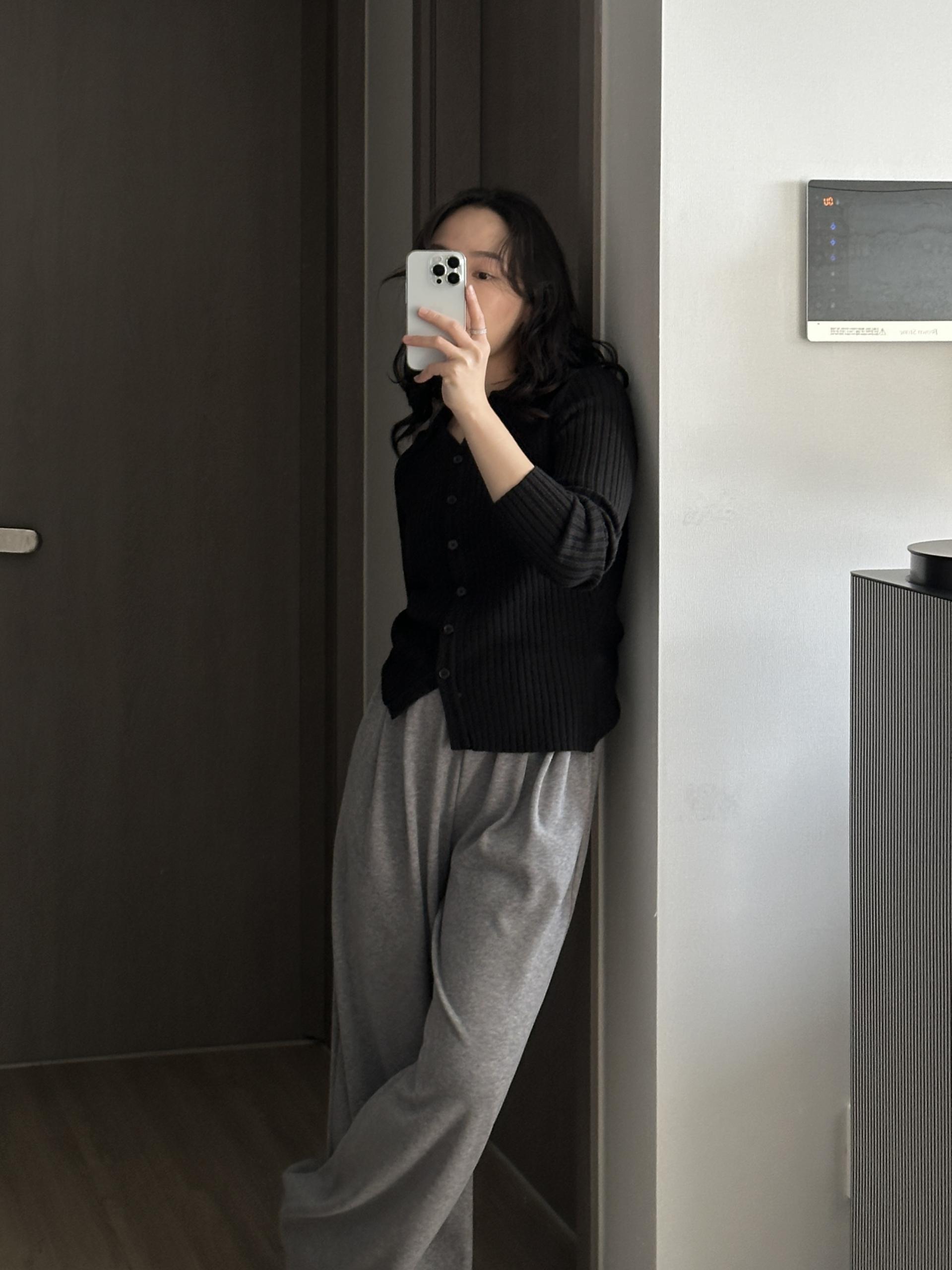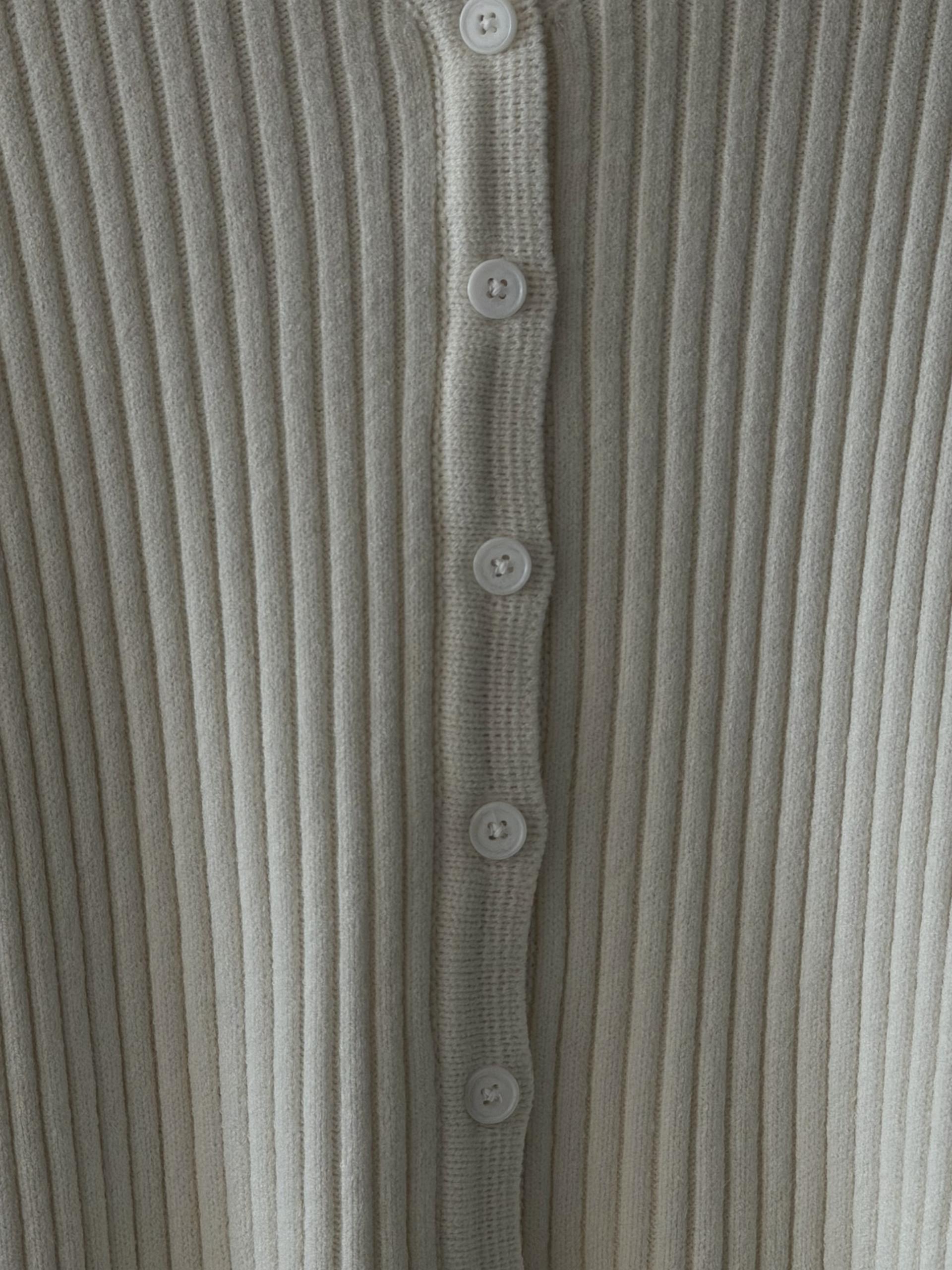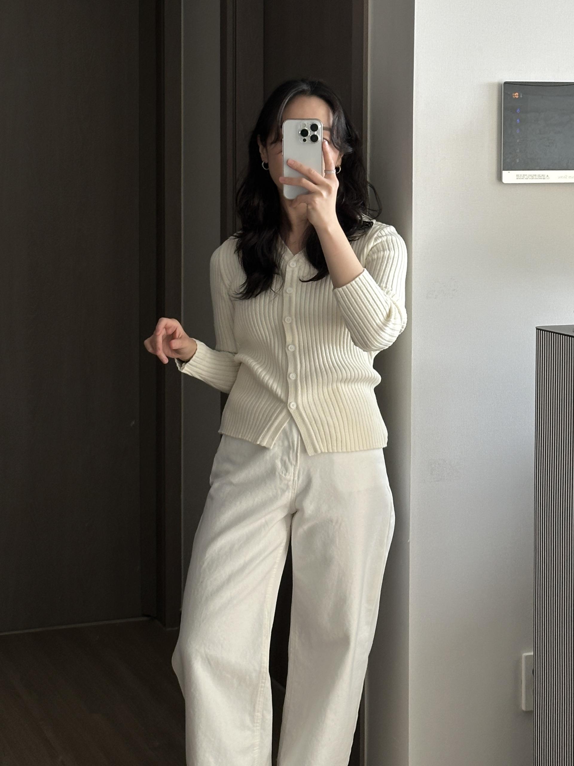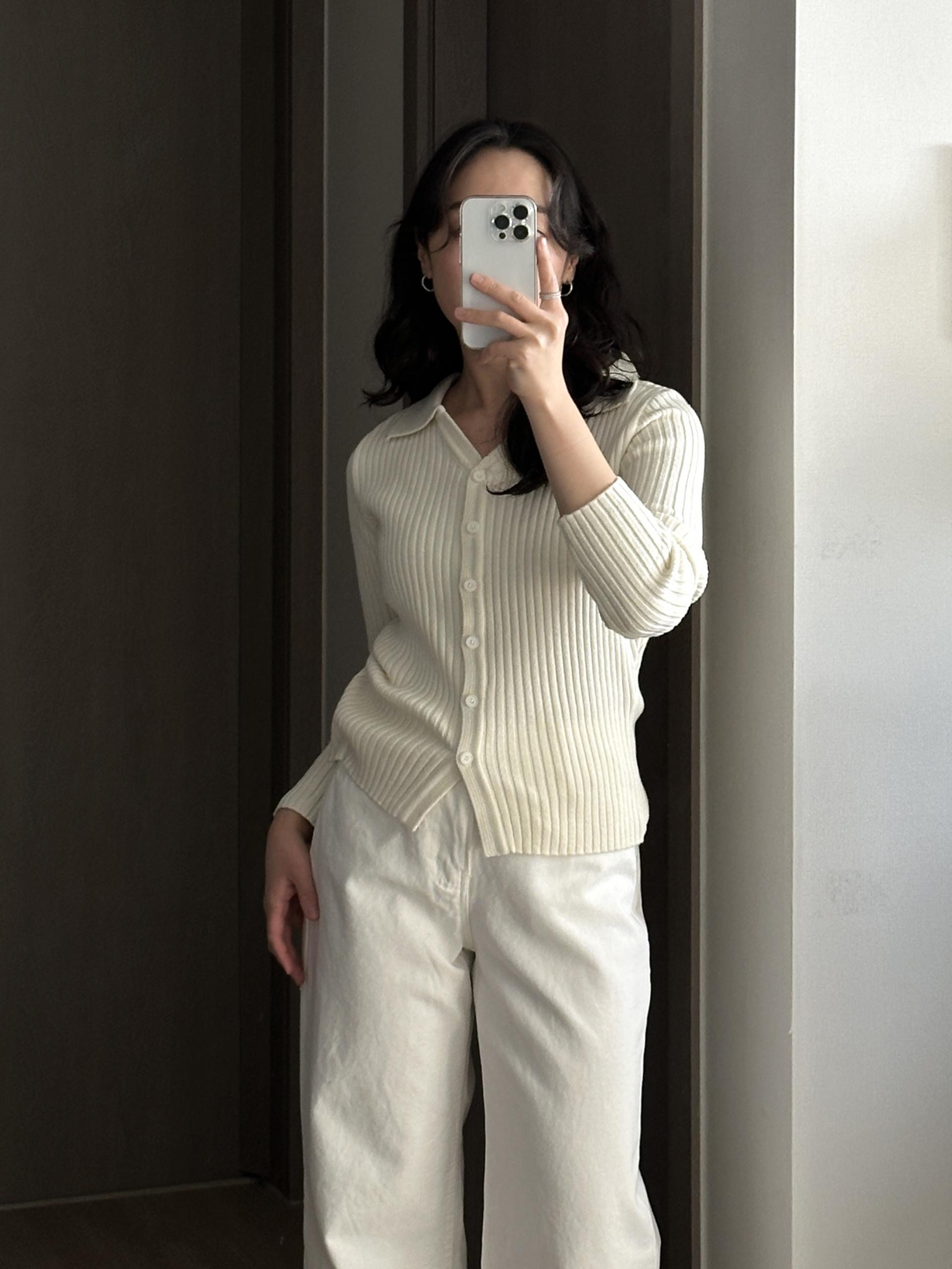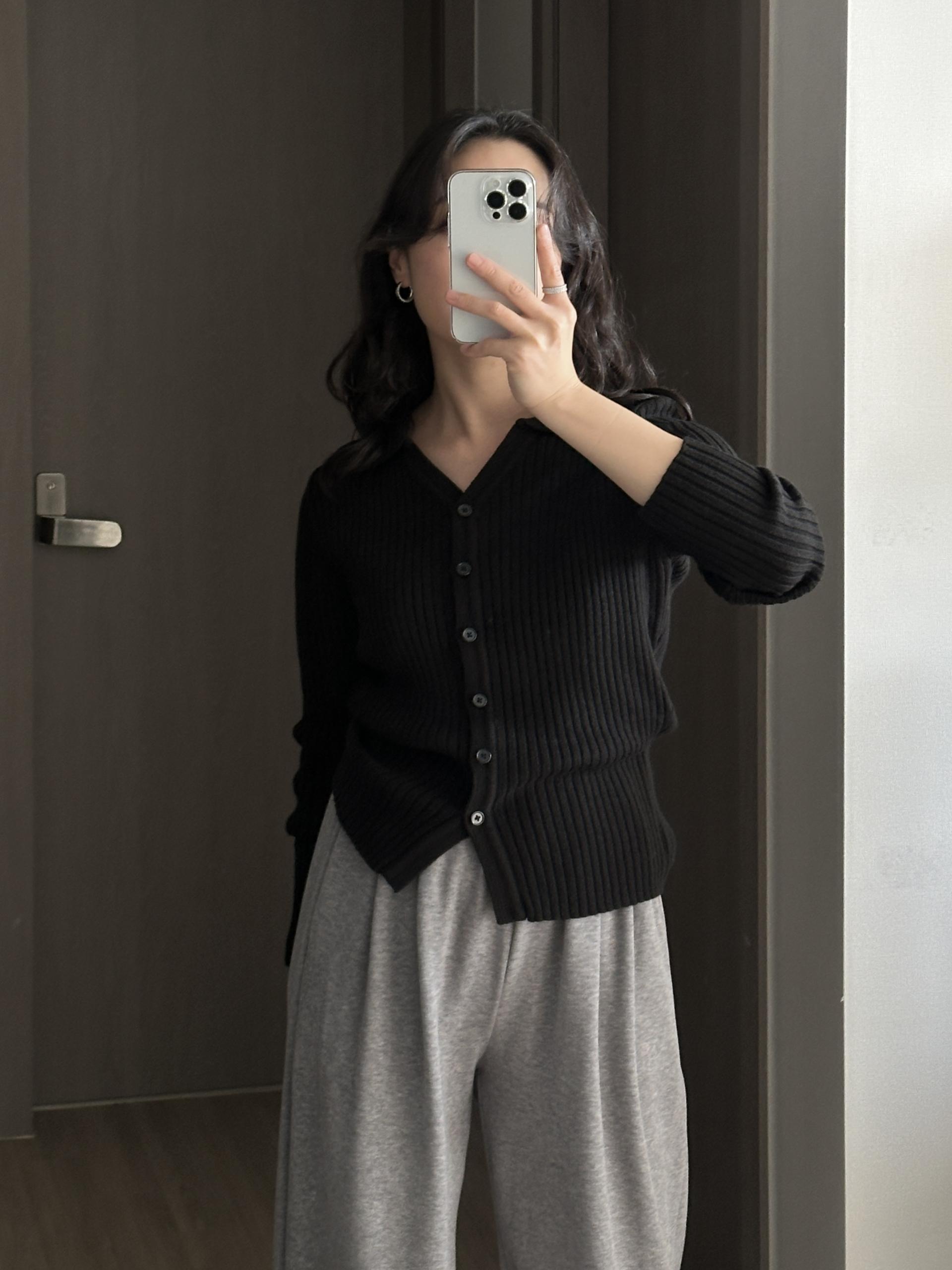 잔잔한 세로 골지로 슬림하게 떨어지는 가디건입니다.