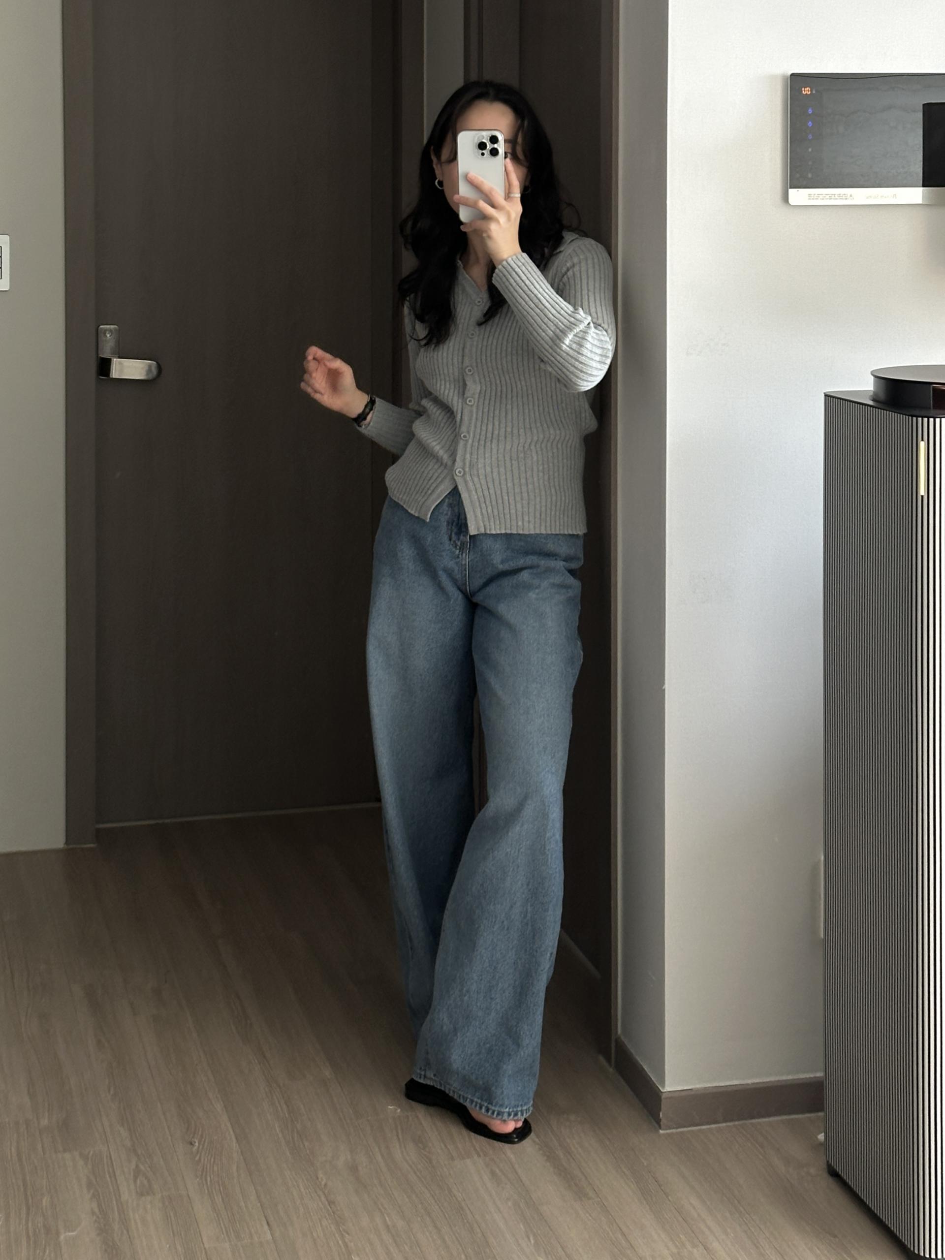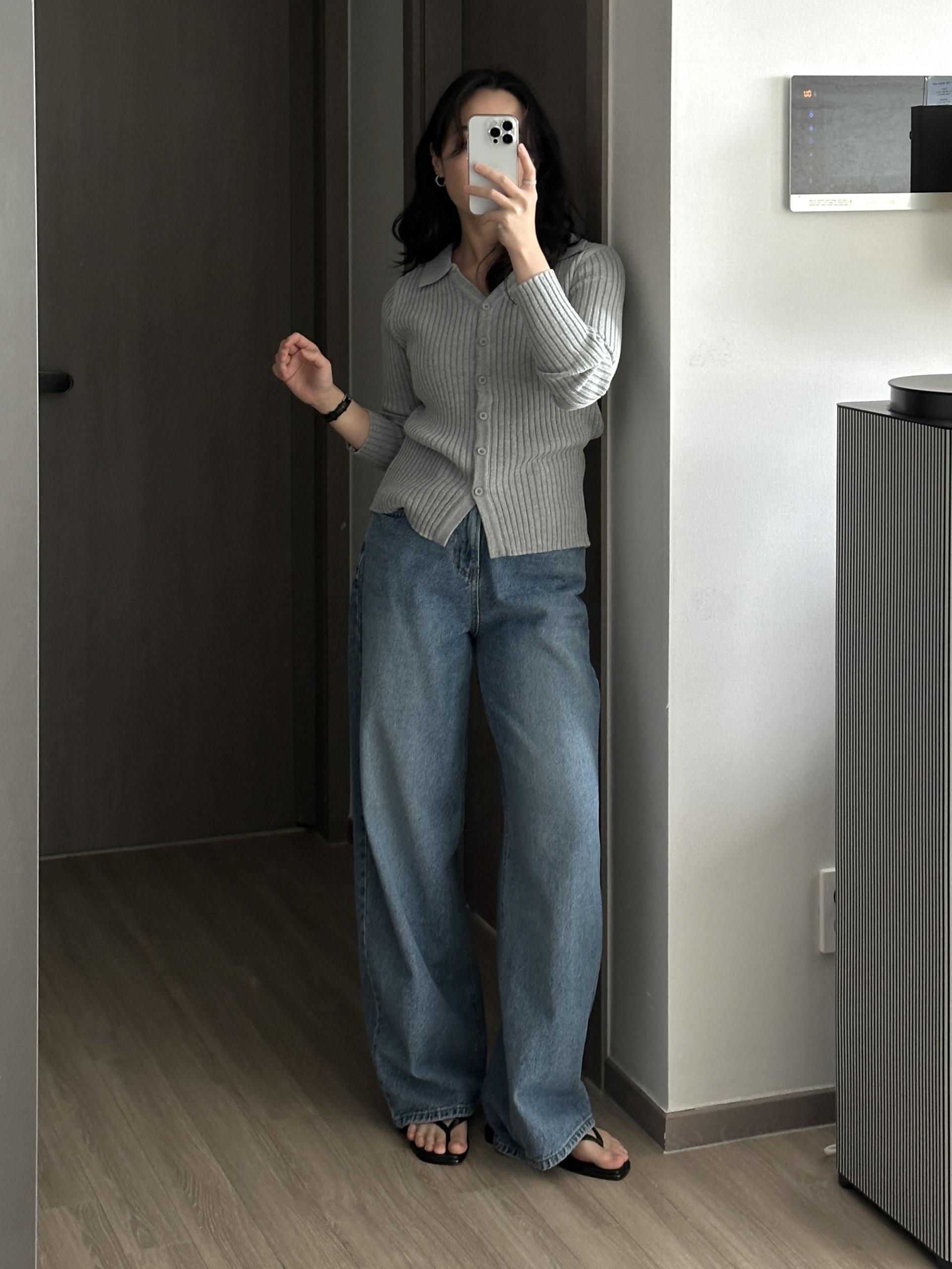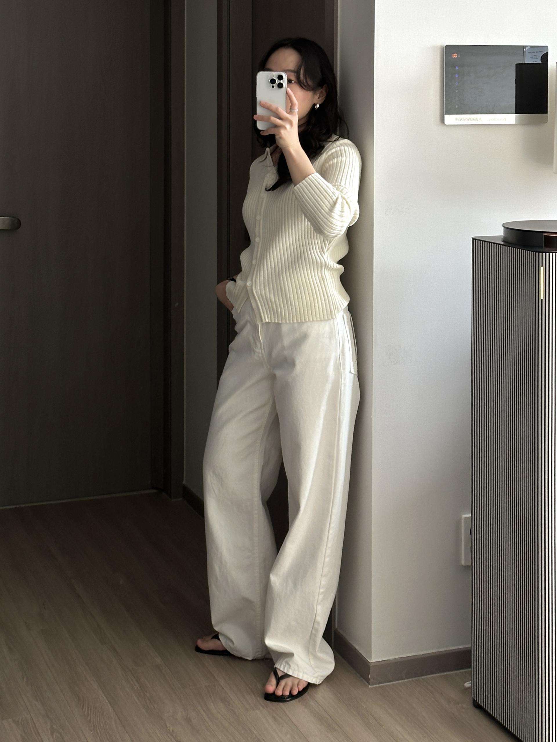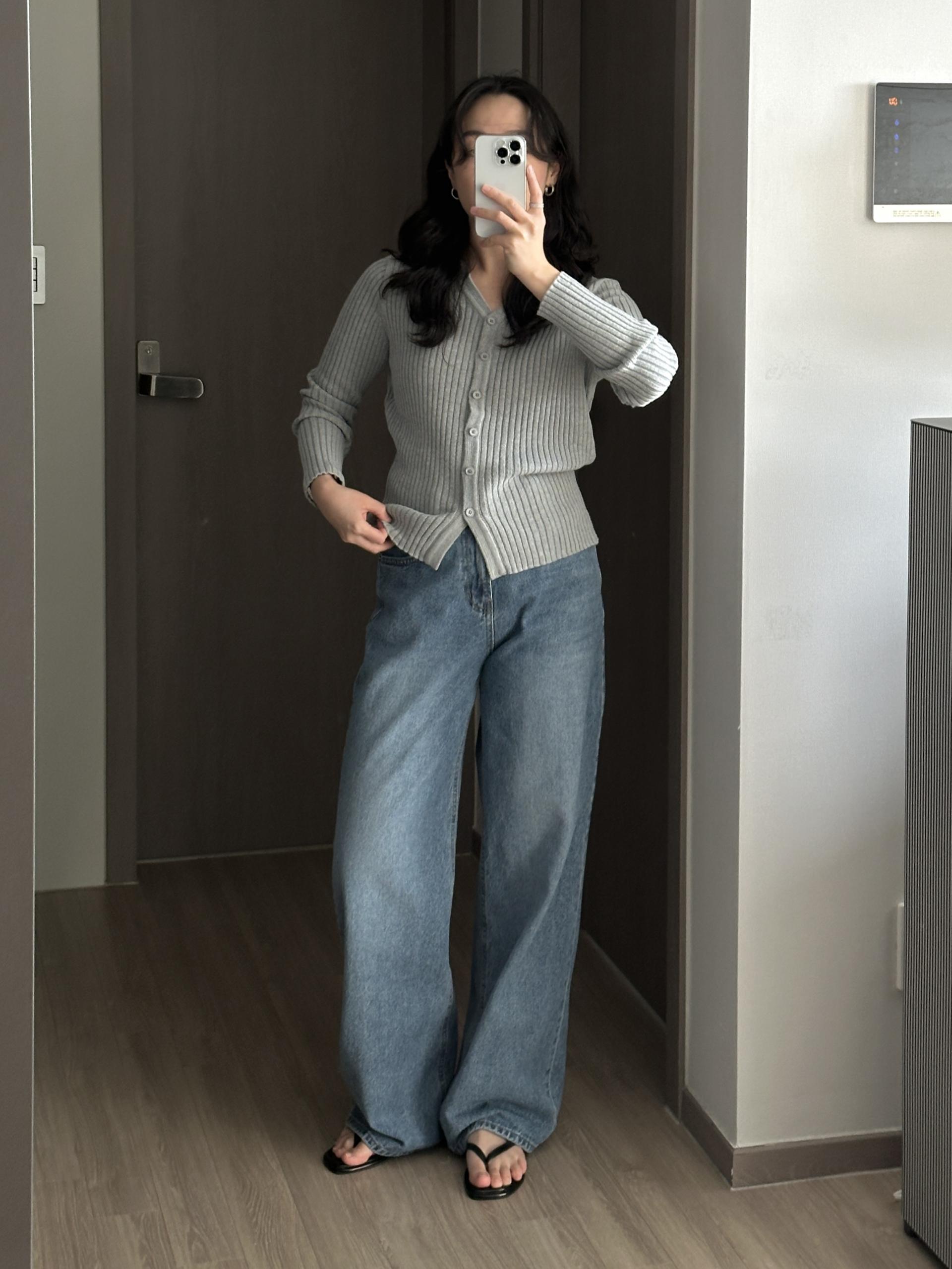 잔잔한 세로 골지로 슬림하게 떨어지는 가디건입니다.